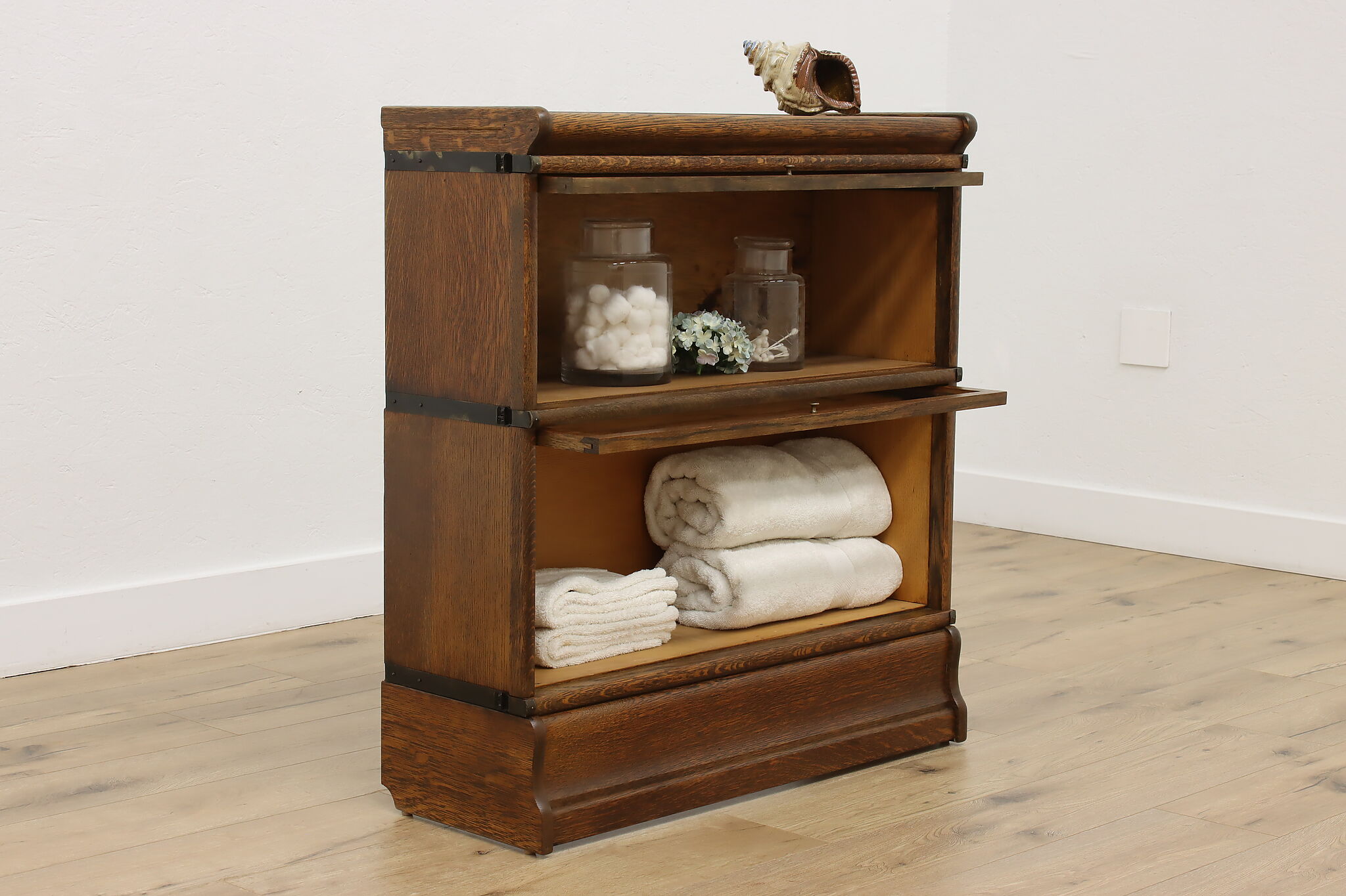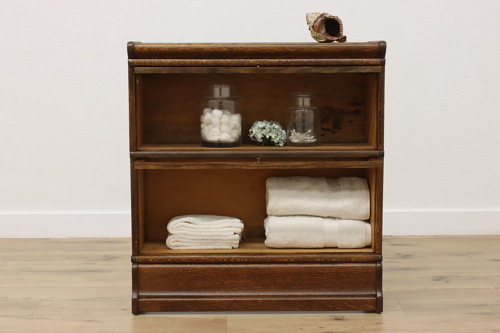 A stacking bookcase was most often found in a lawyer's office and while we can't all be lawyers, this bookcase has many options for use. Placed in a bath for storage or in a living room to display collections, you can customize this piece to fit your diverse needs!