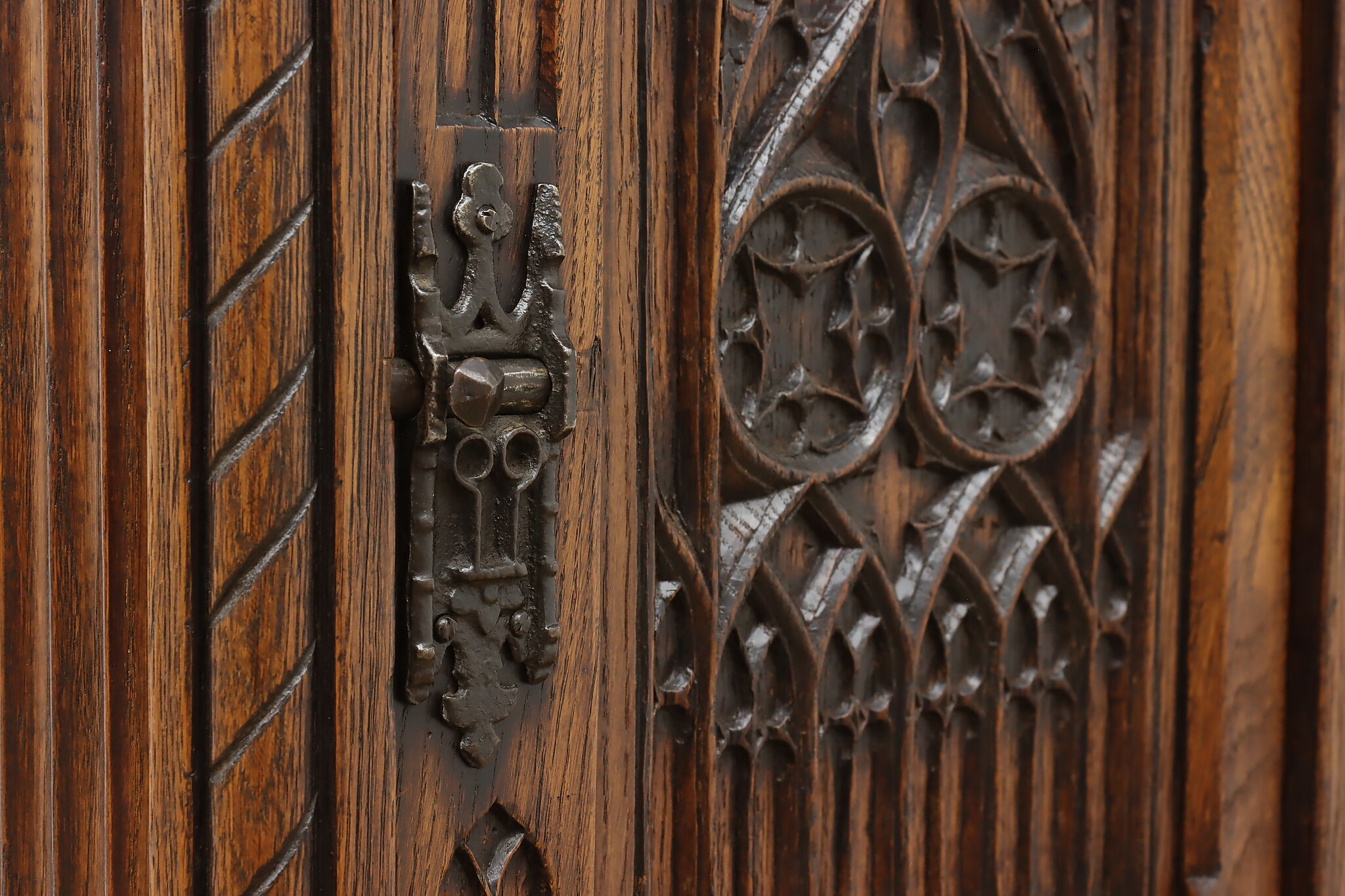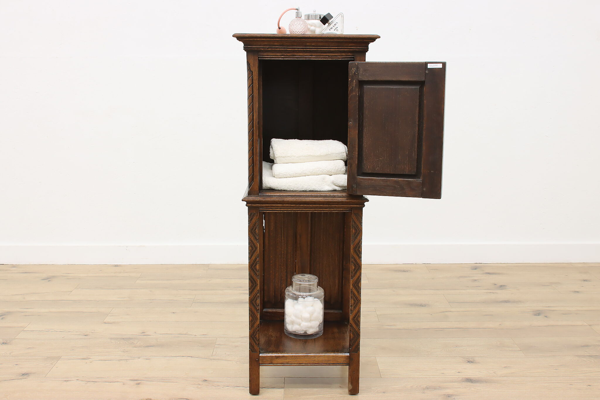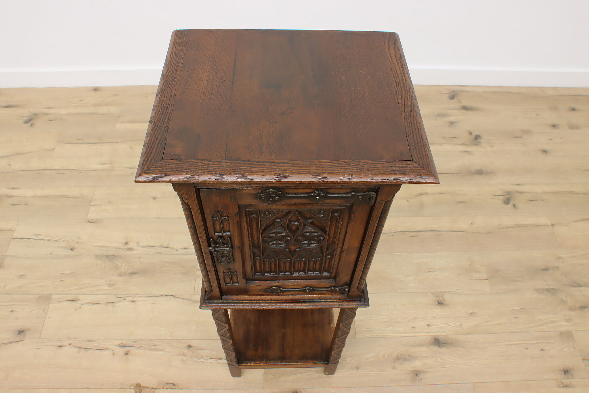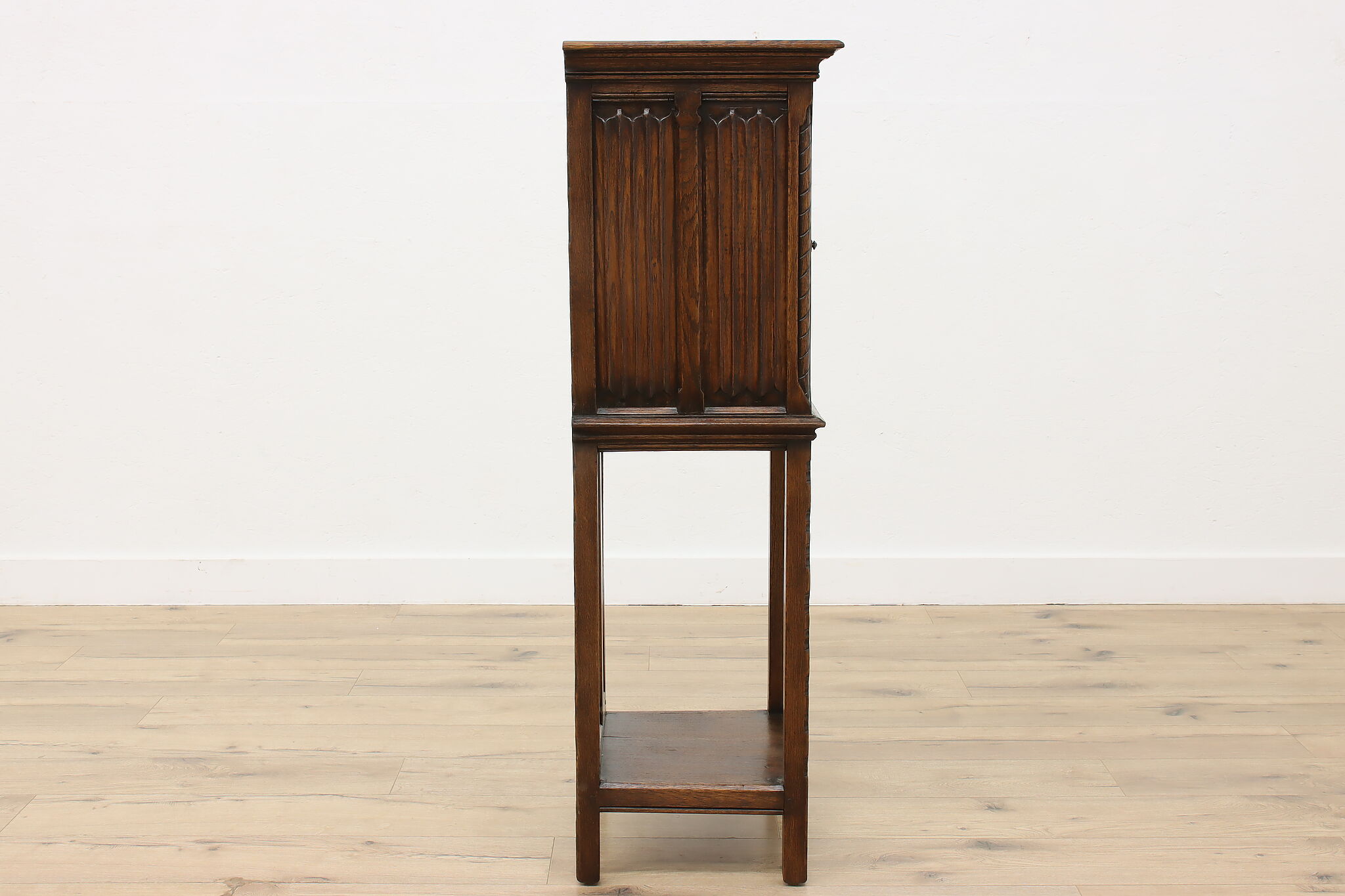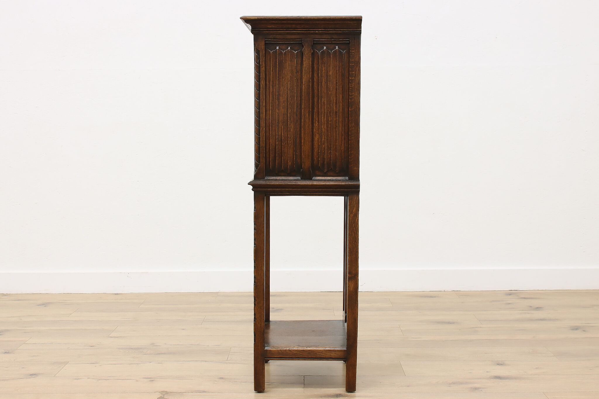 Gorgeously designed after Gothic architecture, this hall or bath cabinet would be excellent as a small bar!