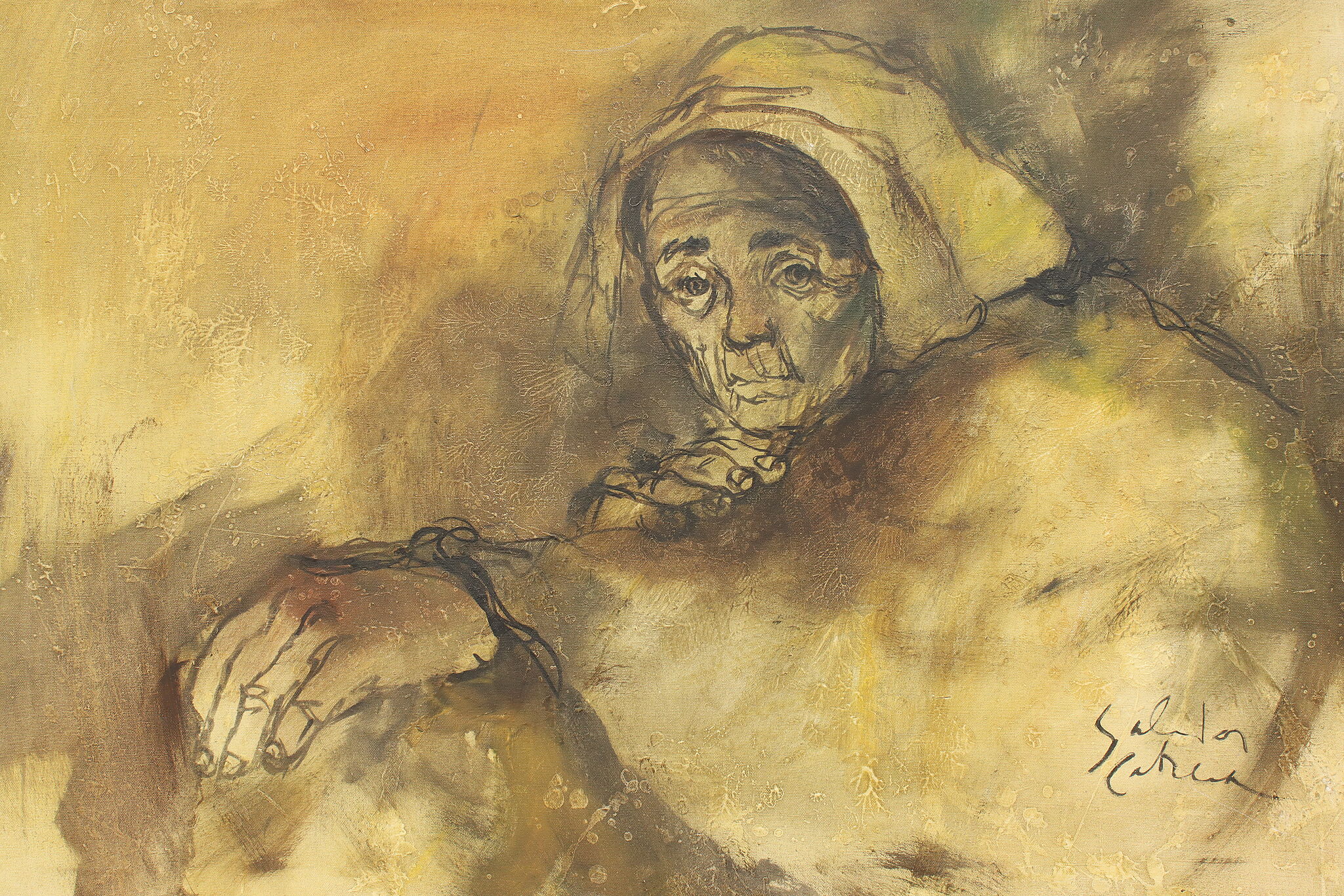 The artist paints a portrait of grandmother, capturing the years she has lived and preserves them forever in this painting.