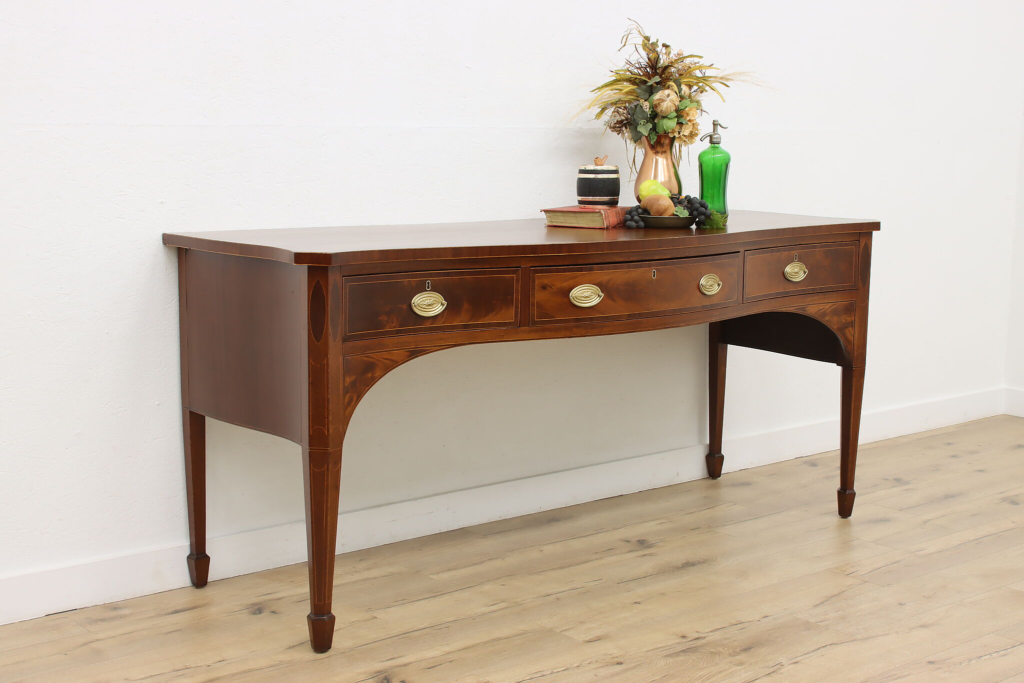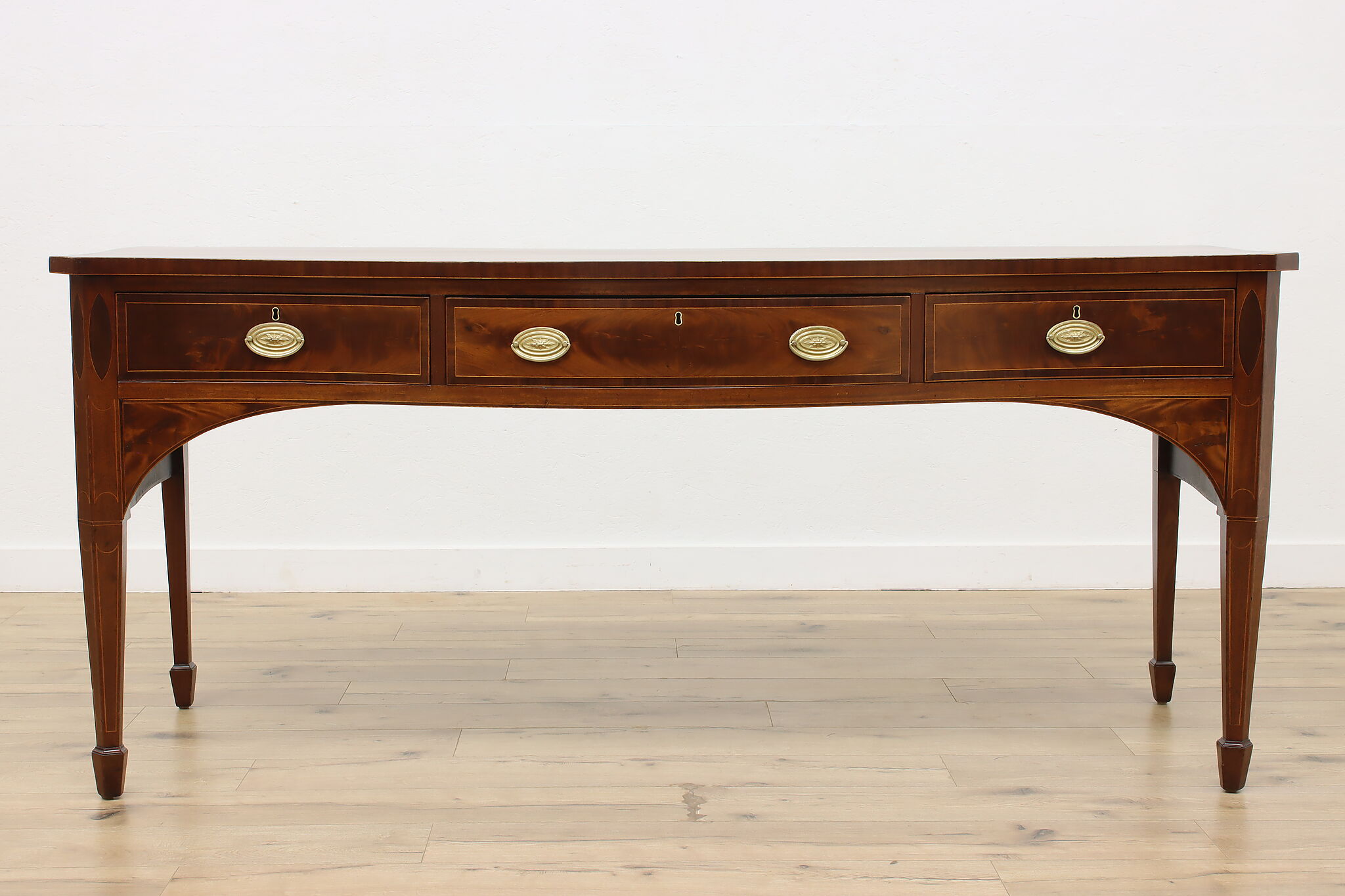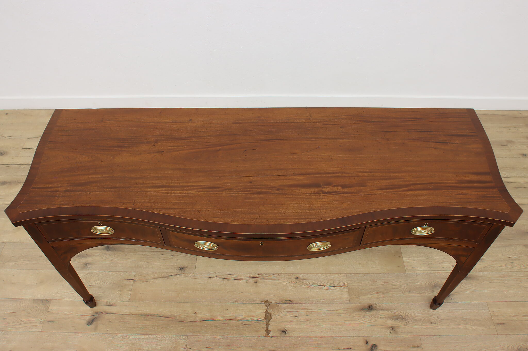 This monumental sideboard, server, or buffet is a one-of-a-kind piece from the Georgian or Hepplewhite period.