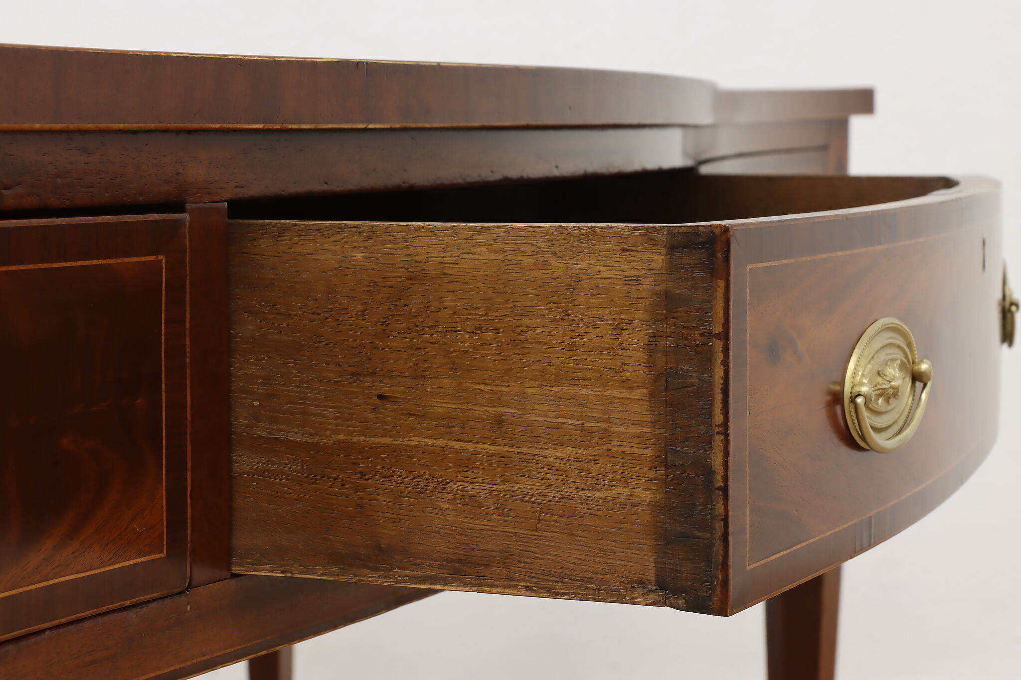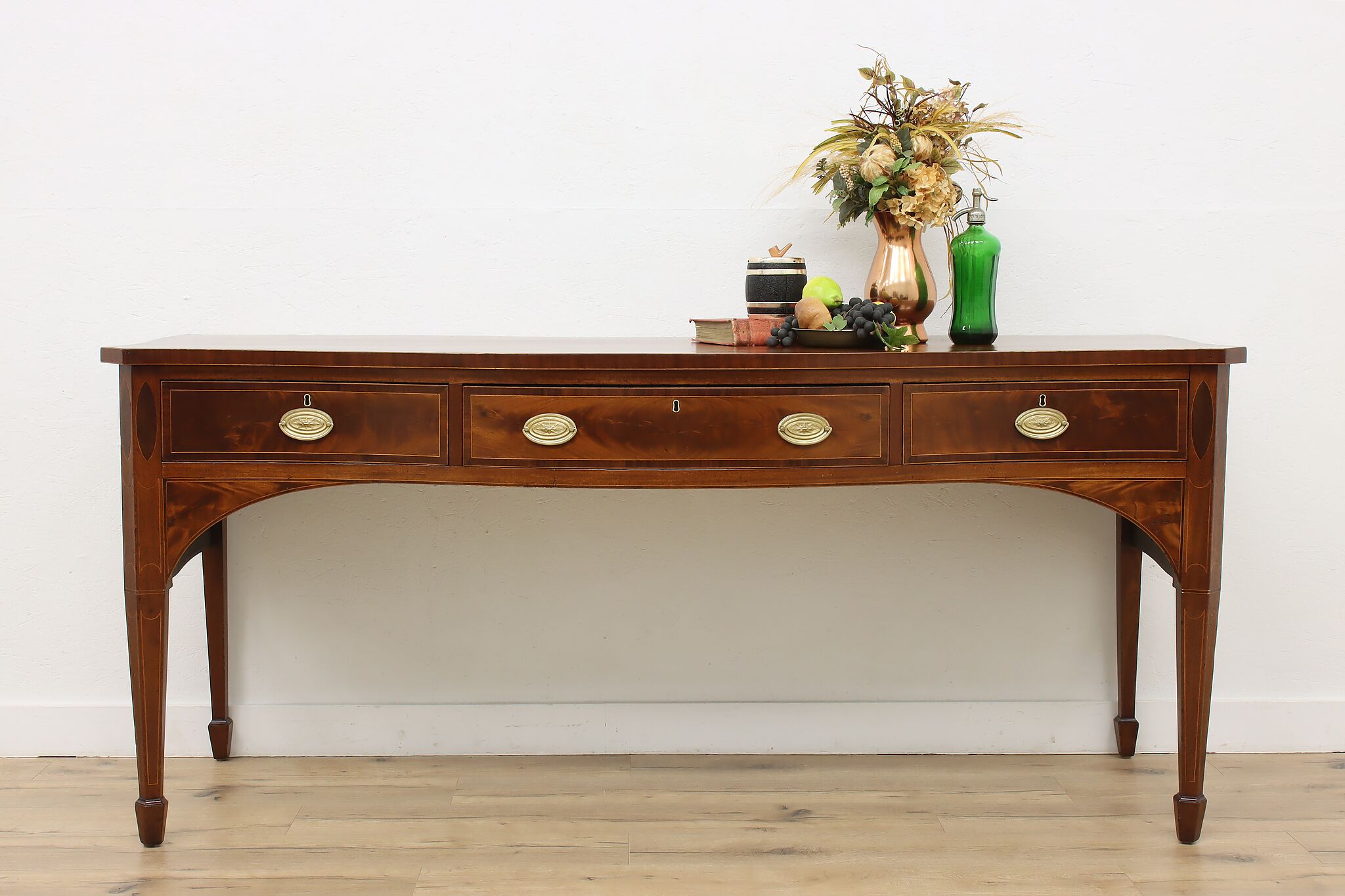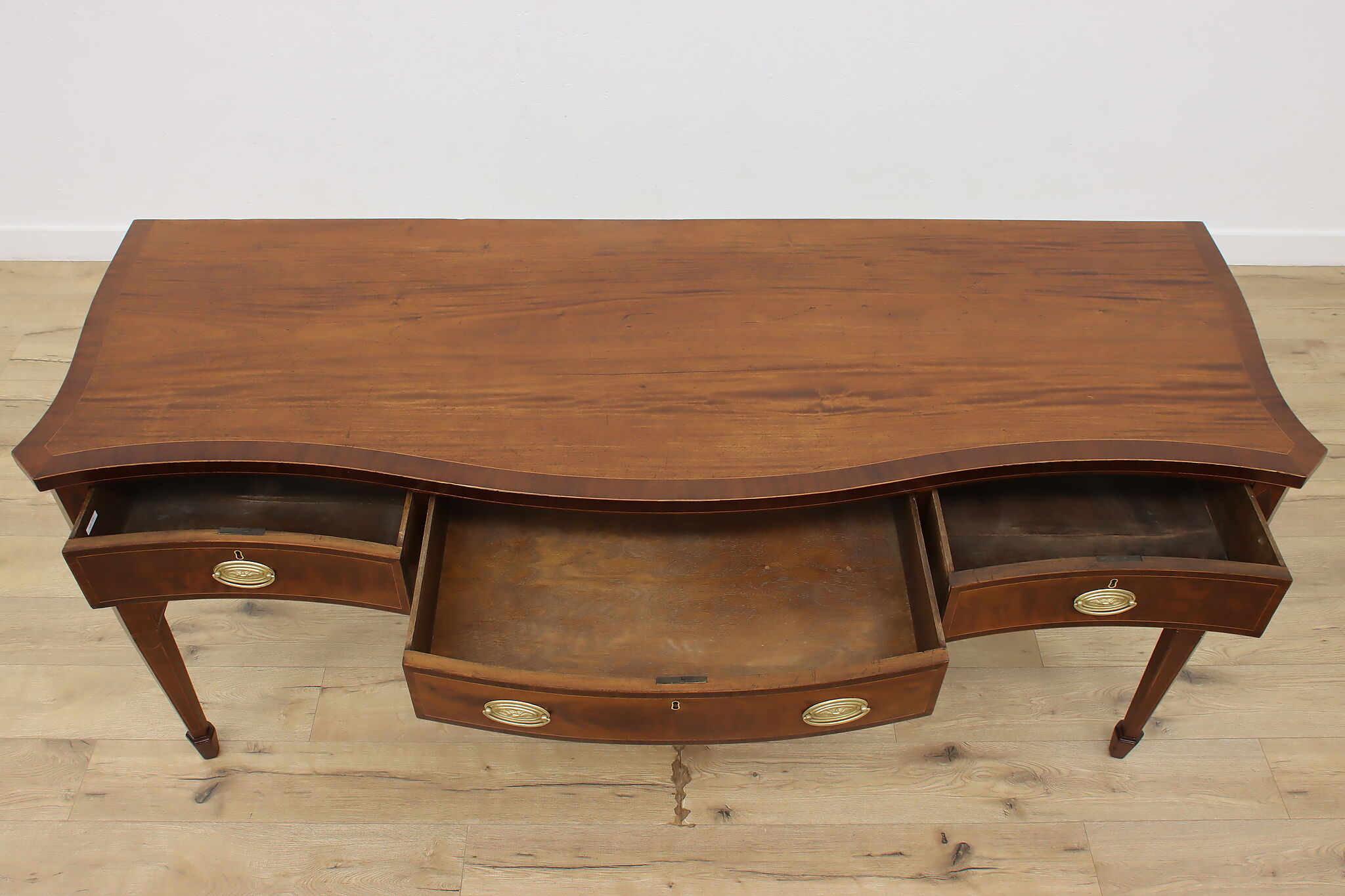This monumental sideboard, server, or buffet is a one-of-a-kind piece from the Georgian or Hepplewhite period.