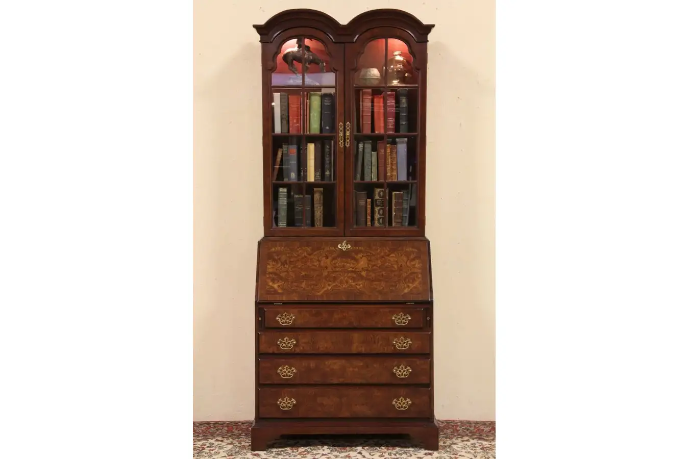 This elegant secretary desk with a double arched bookcase top is signed by famous maker "Hickory Chair Company," from their "James River Plantations" collection.