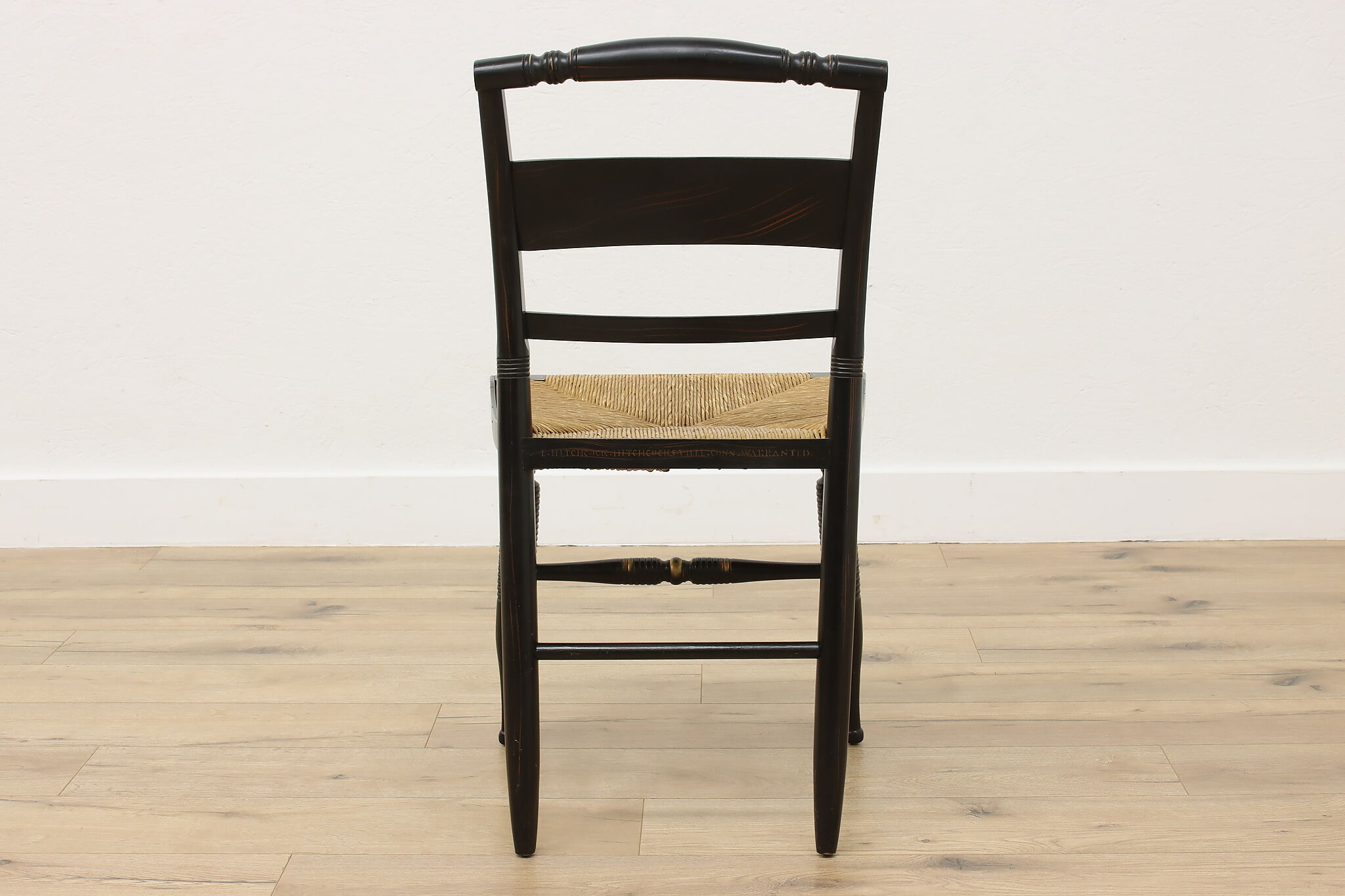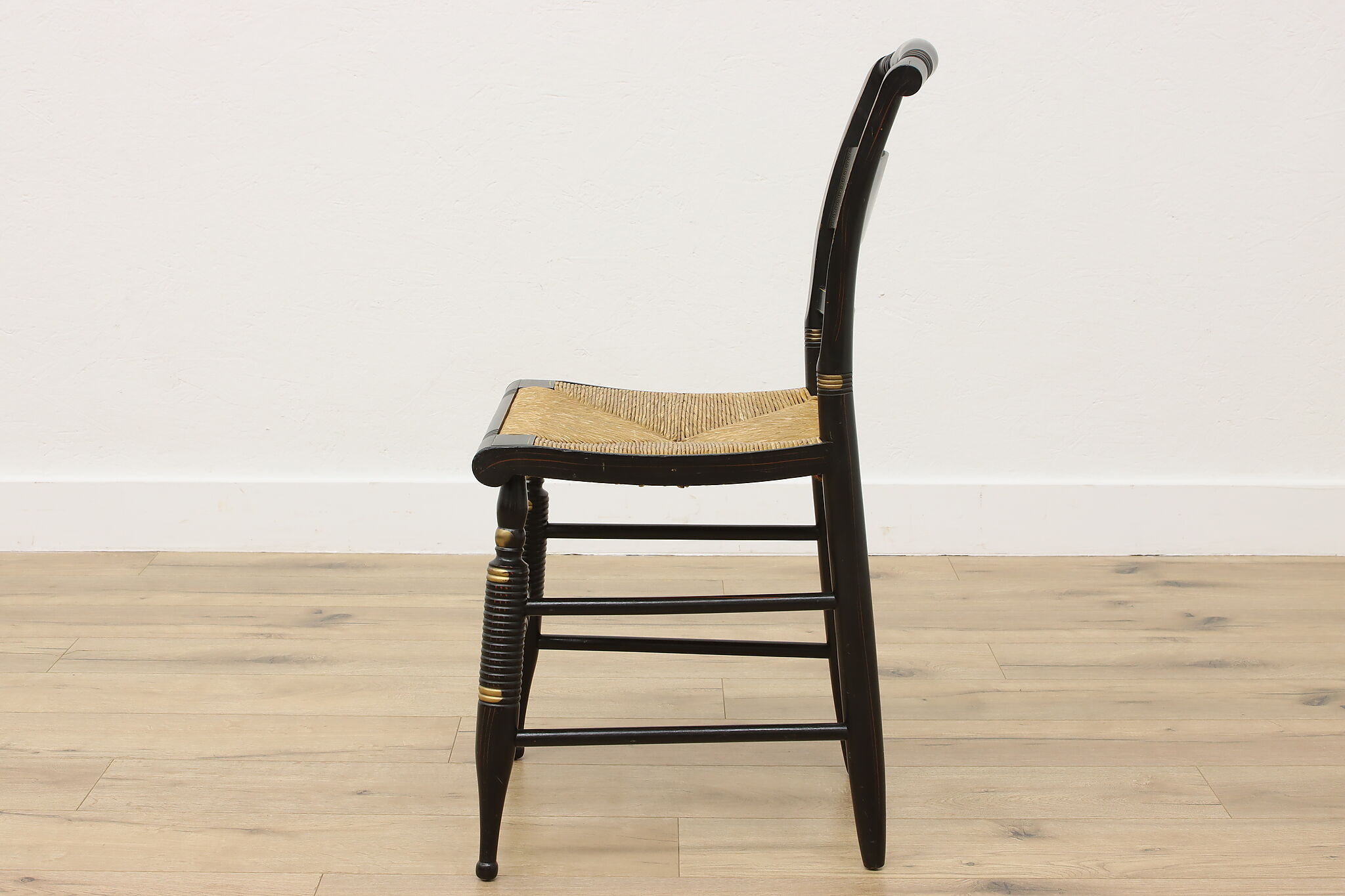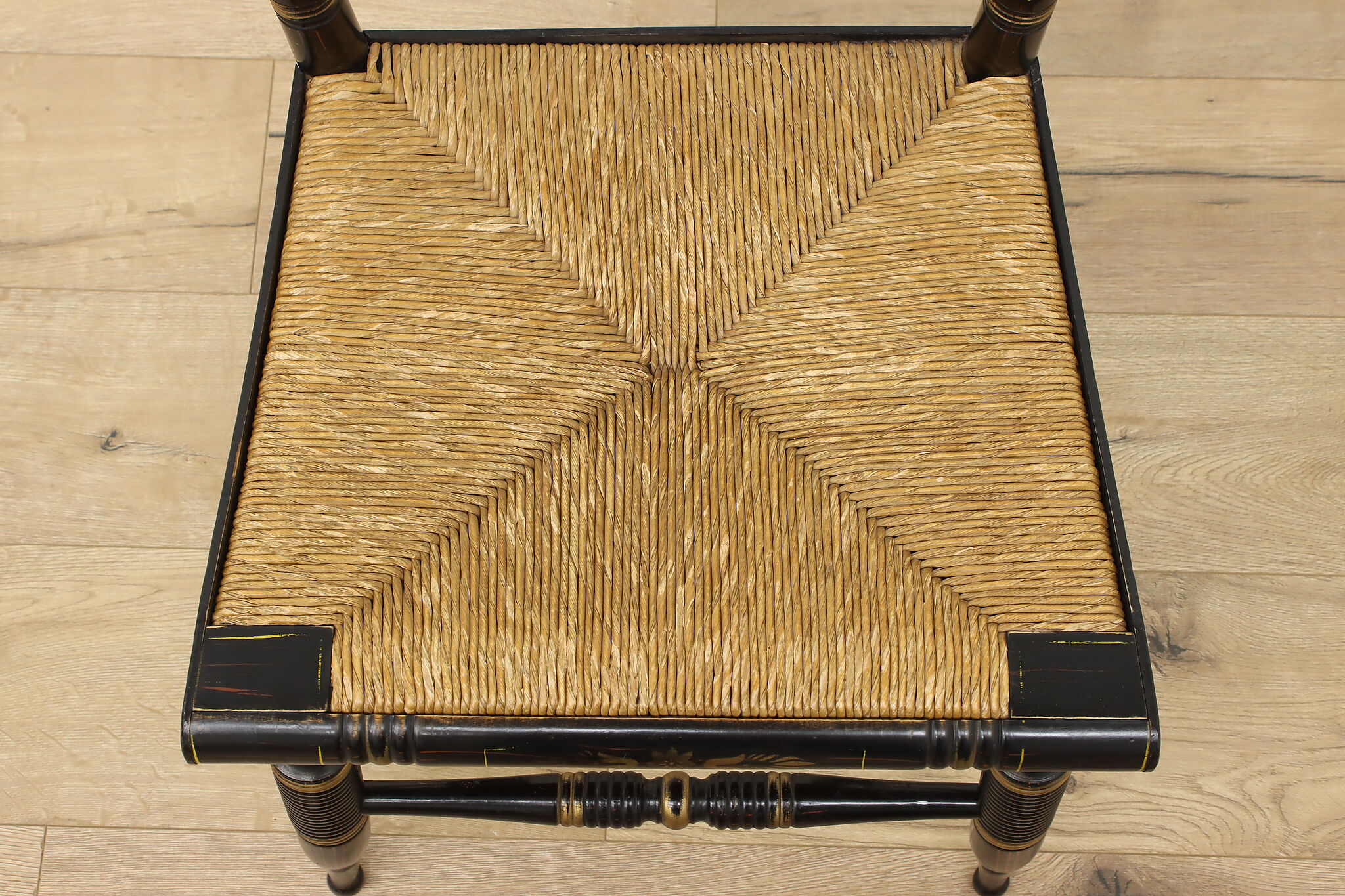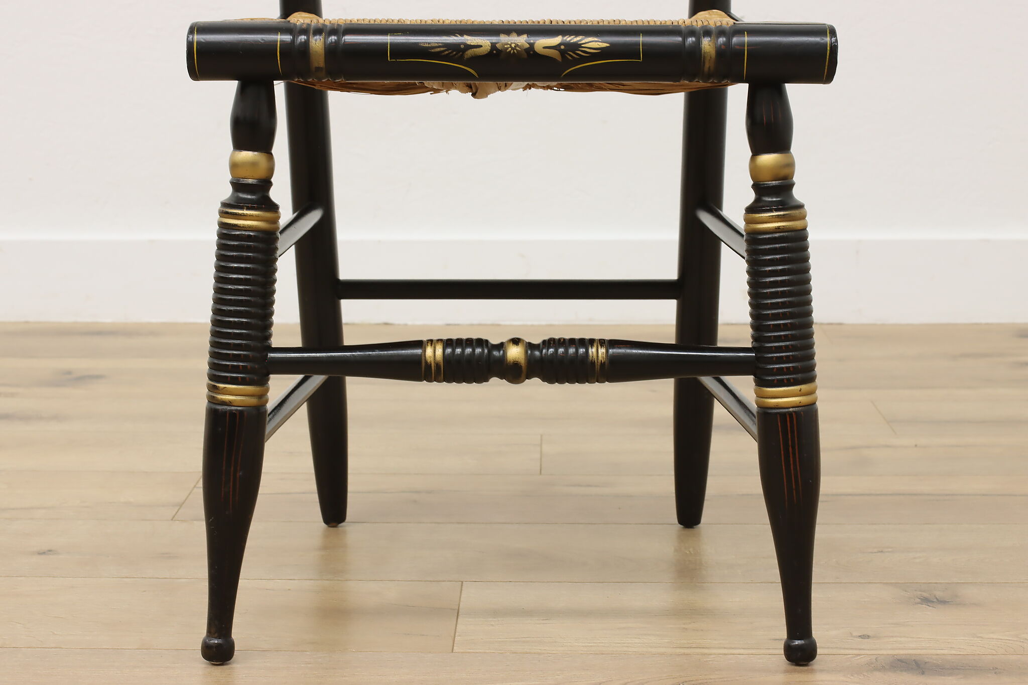 A fantastic Hitchcock side or desk chair has charmingly painted fruit motifs.