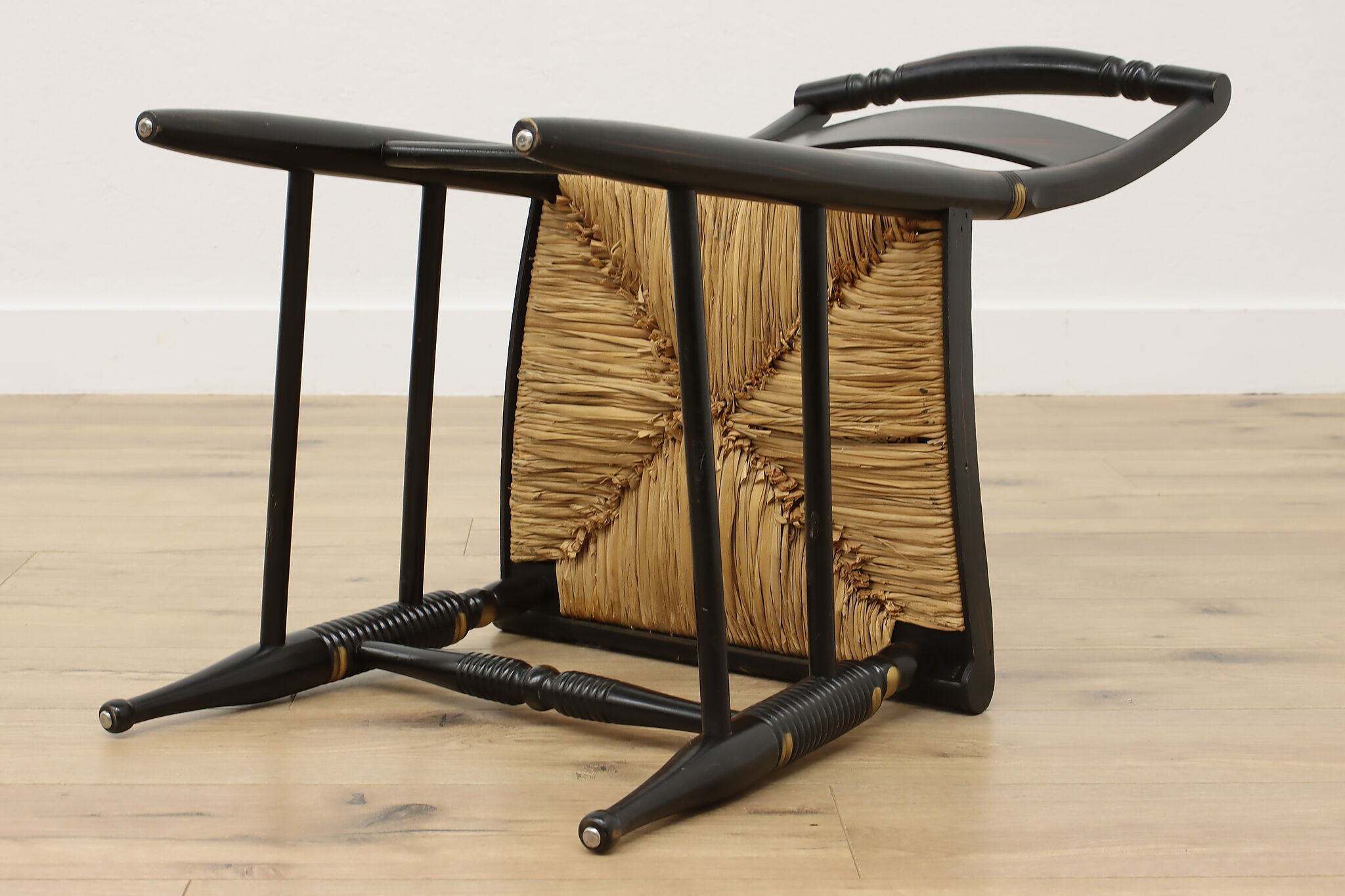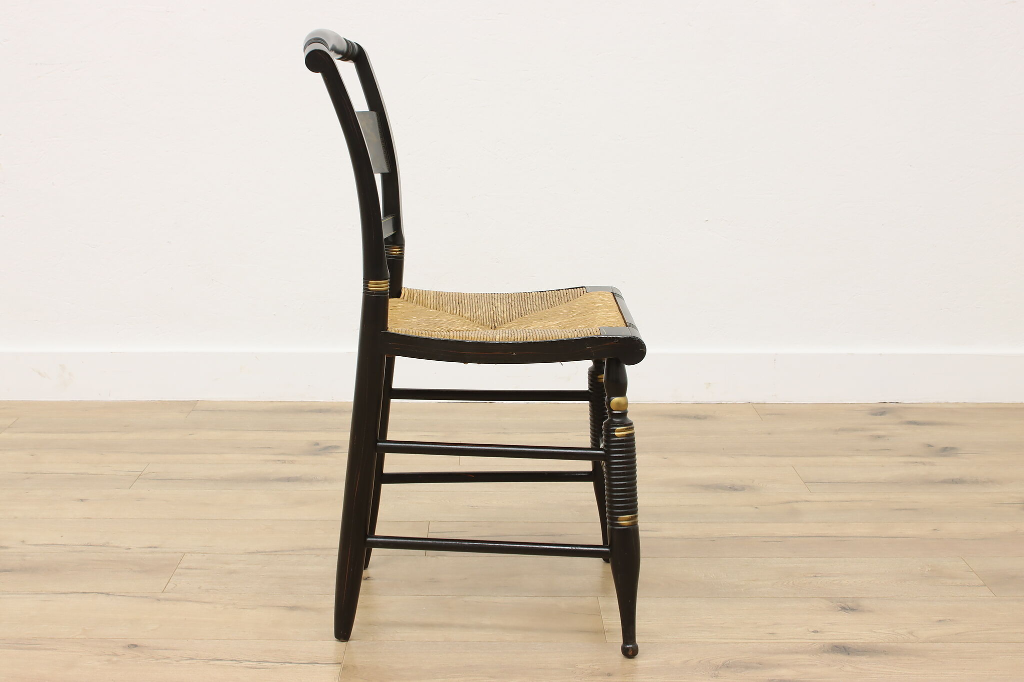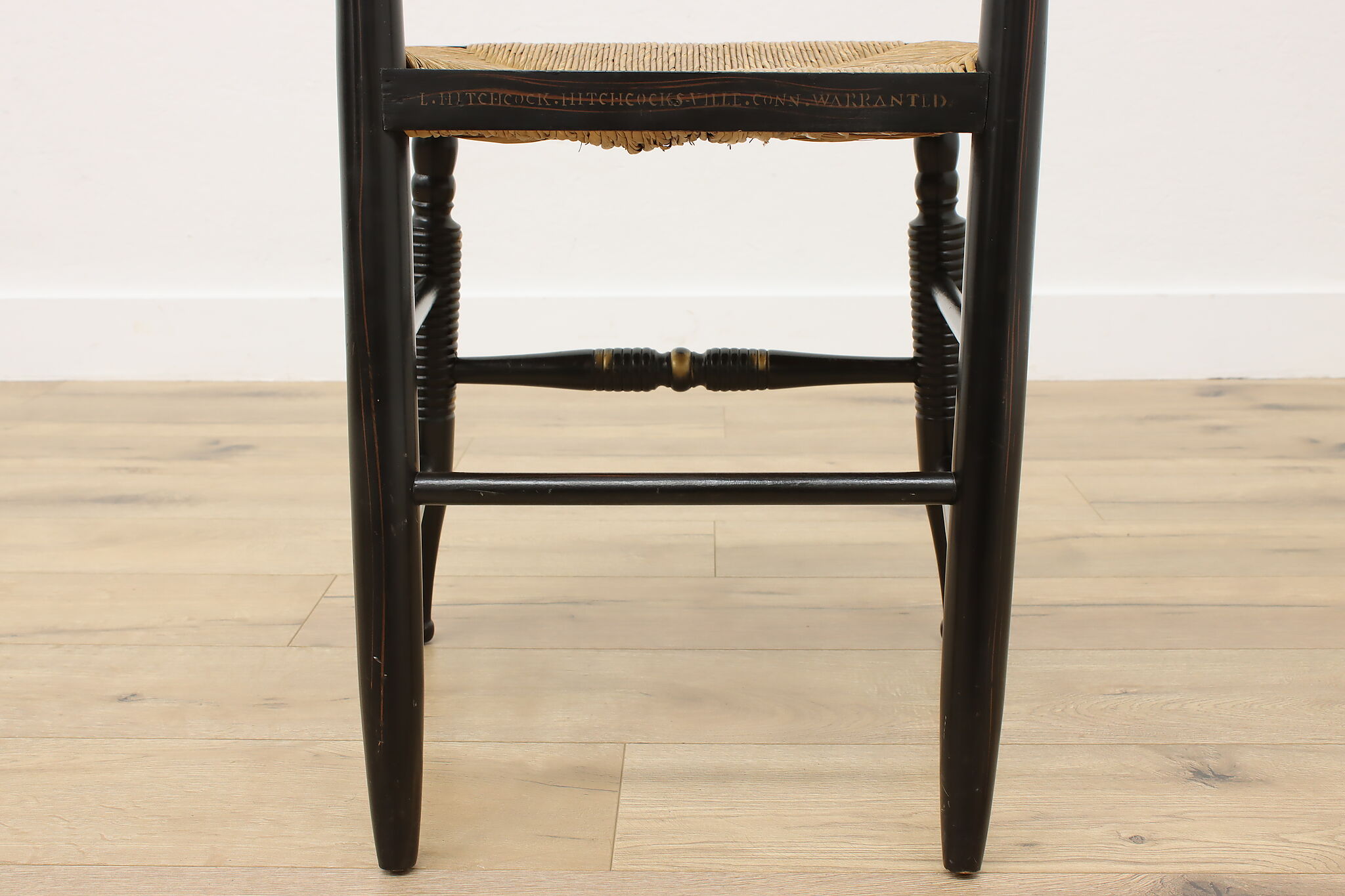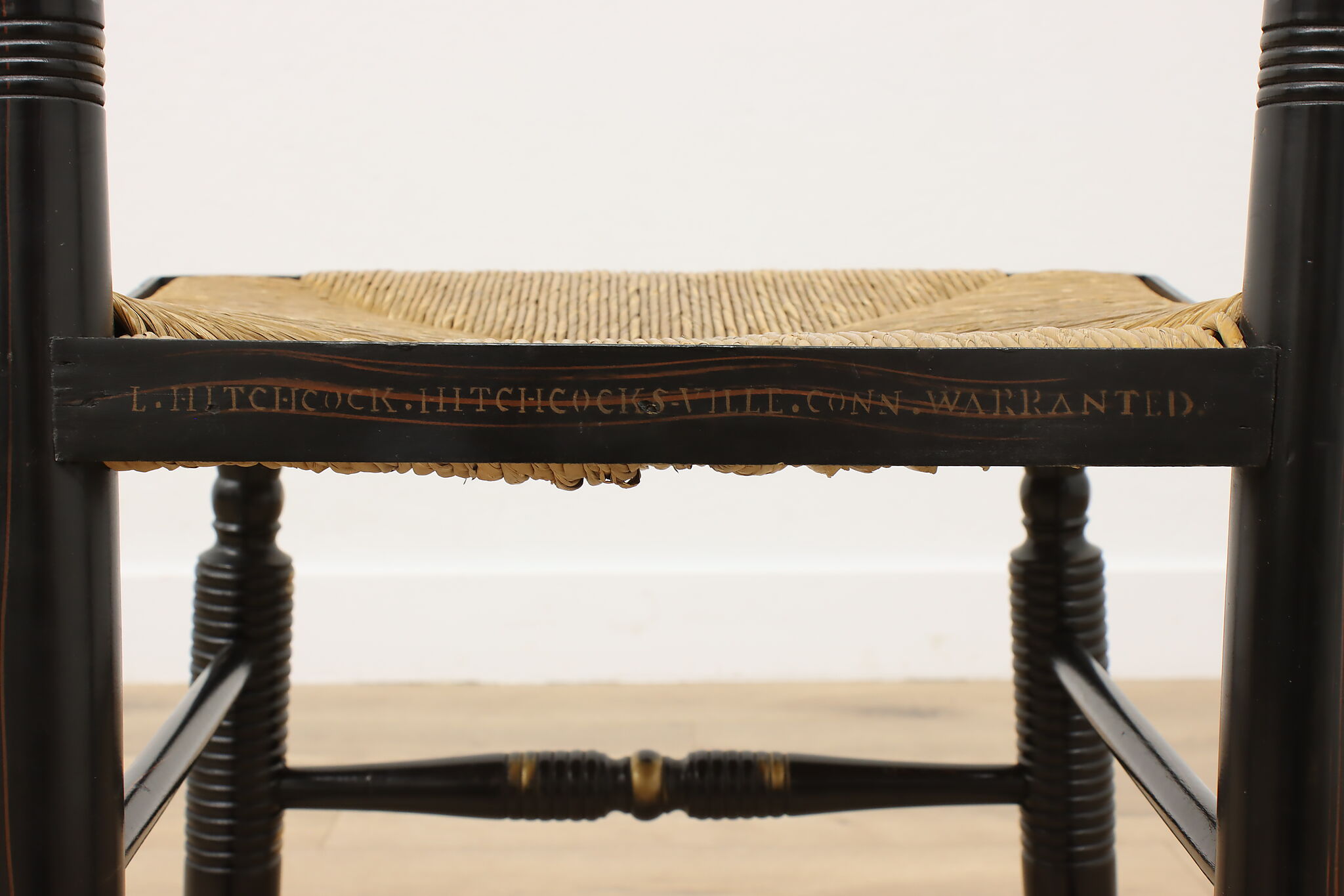 A fantastic Hitchcock side or desk chair has charmingly painted fruit motifs.