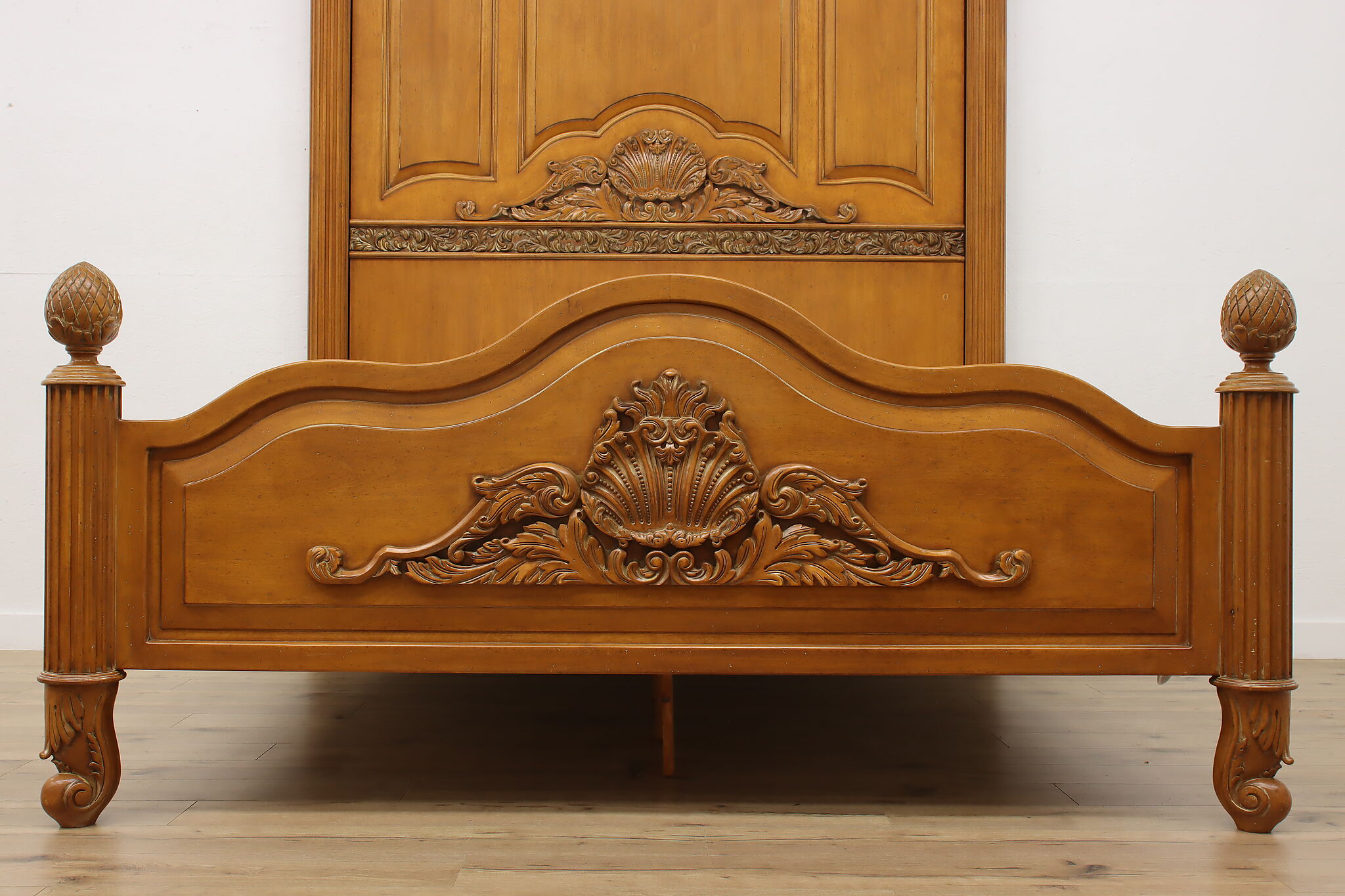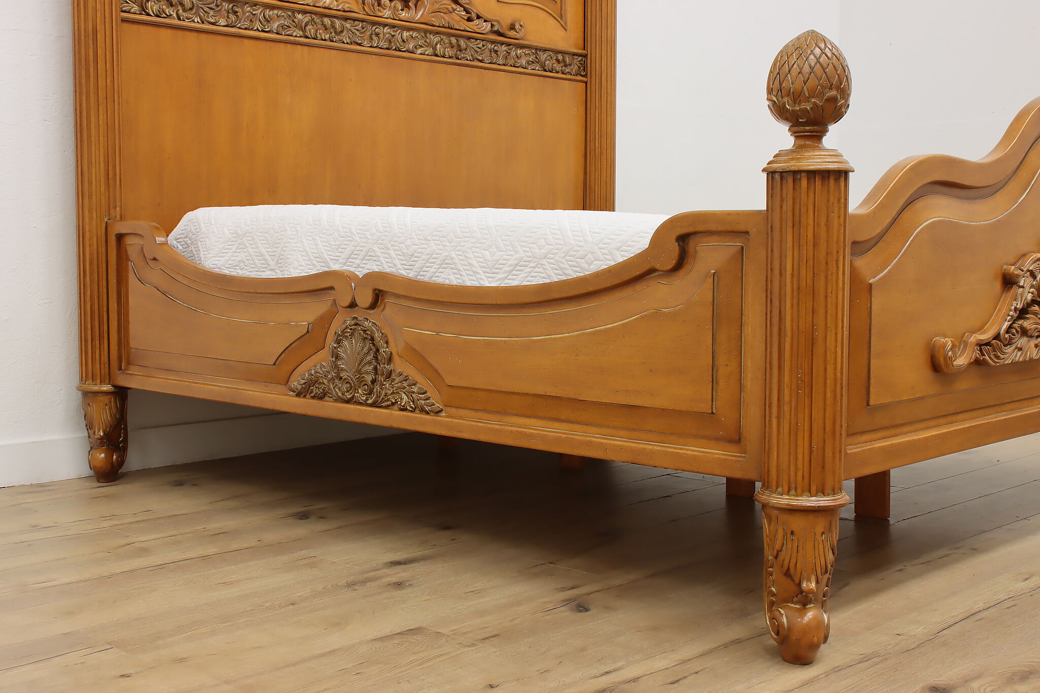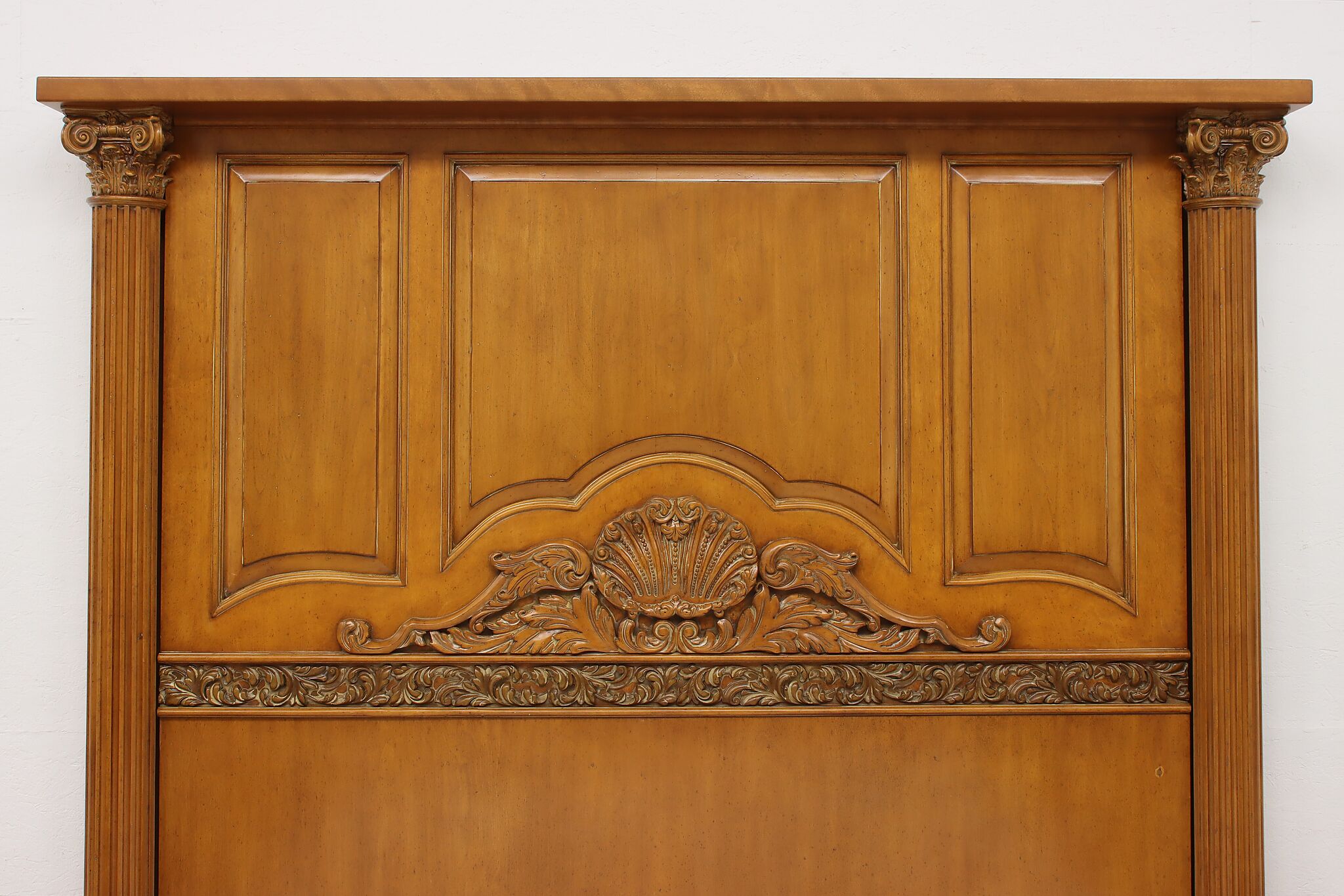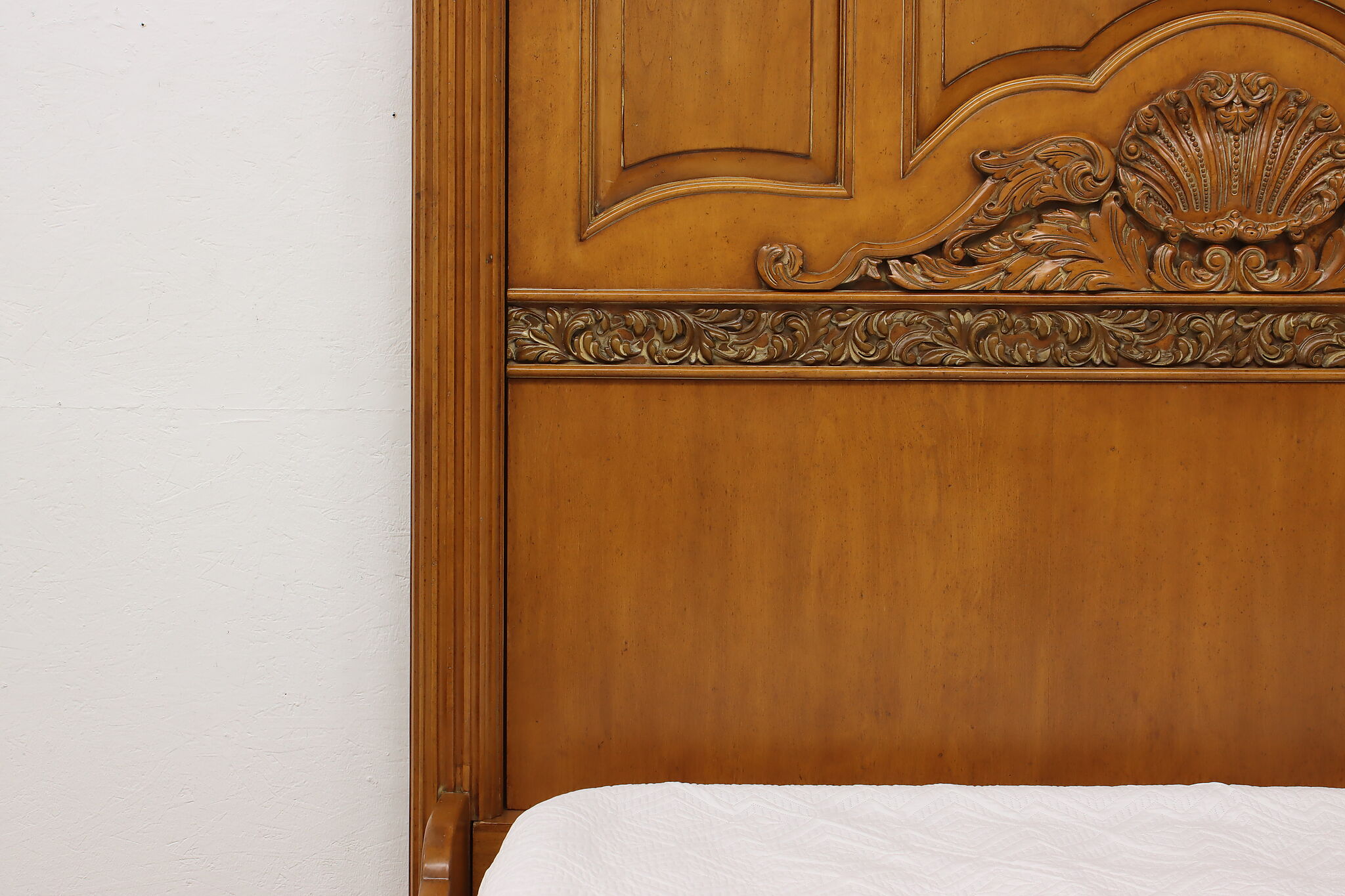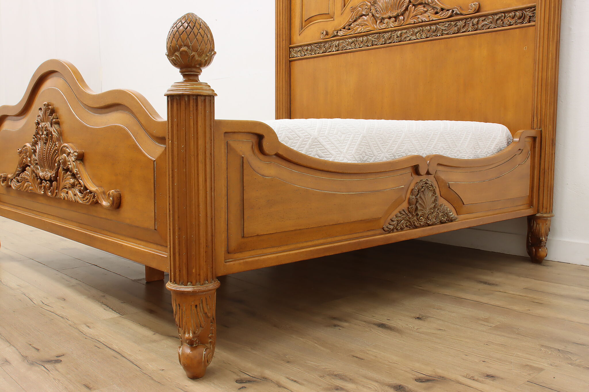 This monumental king size bed was designed by famous Hollywood Regency designer, Phyllis Morris. Known for her extravagant parties and celebrity guests, Morris also loved to drive her pink Cadillac around town with her pink poodles and pink mink coat.