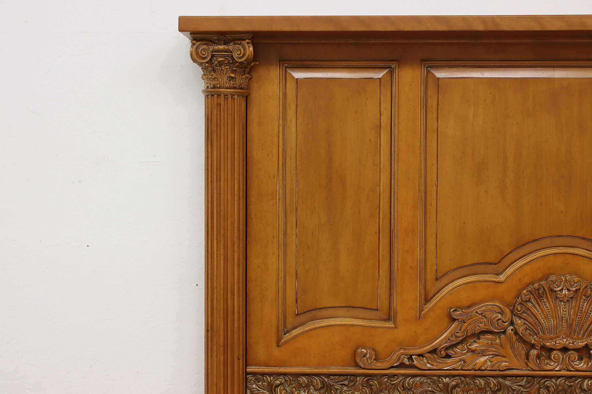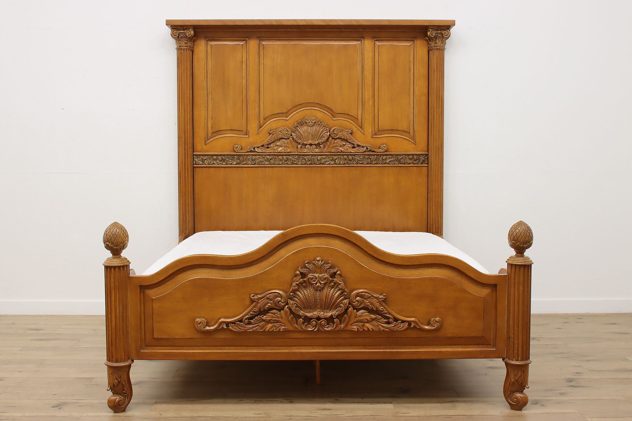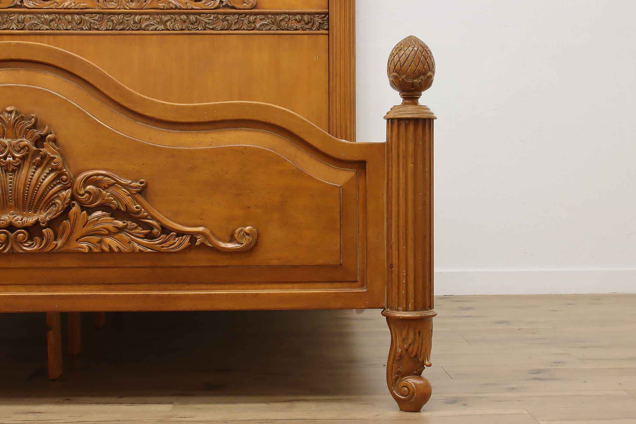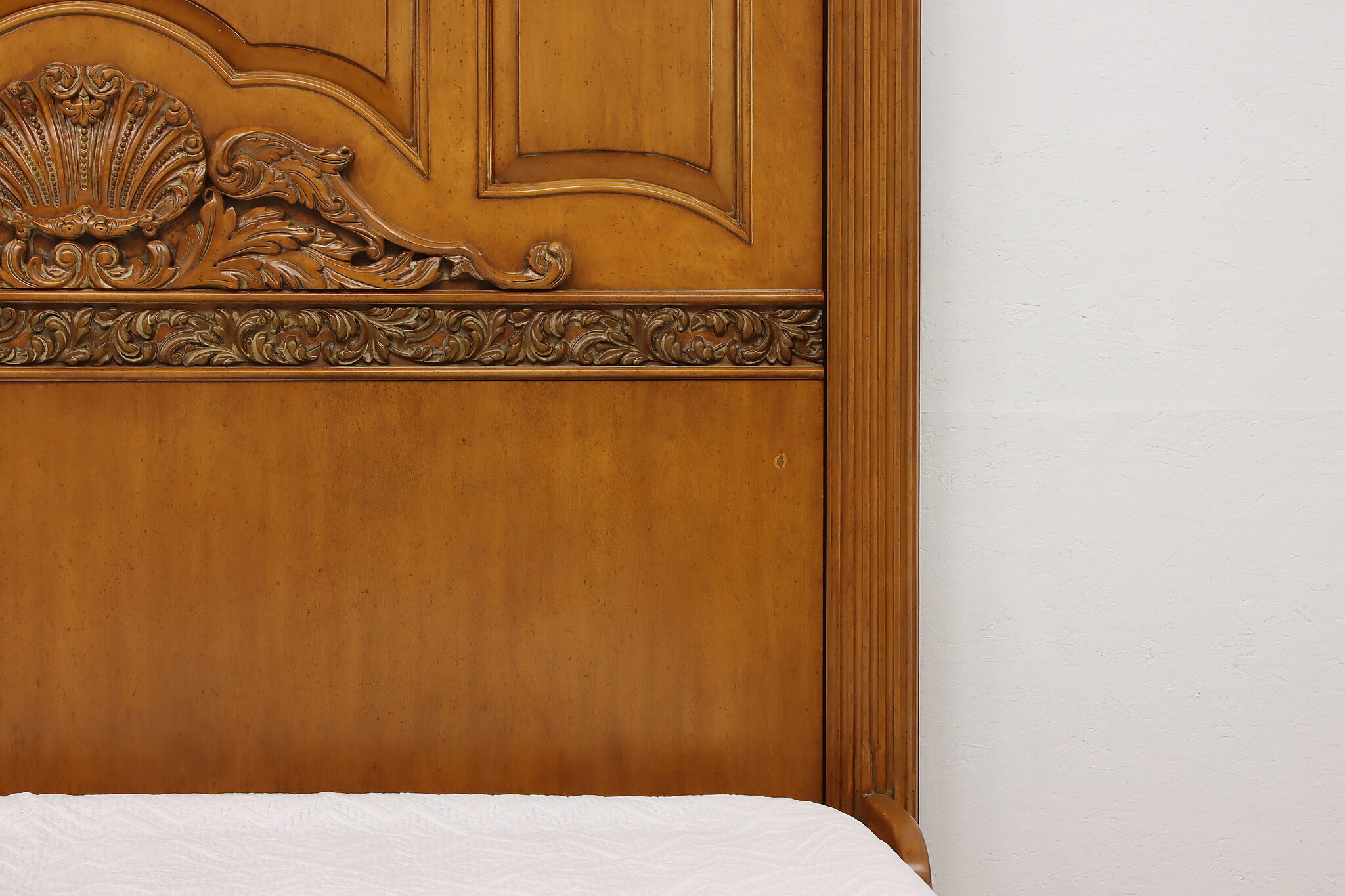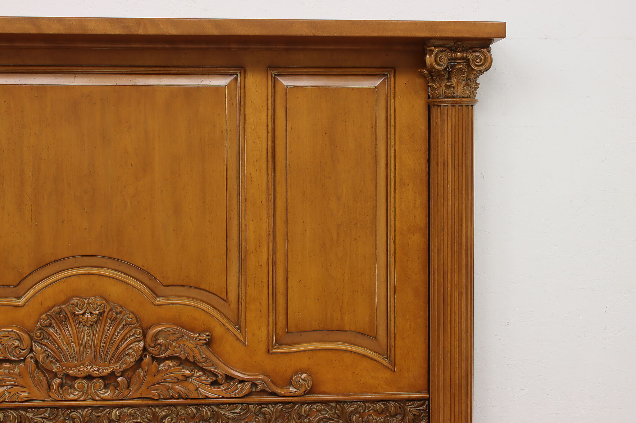 This monumental king size bed was designed by famous Hollywood Regency designer, Phyllis Morris. Known for her extravagant parties and celebrity guests, Morris also loved to drive her pink Cadillac around town with her pink poodles and pink mink coat.