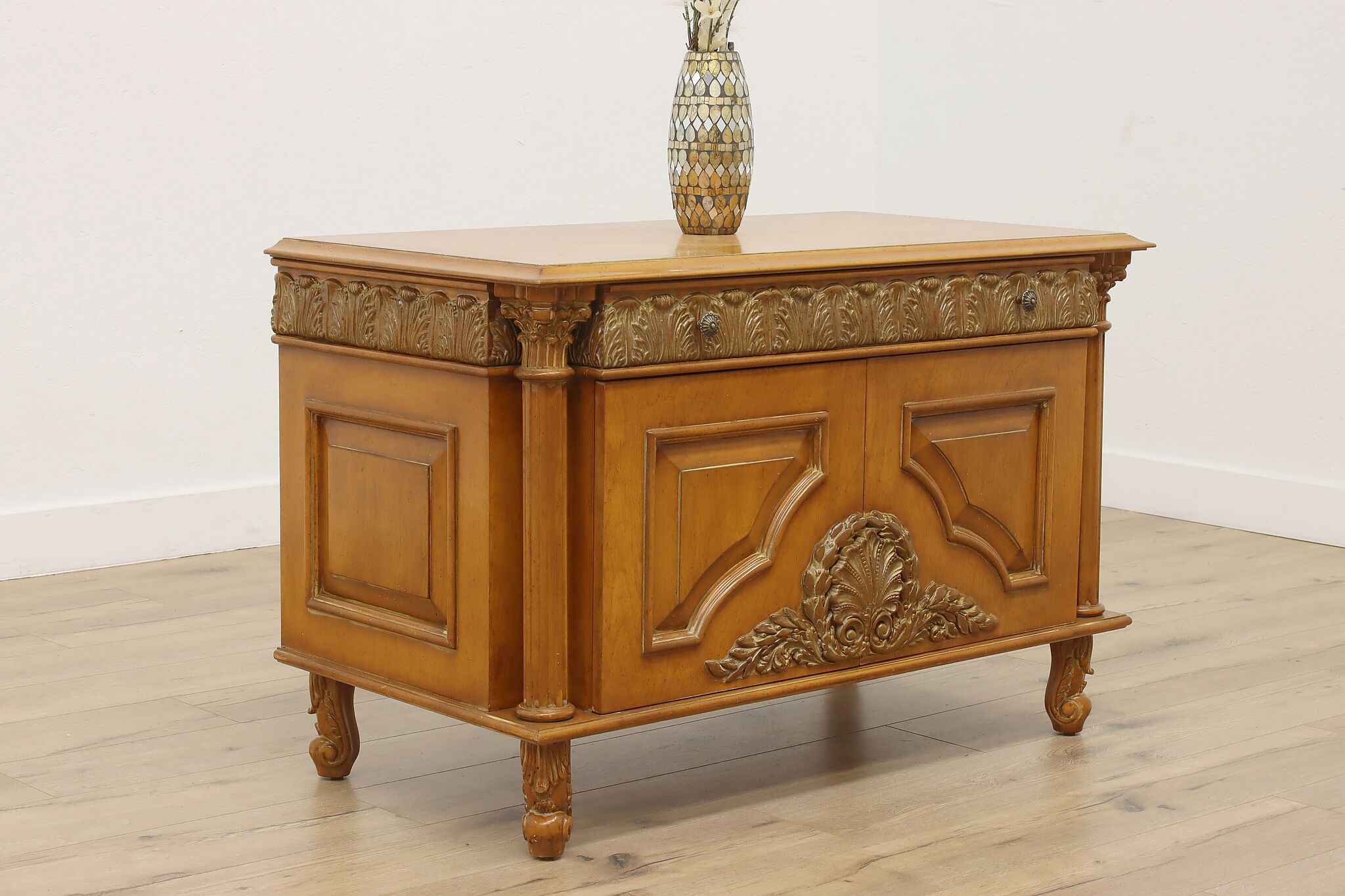 This large nightstand was designed after famous Hollywood designer, Phyllis Morris, known for driving around in her pink Cadillac with pink-dyed poodles!