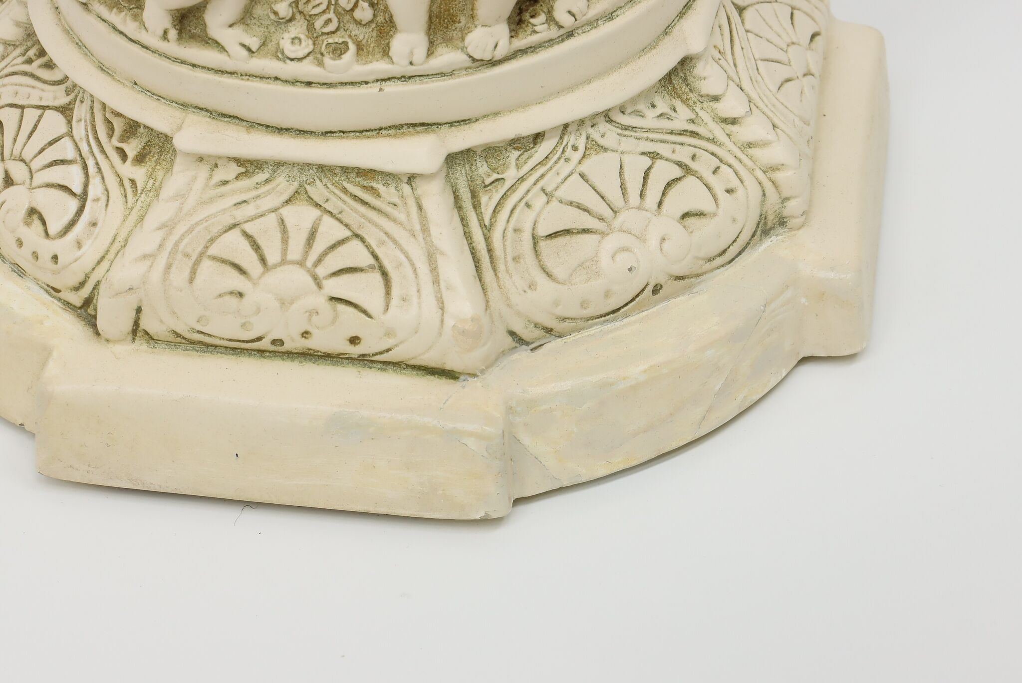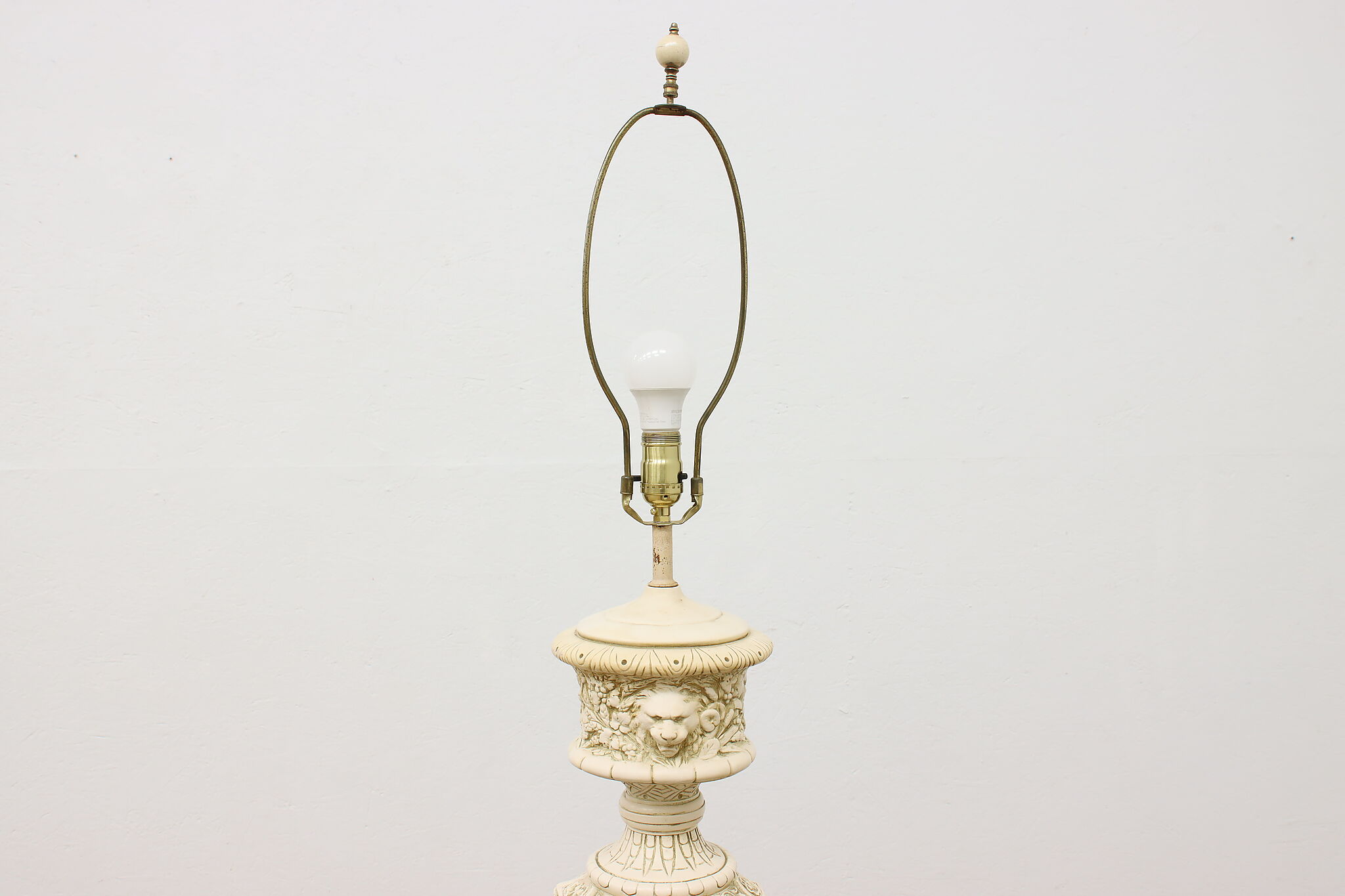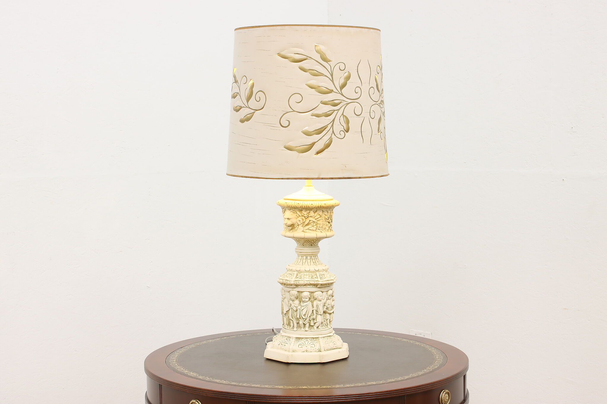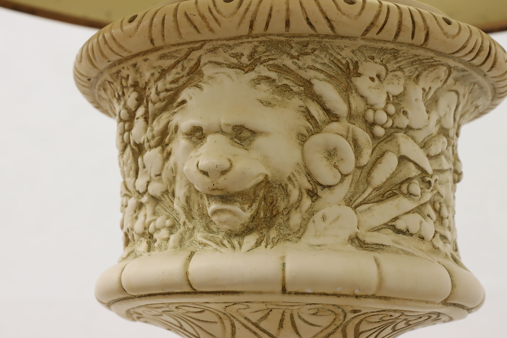 A Hollywood Regency table or desk lamp has beautiful cherub figures with lion head motifs.