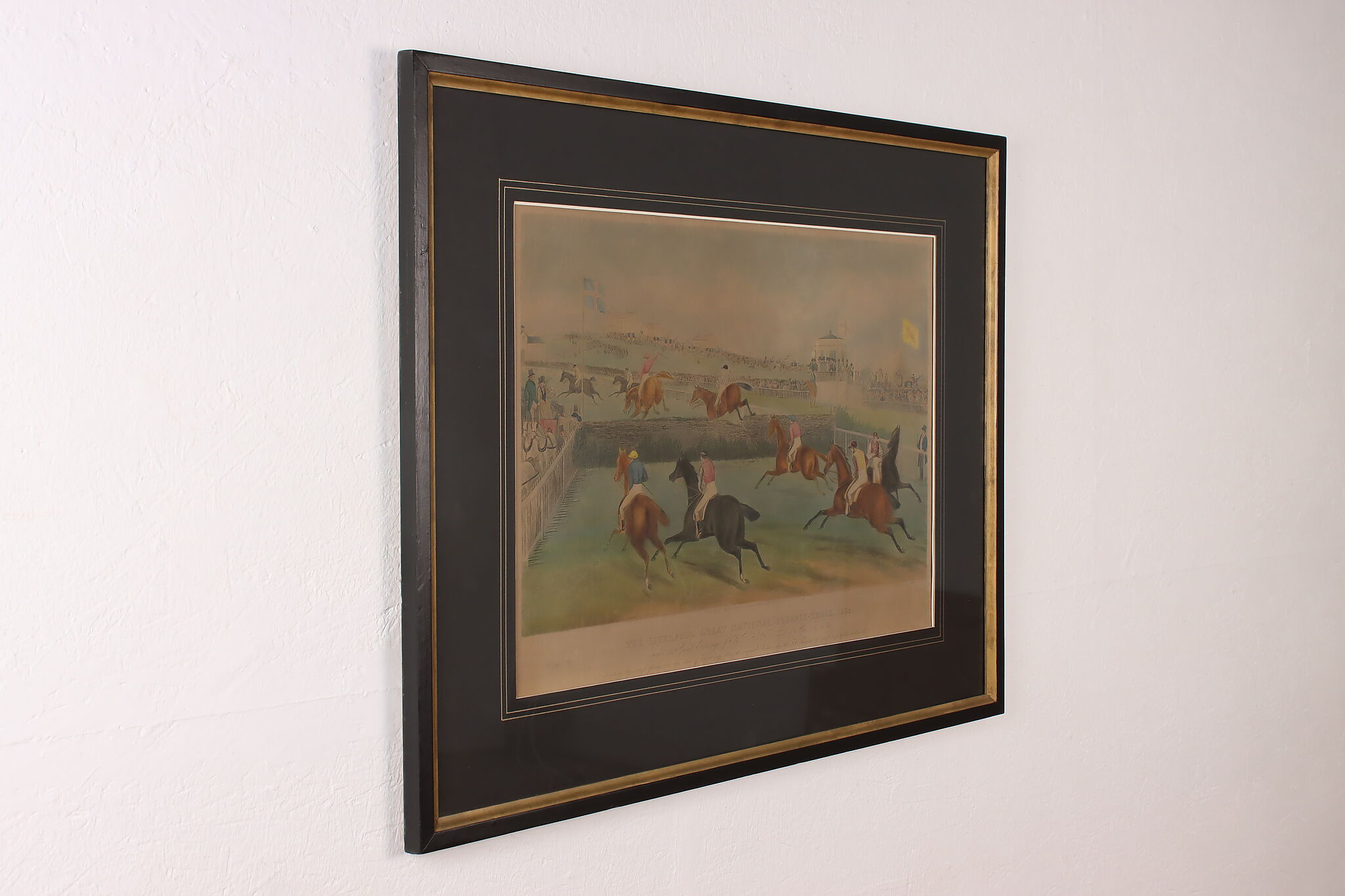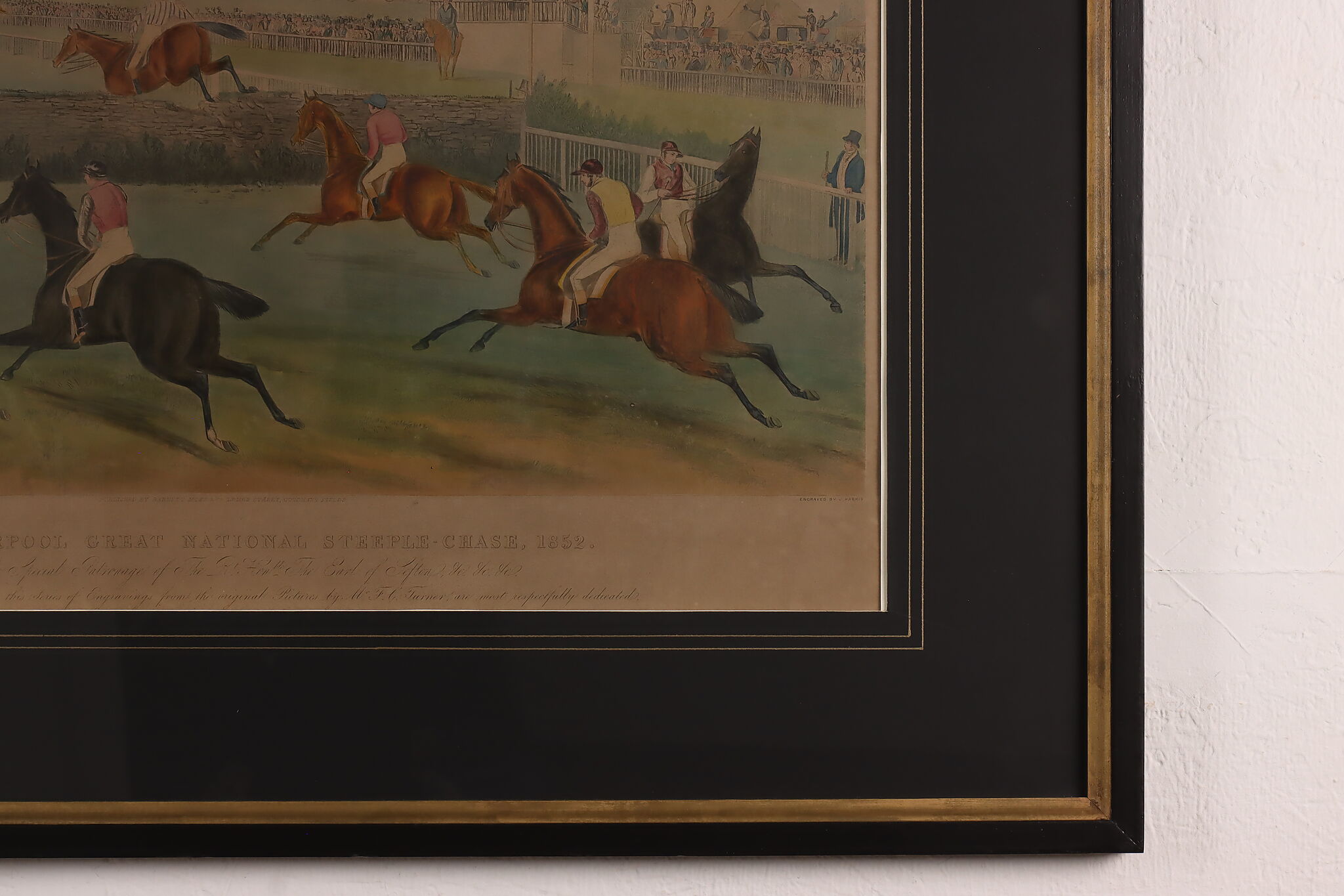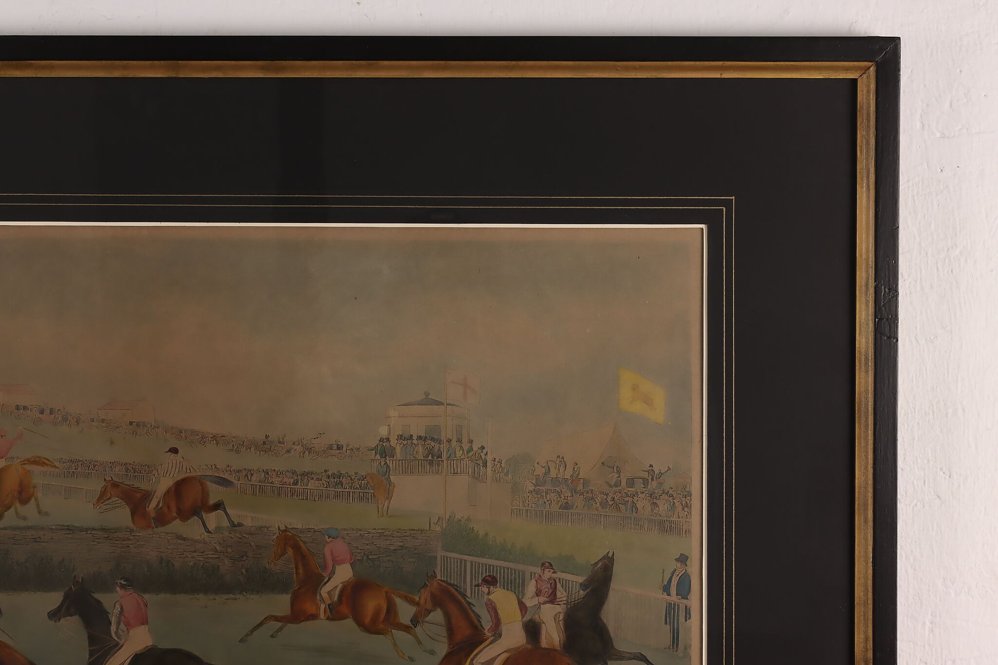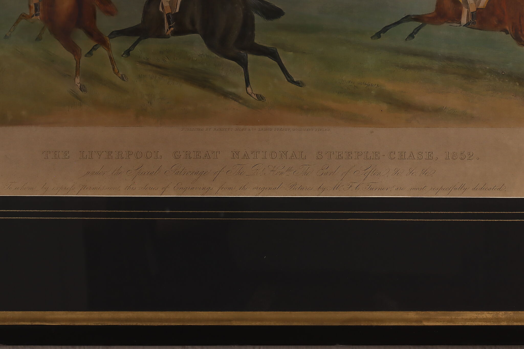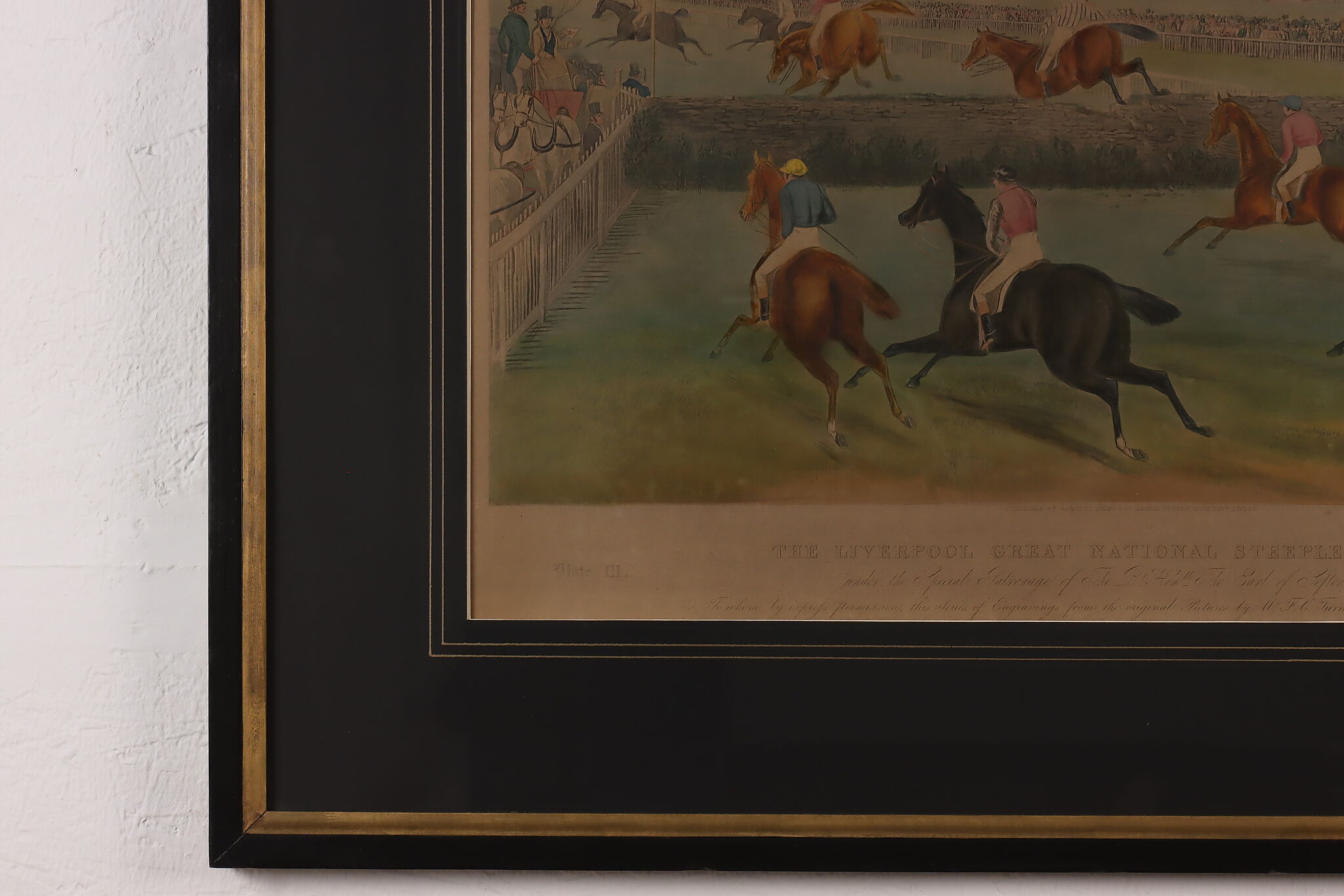 This engraving is plate three of Francis Calcraft Turner's original "The Liverpool Great National Steeple Chase" series of four paintings. Turner was known for his realistic animal and sport paintings.