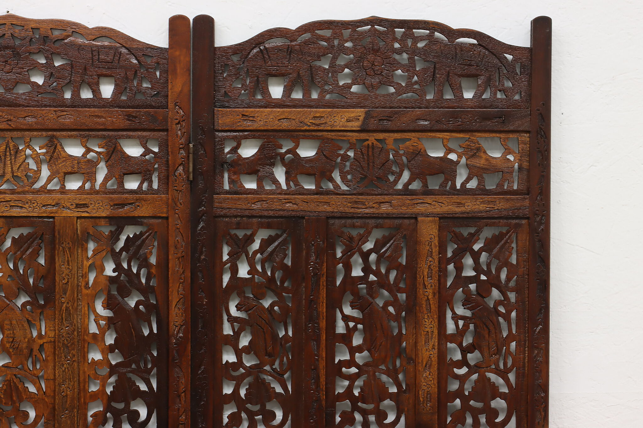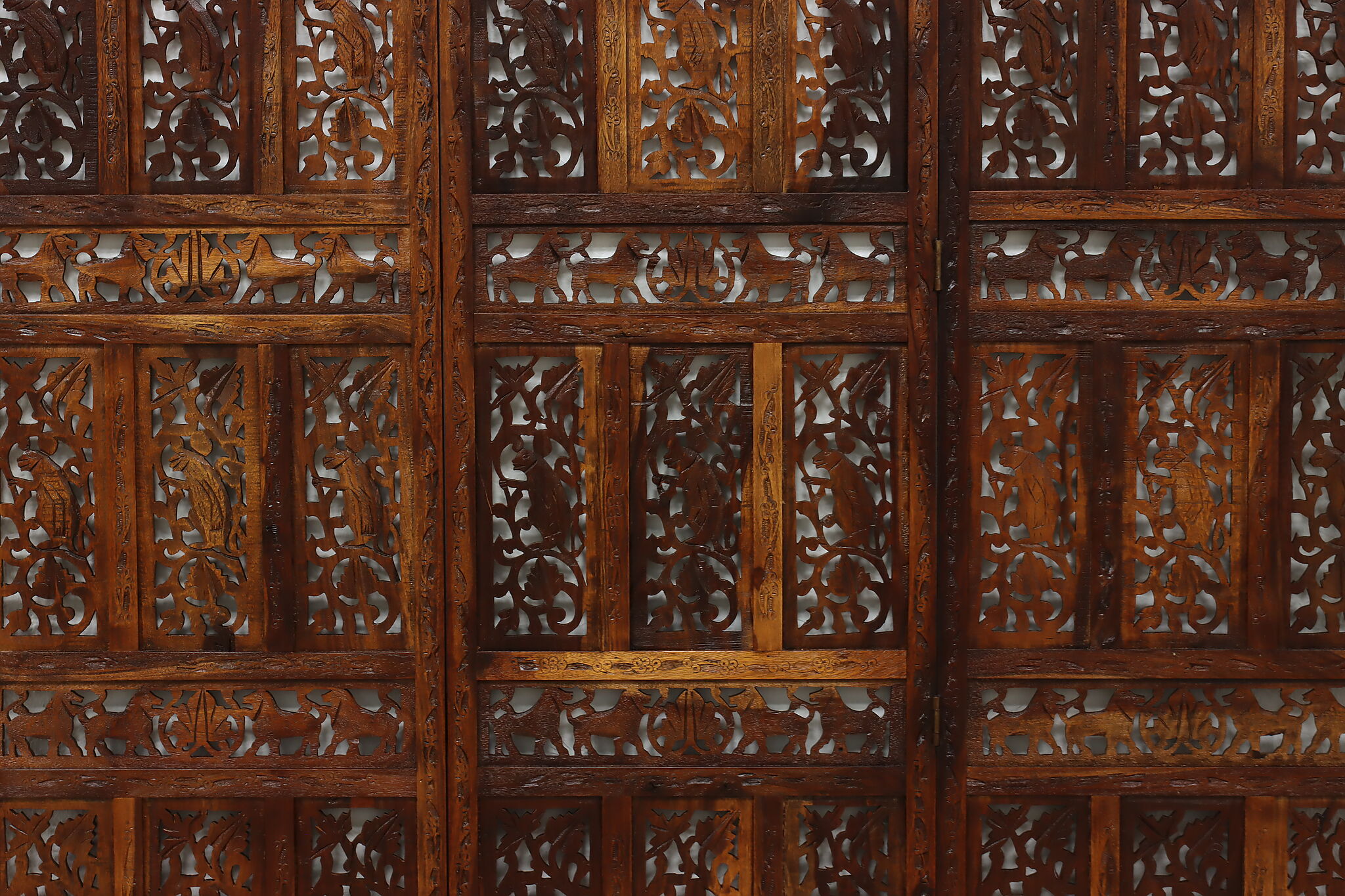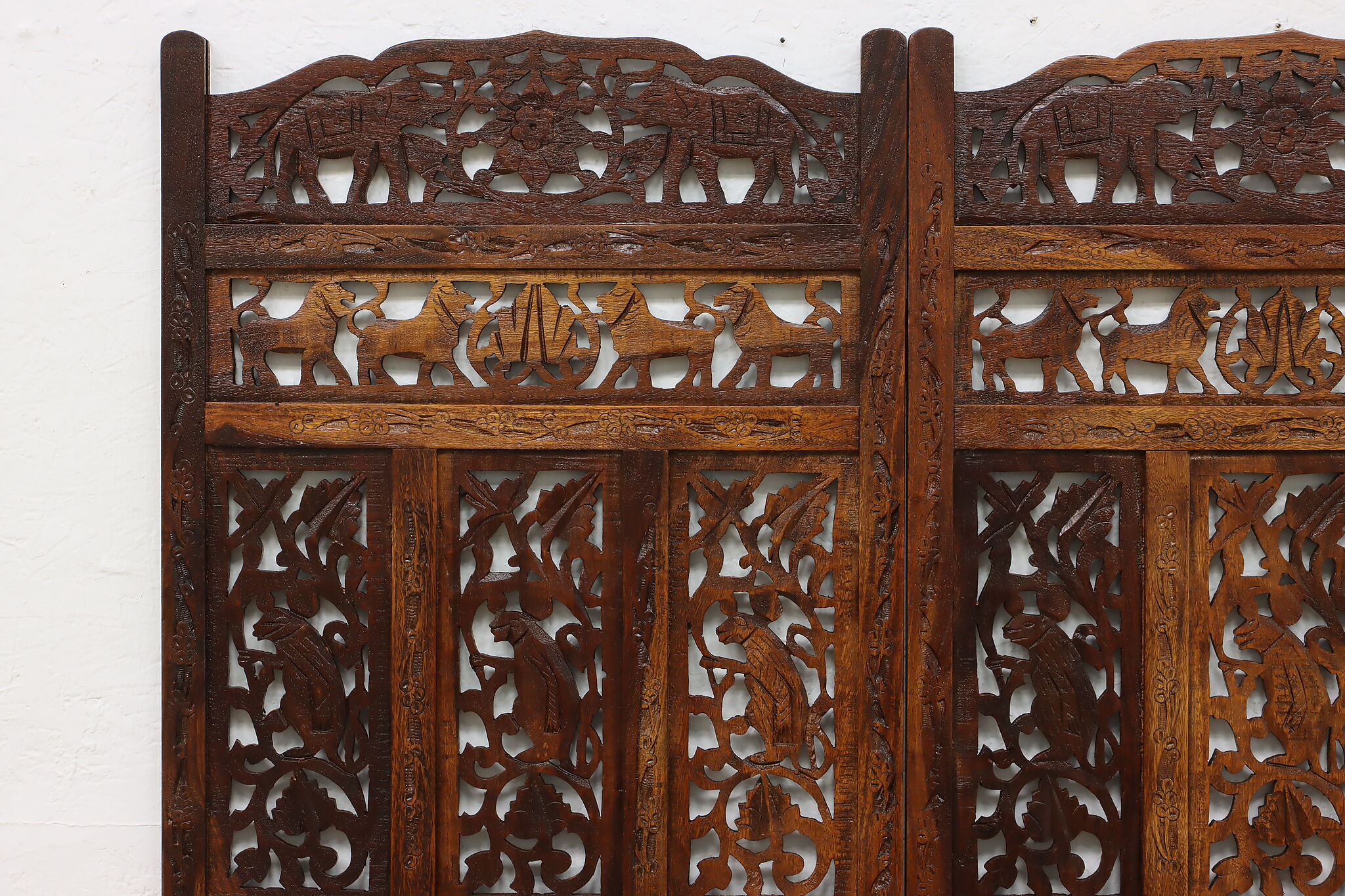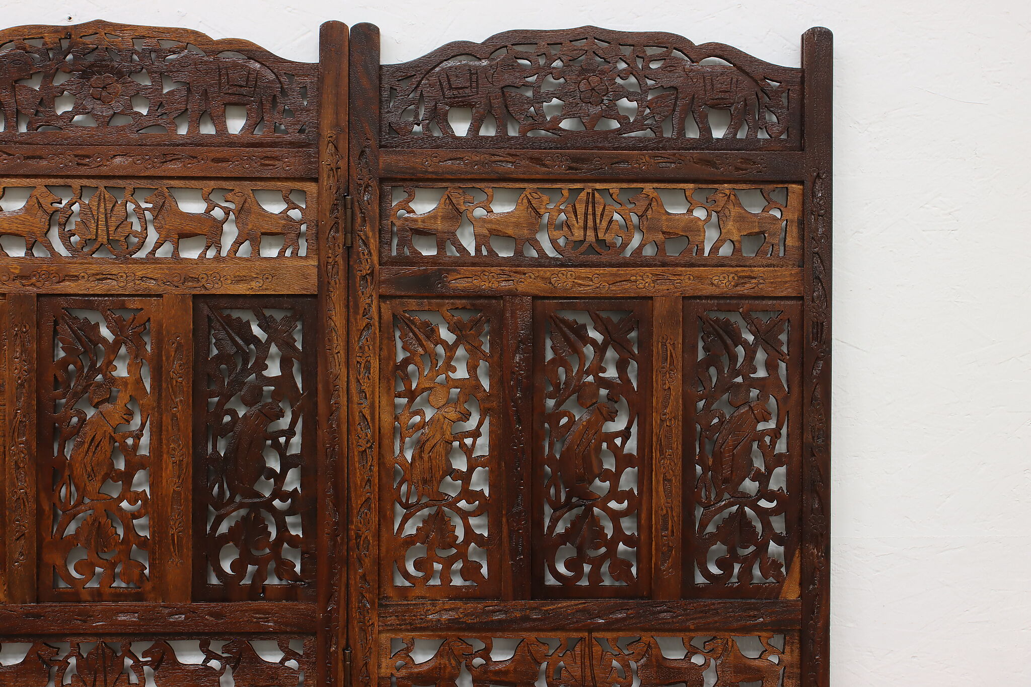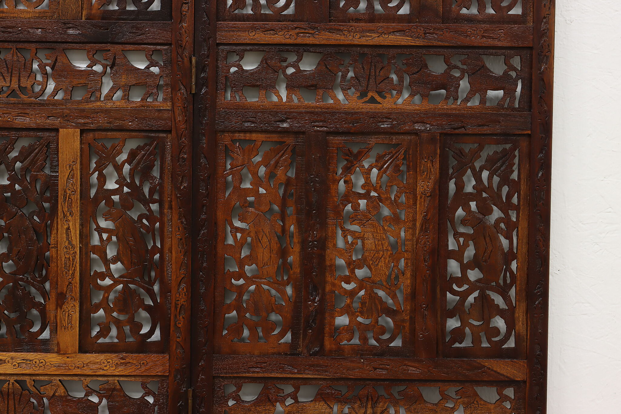 Divide a living space or create a private area in your home with this folding screen from India! The hand carved and pierced elephants, lions, and monkeys make it a perfect gift for a nature enthusiast.