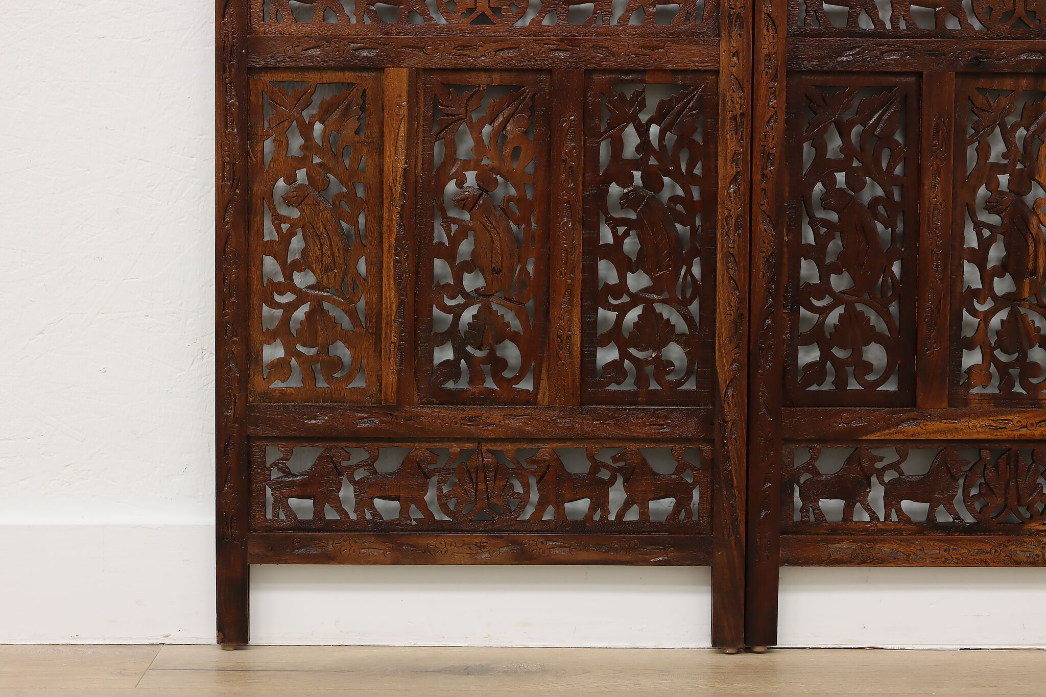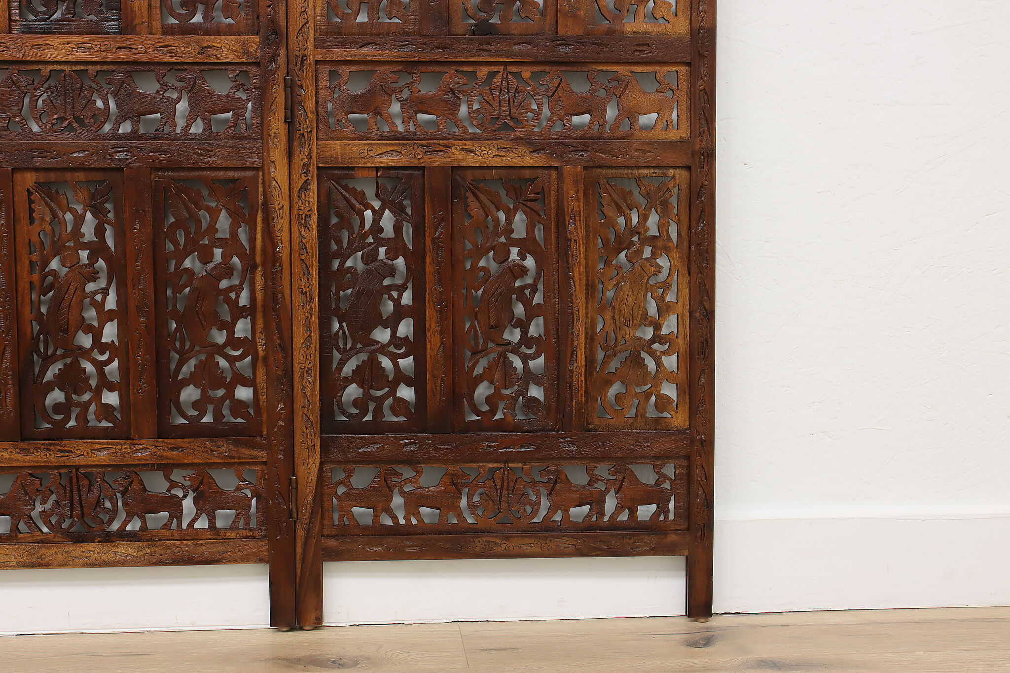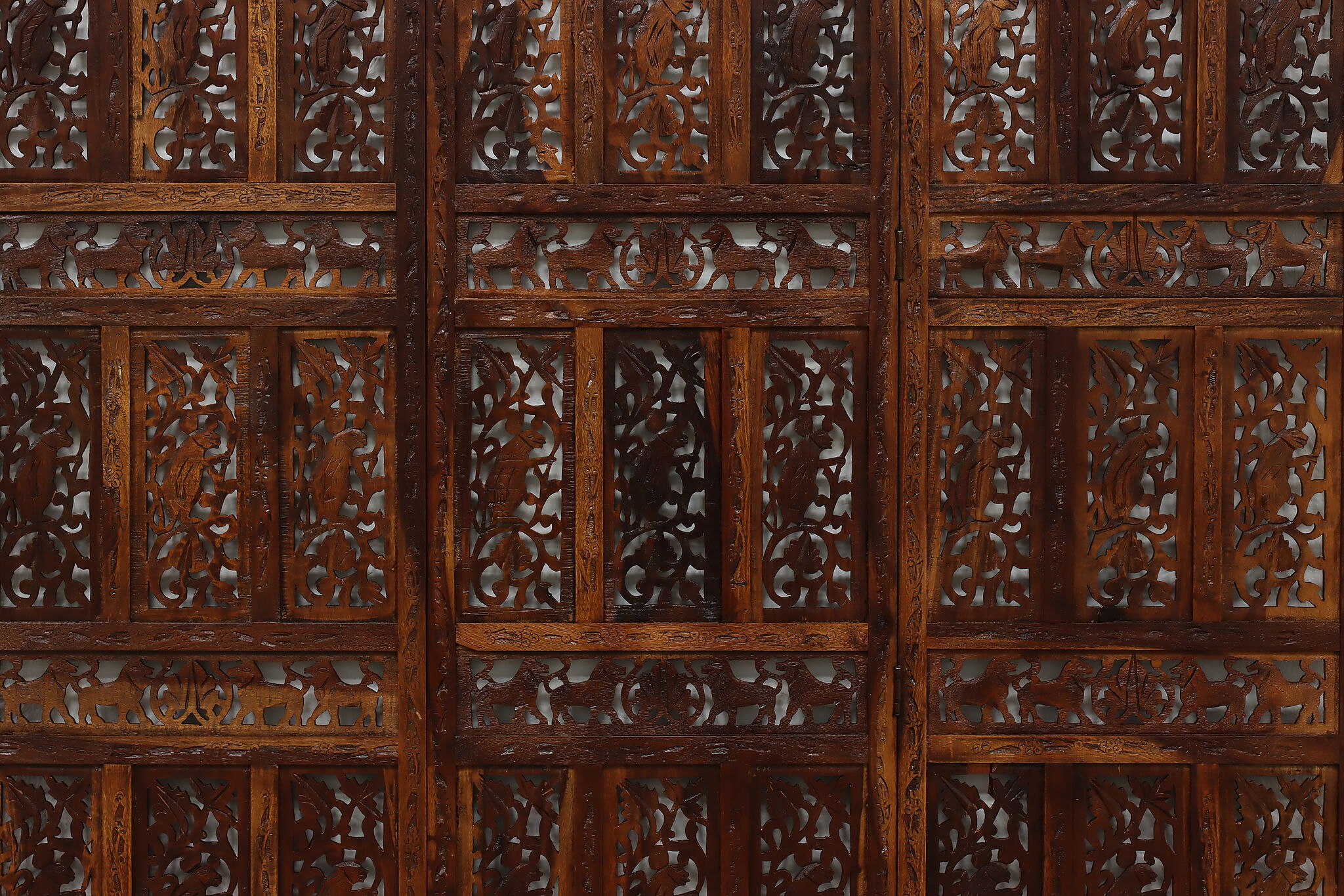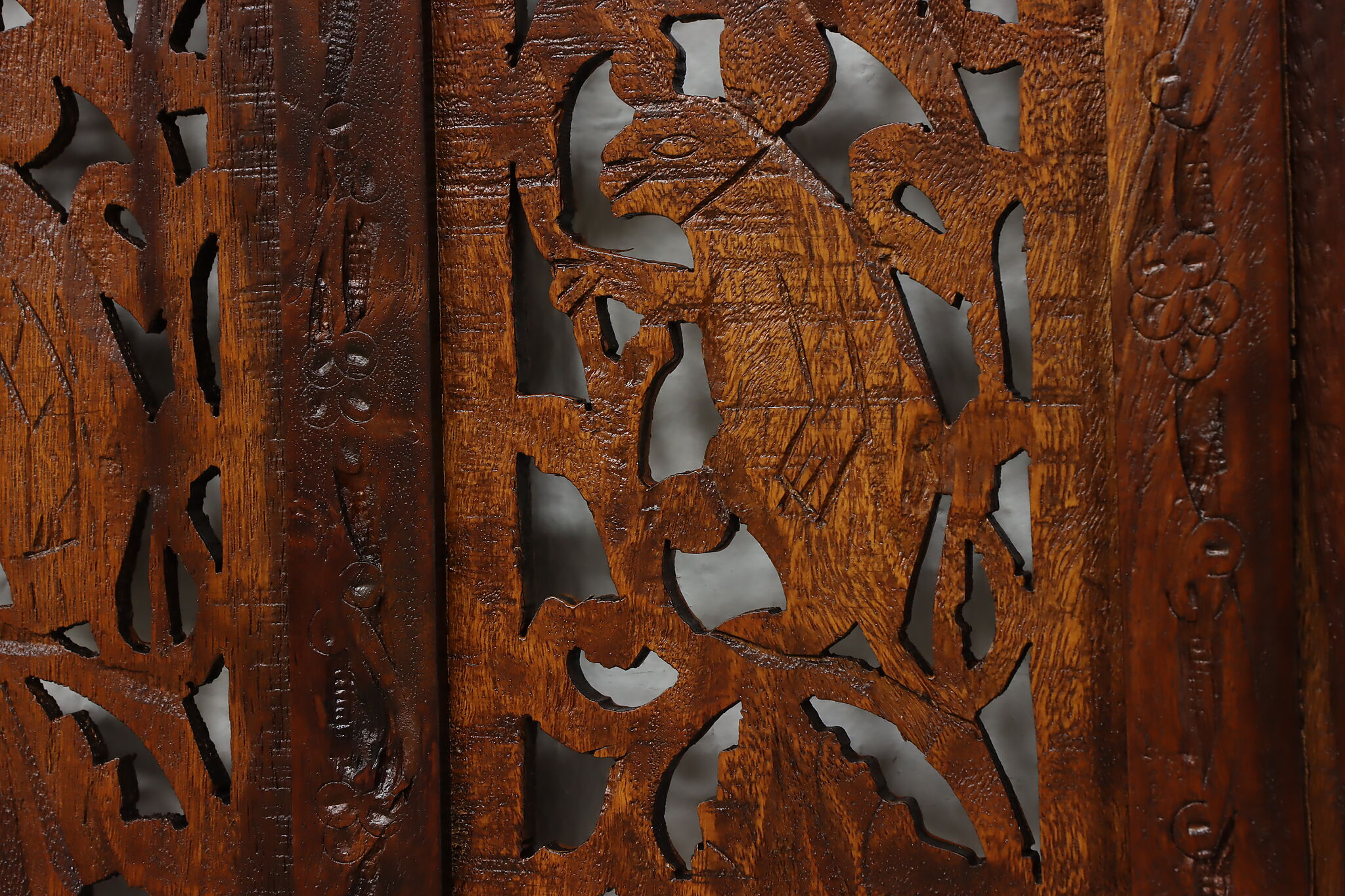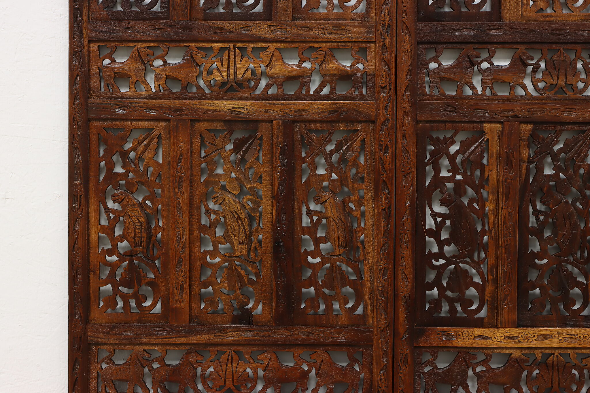 Divide a living space or create a private area in your home with this folding screen from India! The hand carved and pierced elephants, lions, and monkeys make it a perfect gift for a nature enthusiast.