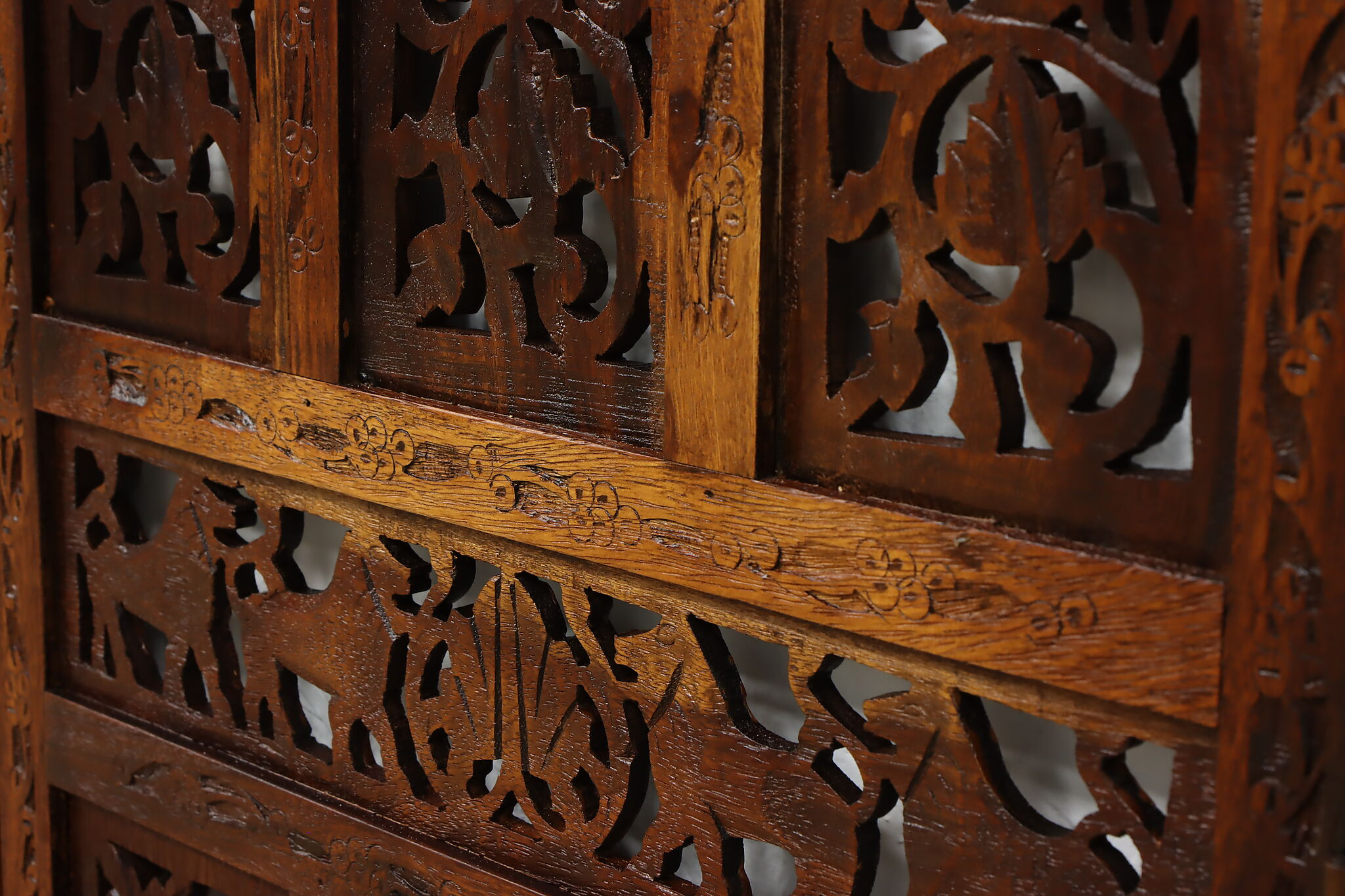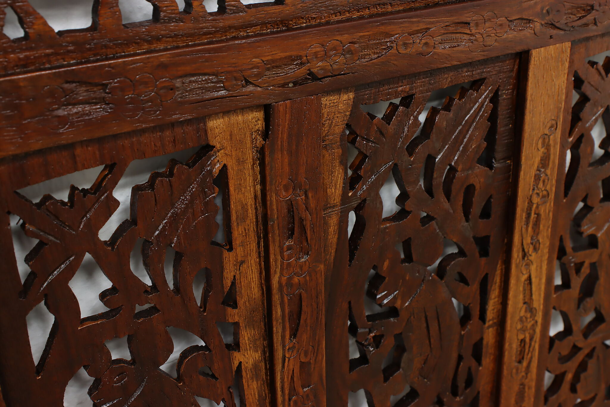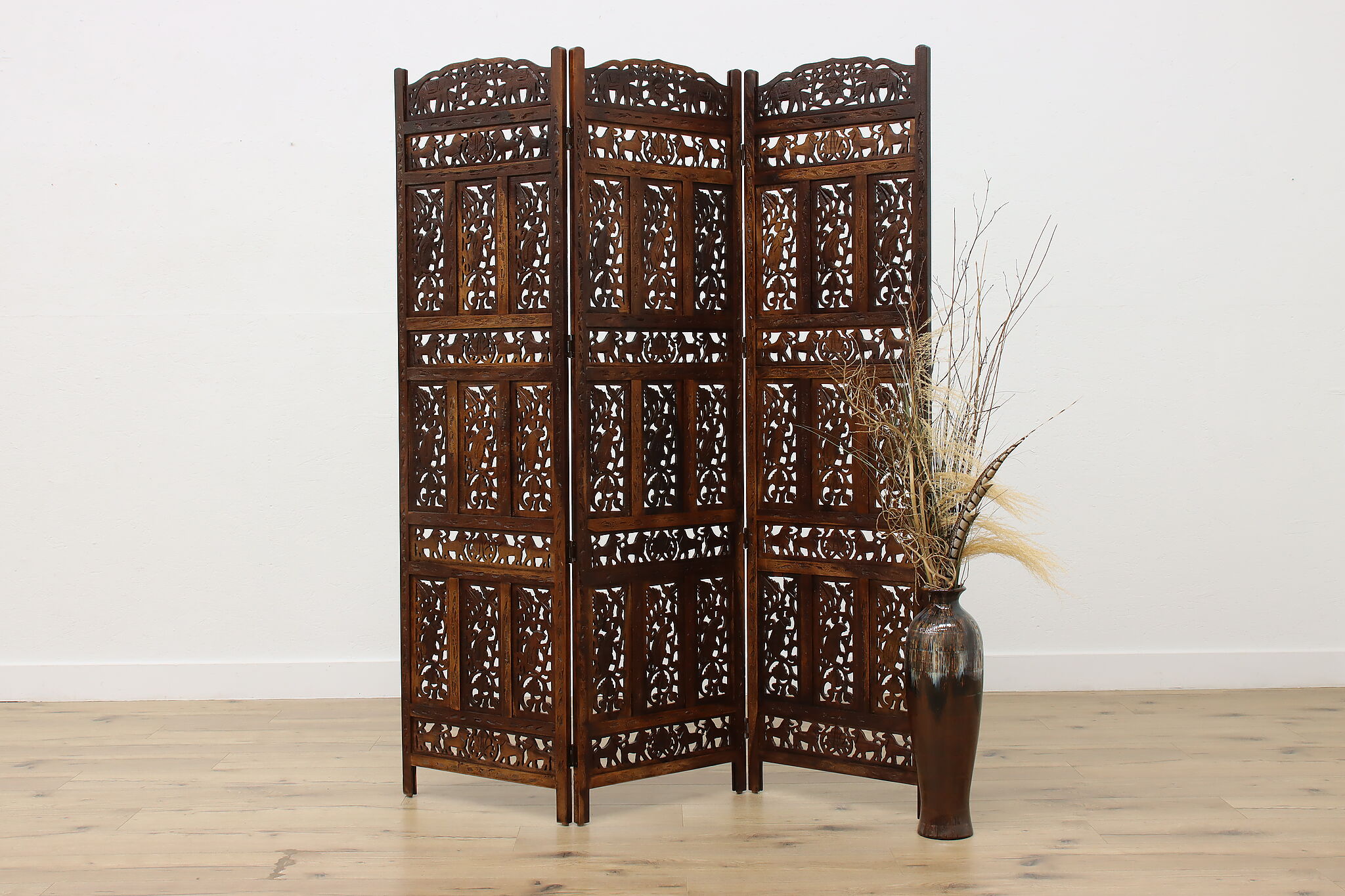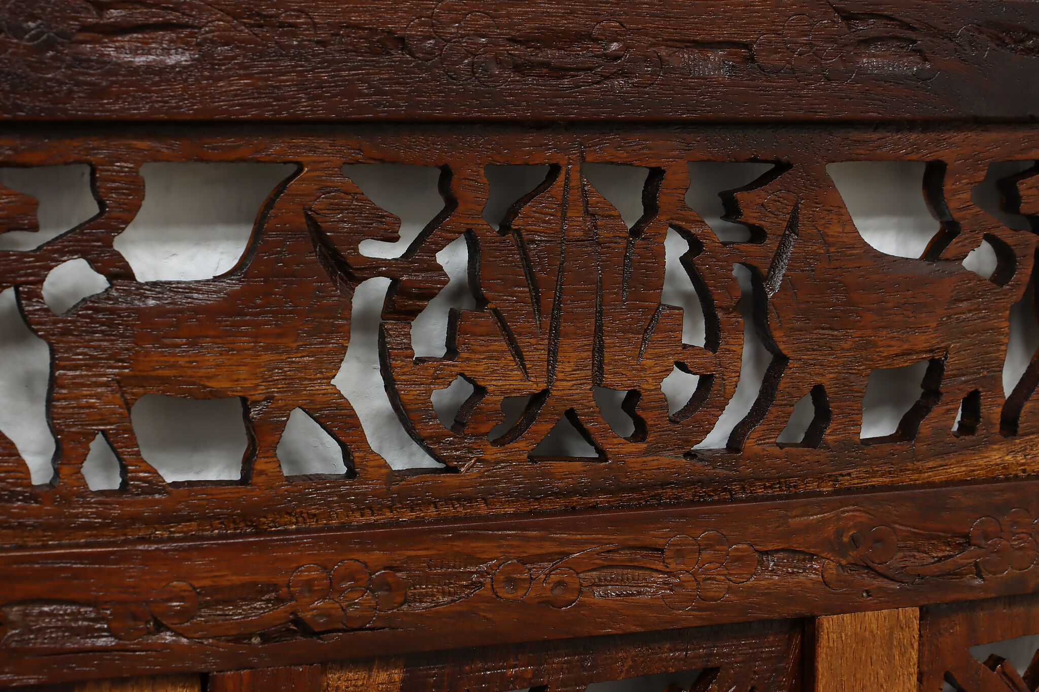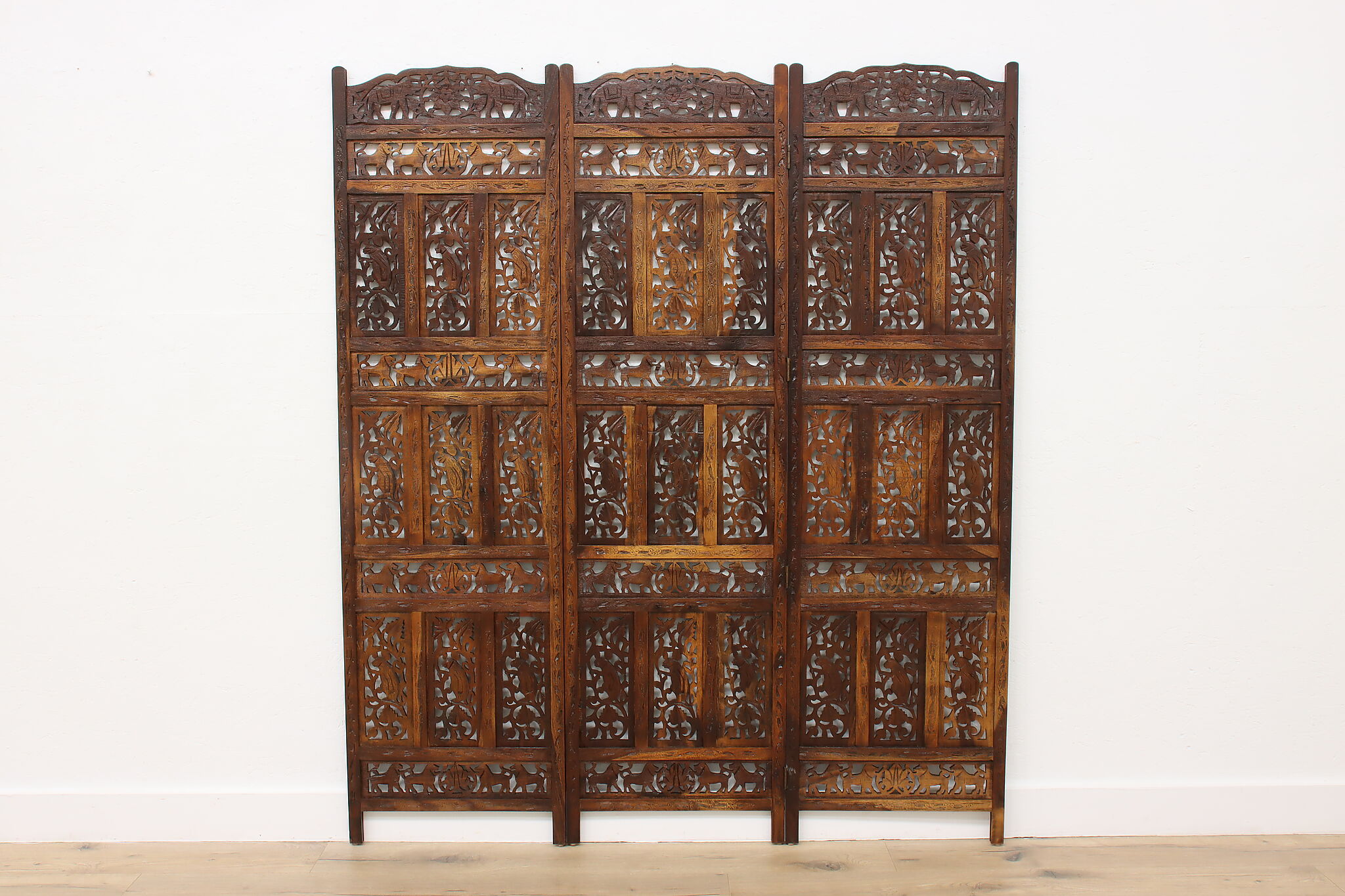 Divide a living space or create a private area in your home with this folding screen from India! The hand carved and pierced elephants, lions, and monkeys make it a perfect gift for a nature enthusiast.