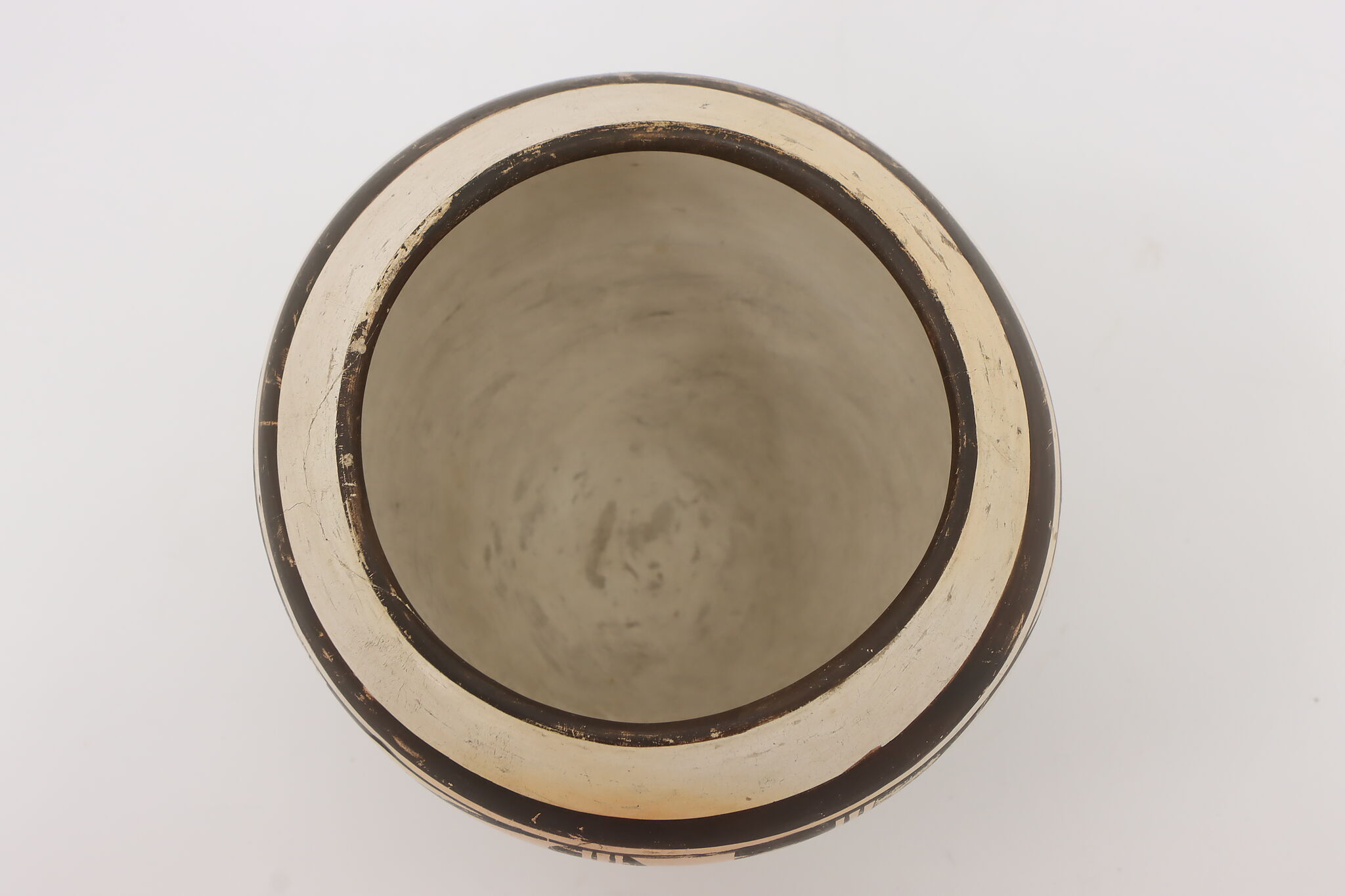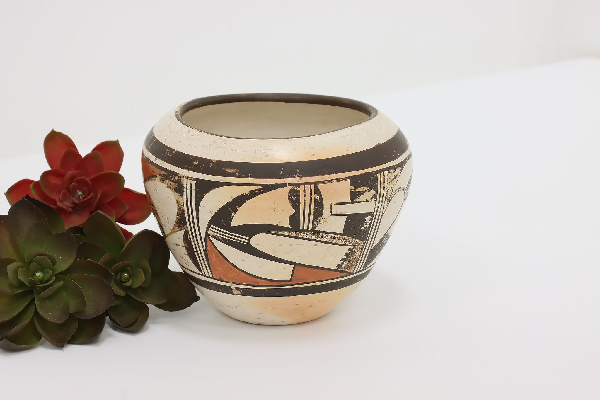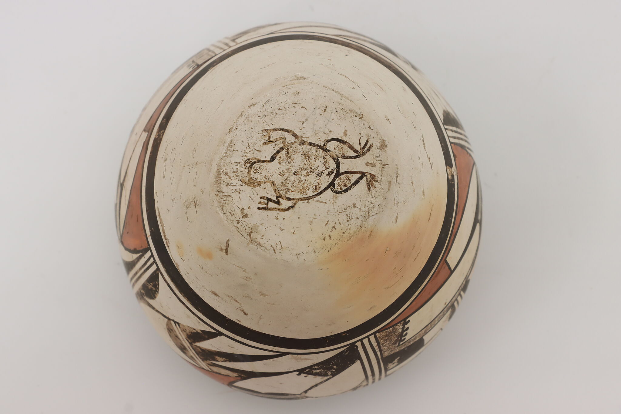 A wonderful handcrafted vase has a frog symbol on its base, which may be the signature of well-known Native American Hopi artist, Joy Navasie, known as the "Frogwoman."