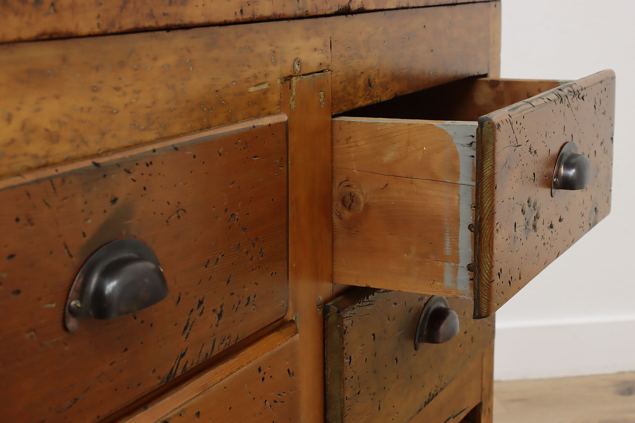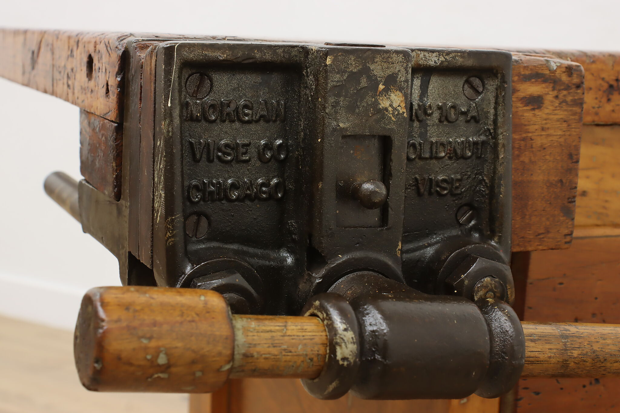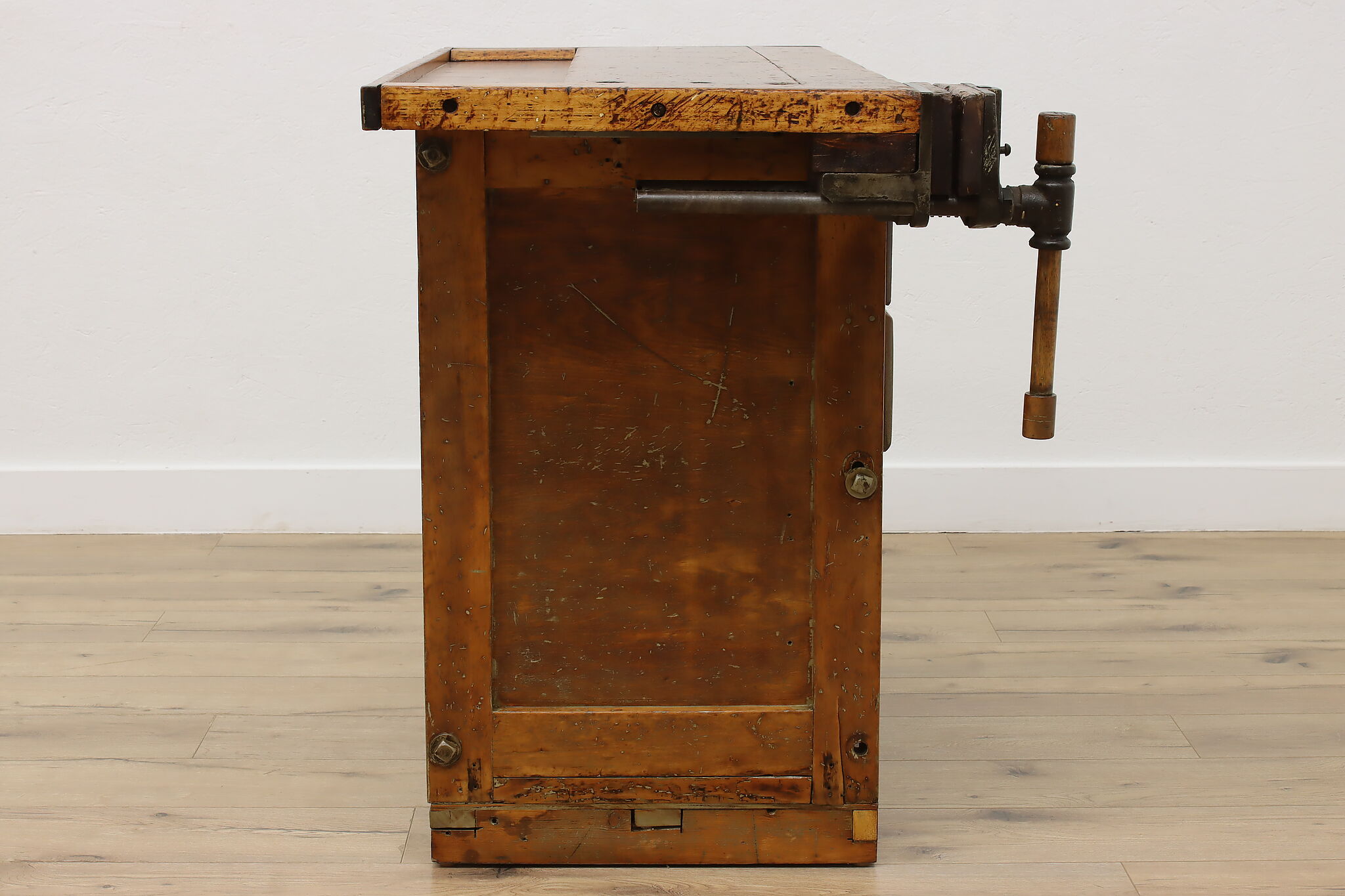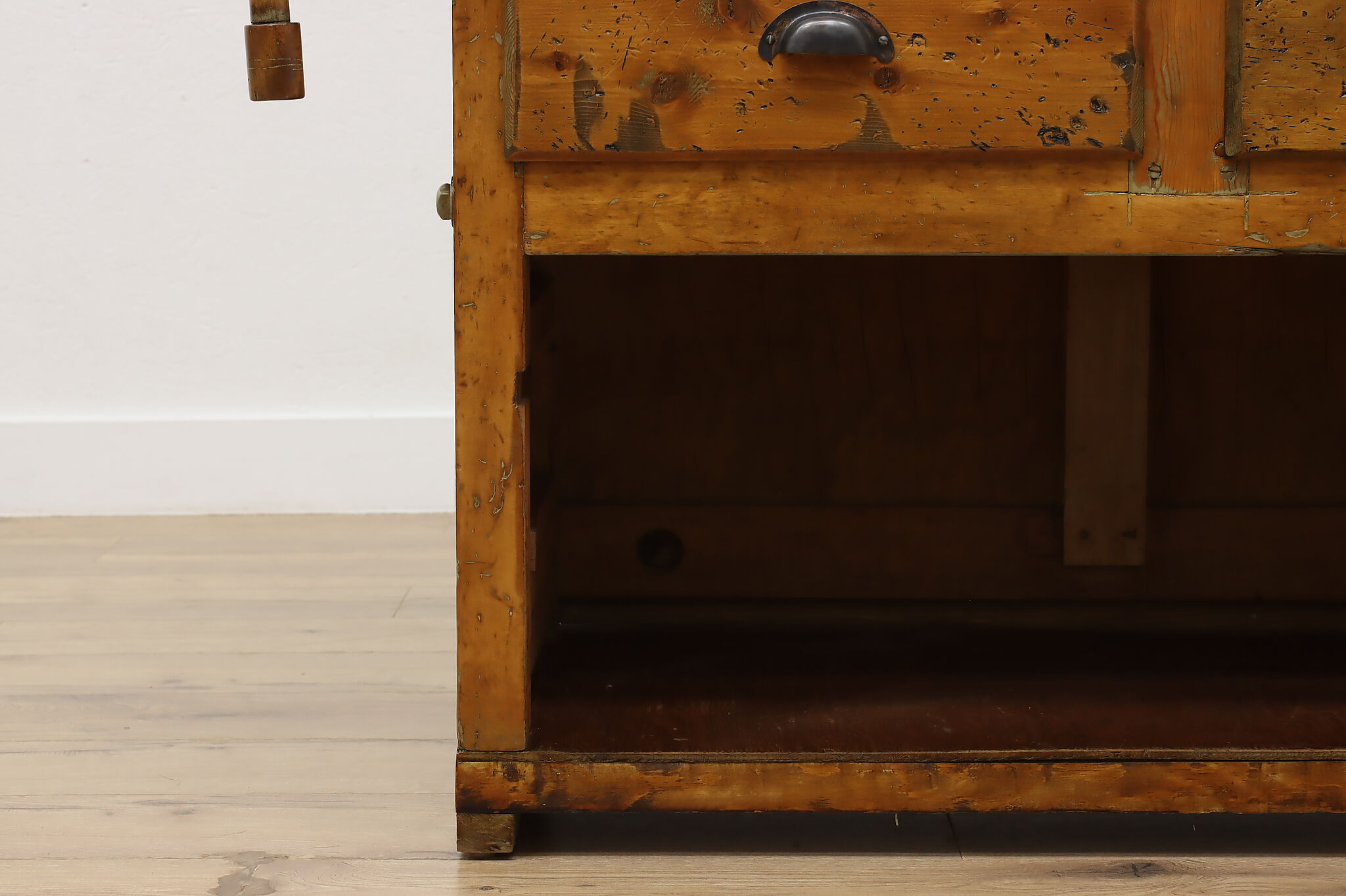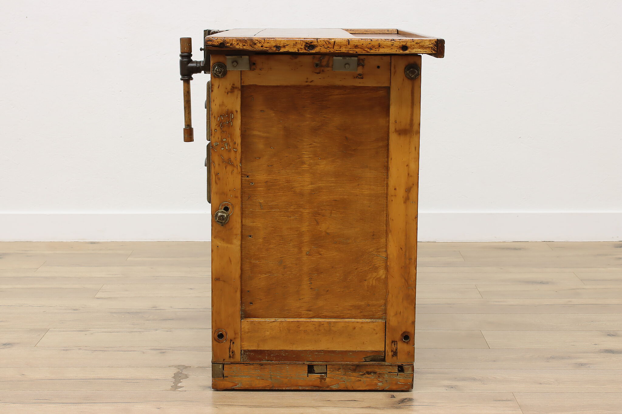 A wonderfully rustic workbench from a carpenter's shop is a surprisingly excellent option as a kitchen island, wine and cheese or crafting table!