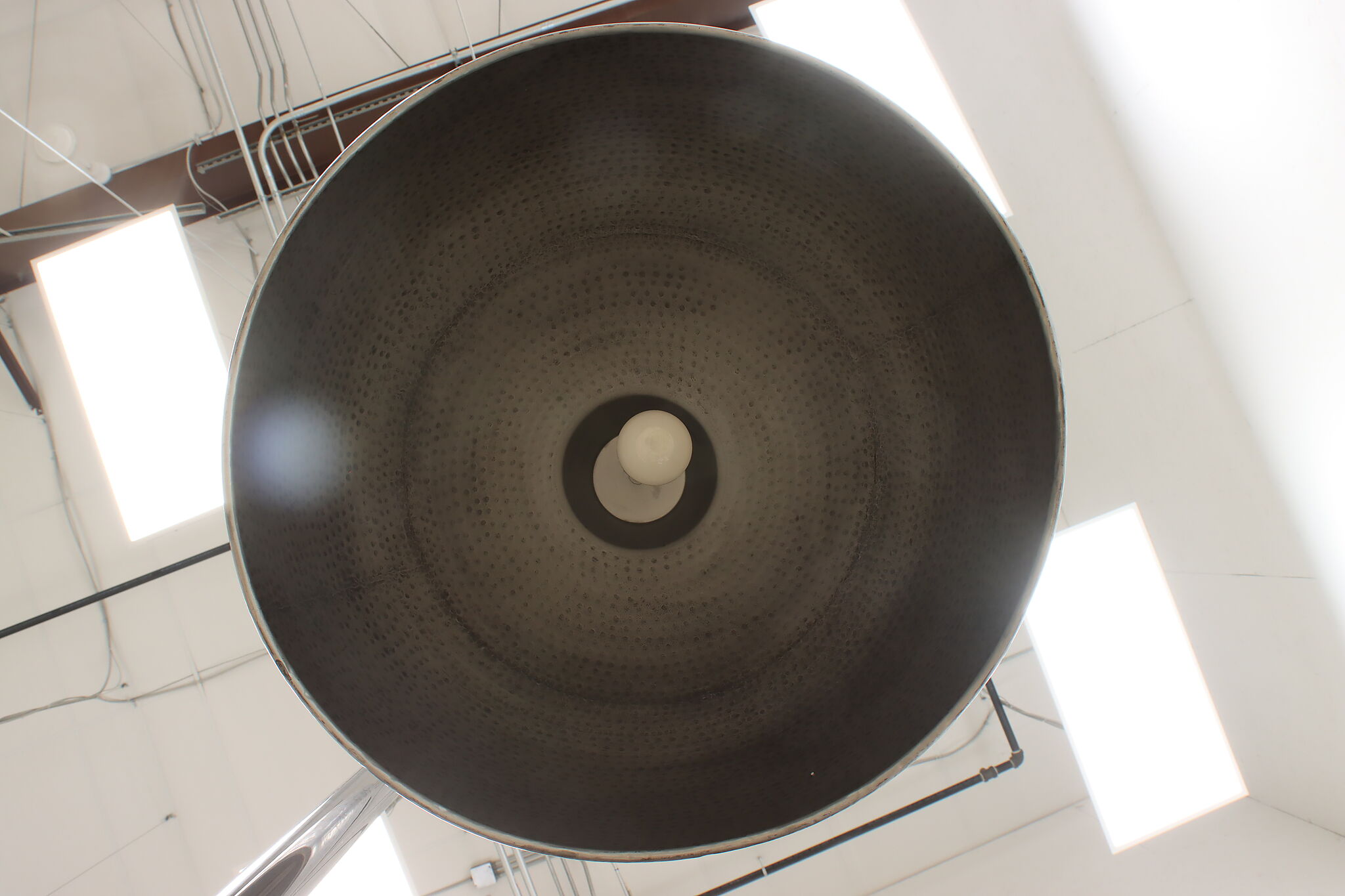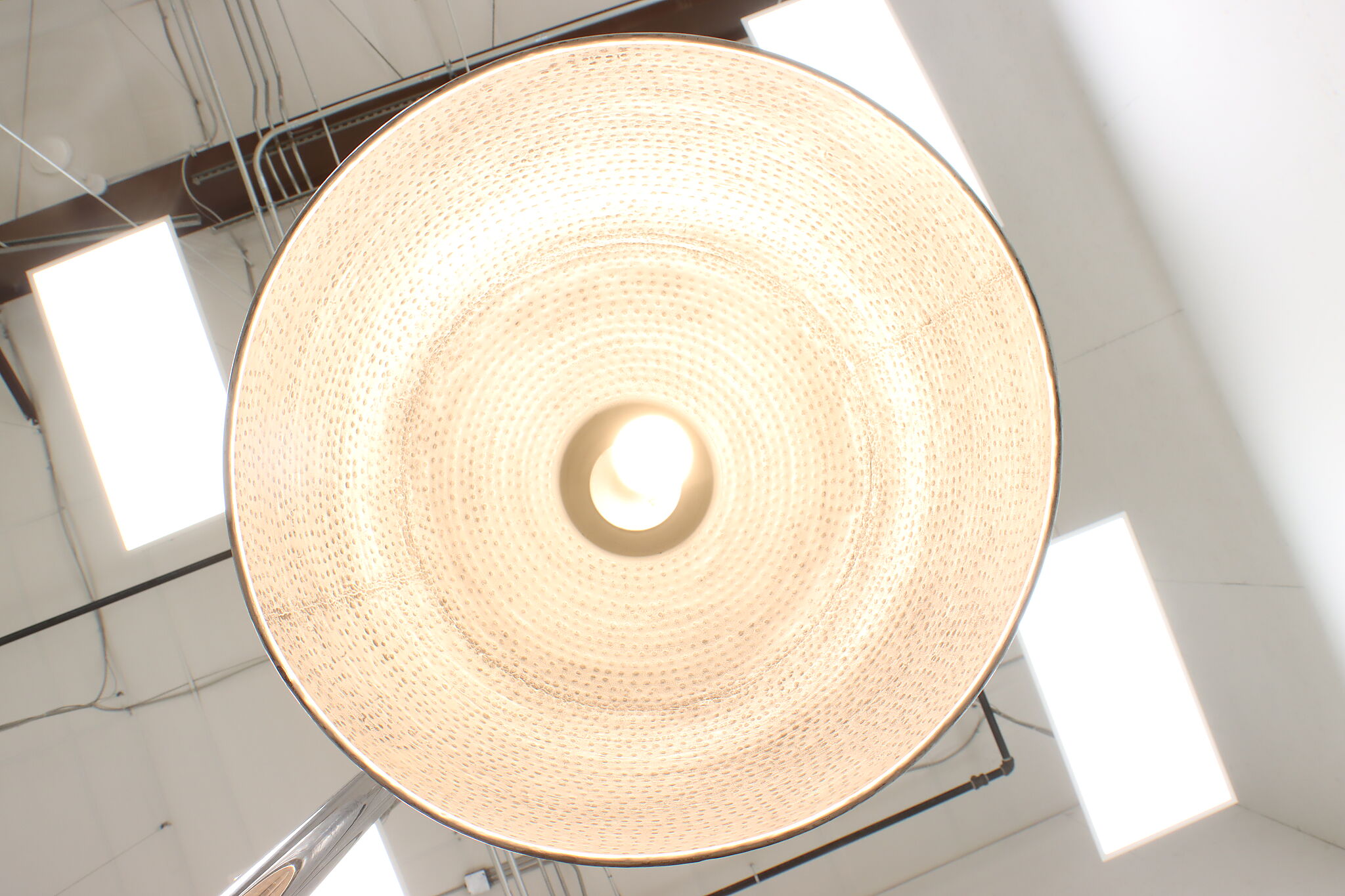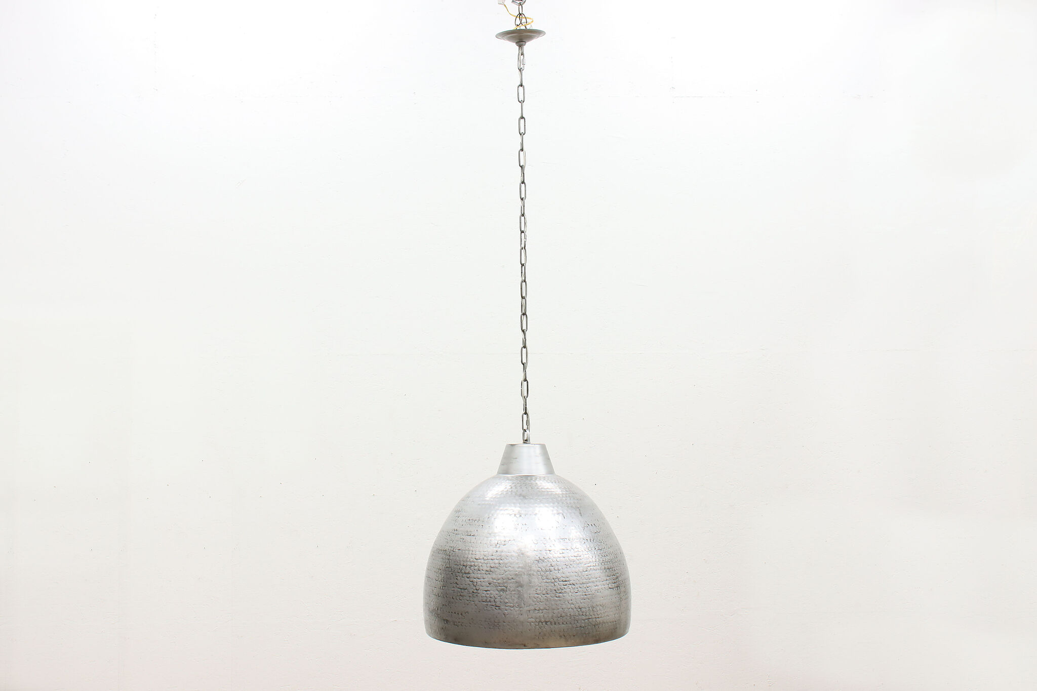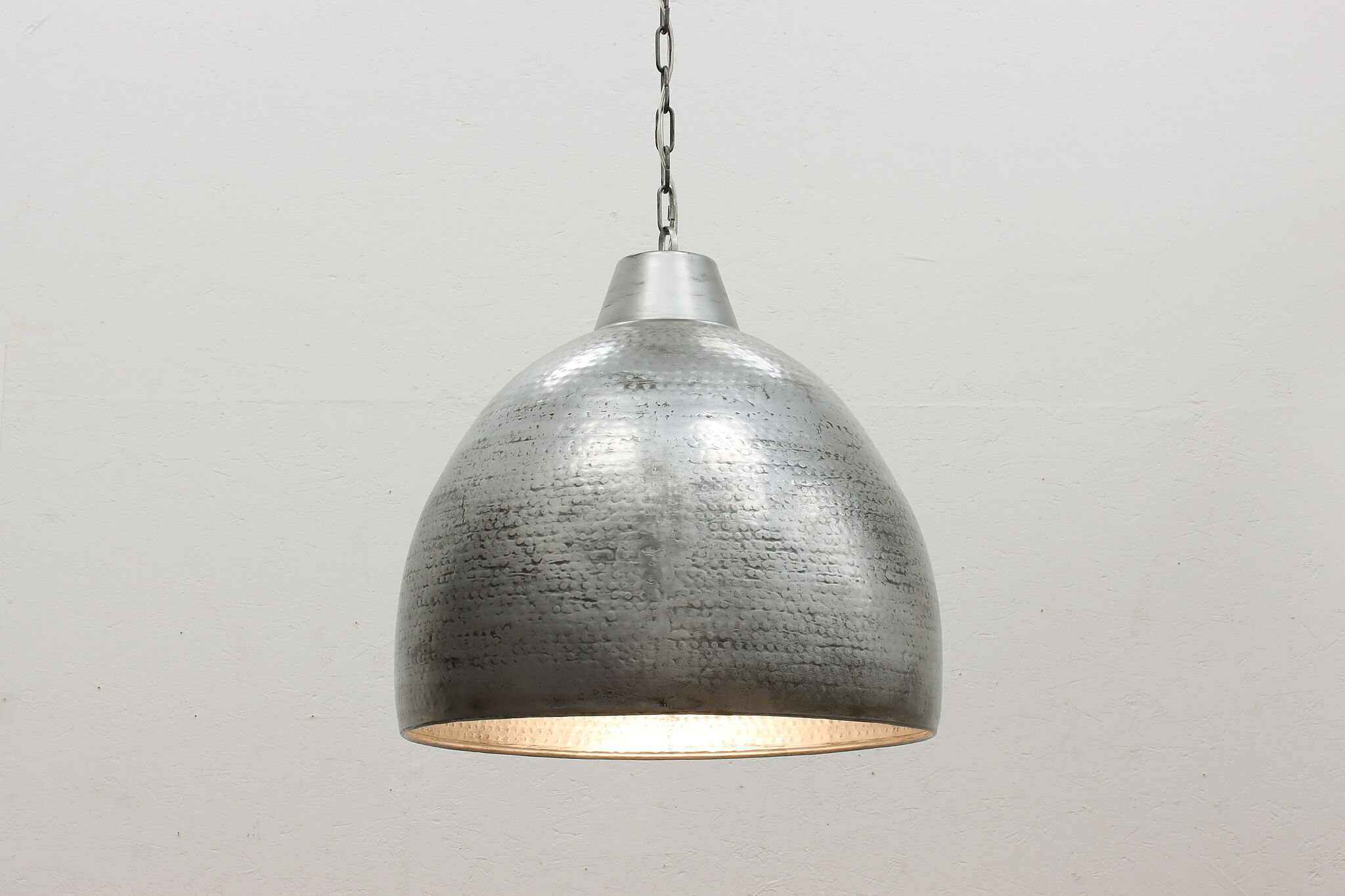 Looking to decorate your industrial-themed restaurant or provide unique lighting for a loft? Look no further than this hanging light fixture with its beautiful hammered steel shade.