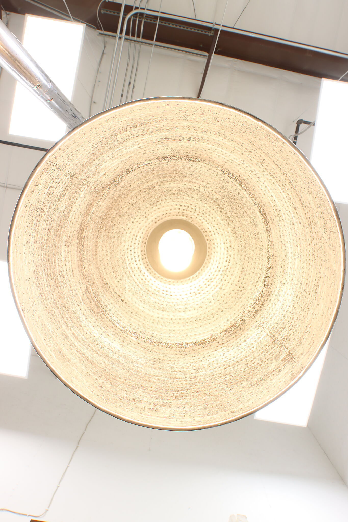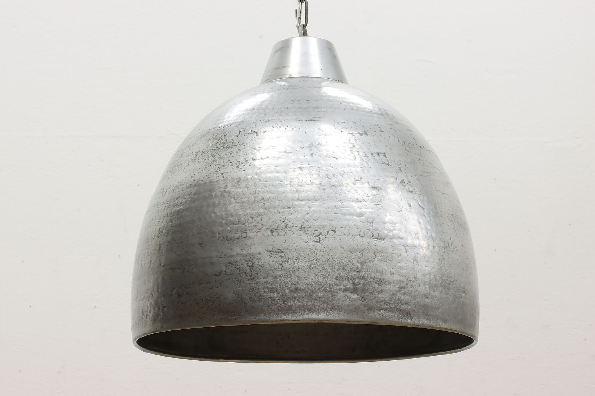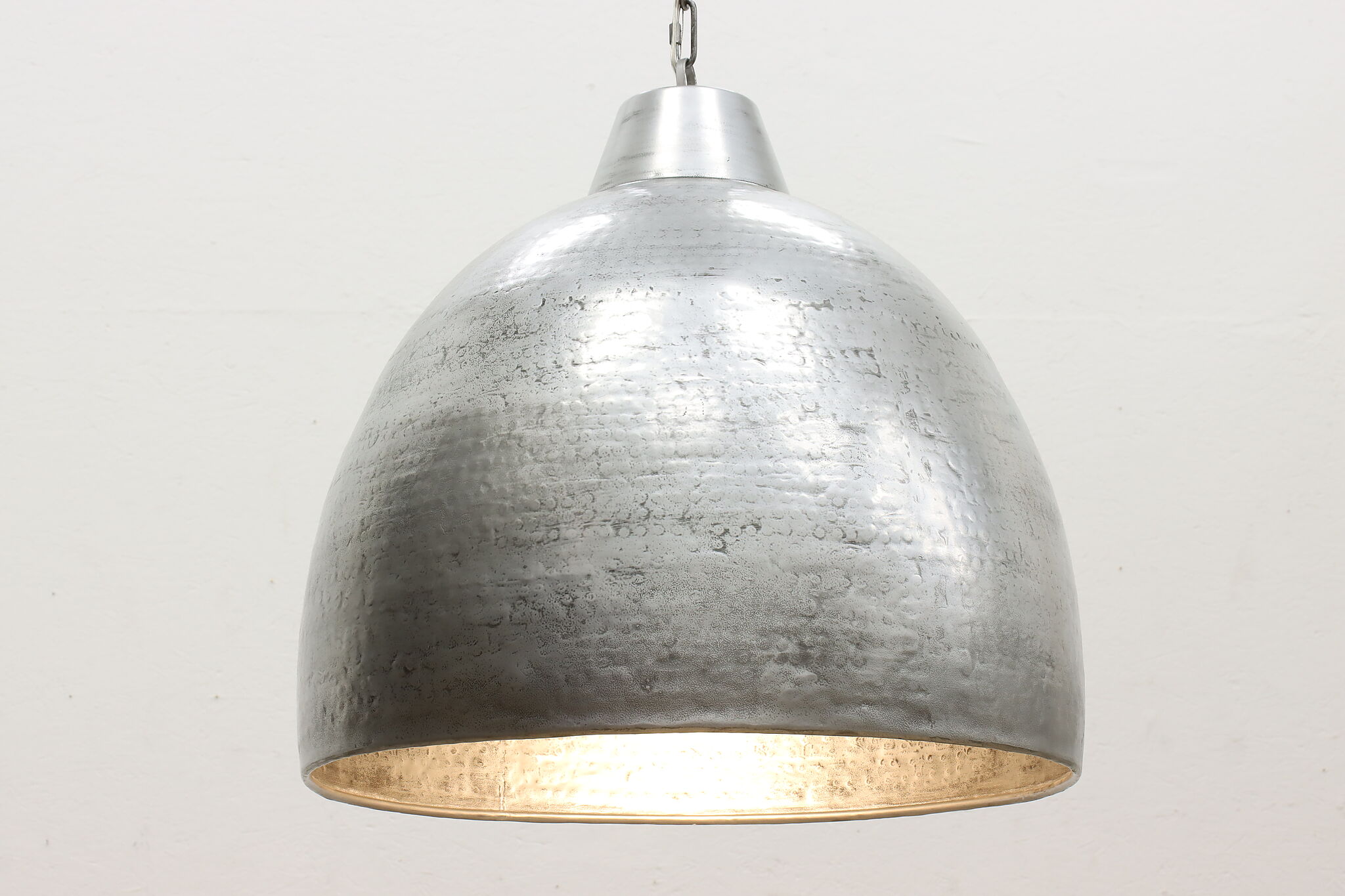 Looking to decorate your industrial-themed restaurant or provide unique lighting for a loft? Look no further than this hanging light fixture with its beautiful hammered steel shade.