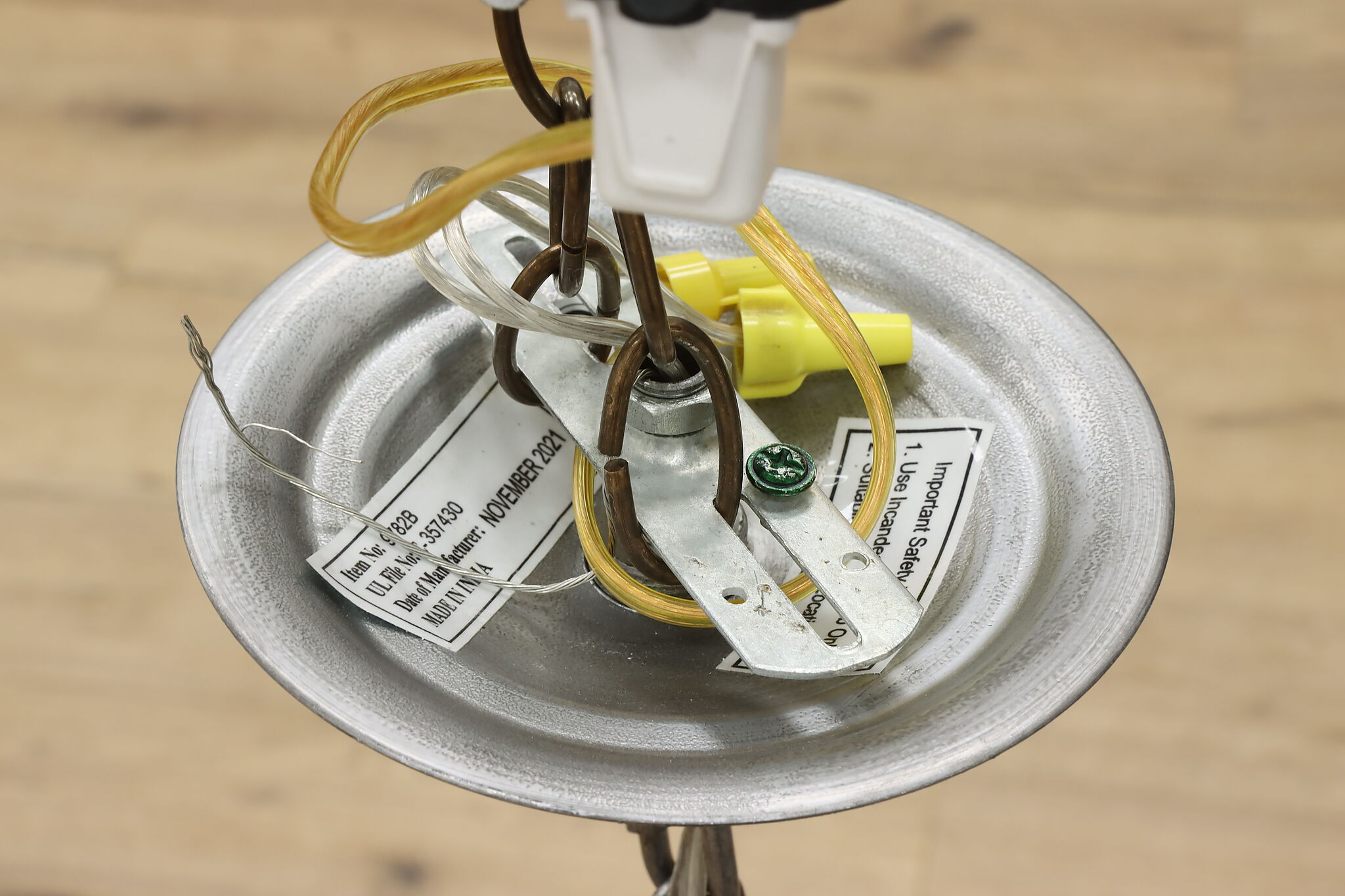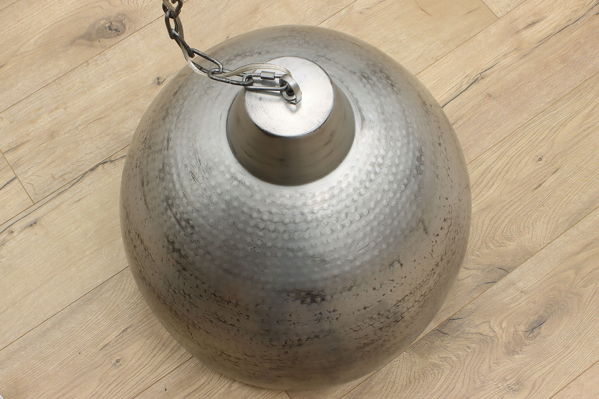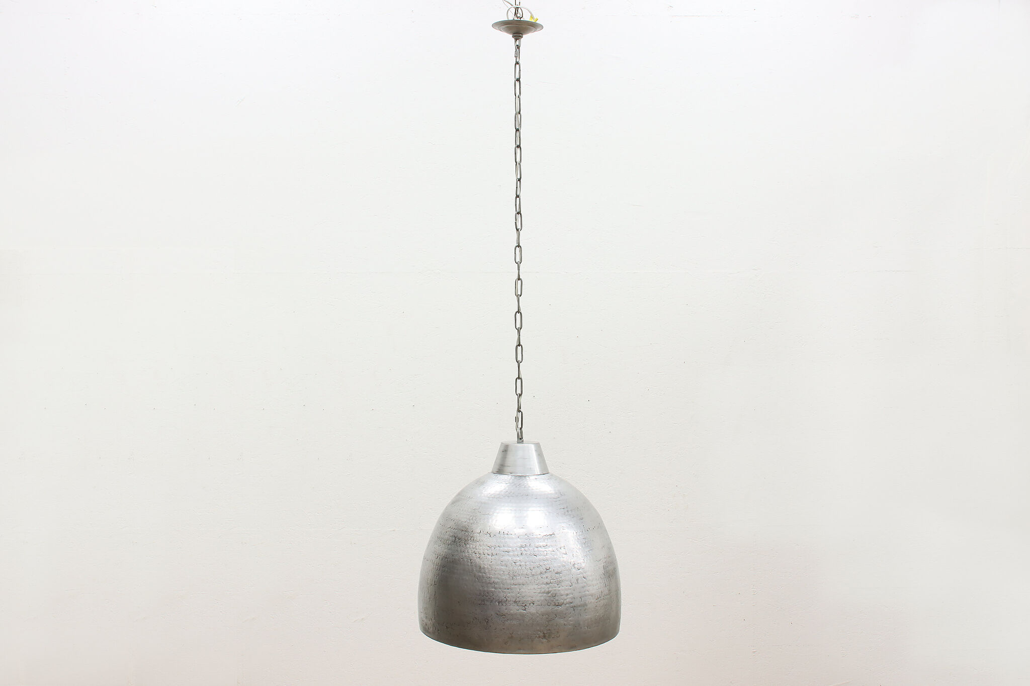 Looking to decorate your industrial-themed restaurant or provide unique lighting for a loft? Look no further than this hanging light fixture with its beautiful hammered steel shade.
