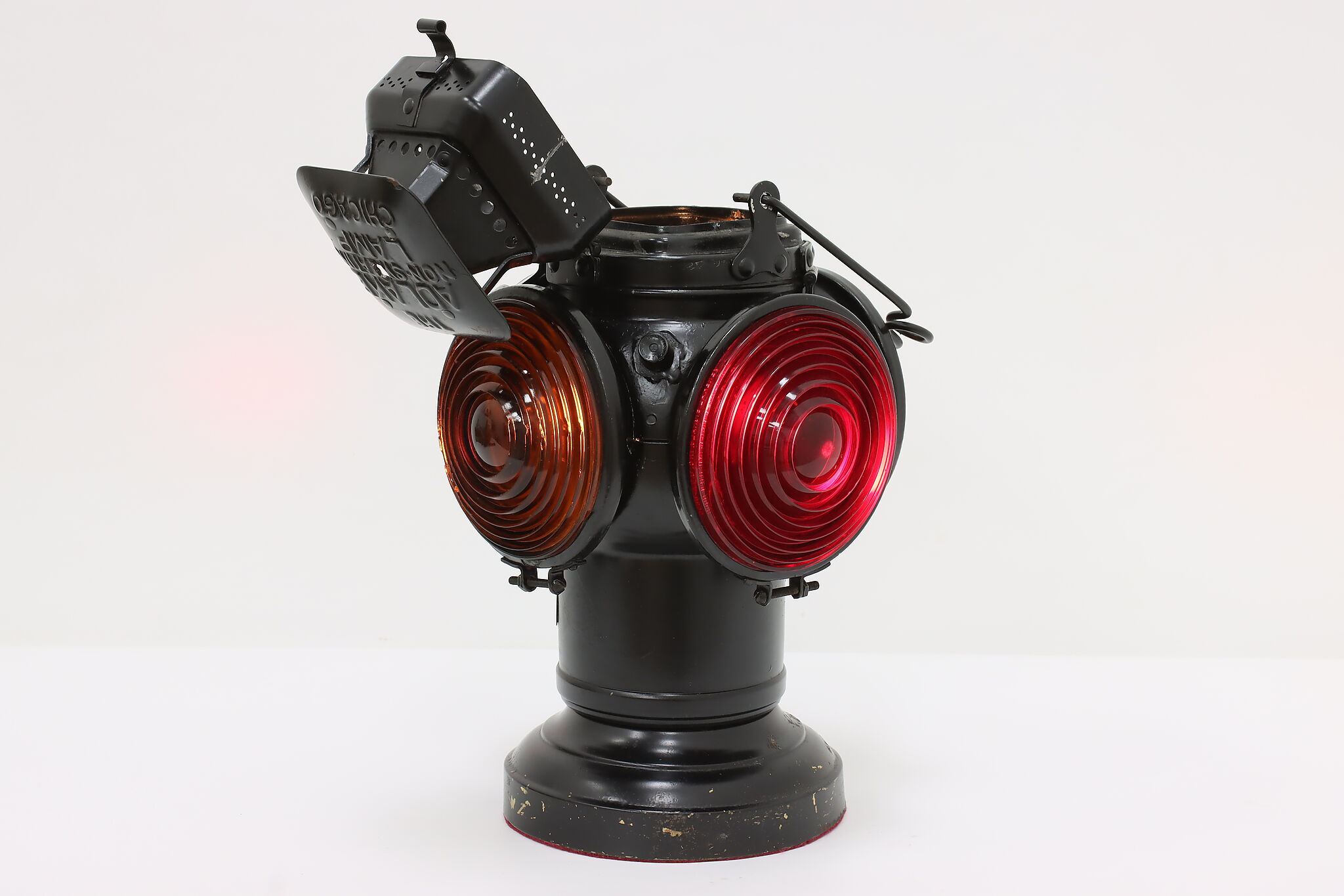 For the train enthusiast, this railroad switch lantern from a forerunner of the Chicago, South Shore & South Bend Railroad has been electrified to be a lamp!