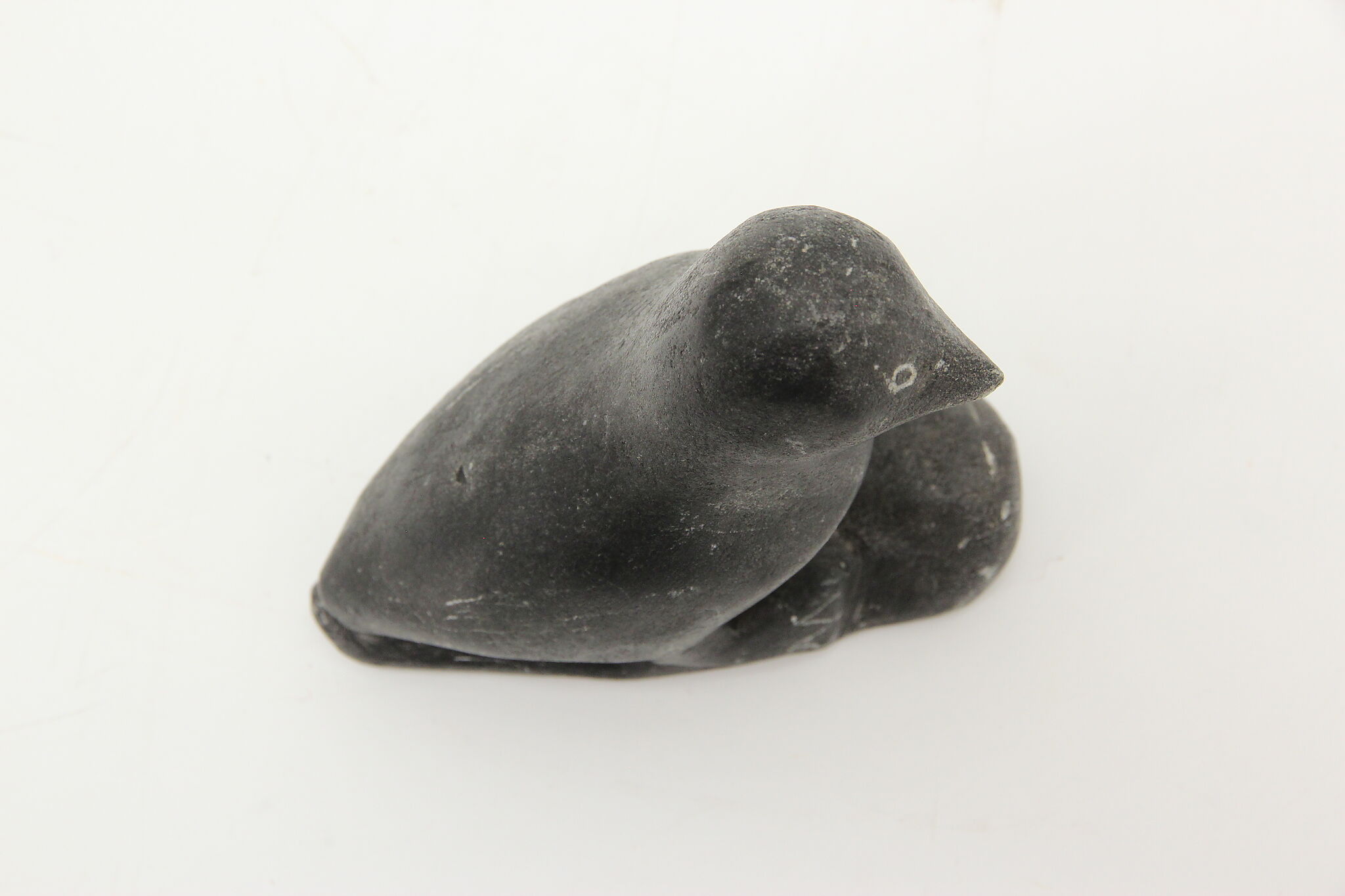 A traditional folk art sculpture of a bird was hand carved and engraved by Inuit artists of Alaska, signed "EK."