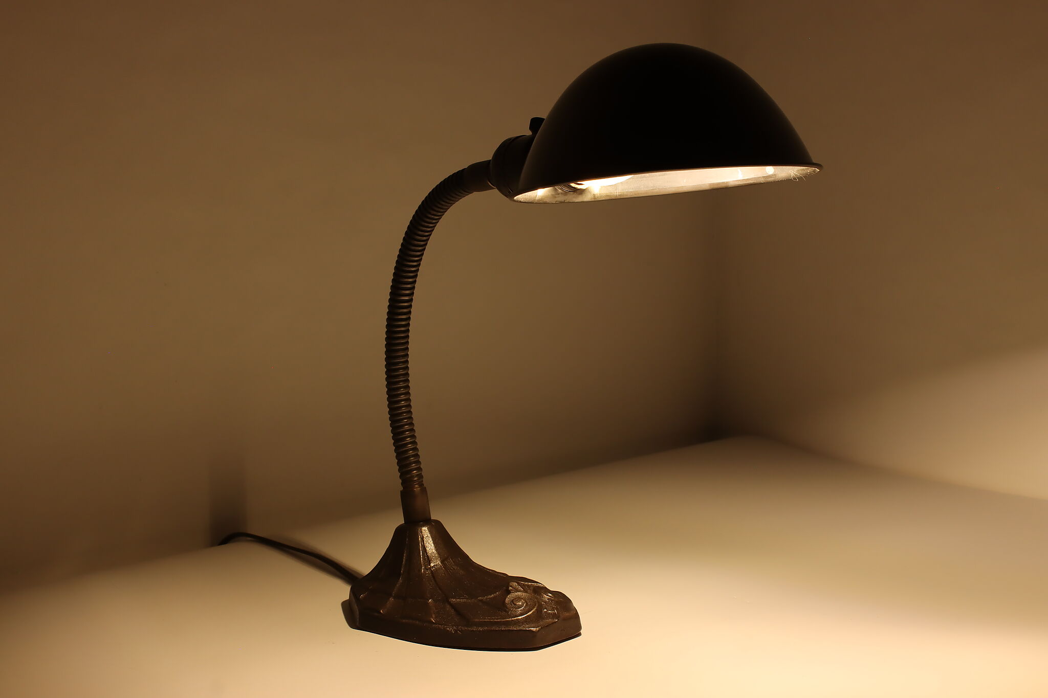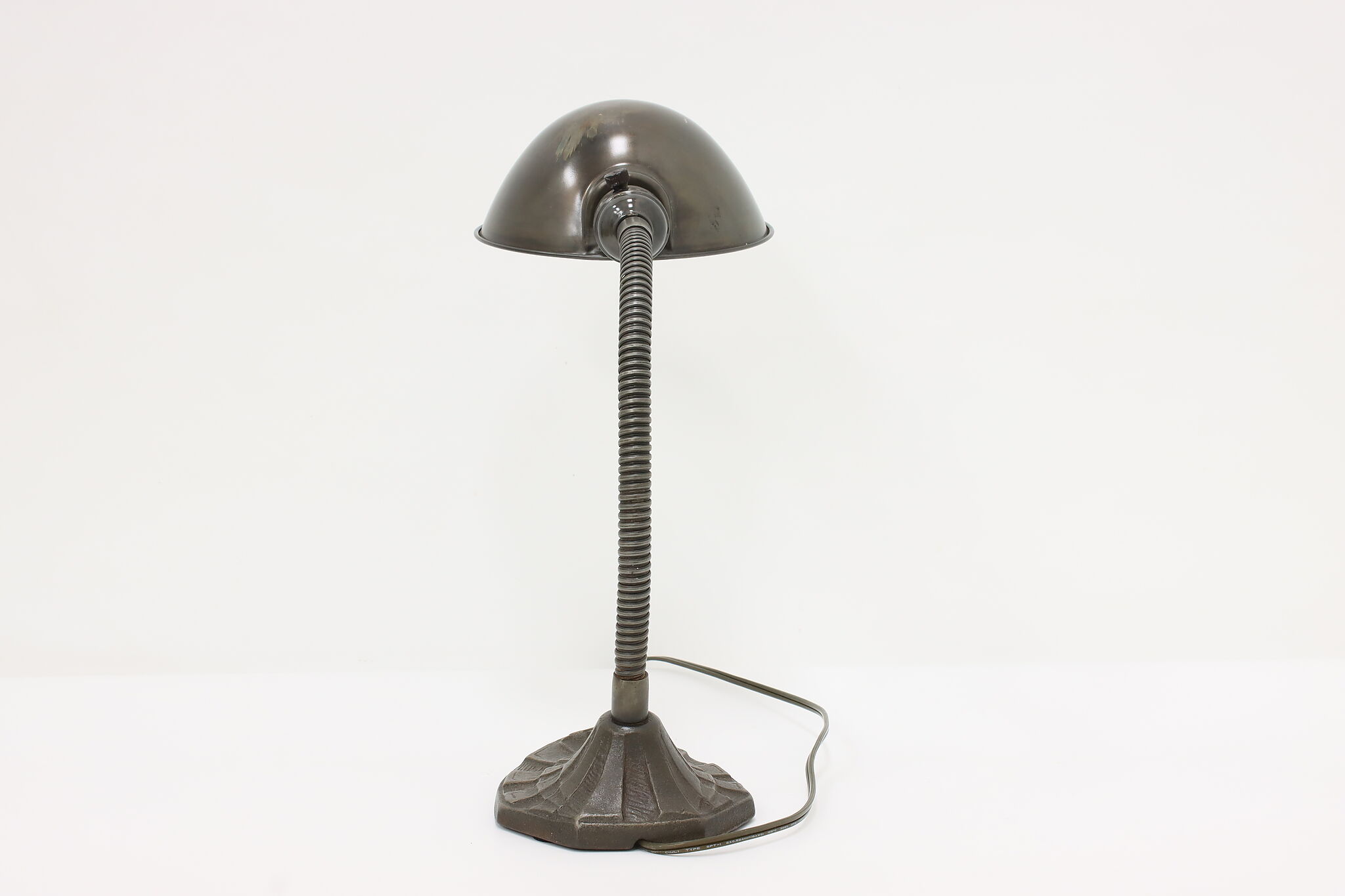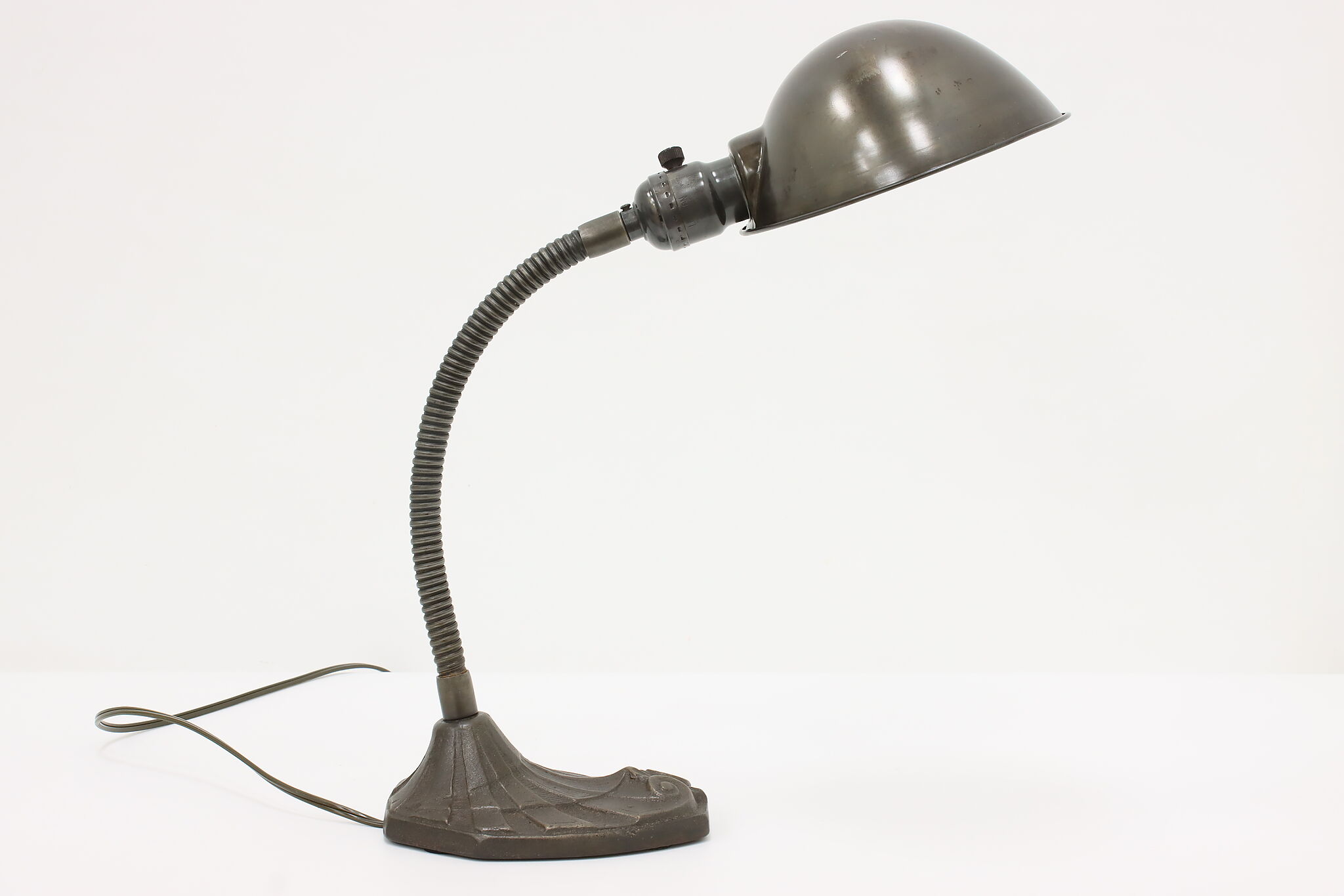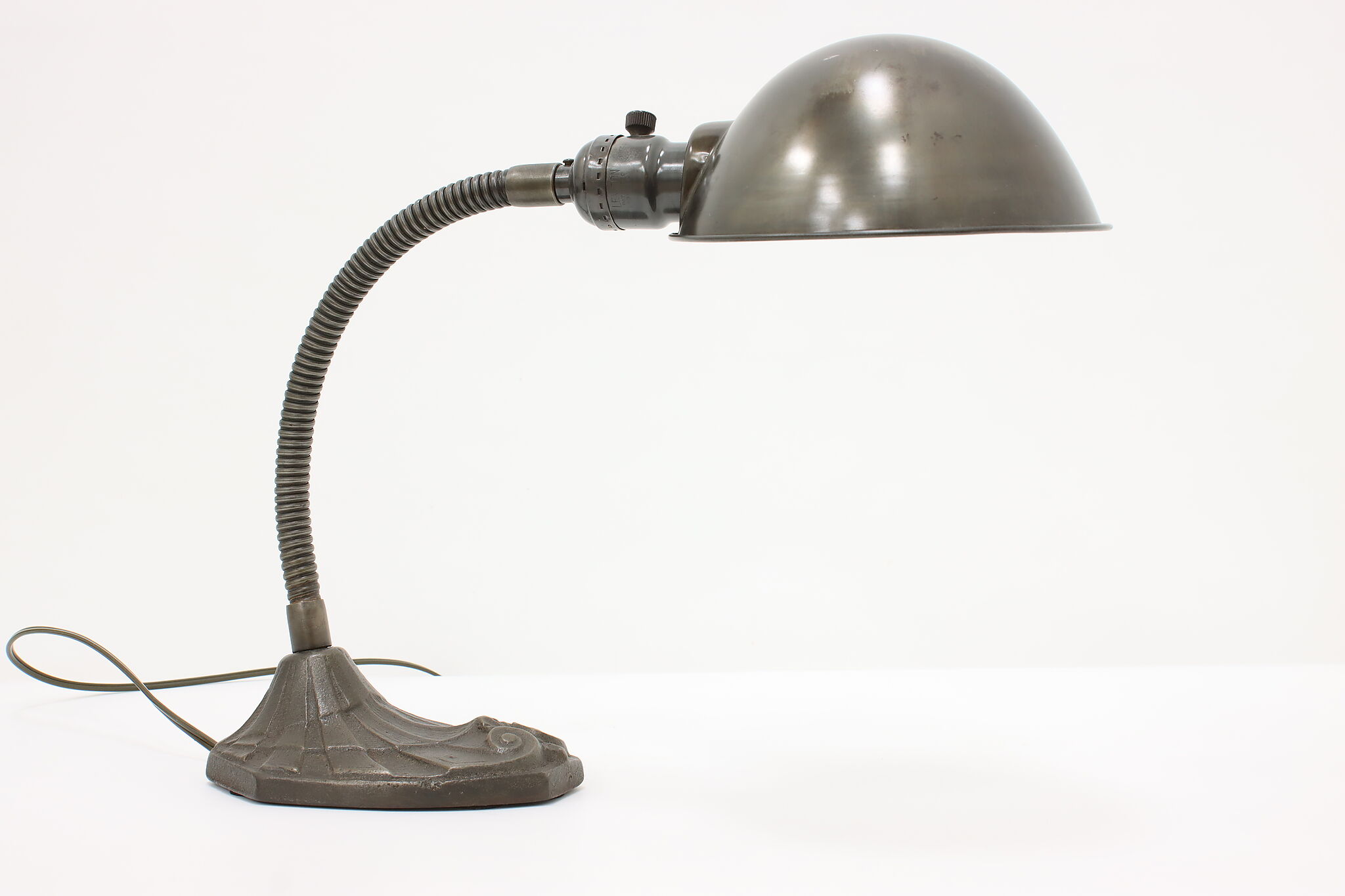 The movable"gooseneck" lamp was a popular choice for offices and libraries as it offered flexible lighting positions for long days of working and reading.