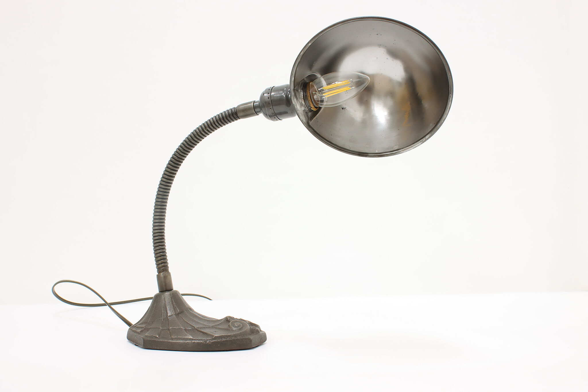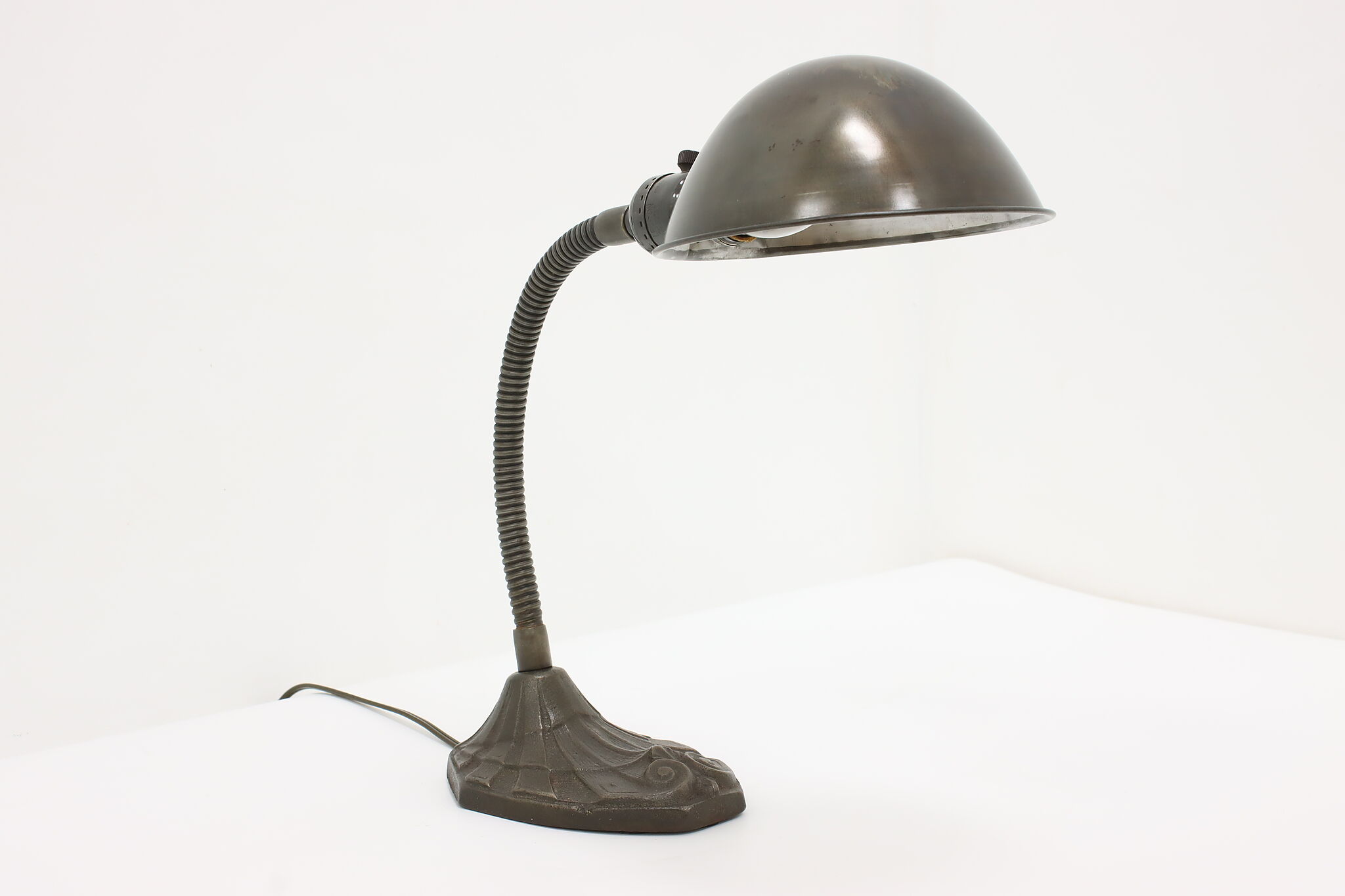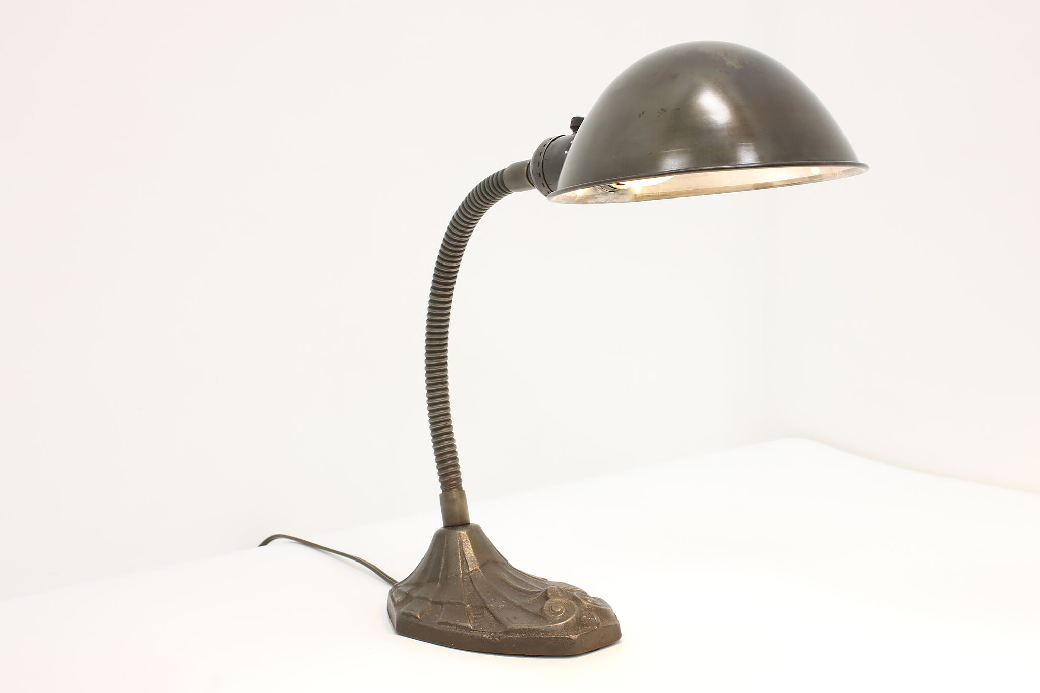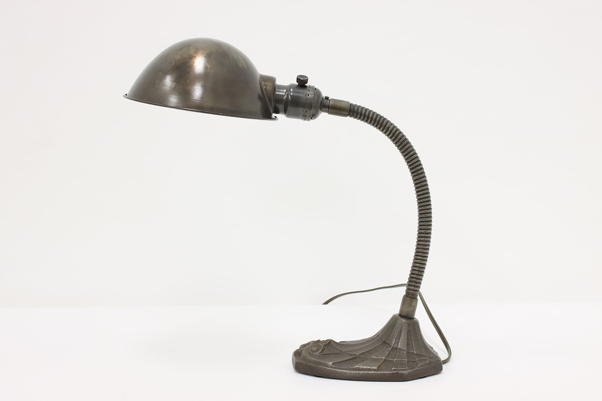 The movable"gooseneck" lamp was a popular choice for offices and libraries as it offered flexible lighting positions for long days of working and reading.