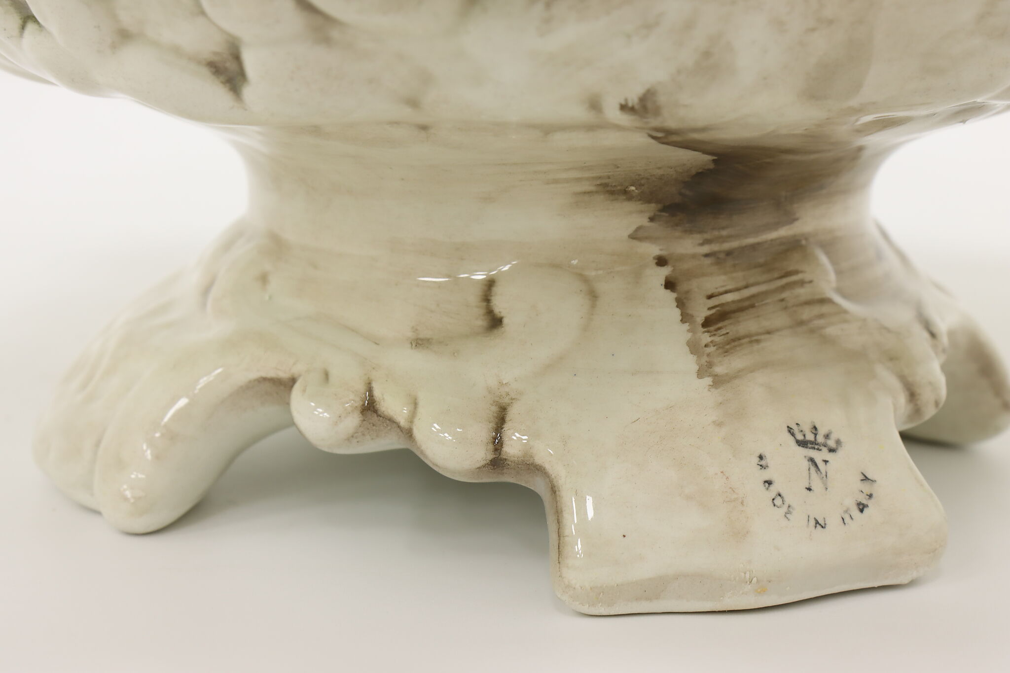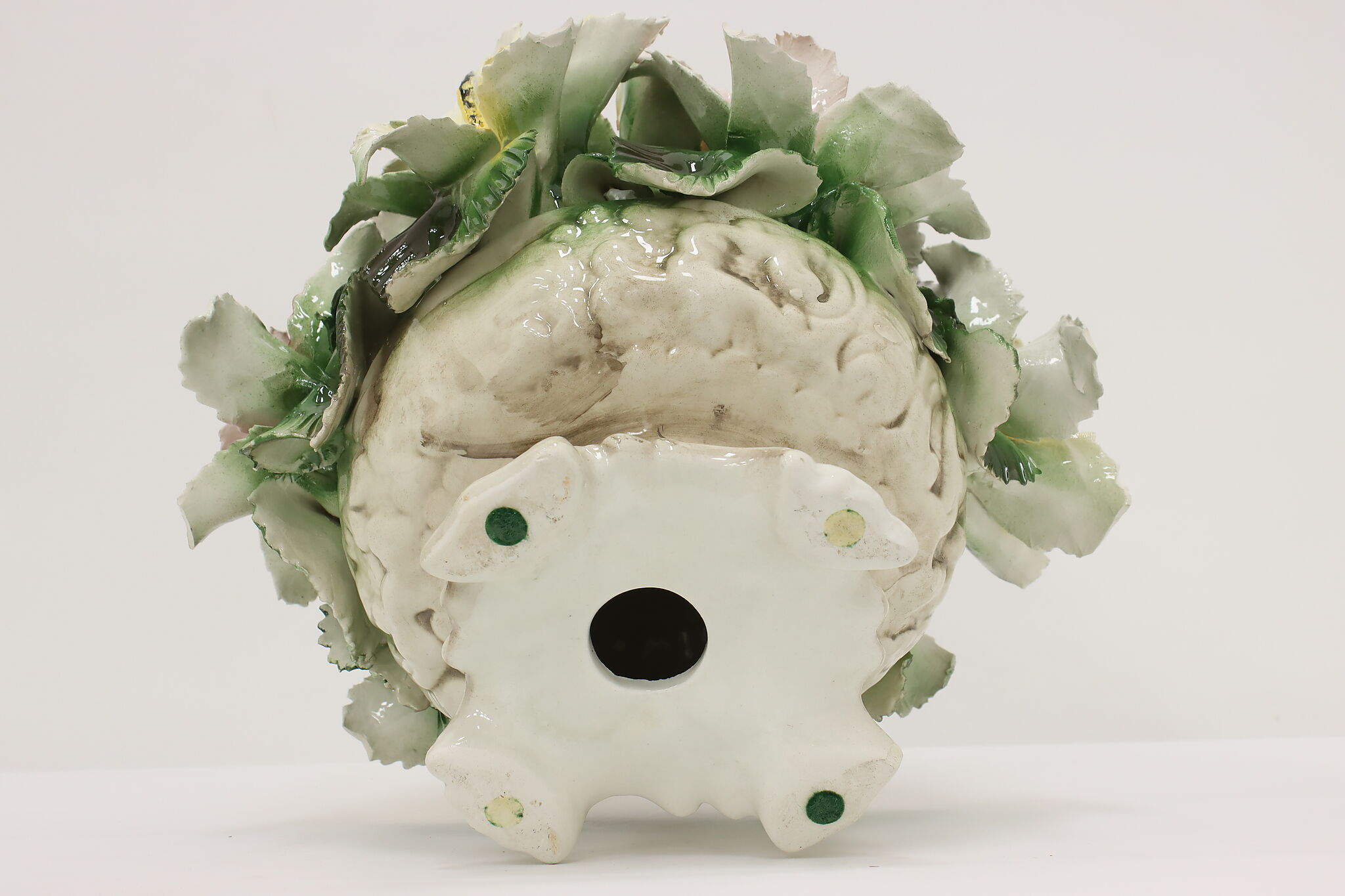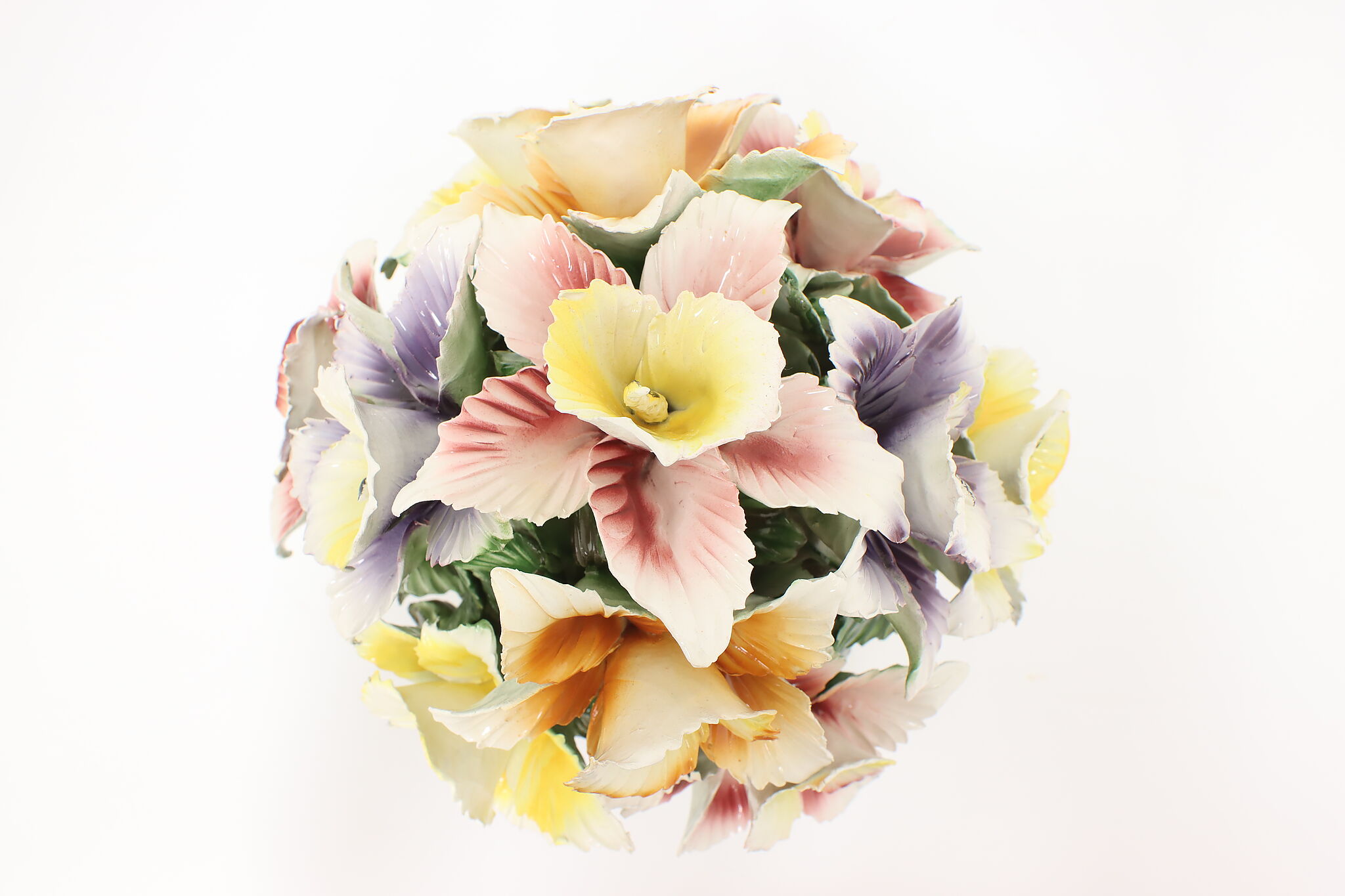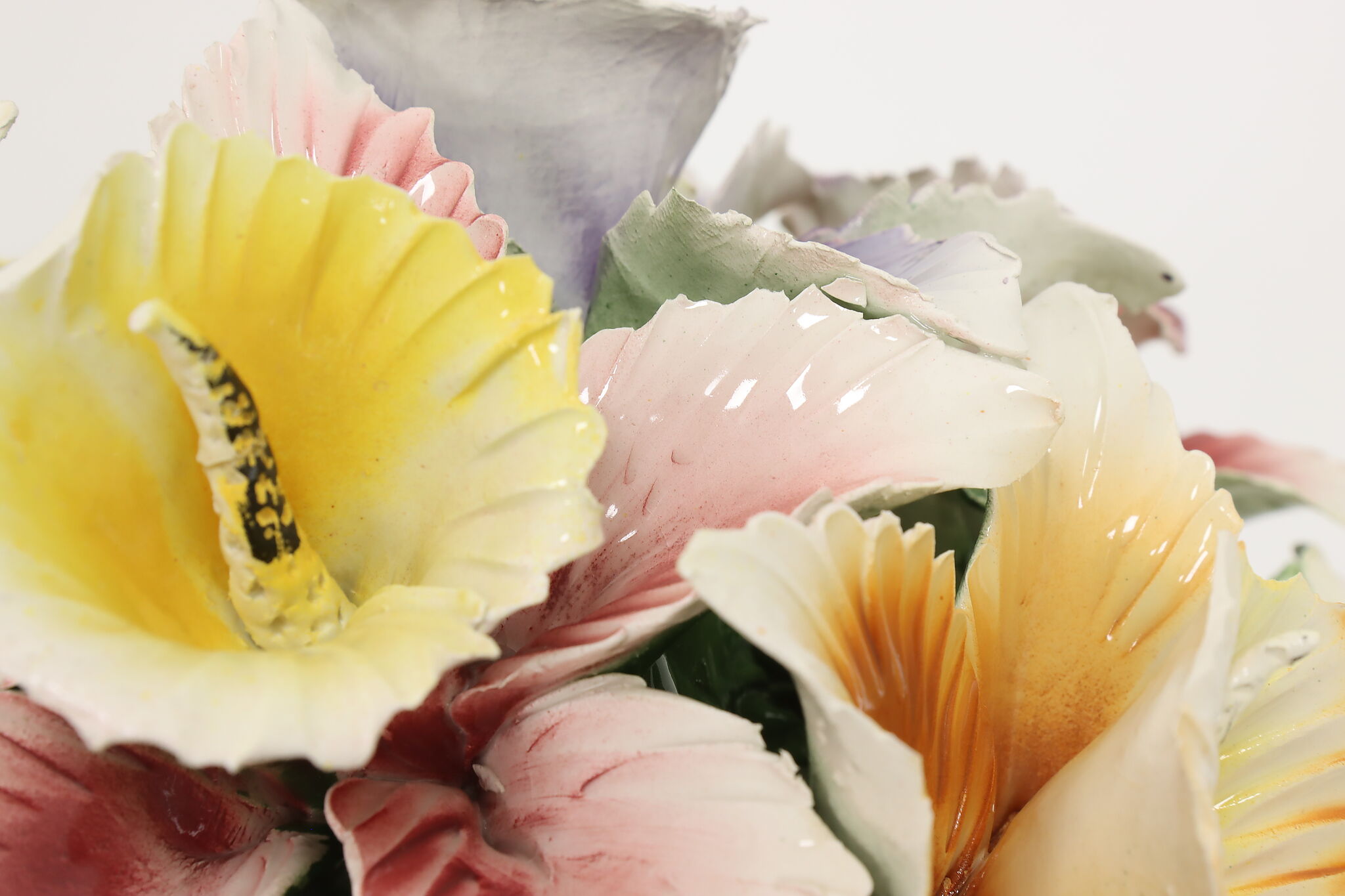 This beautifully detailed and hand painted flower basket sculpture is traditional Italian Capodimonte porcelain.