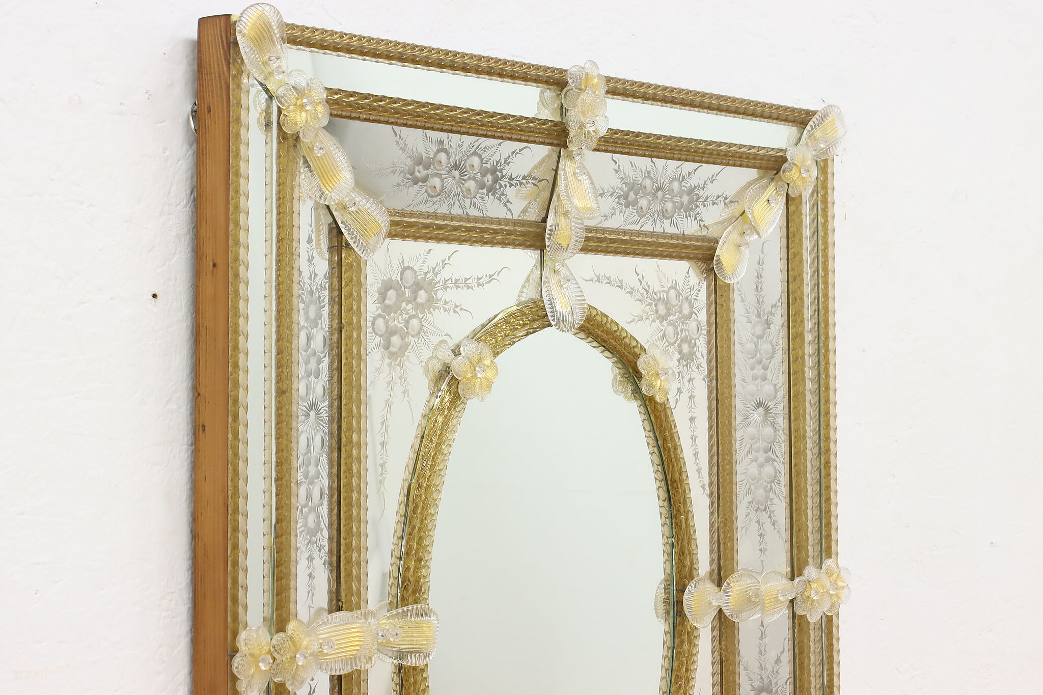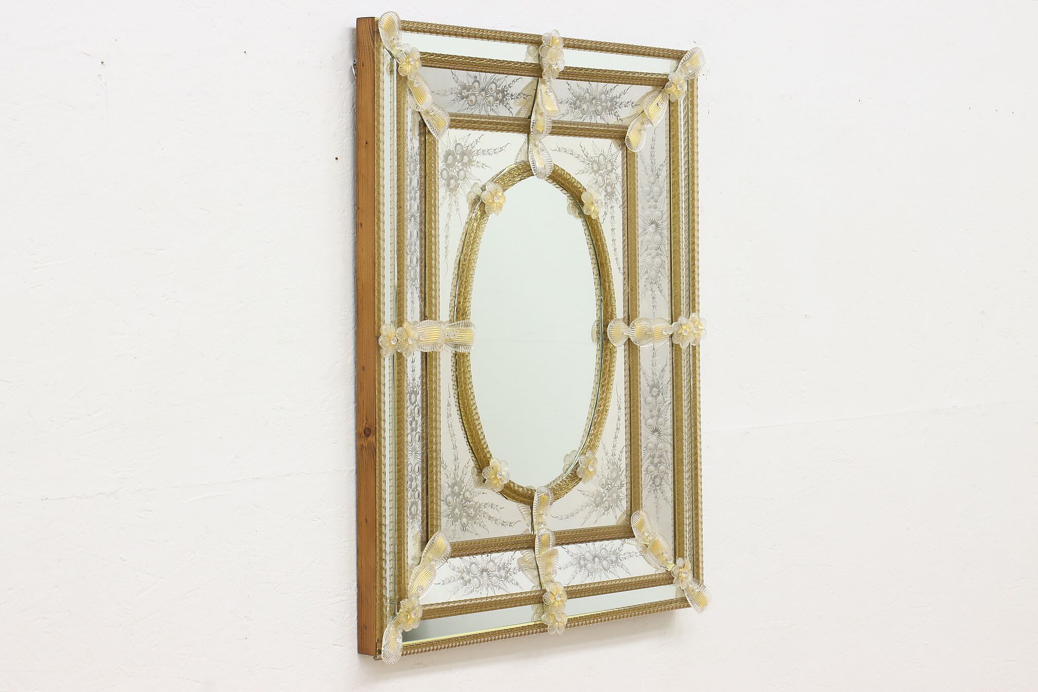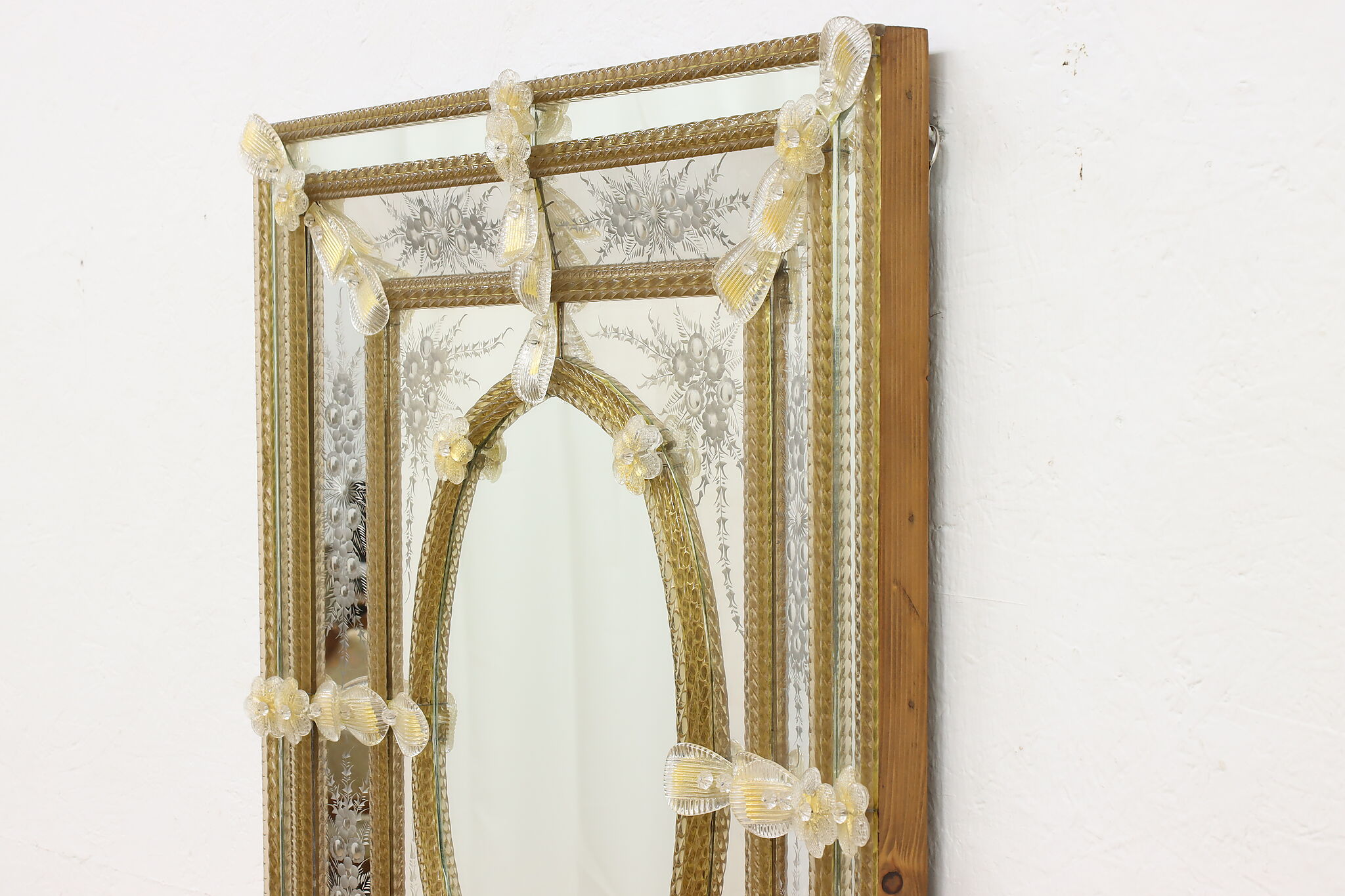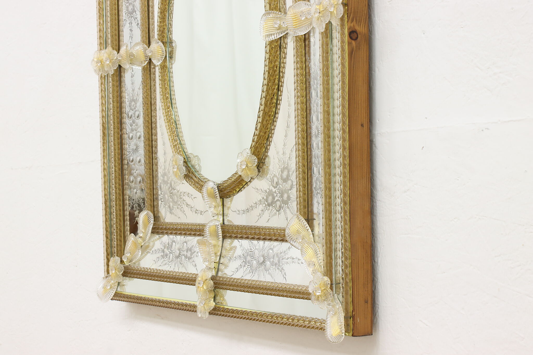 Hang this mirror in your bath or hall to enjoy a piece of fabled Italian Murano glassware.