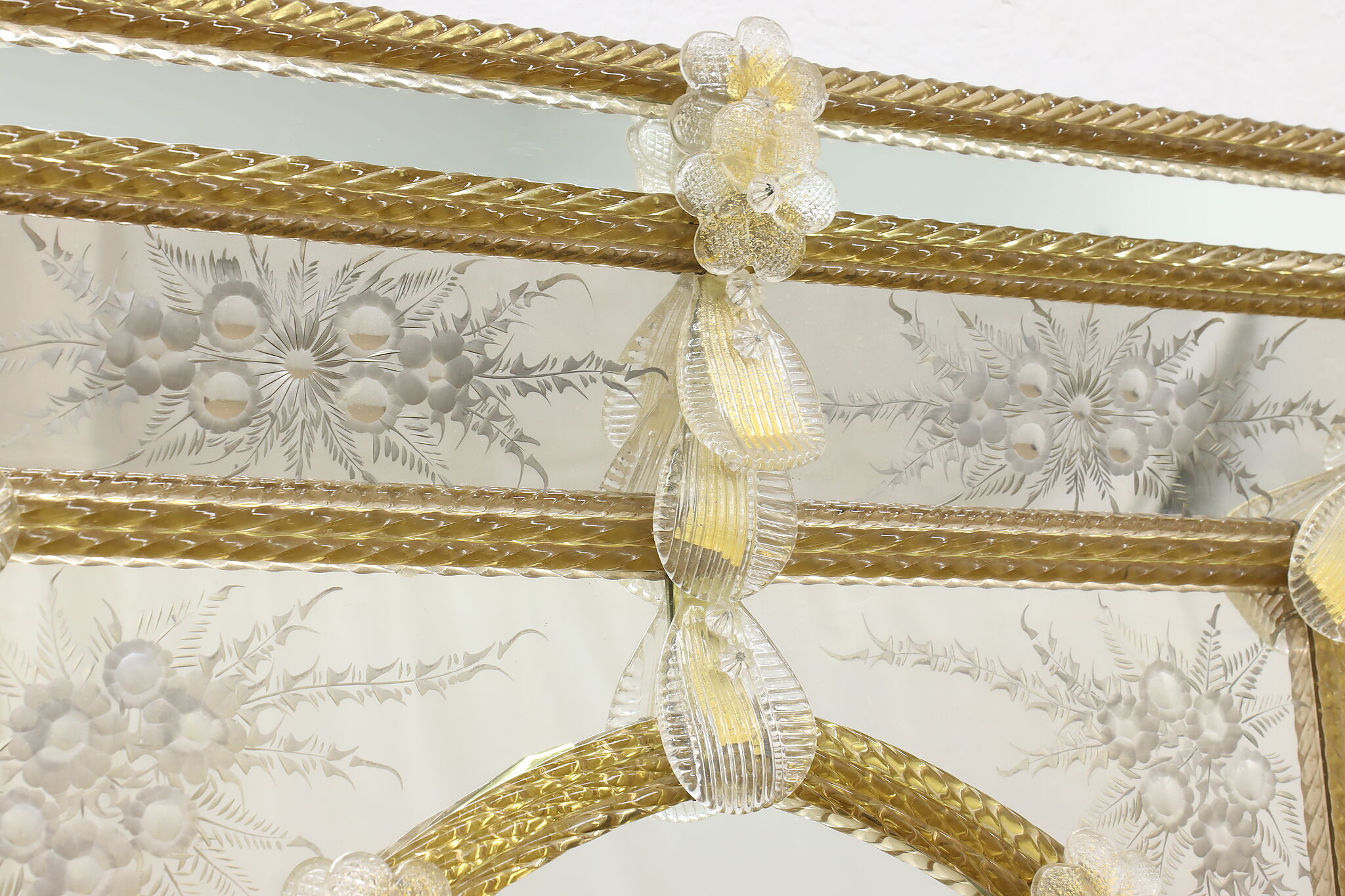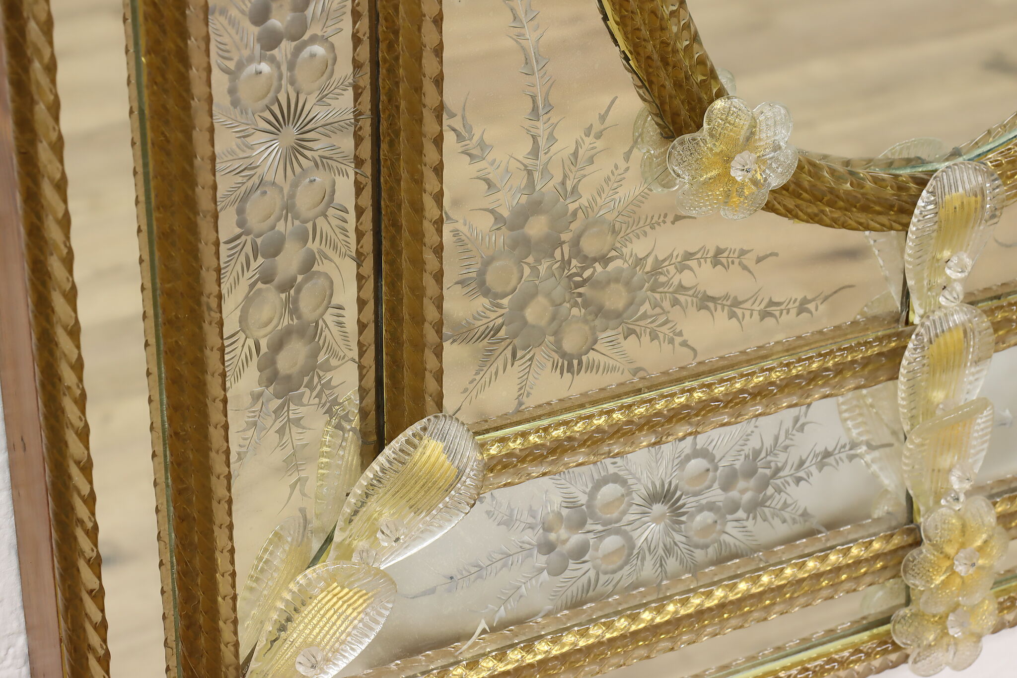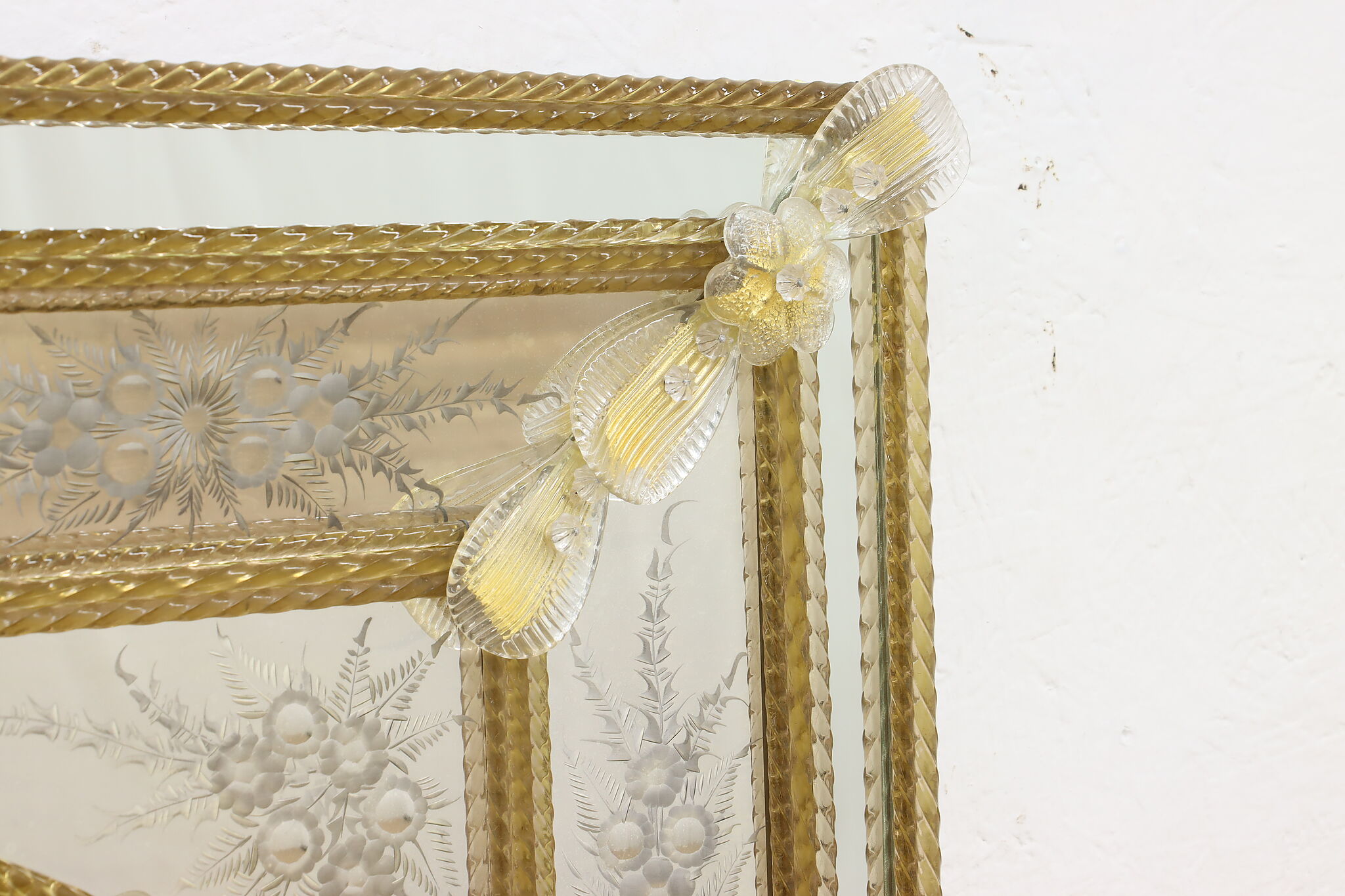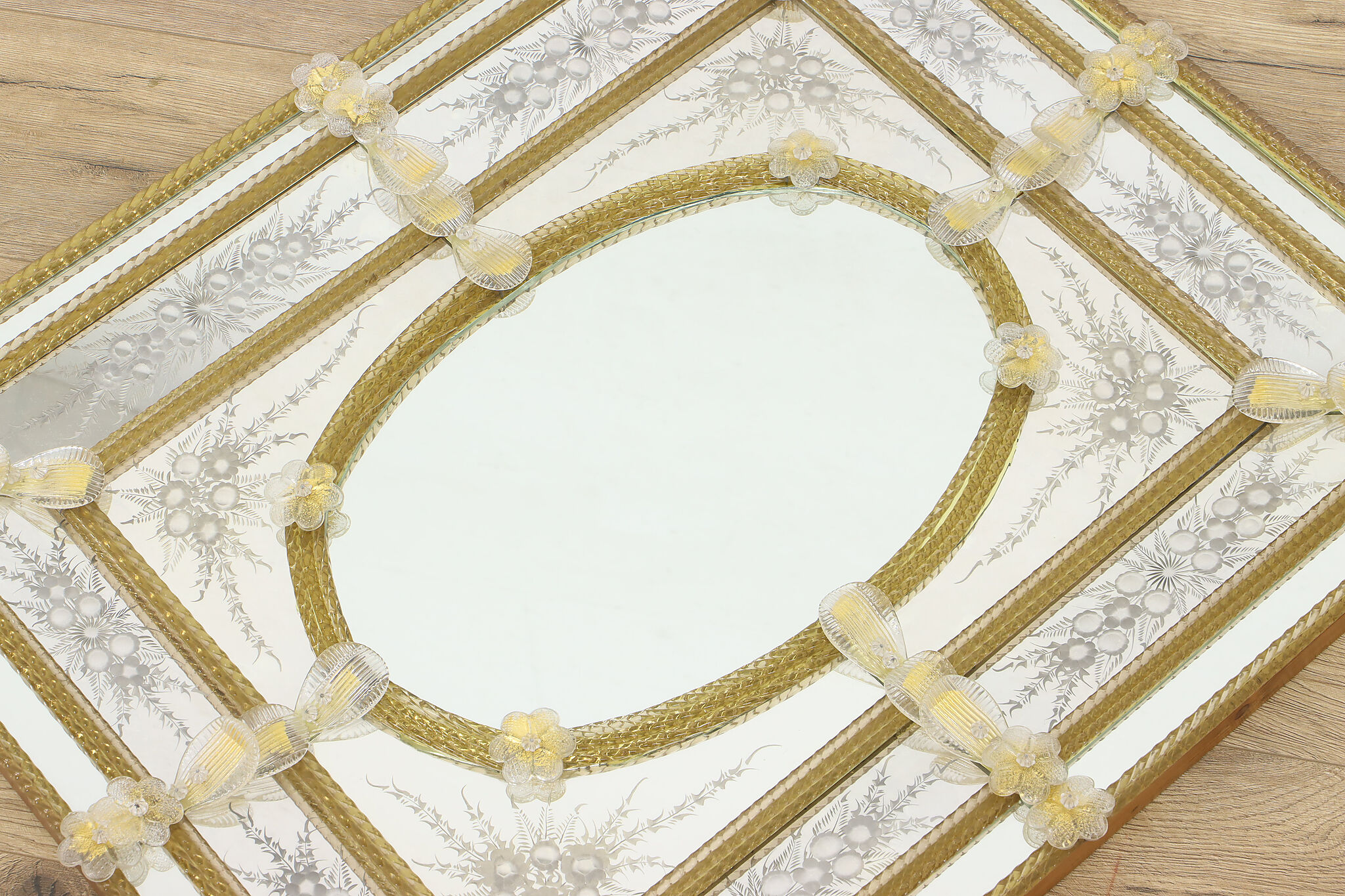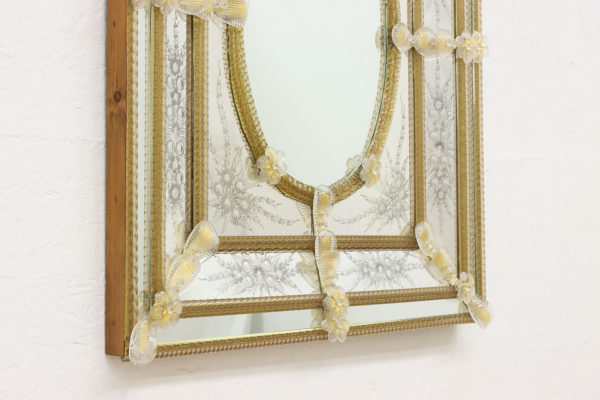 Hang this mirror in your bath or hall to enjoy a piece of fabled Italian Murano glassware.