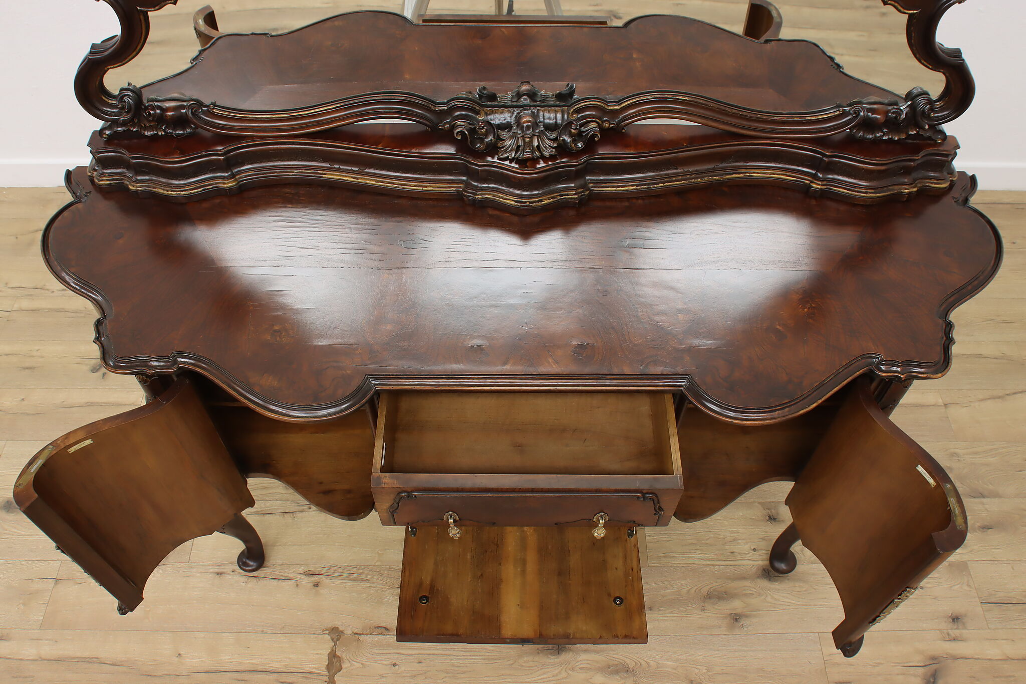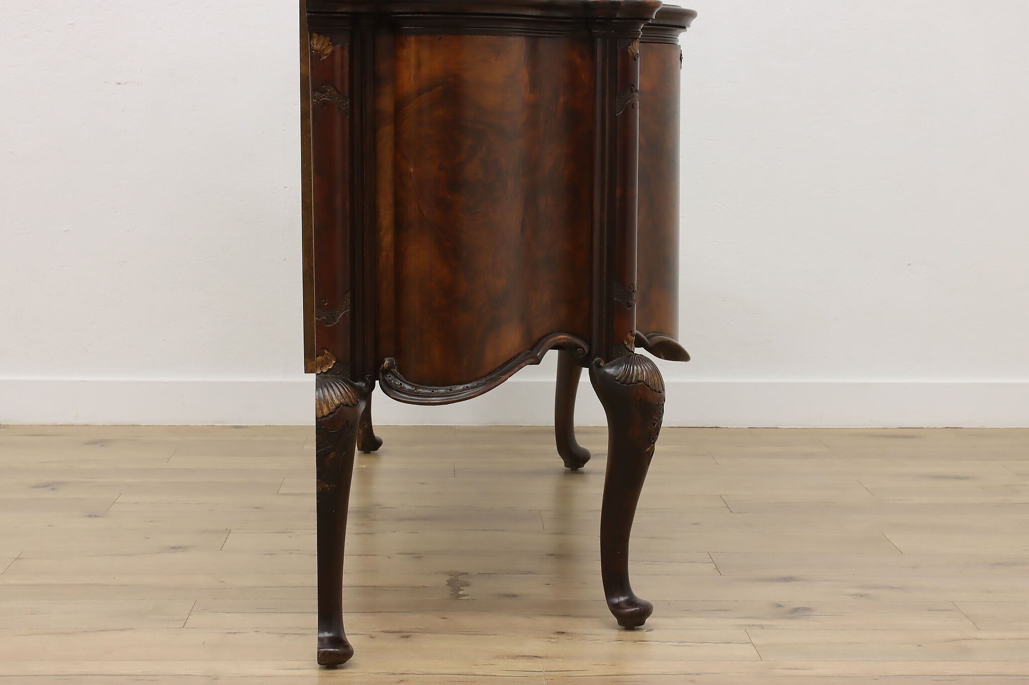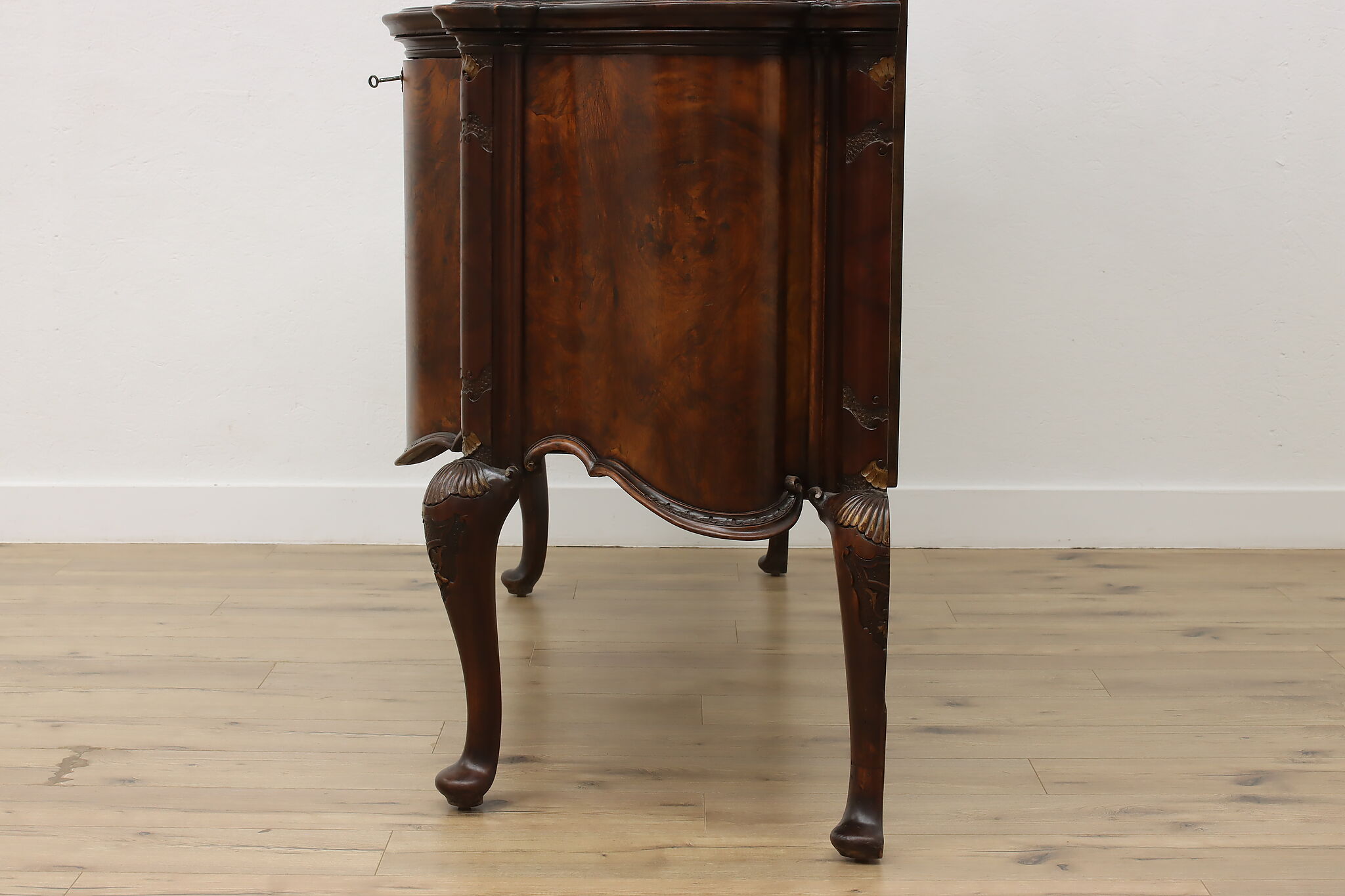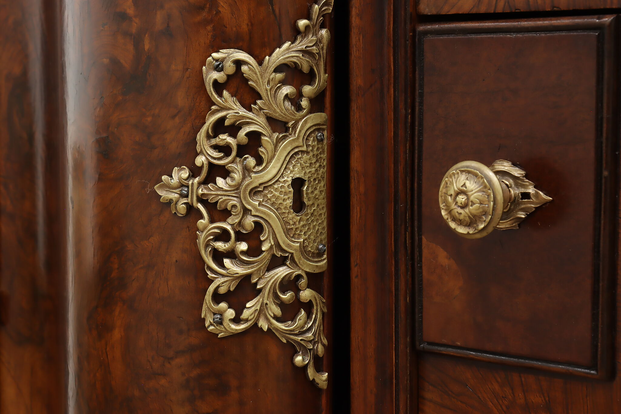 This extravagant Italian Rococo design sideboard, buffet or bar is a showstopping piece! With graceful curves and beautiful burl woods, this piece offers elegance and sophistication while commanding the attention of the room.