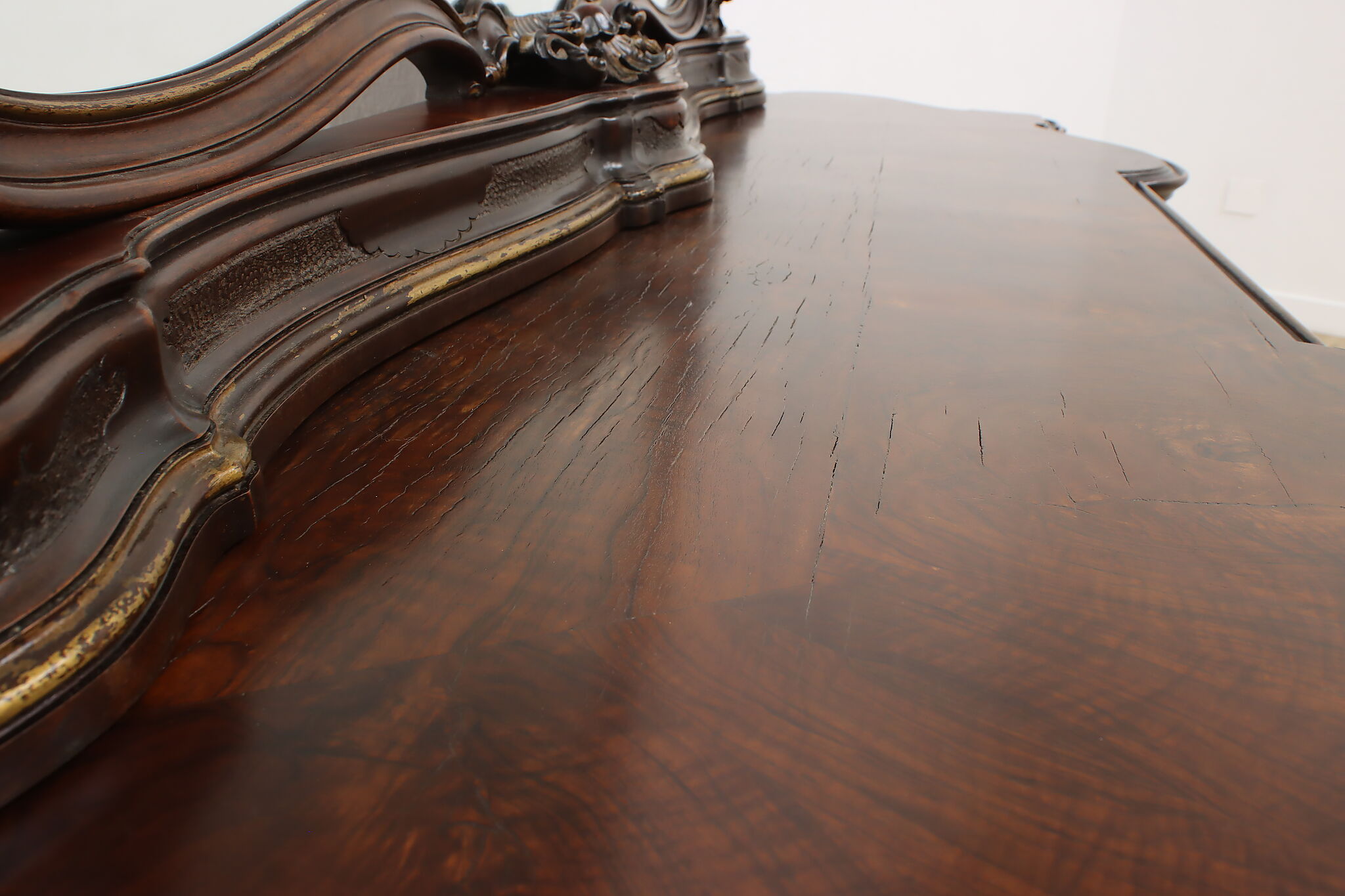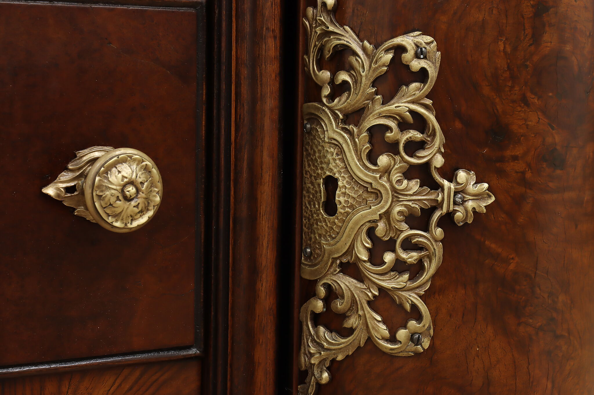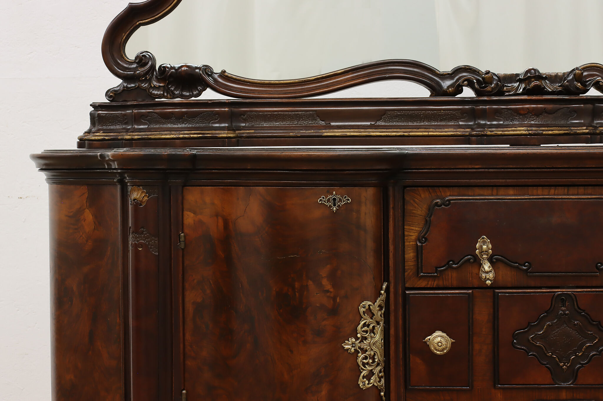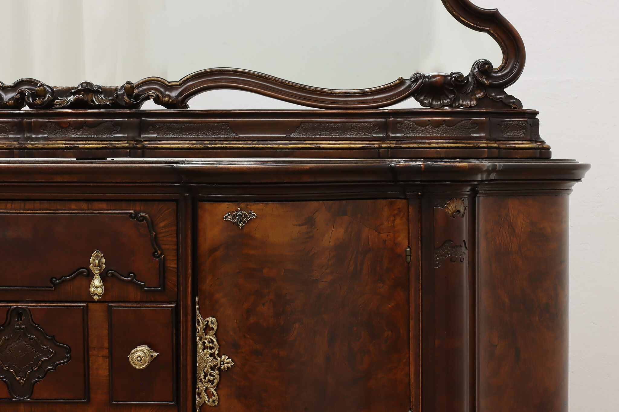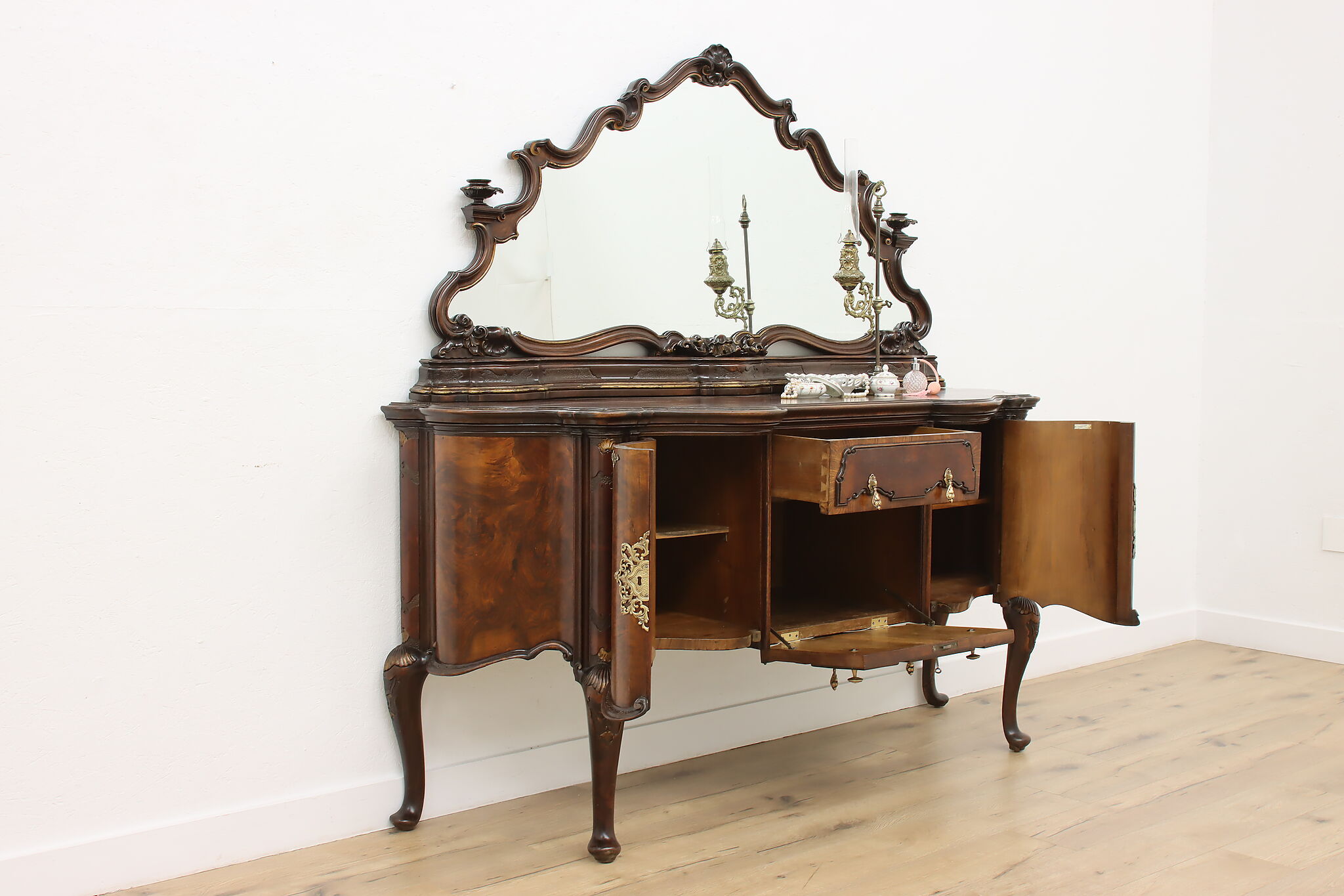 This extravagant Italian Rococo design sideboard, buffet or bar is a showstopping piece! With graceful curves and beautiful burl woods, this piece offers elegance and sophistication while commanding the attention of the room.