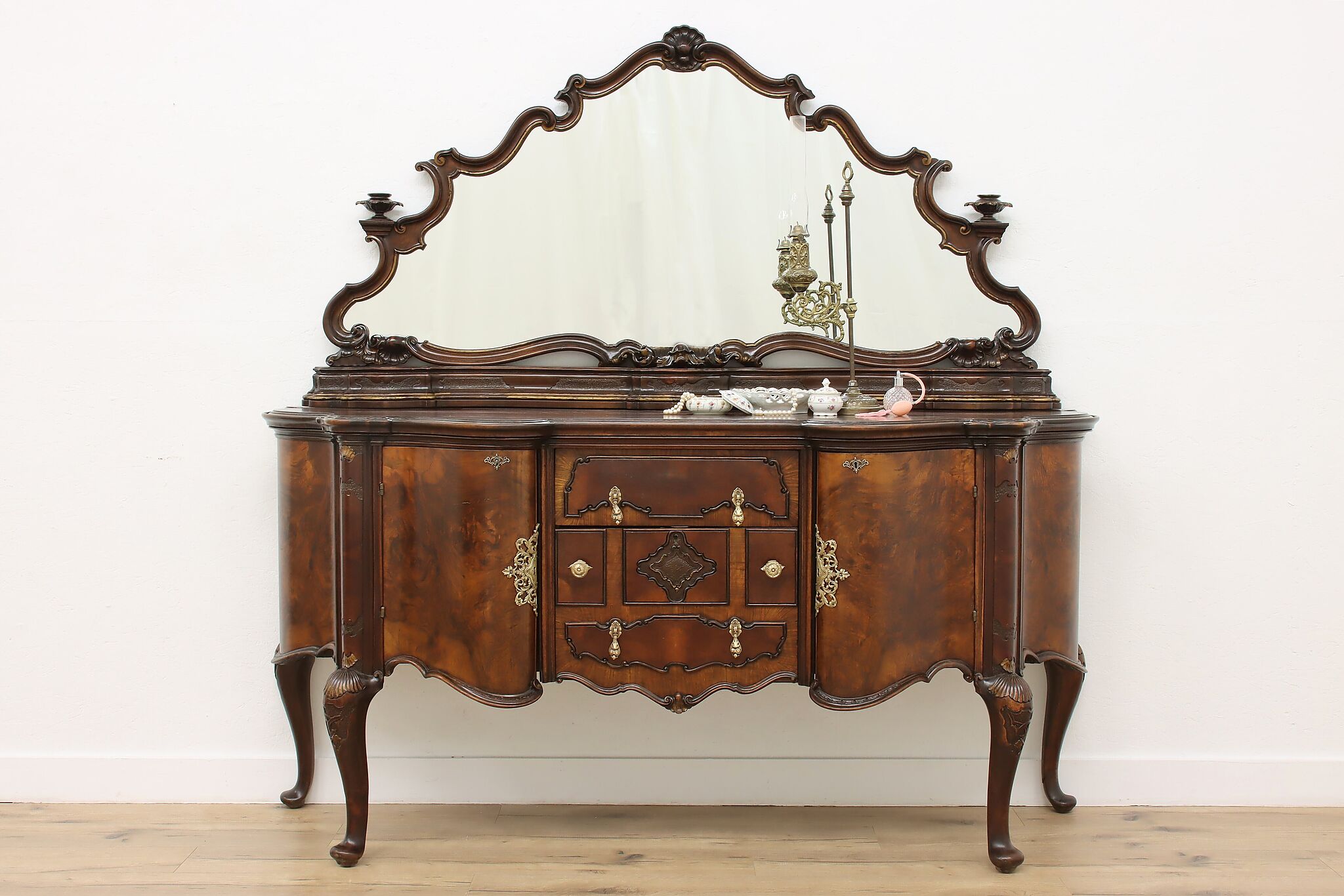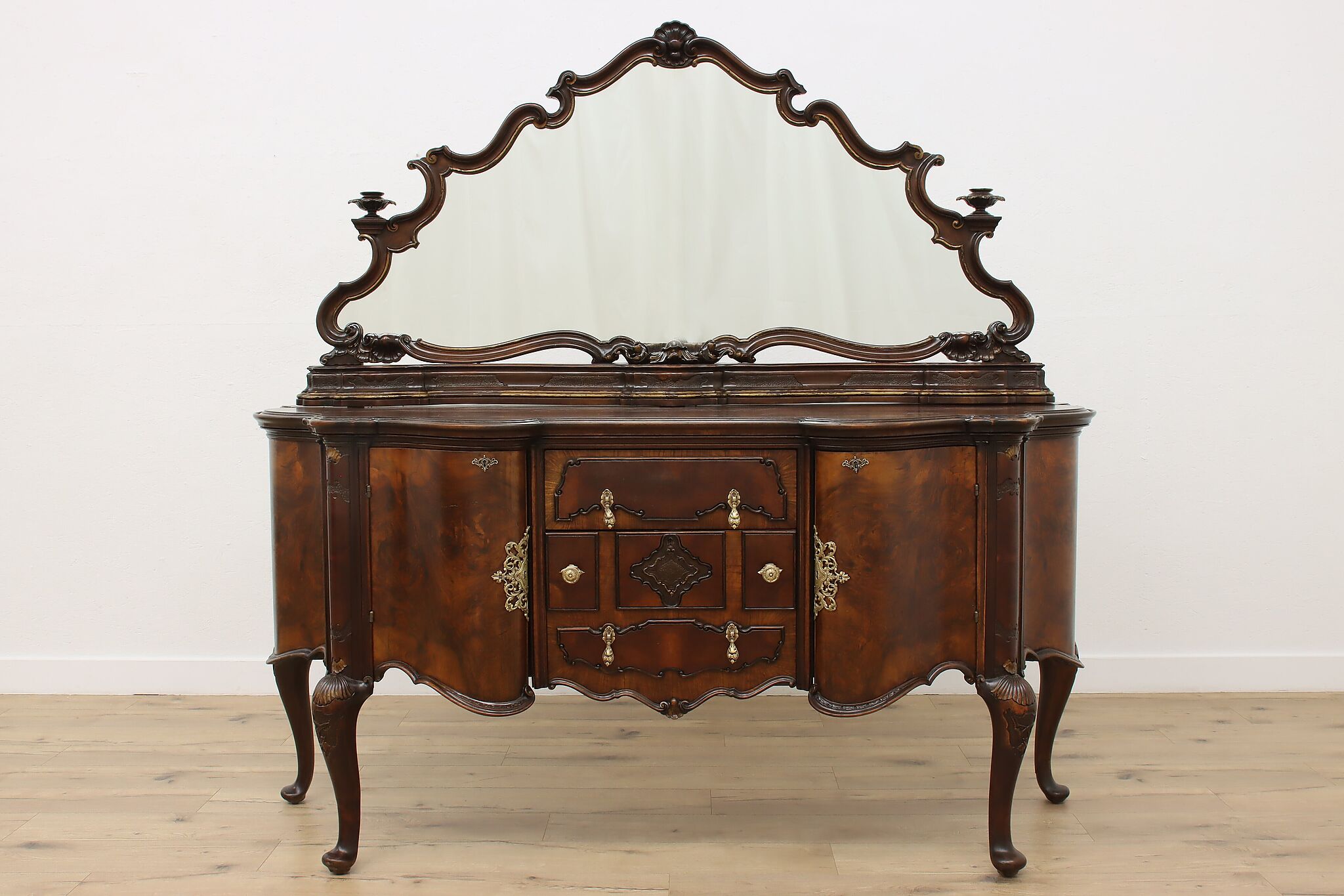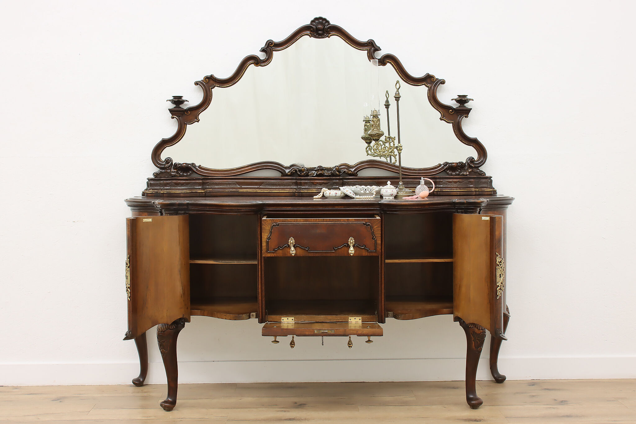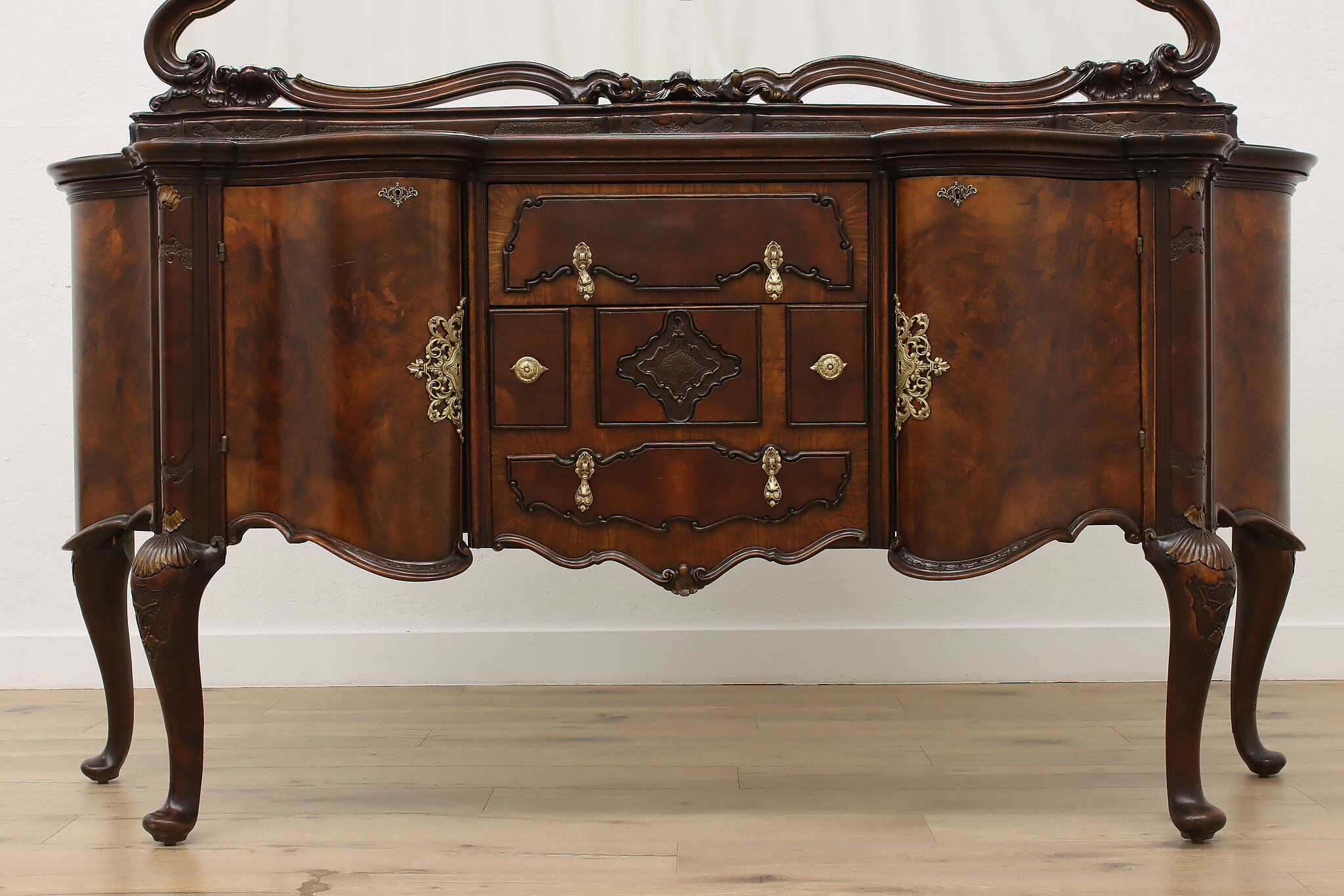 This extravagant Italian Rococo design sideboard, buffet or bar is a showstopping piece! With graceful curves and beautiful burl woods, this piece offers elegance and sophistication while commanding the attention of the room.