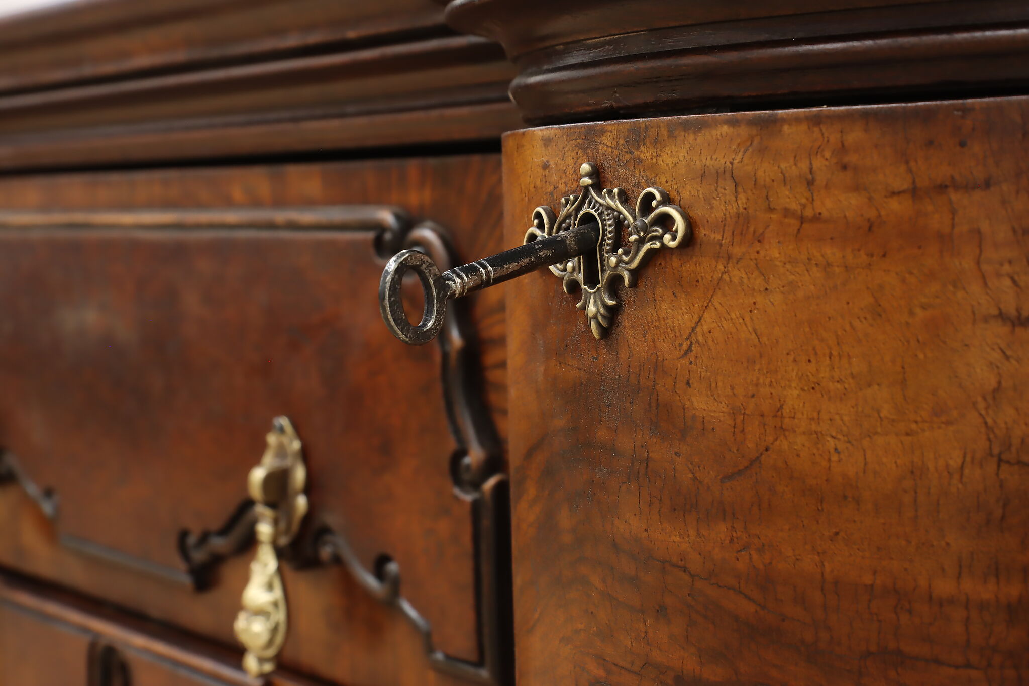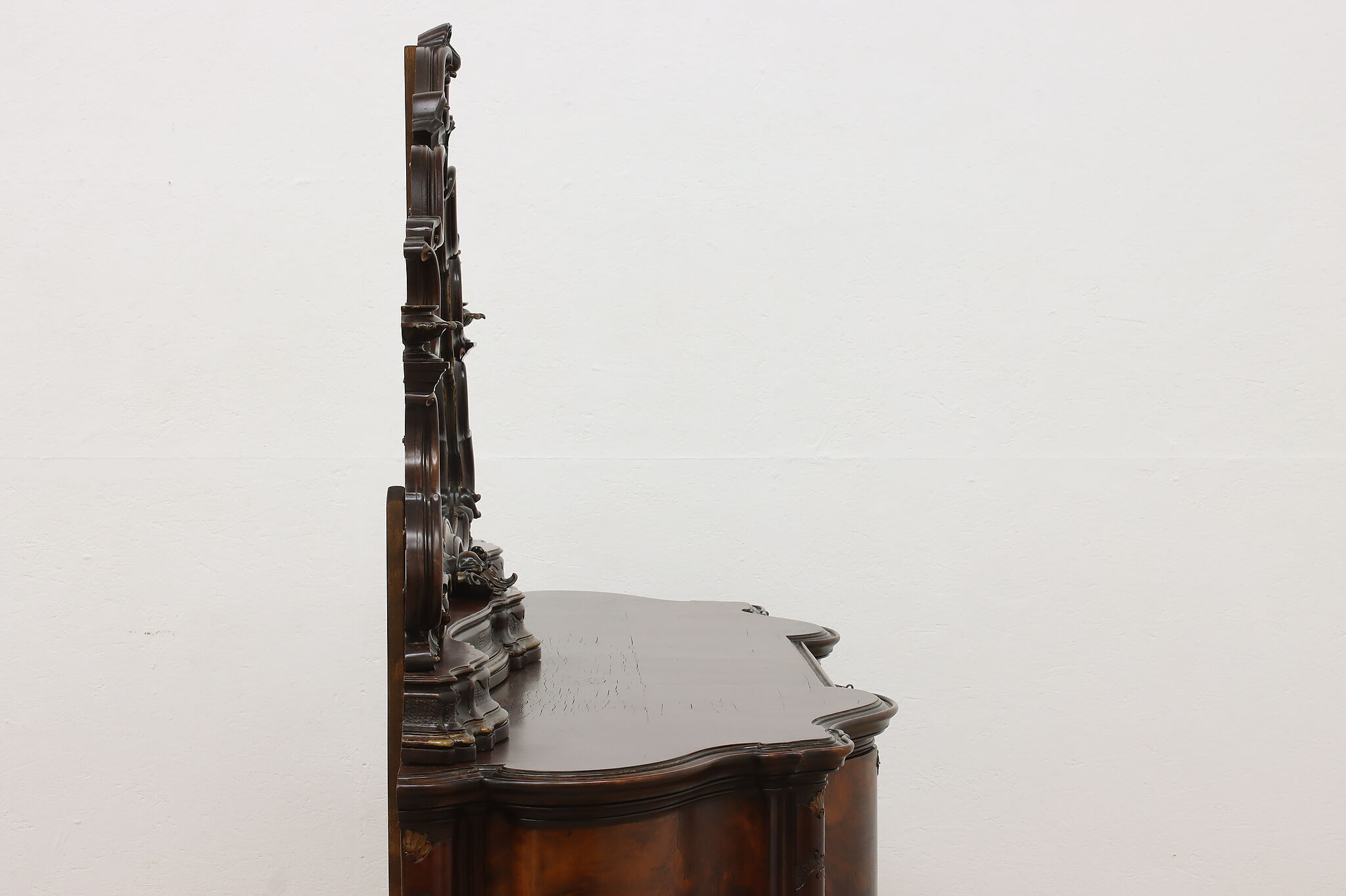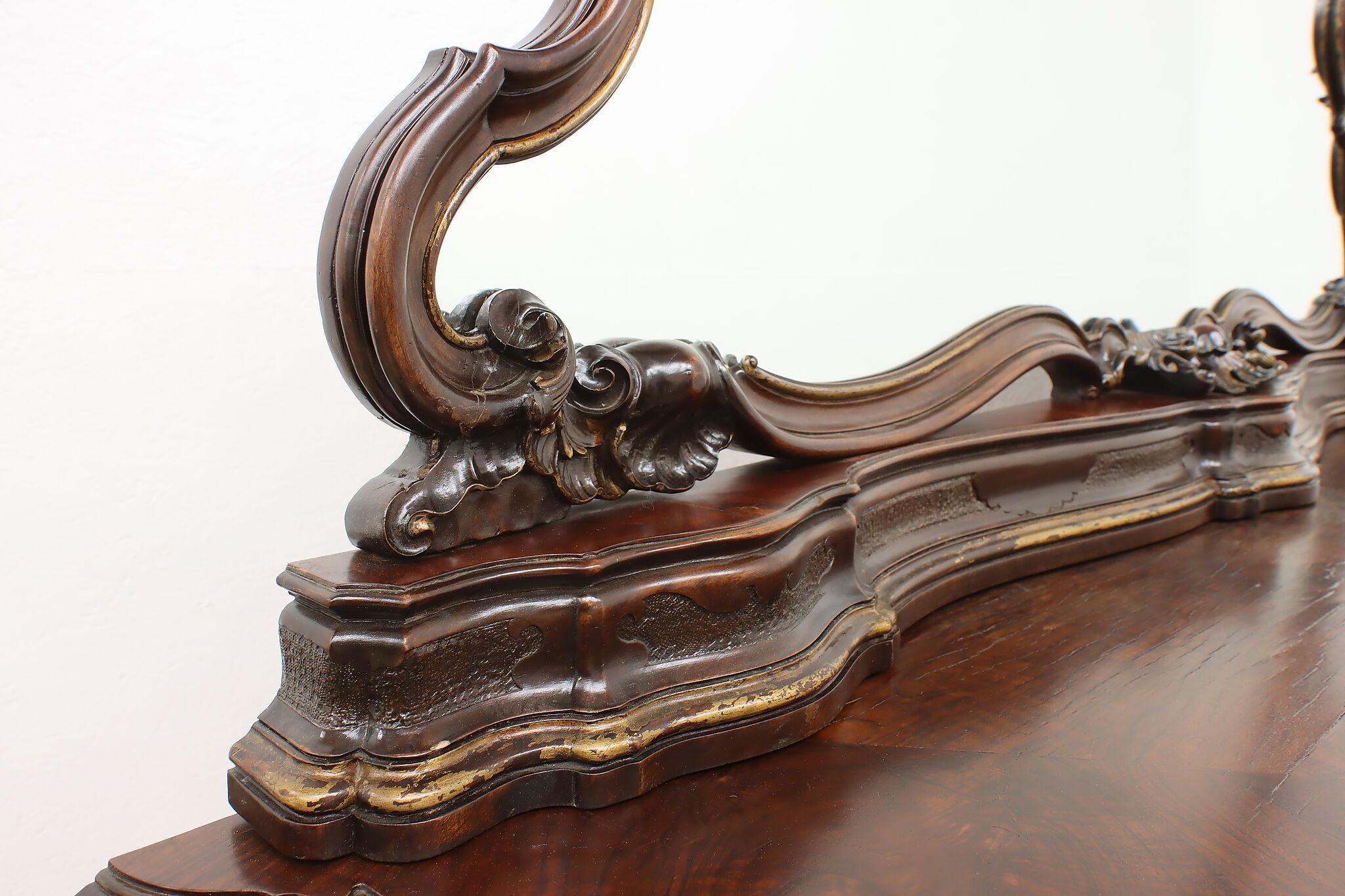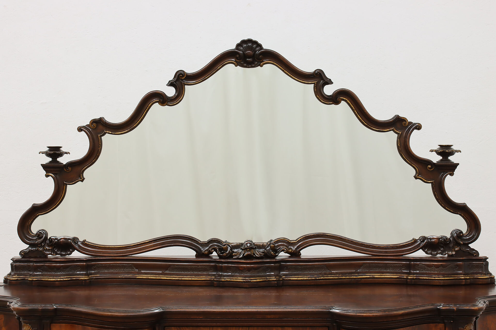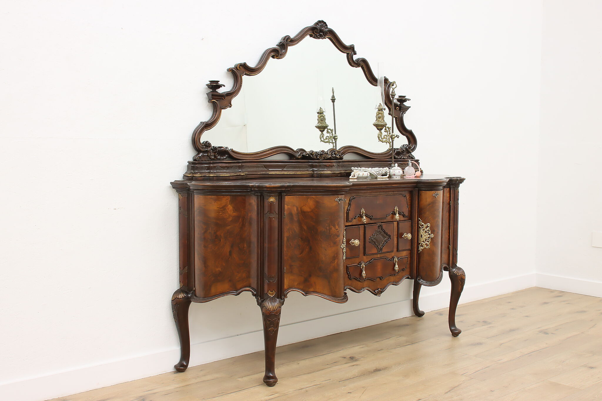 This extravagant Italian Rococo design sideboard, buffet or bar is a showstopping piece! With graceful curves and beautiful burl woods, this piece offers elegance and sophistication while commanding the attention of the room.
