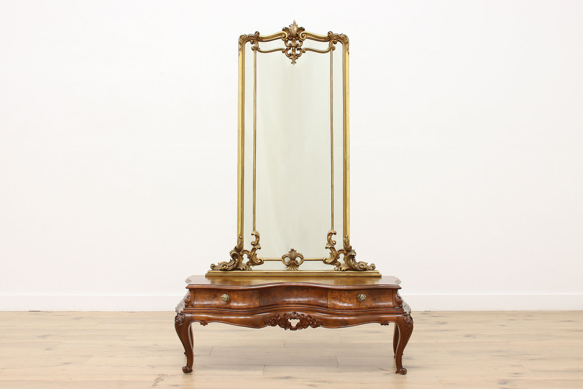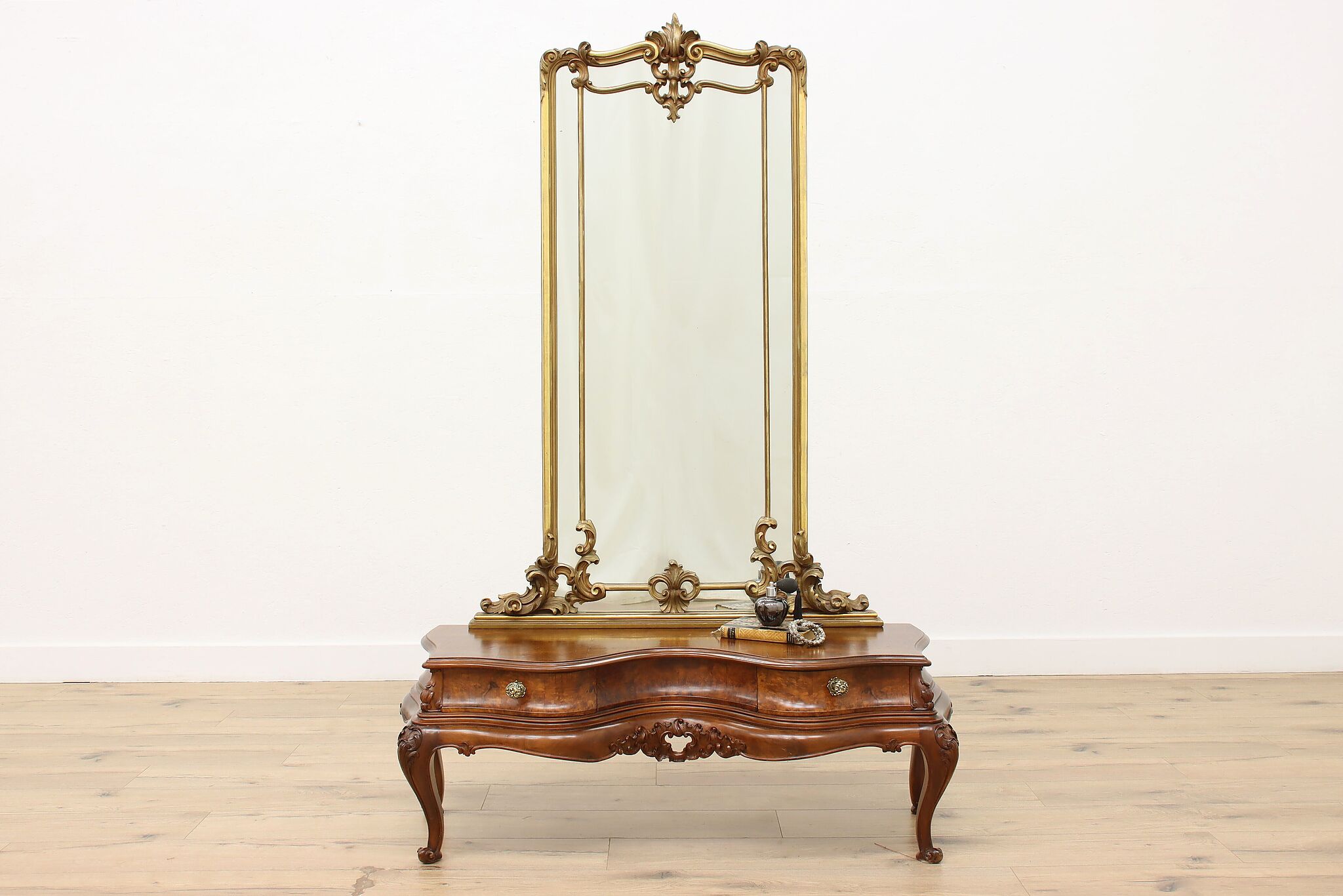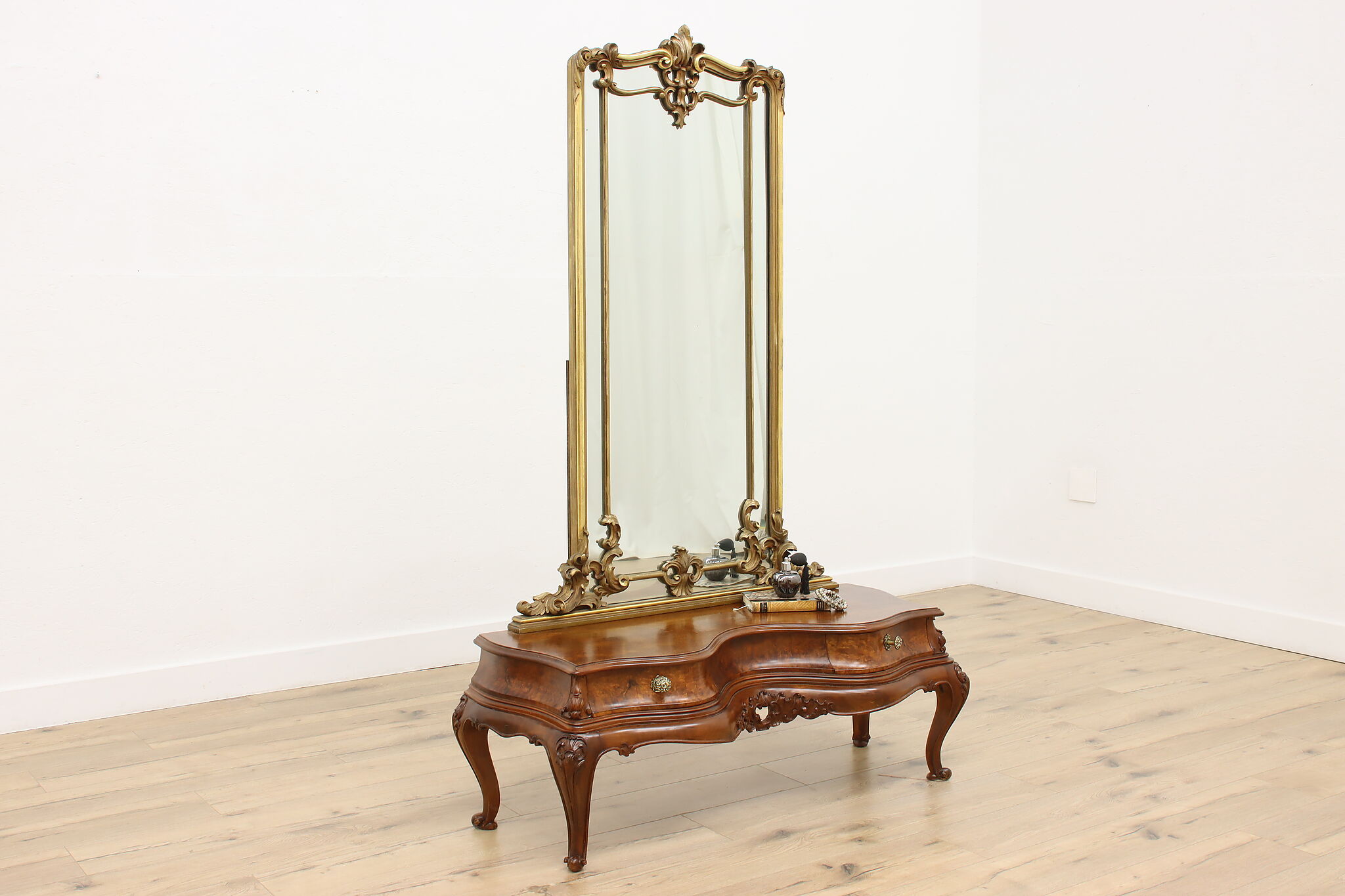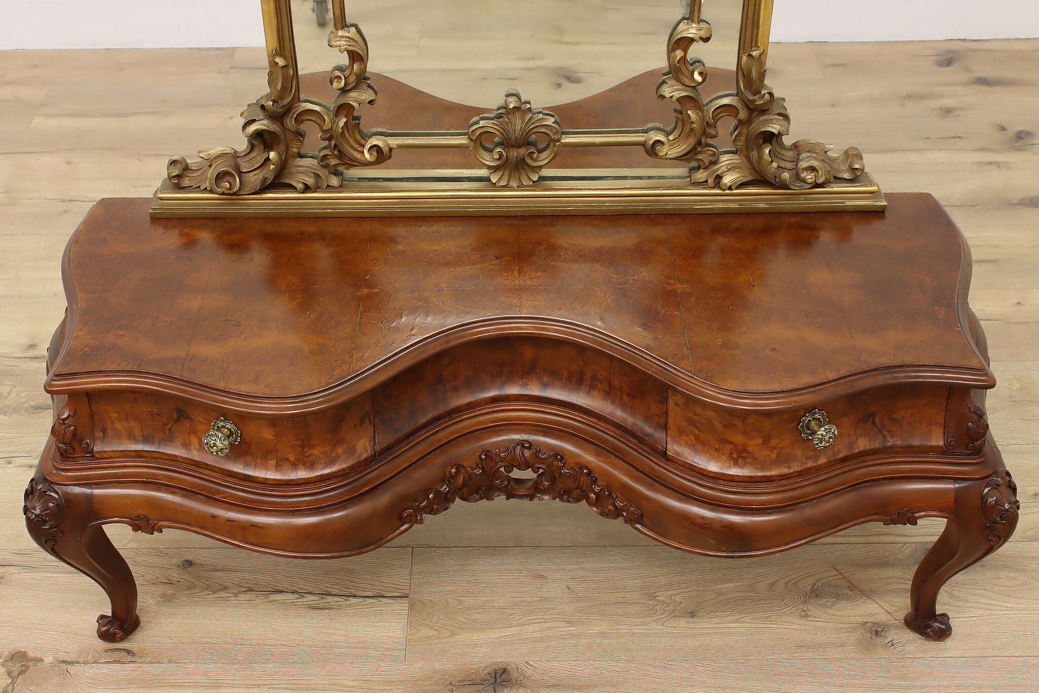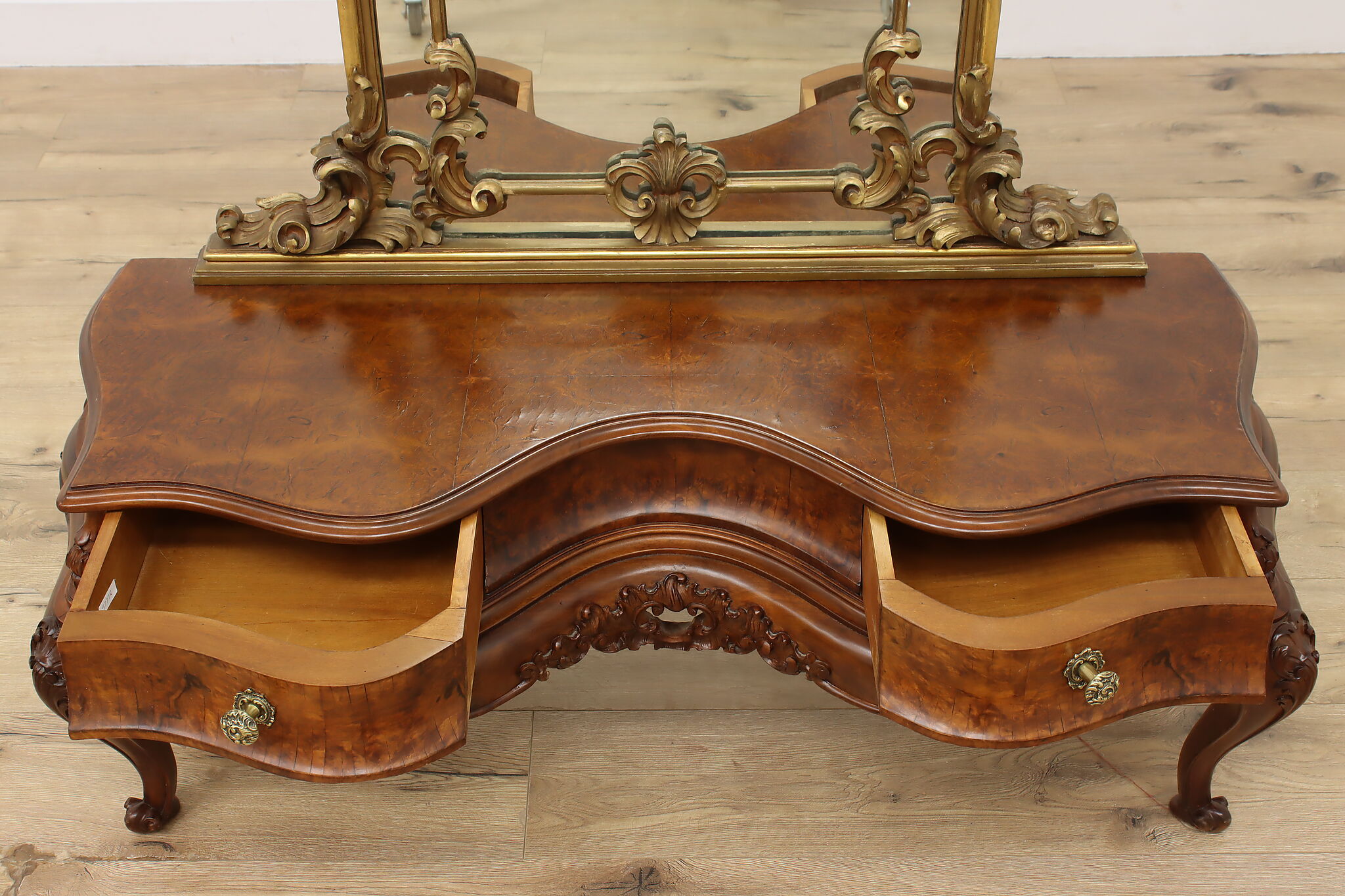 This gorgeous Rococo design "bombe" vanity or dressing table is a lavish piece to add elegance to your boudoir.