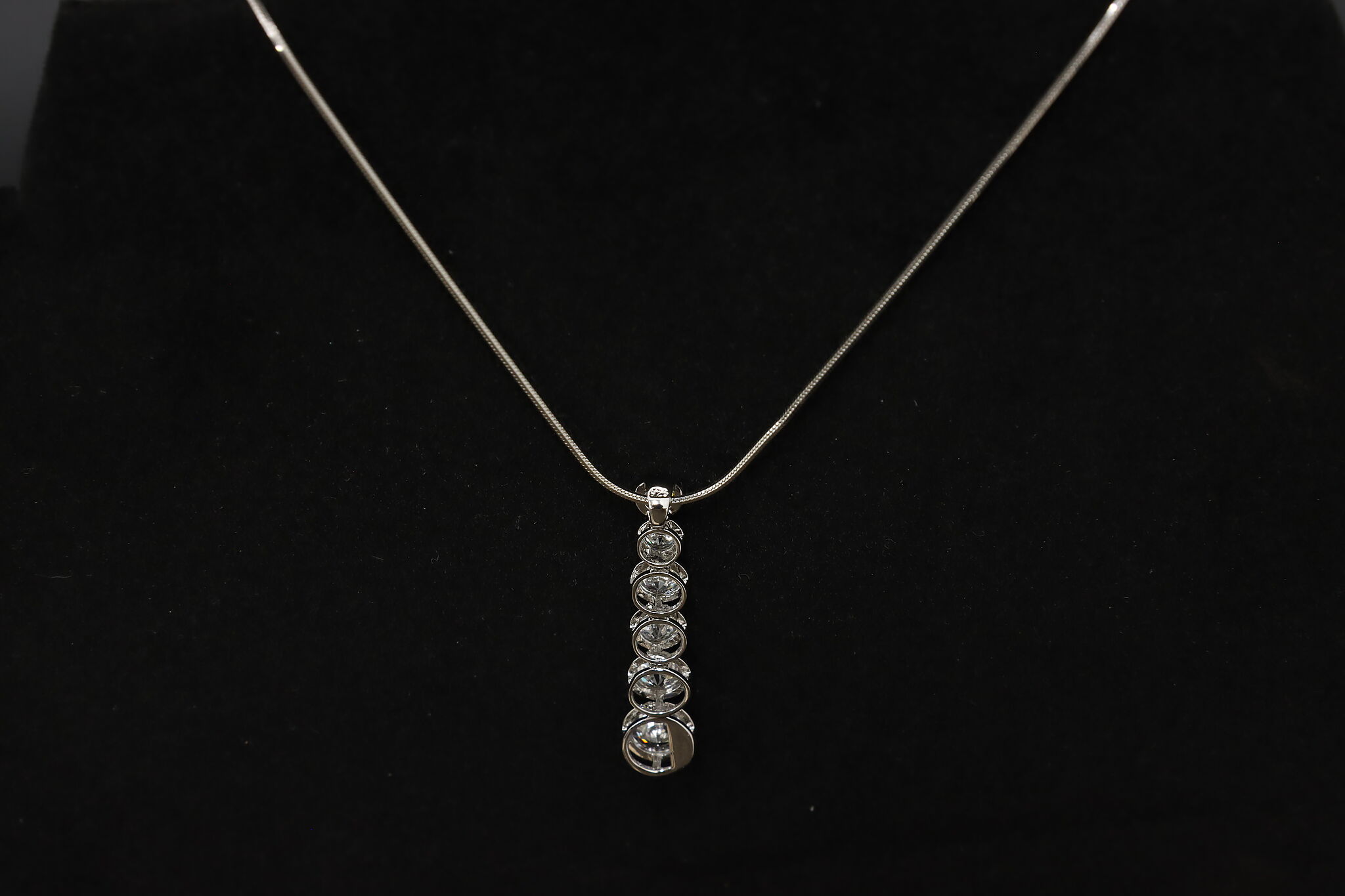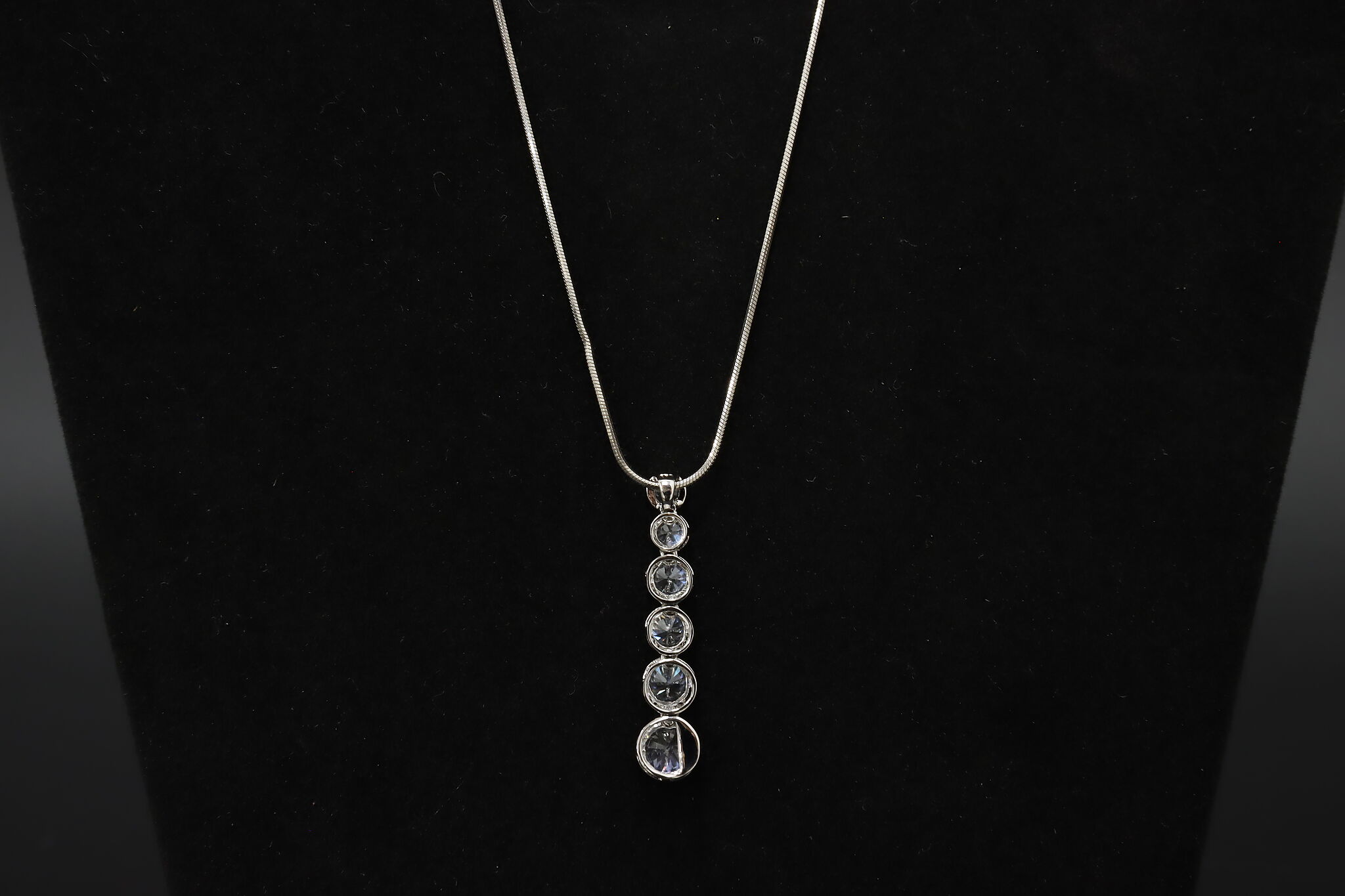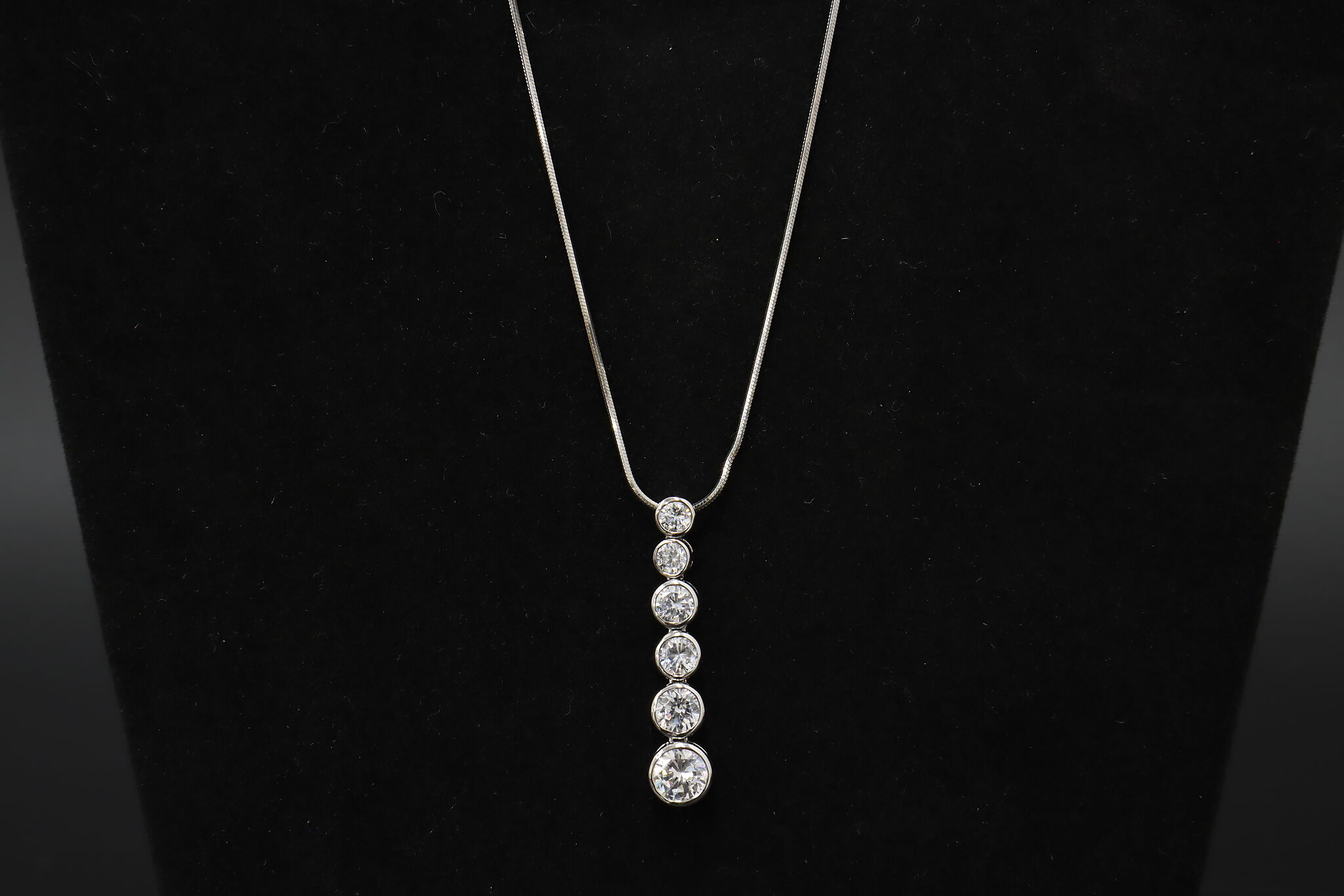 The six round cut white cubic zirconia gemstones on this pendant necklace are simply dazzling!