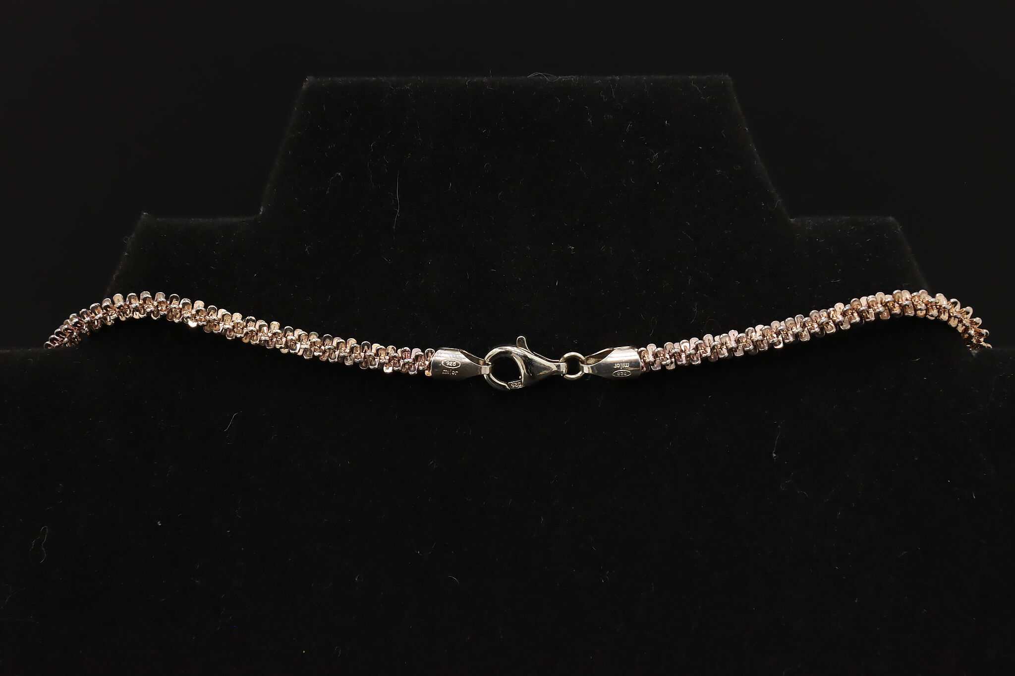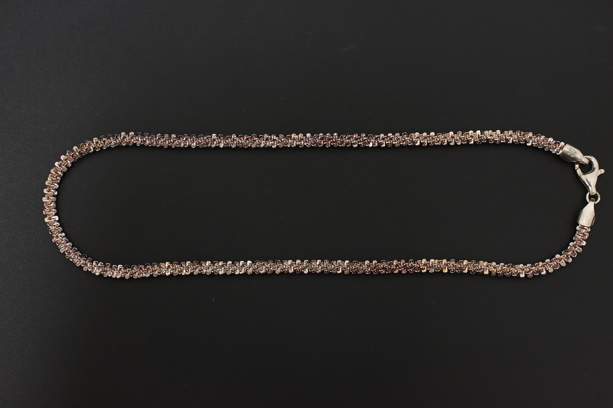 The beautiful textured chain of this Italian necklace has hints of gold for a sparkly, eye-catching look.