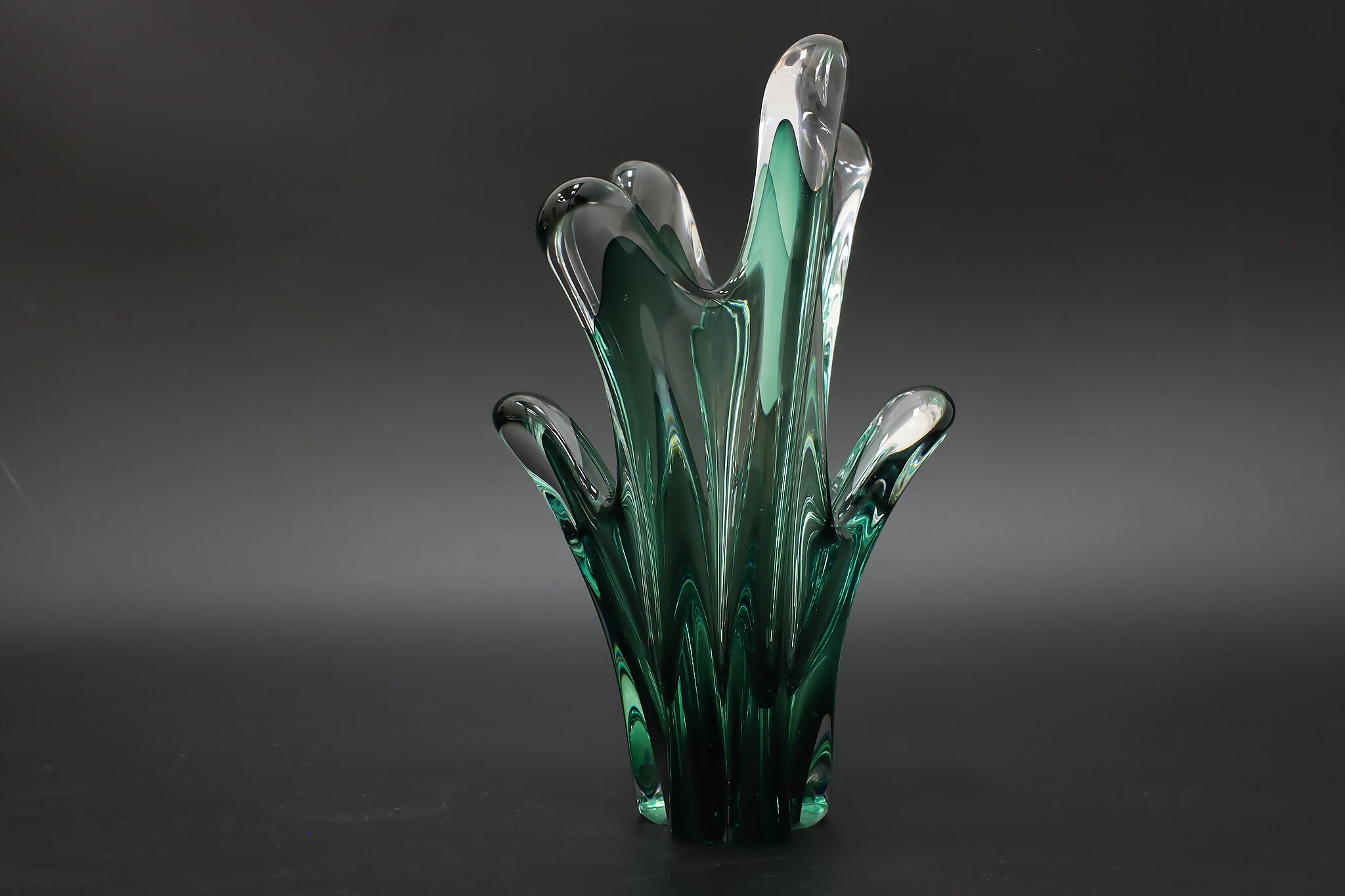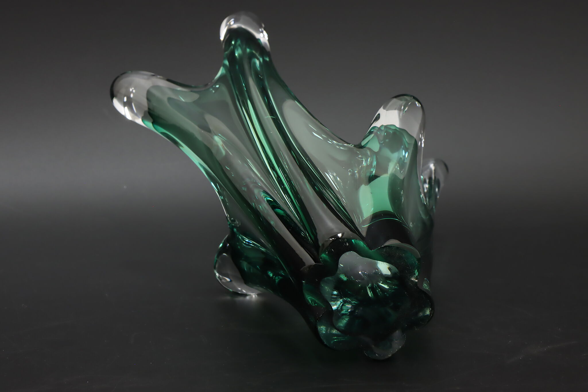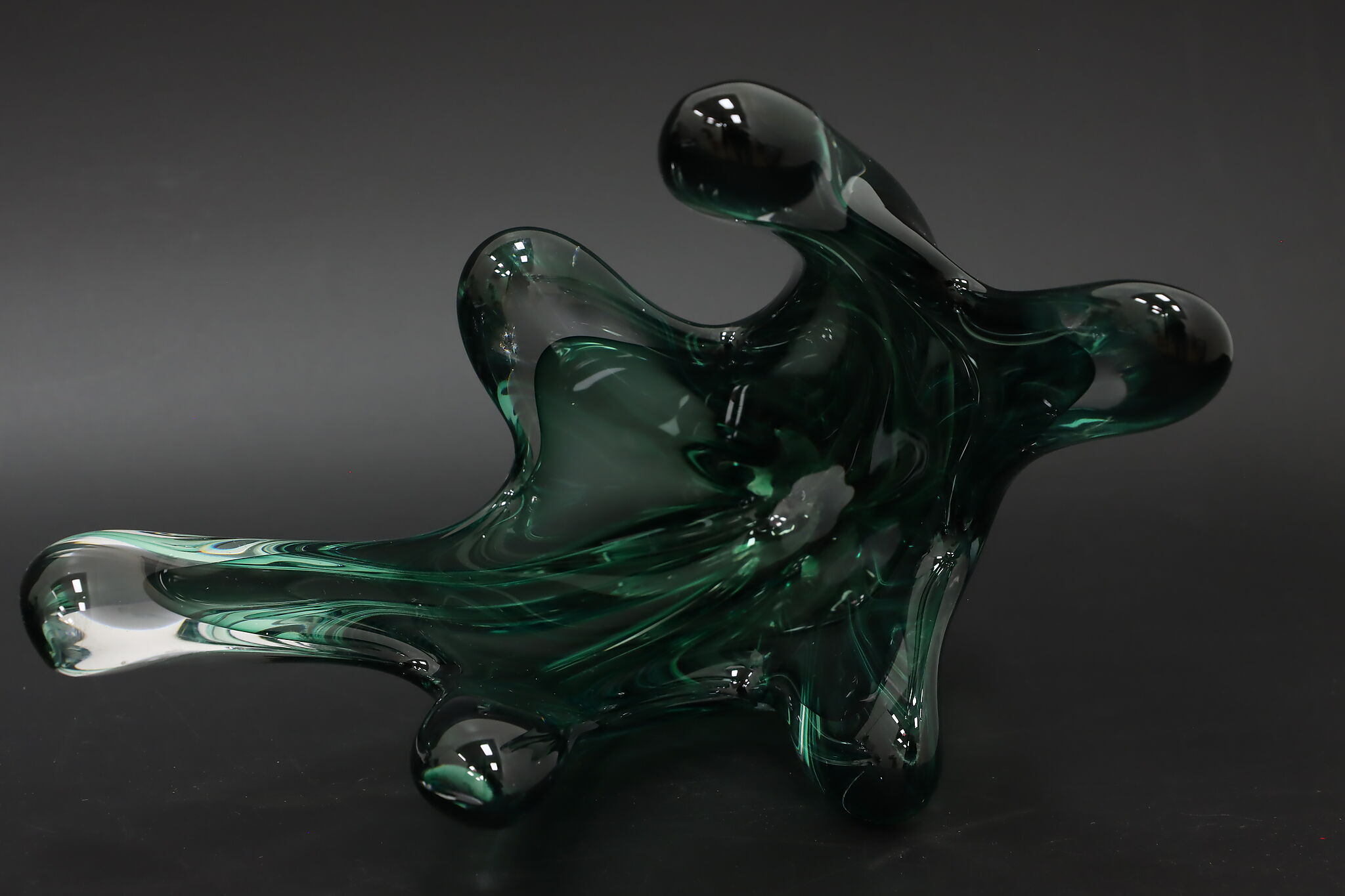 The deep emerald green glass is beautiful on this Italian sculpture.