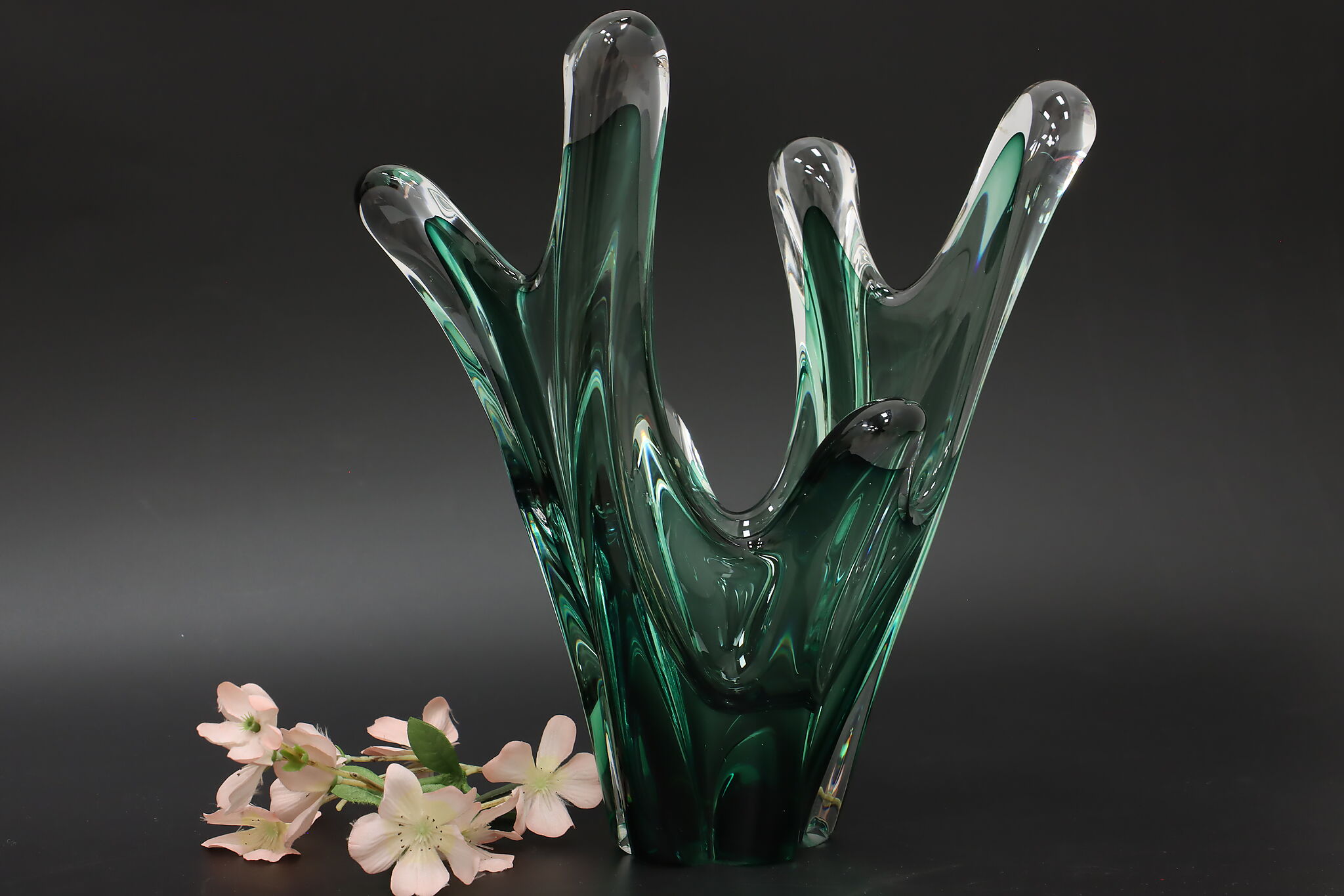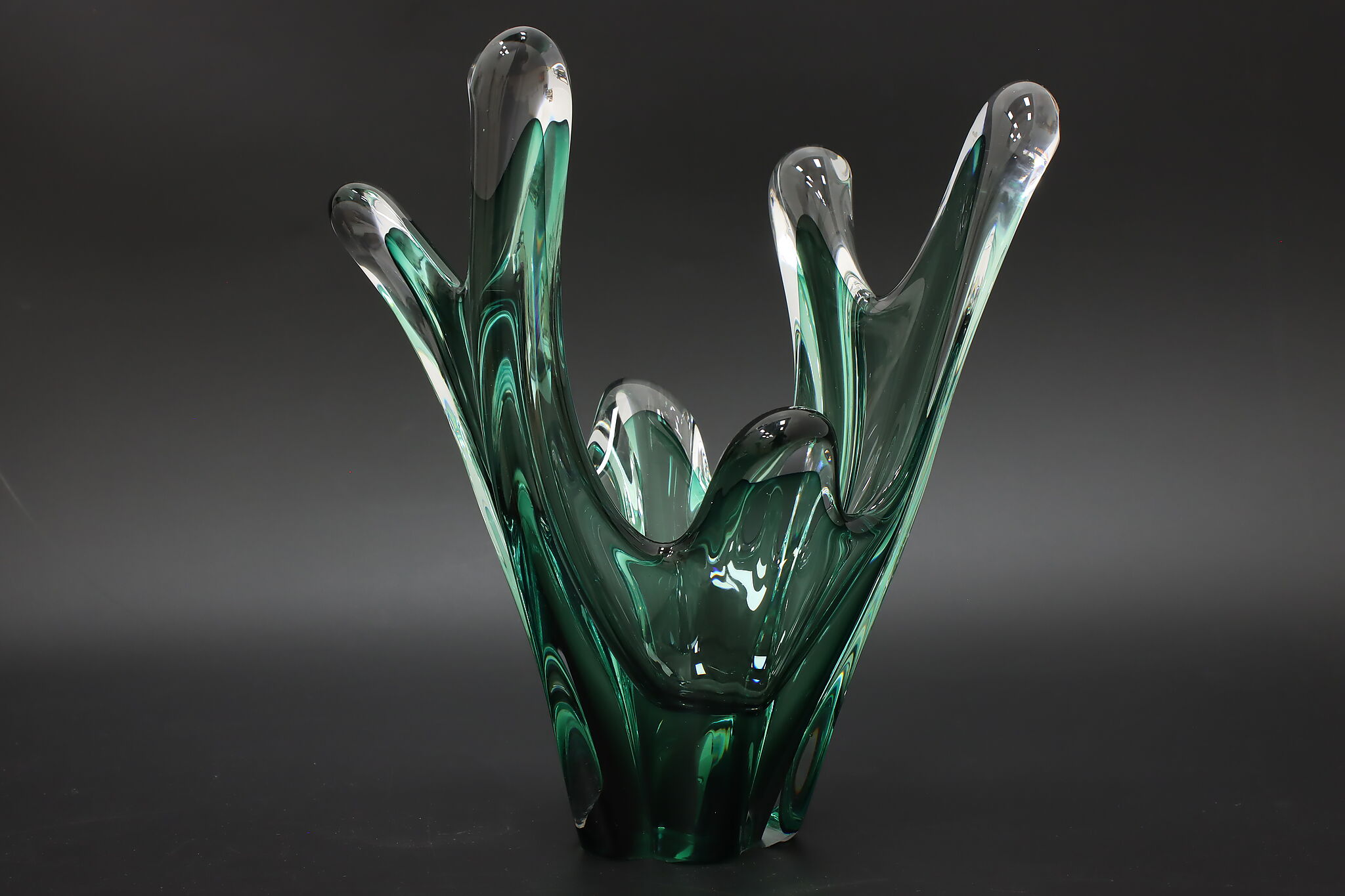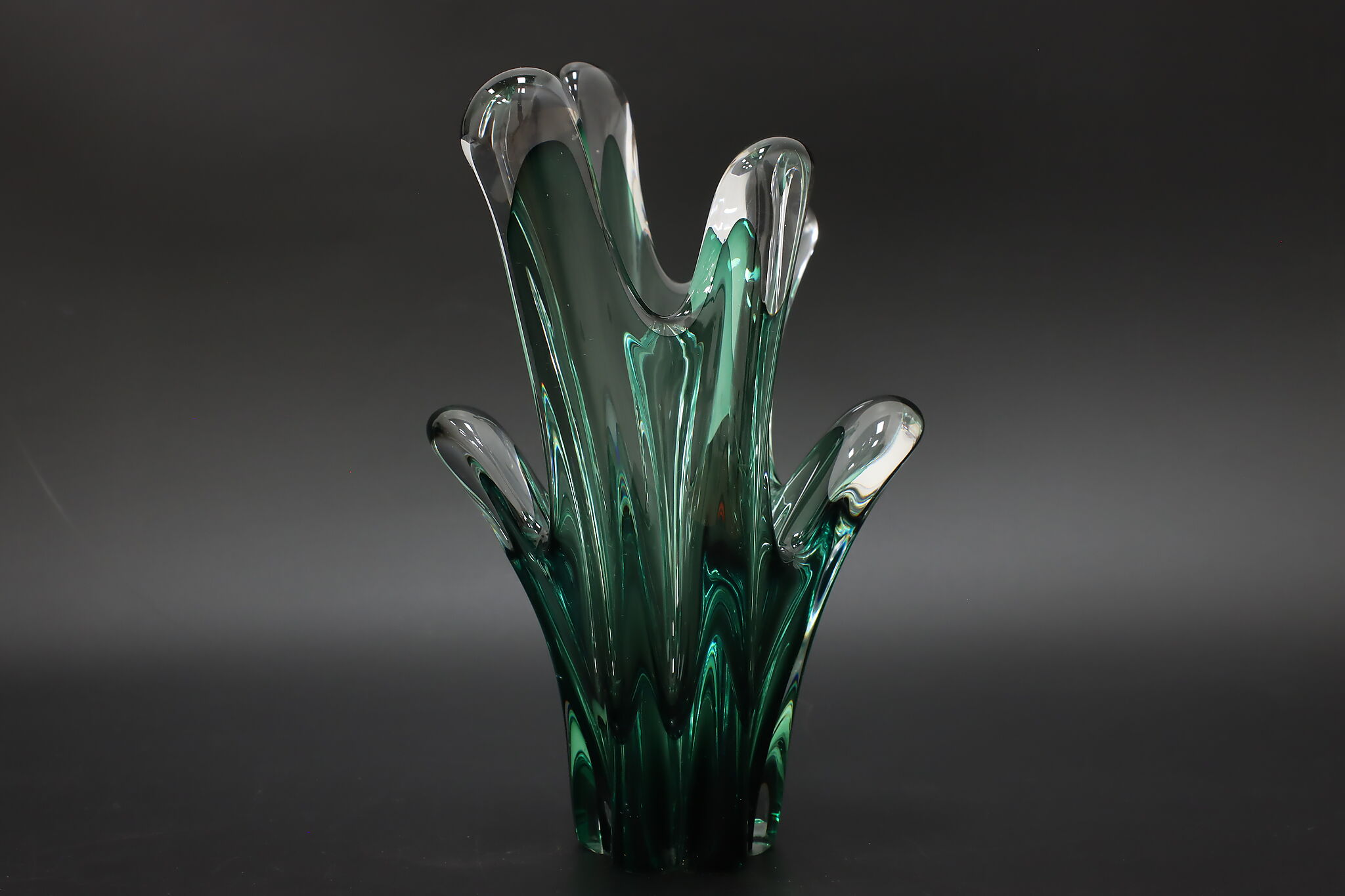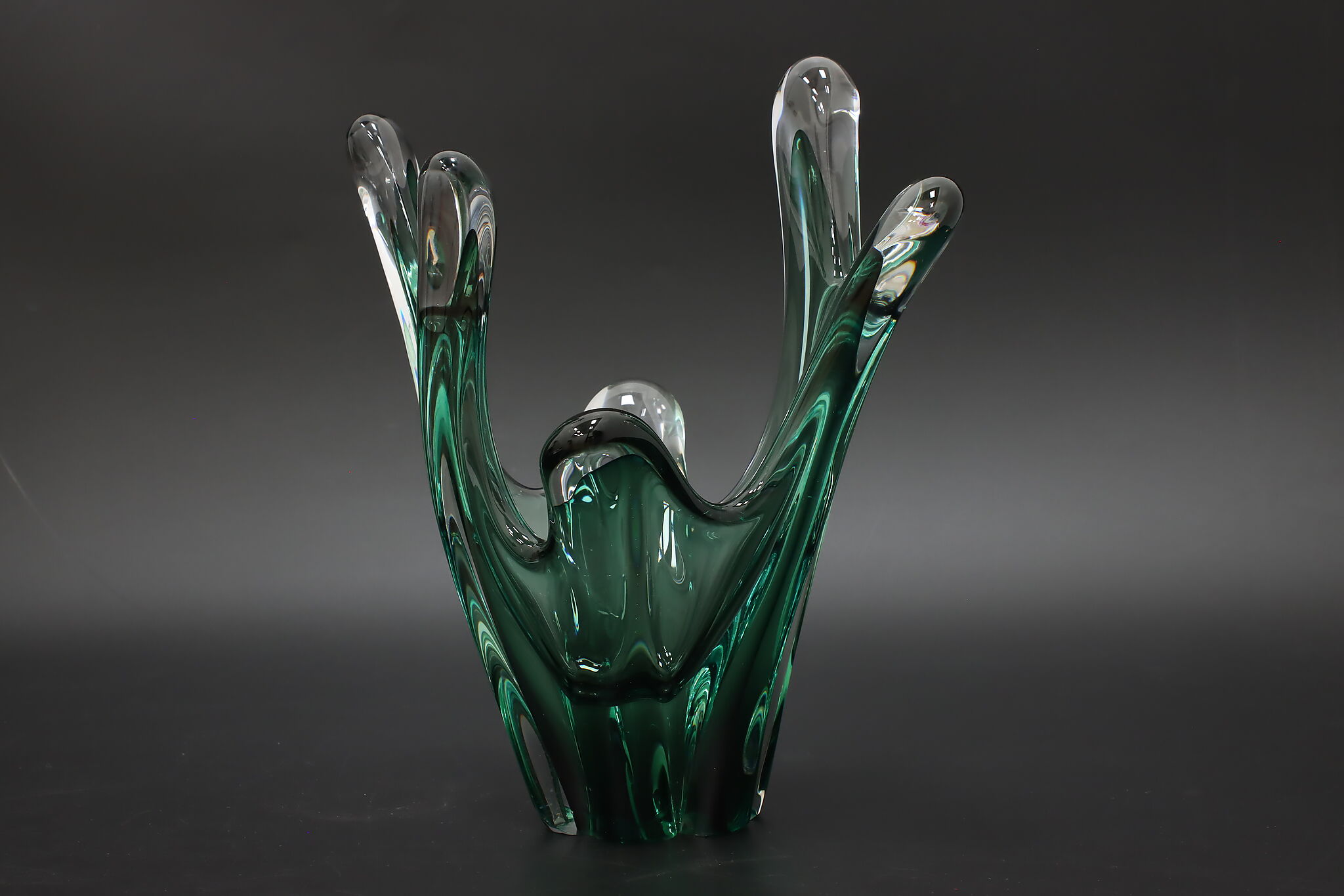 The deep emerald green glass is beautiful on this Italian sculpture.