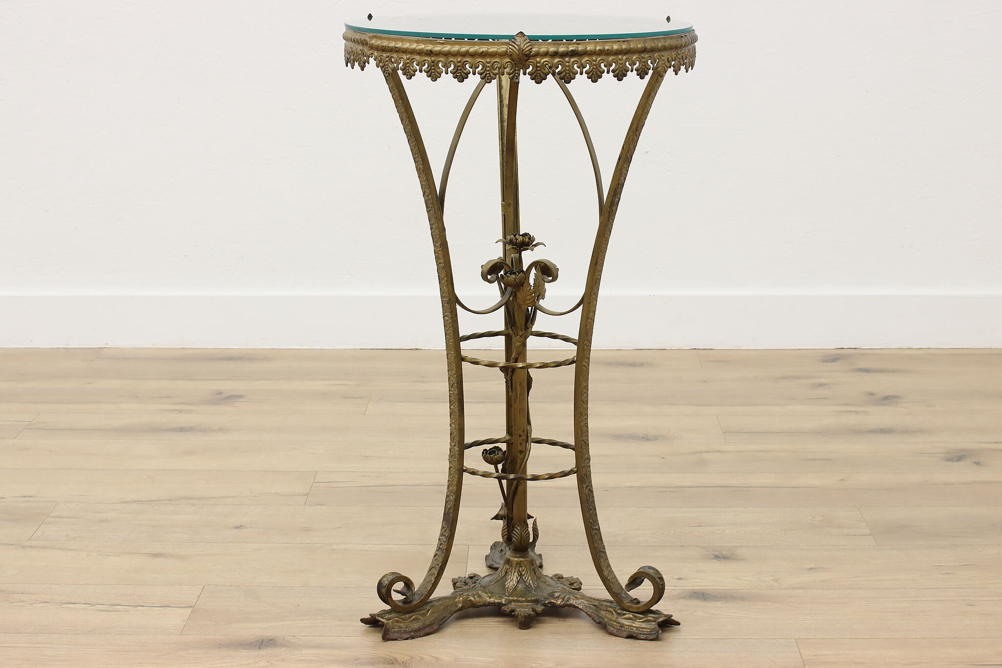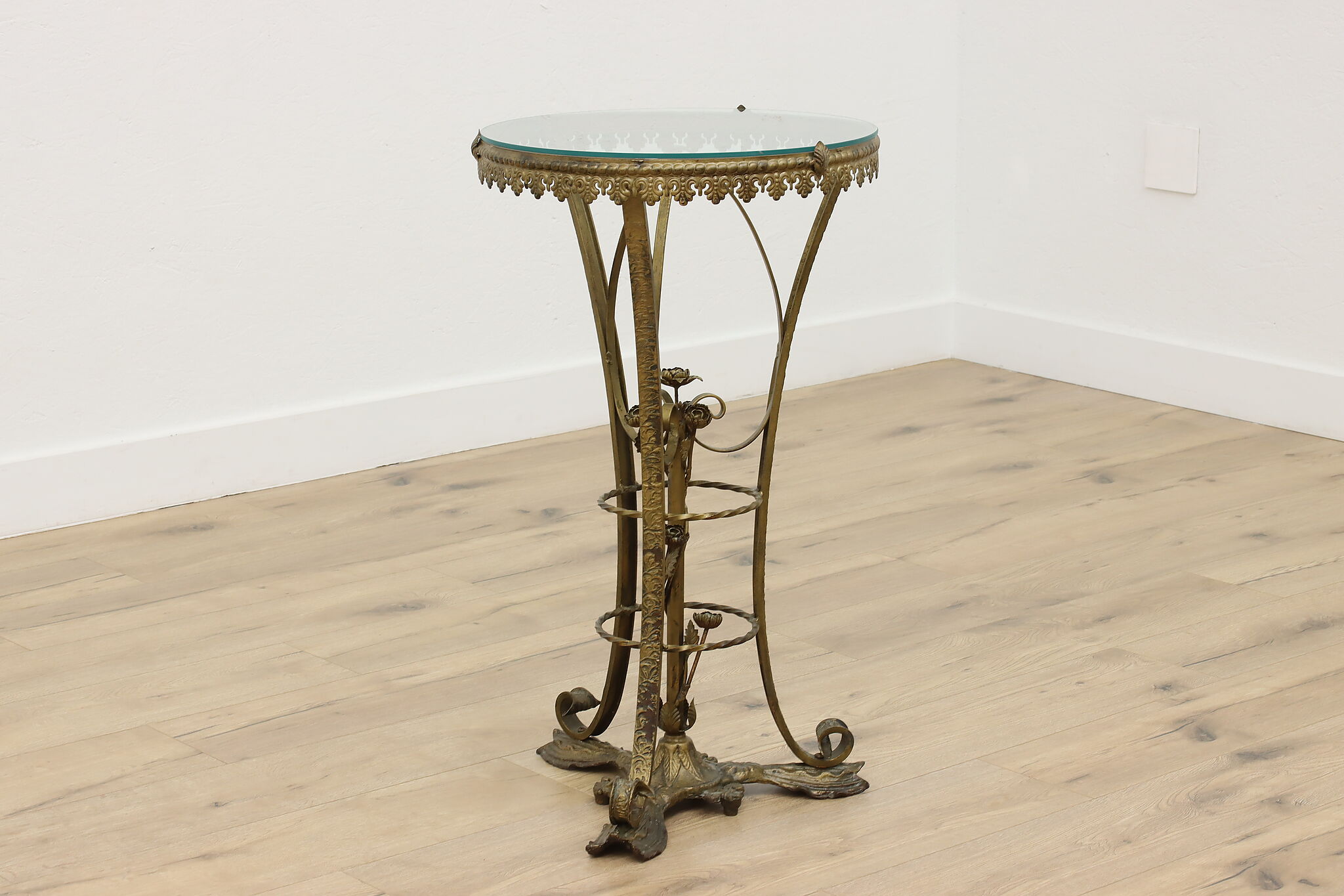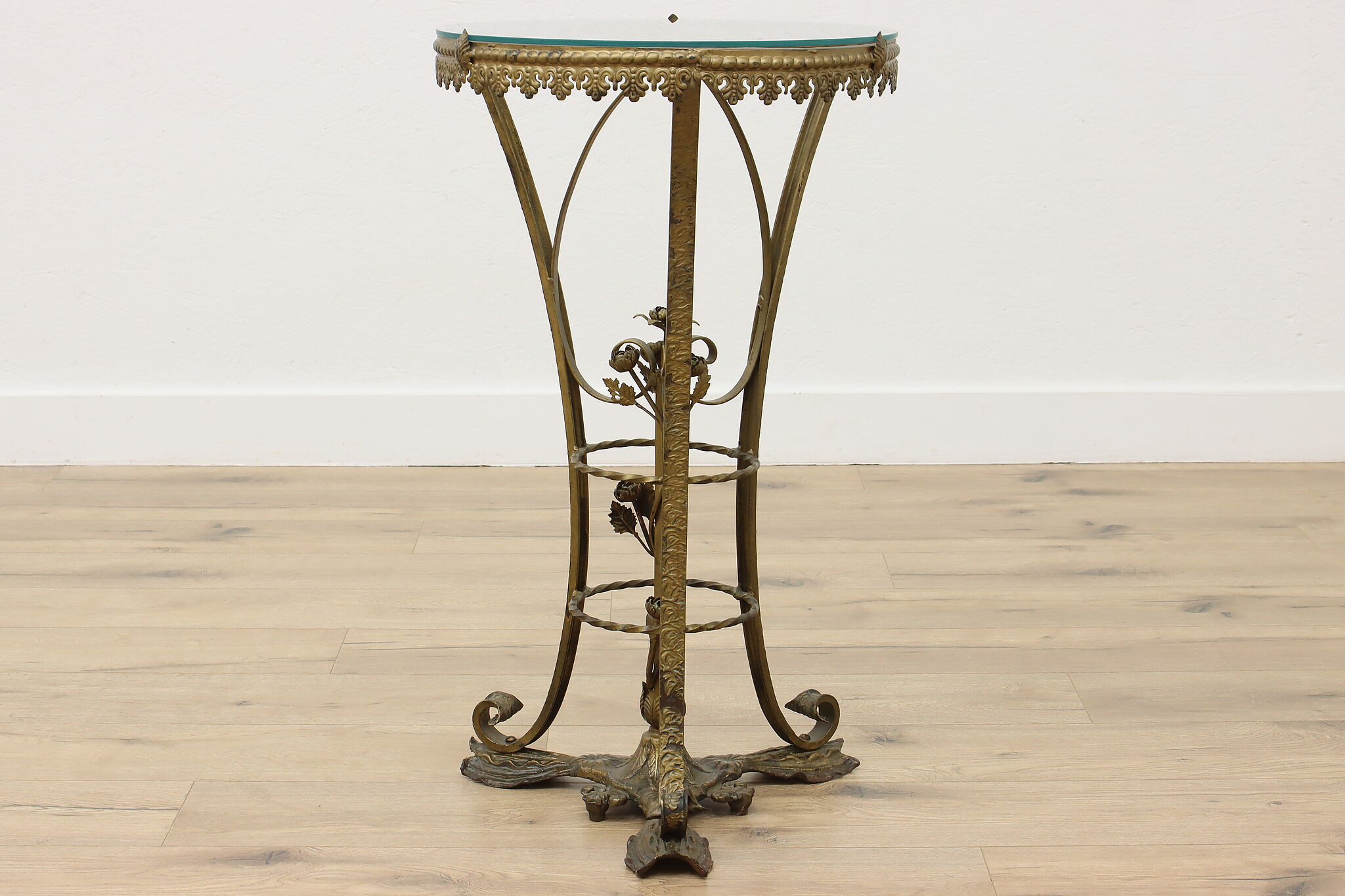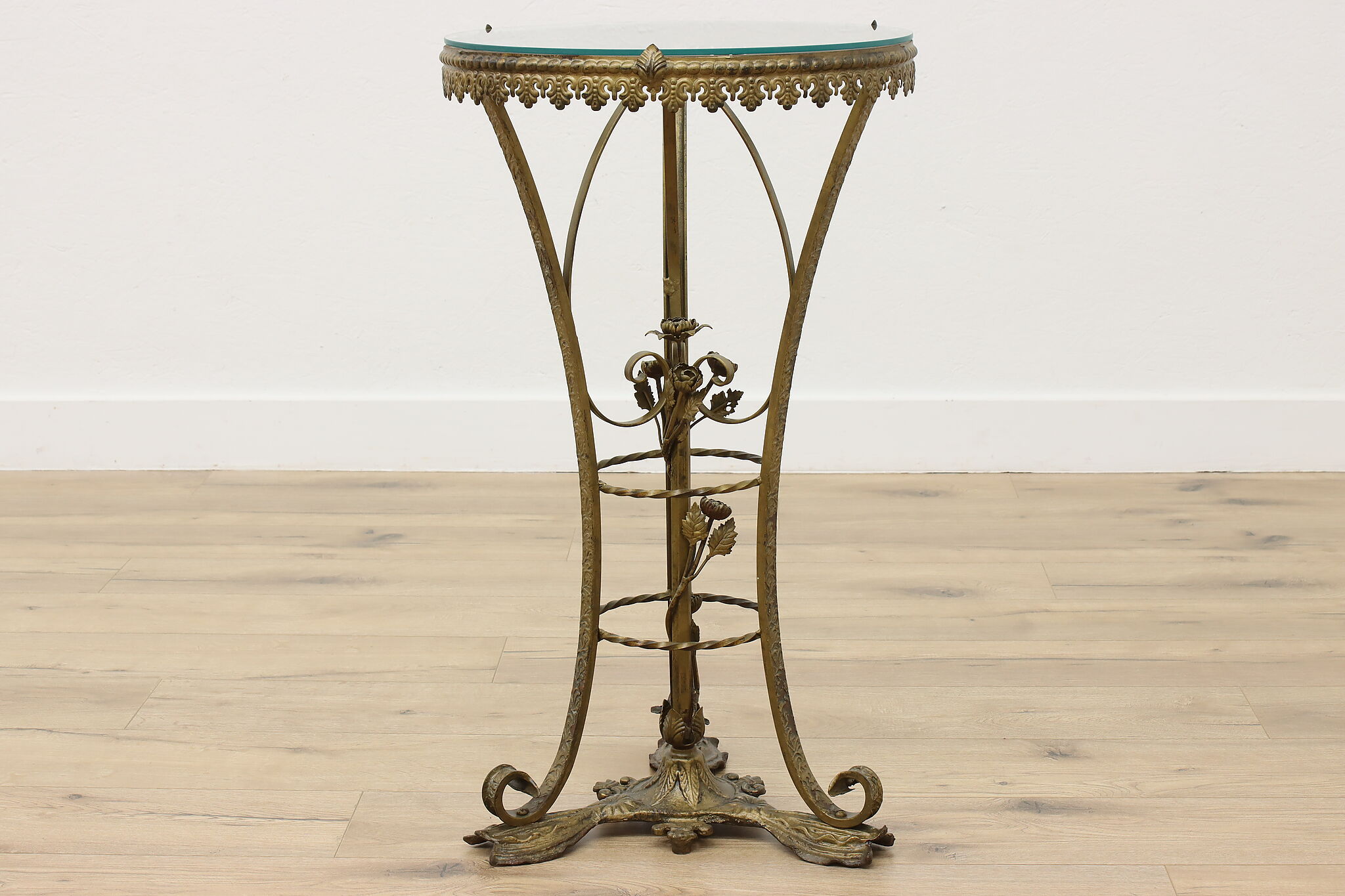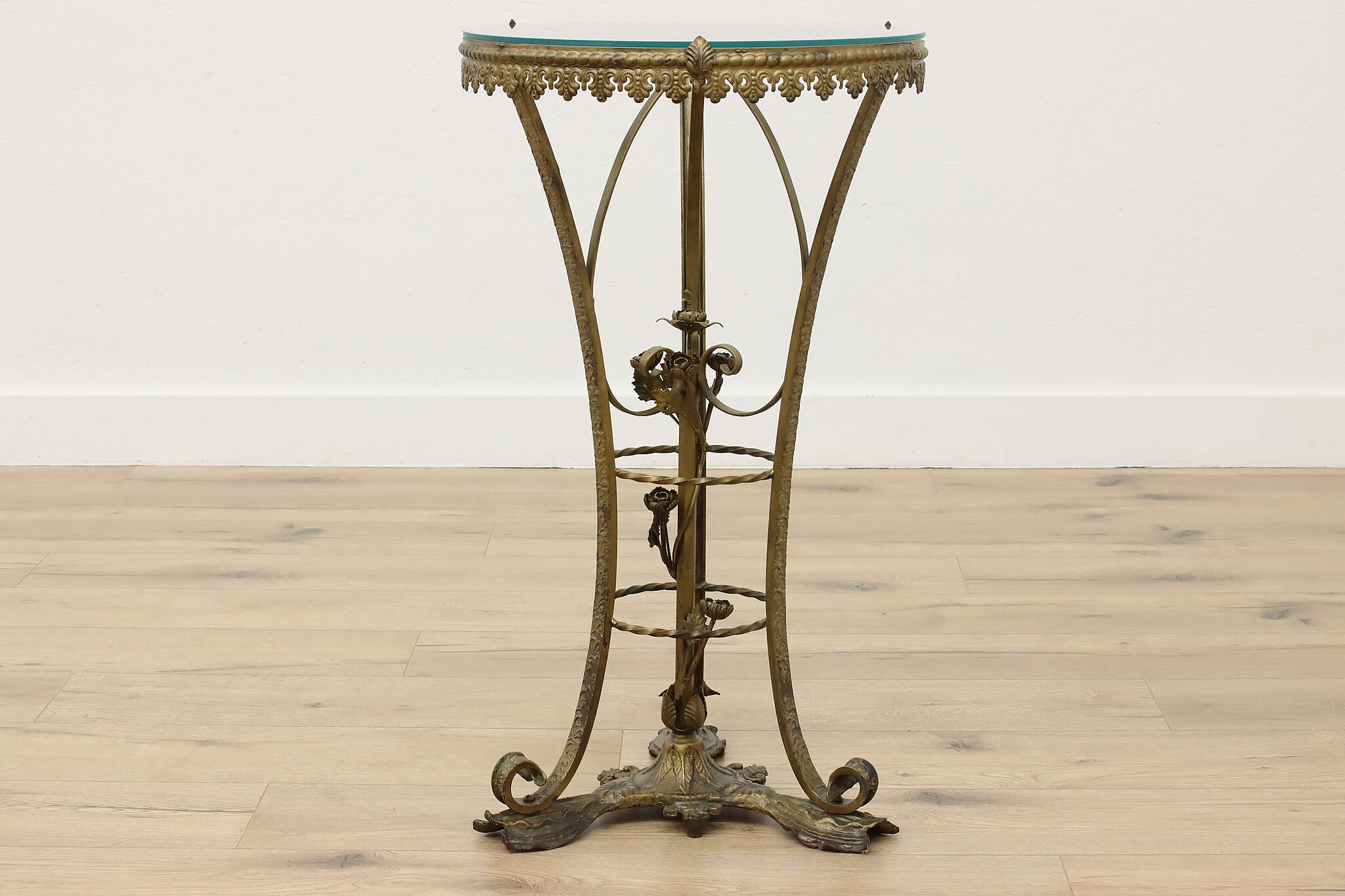 This elegant sculpture pedestal or plant stand has gorgeous wrought iron roses that will add to the beauty of the object you display!