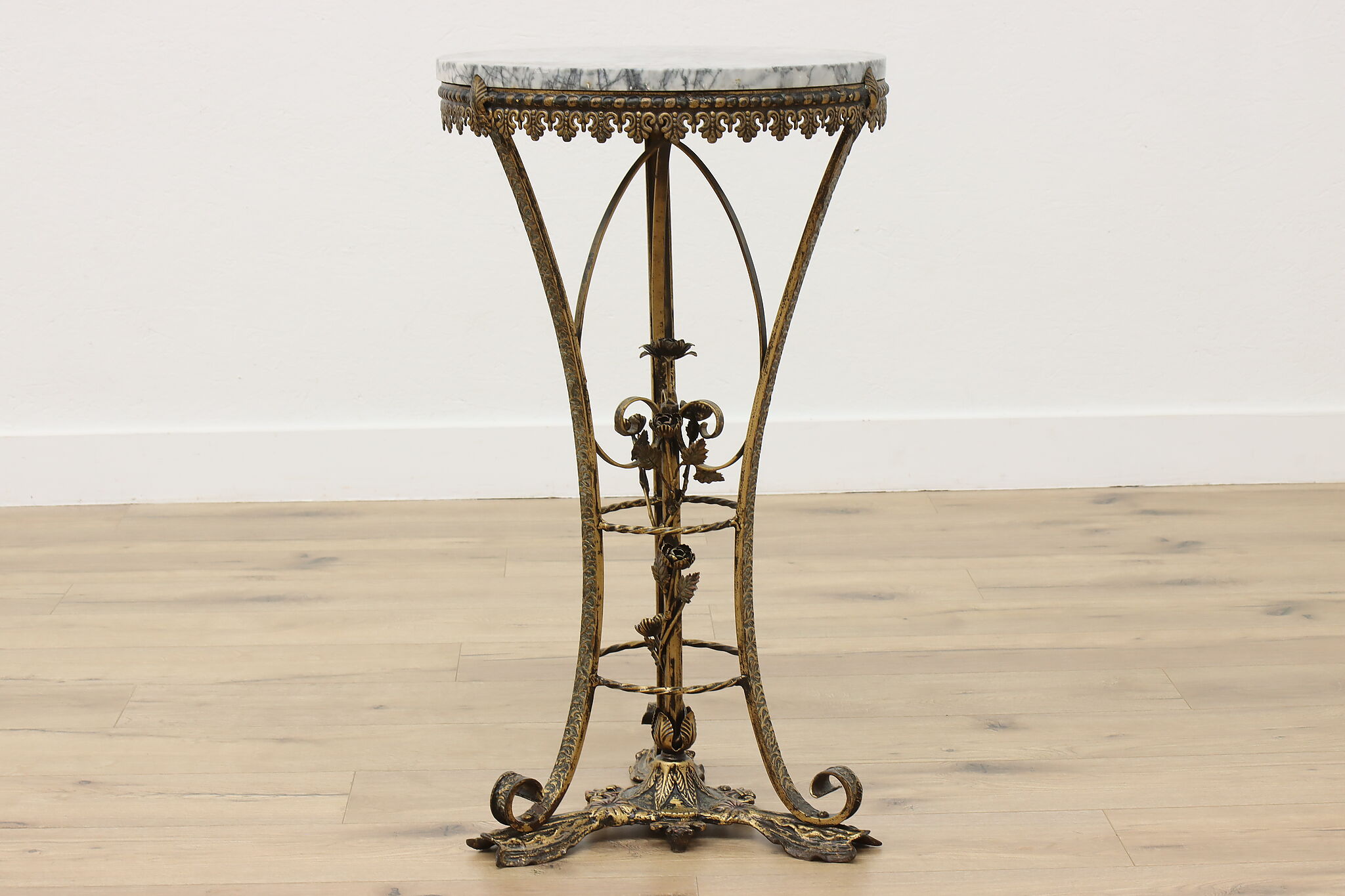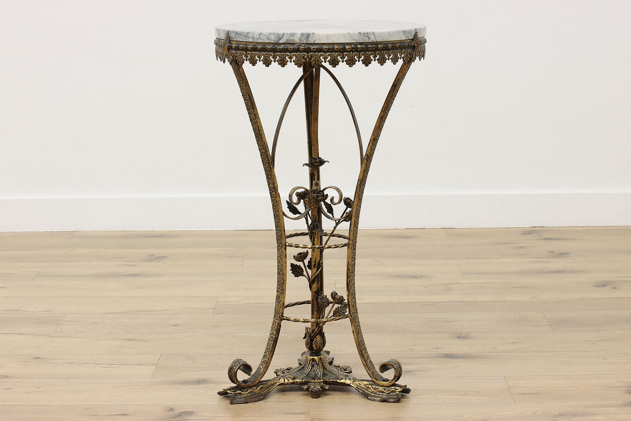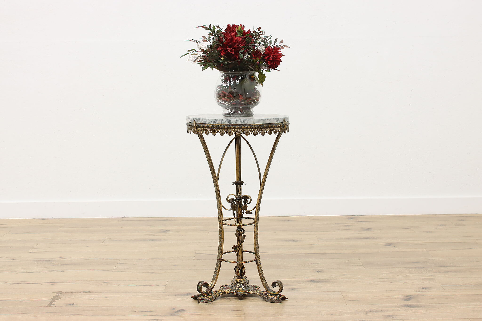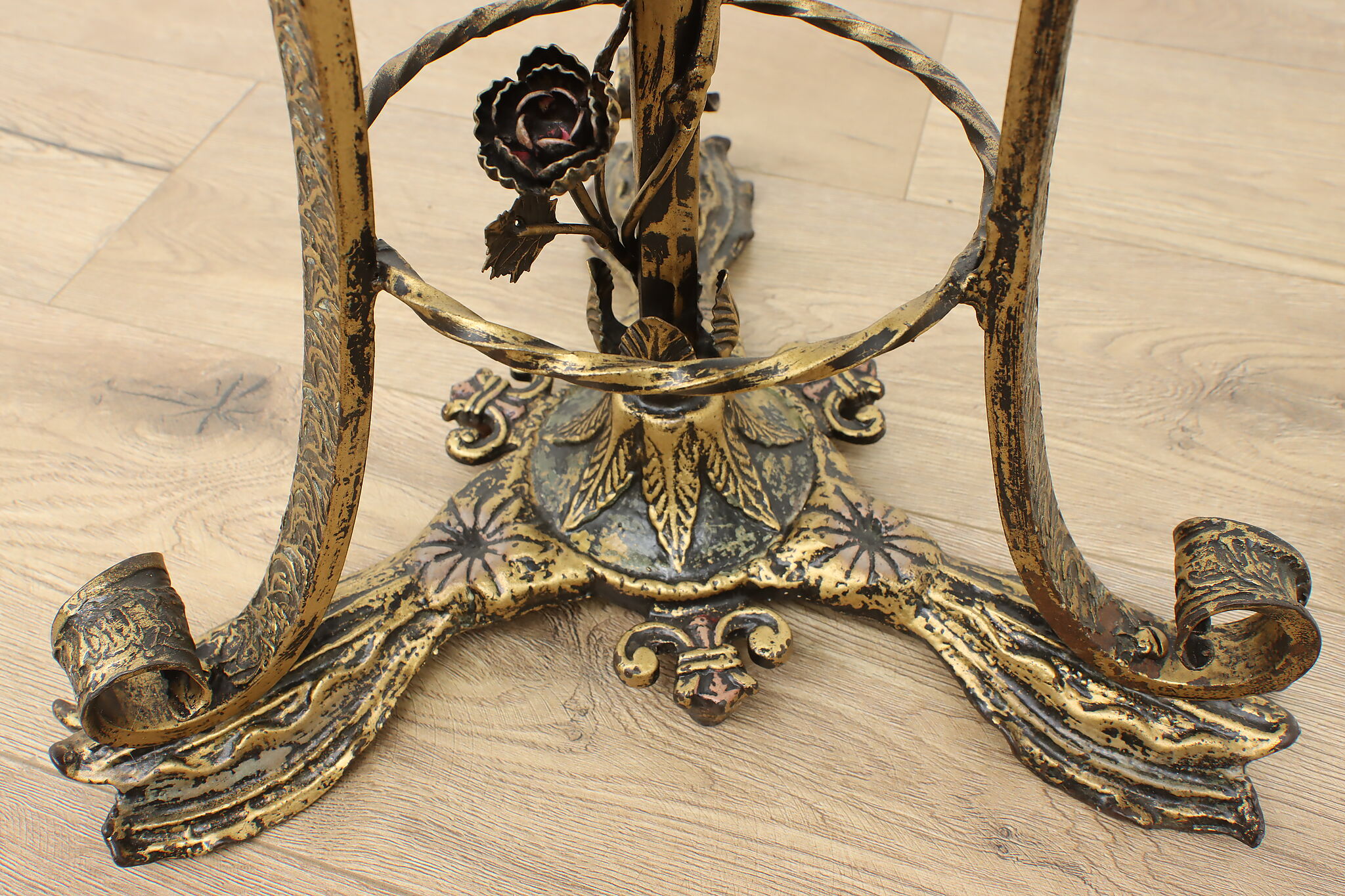 This sculpture pedestal or plant stand has beautiful wrought iron roses and a marble top for an elegant stand to display your beloved treasures.