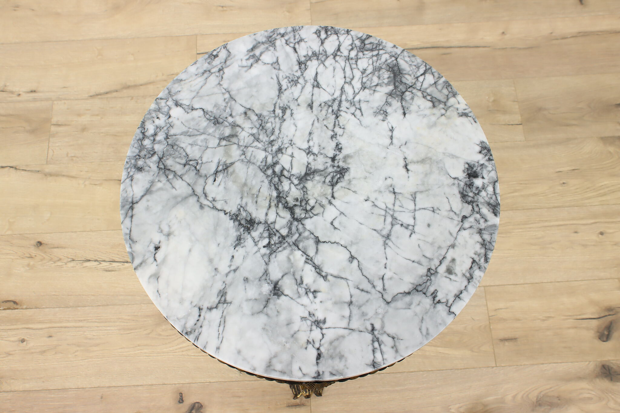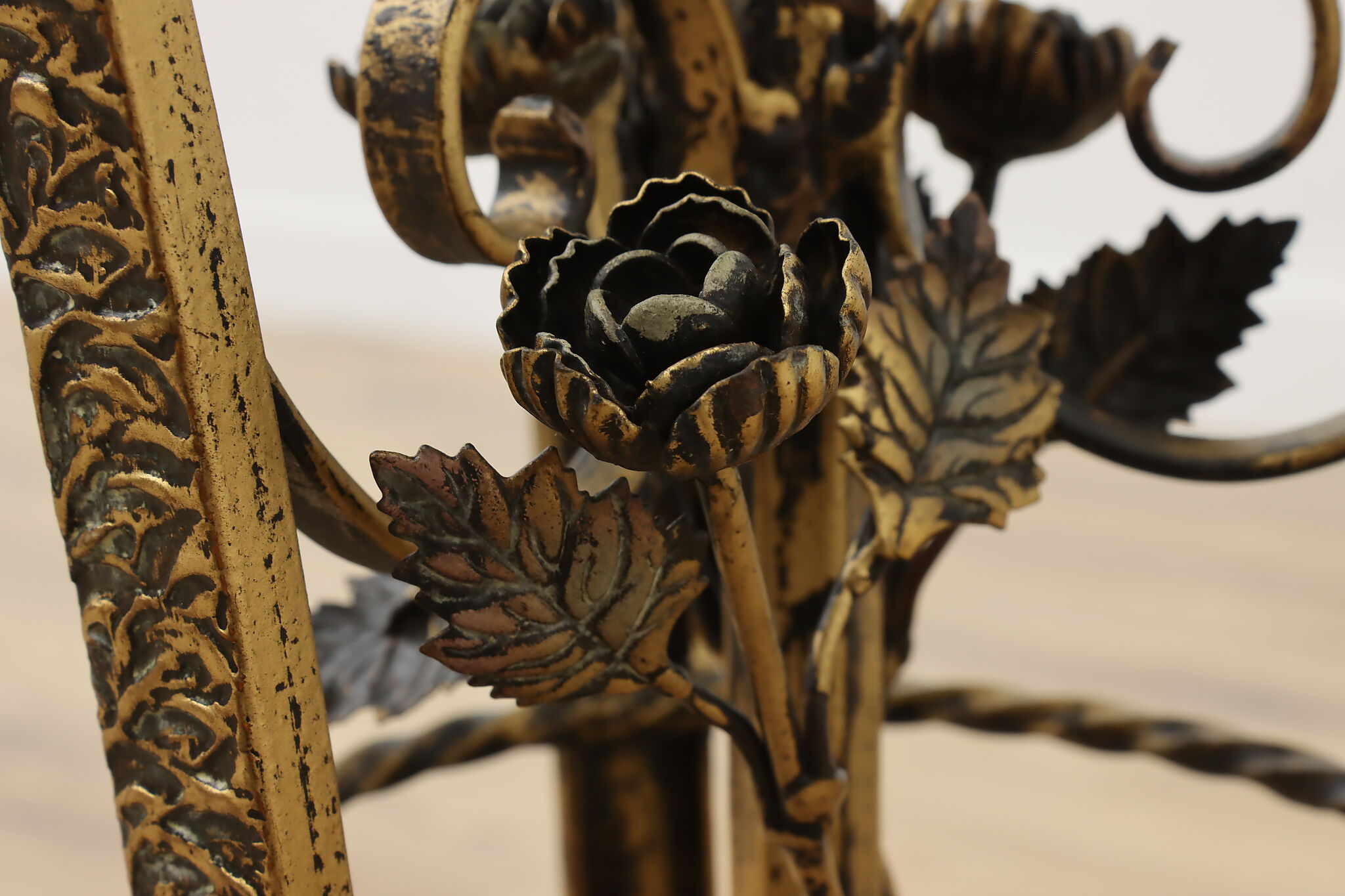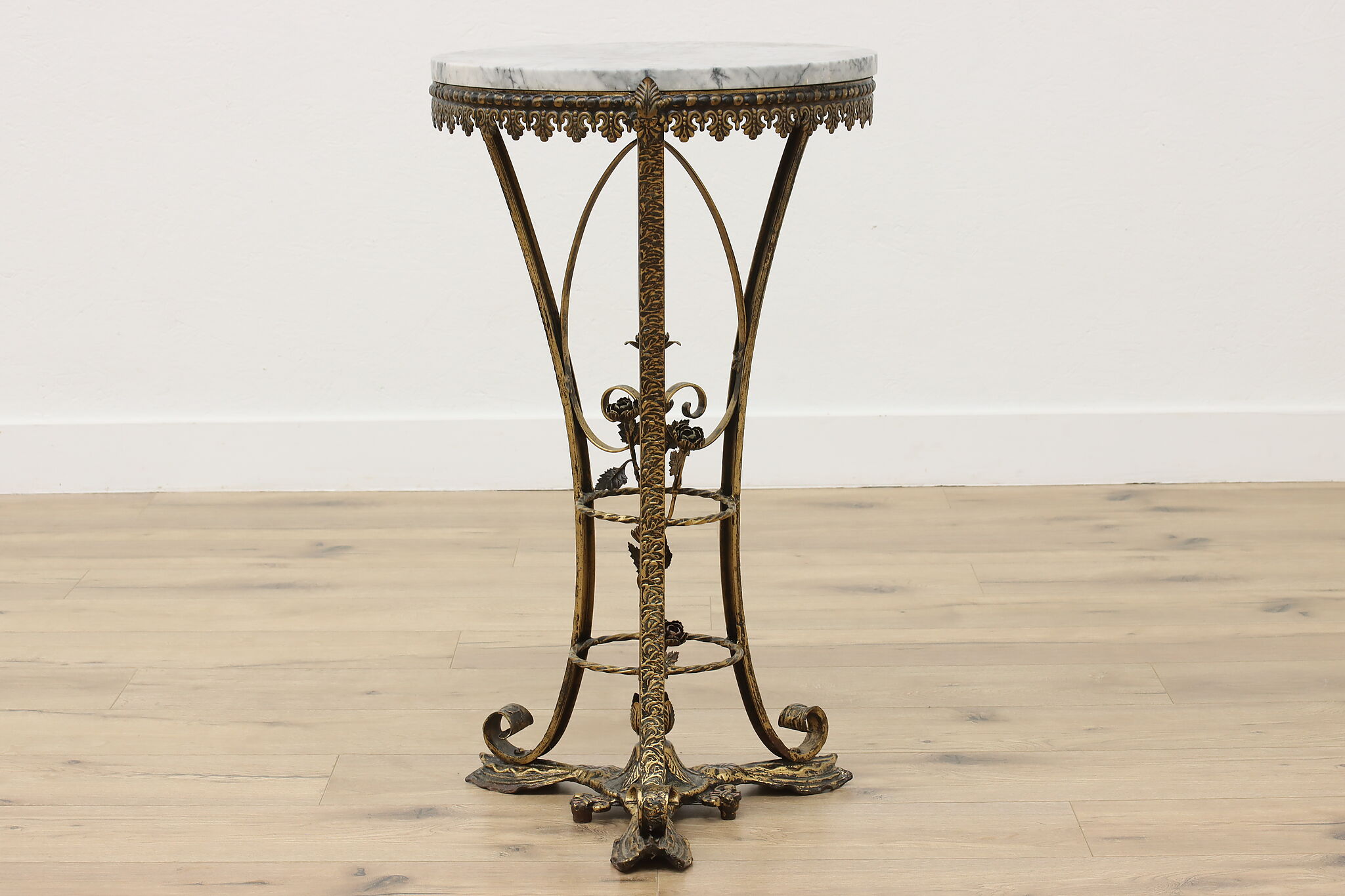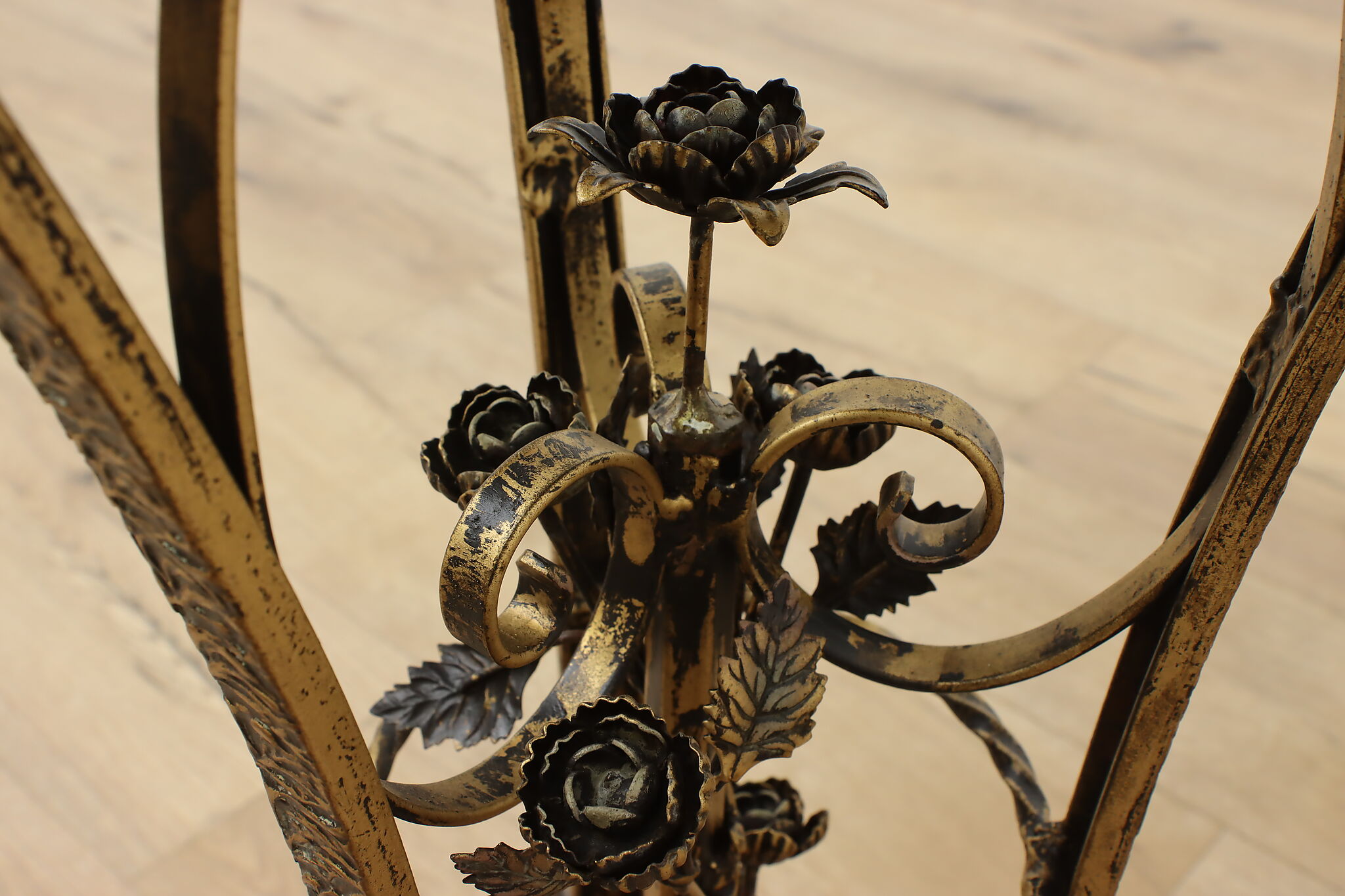 This sculpture pedestal or plant stand has beautiful wrought iron roses and a marble top for an elegant stand to display your beloved treasures.