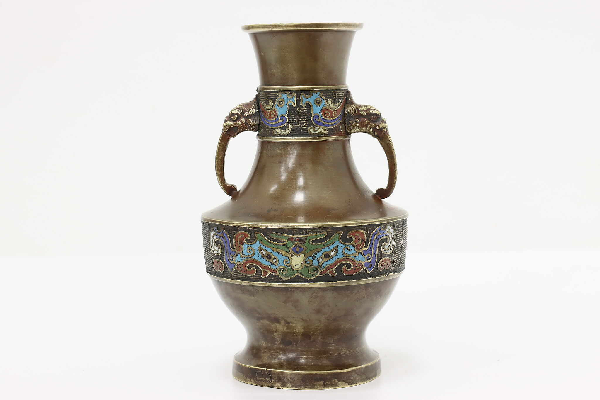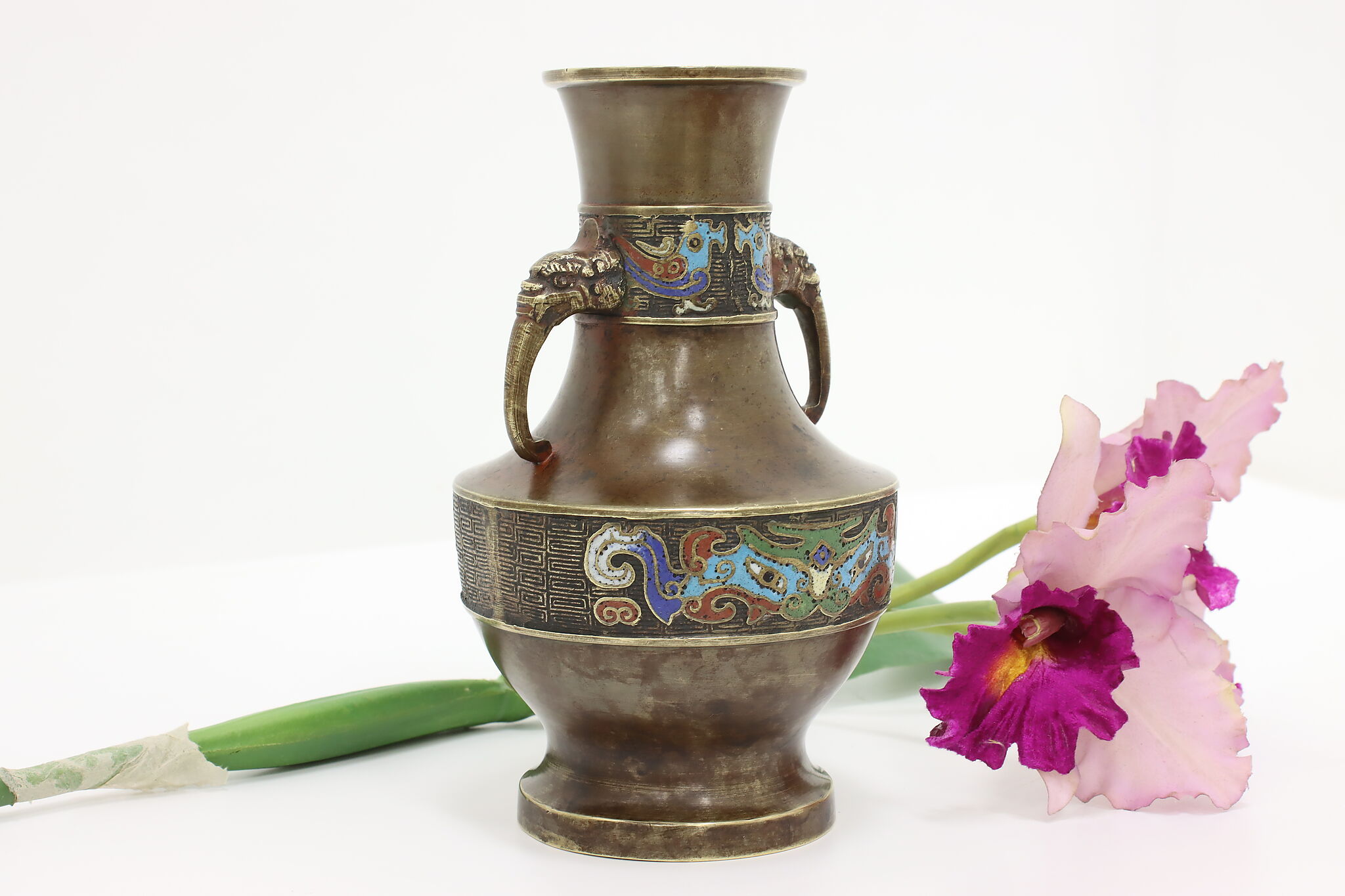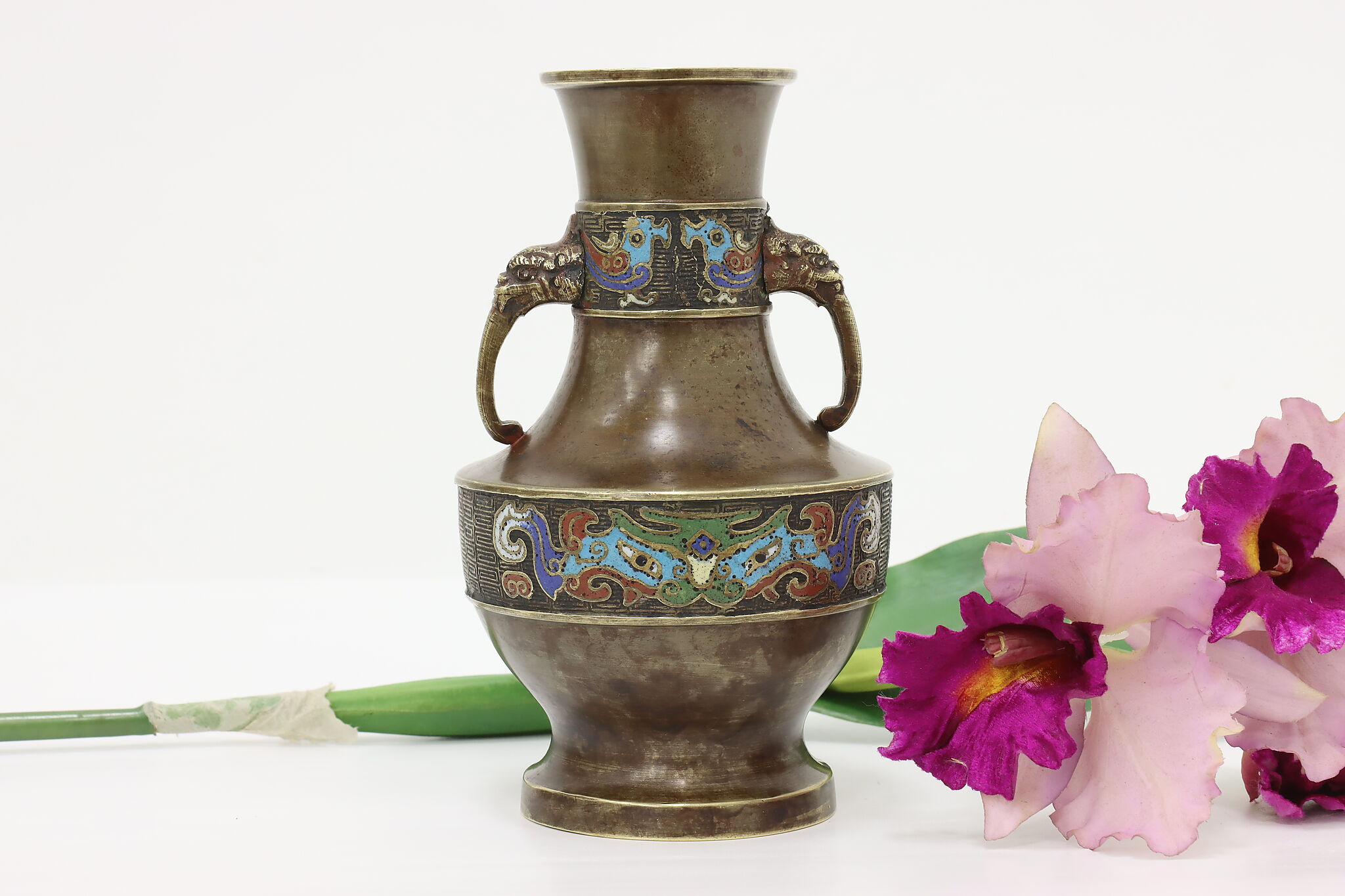 Display a small bouquet of beautiful flowers with this traditional cloisonne vase.