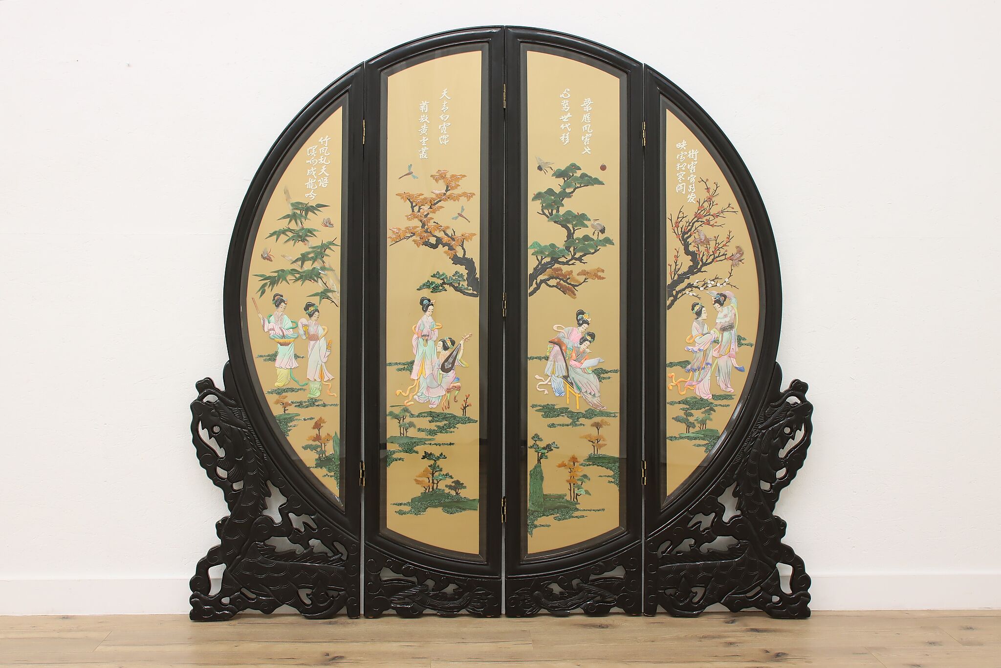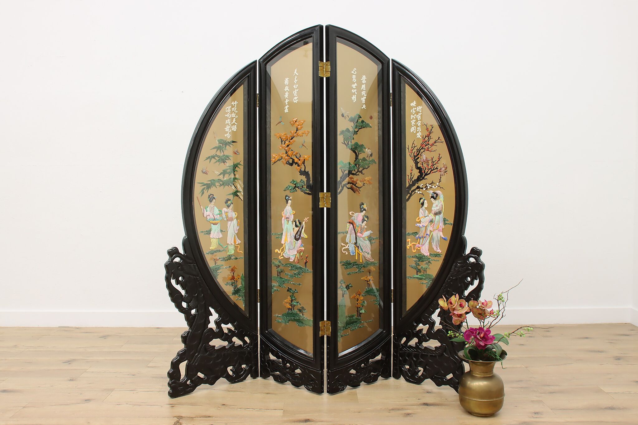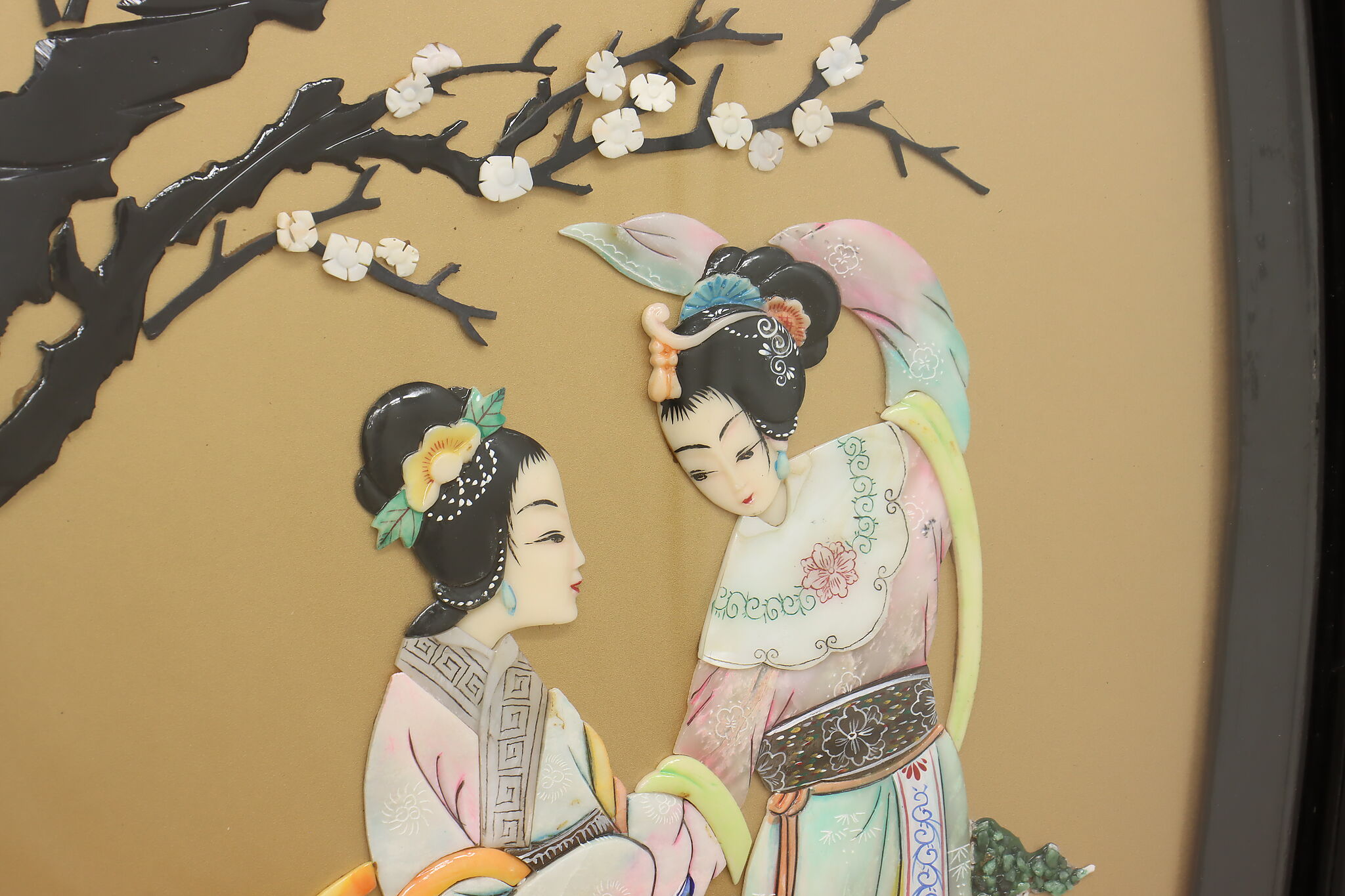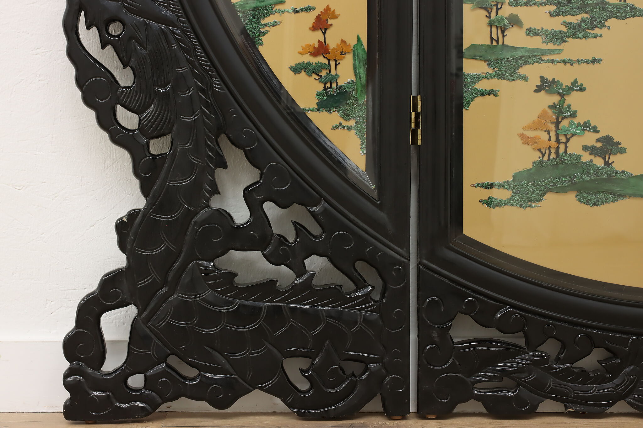 This beauty of a folding screen has hand-carved and engraved jade pieces that form scenes of traditional Japanese geisha women.