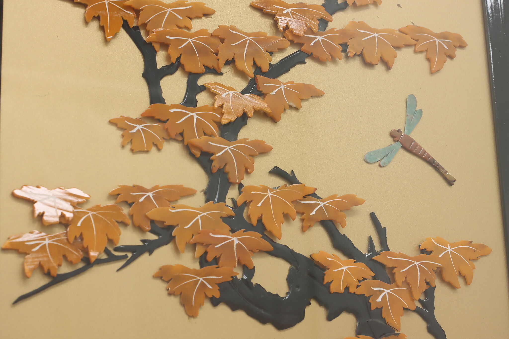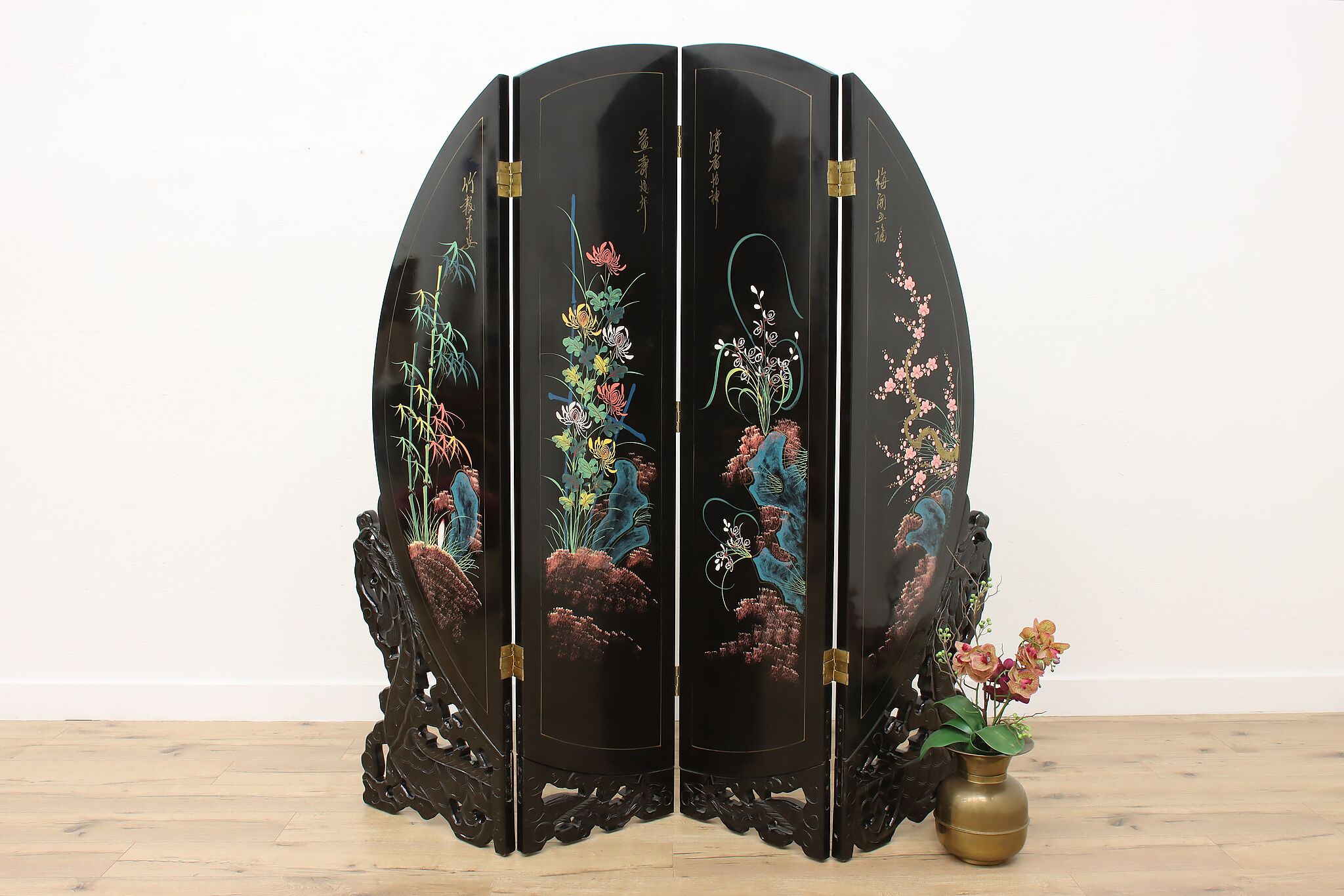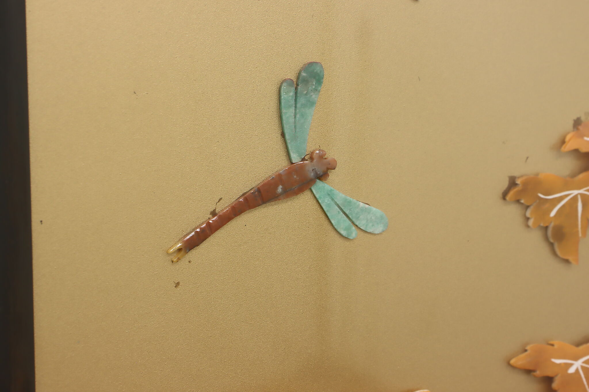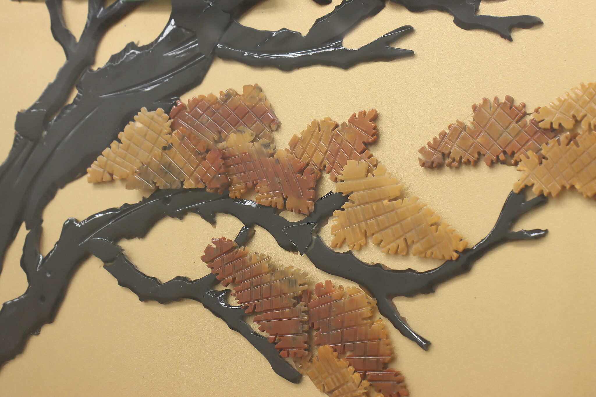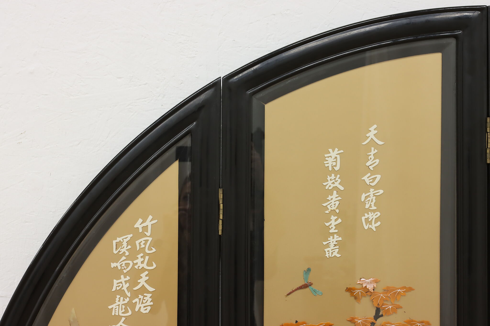 This beauty of a folding screen has hand-carved and engraved jade pieces that form scenes of traditional Japanese geisha women.