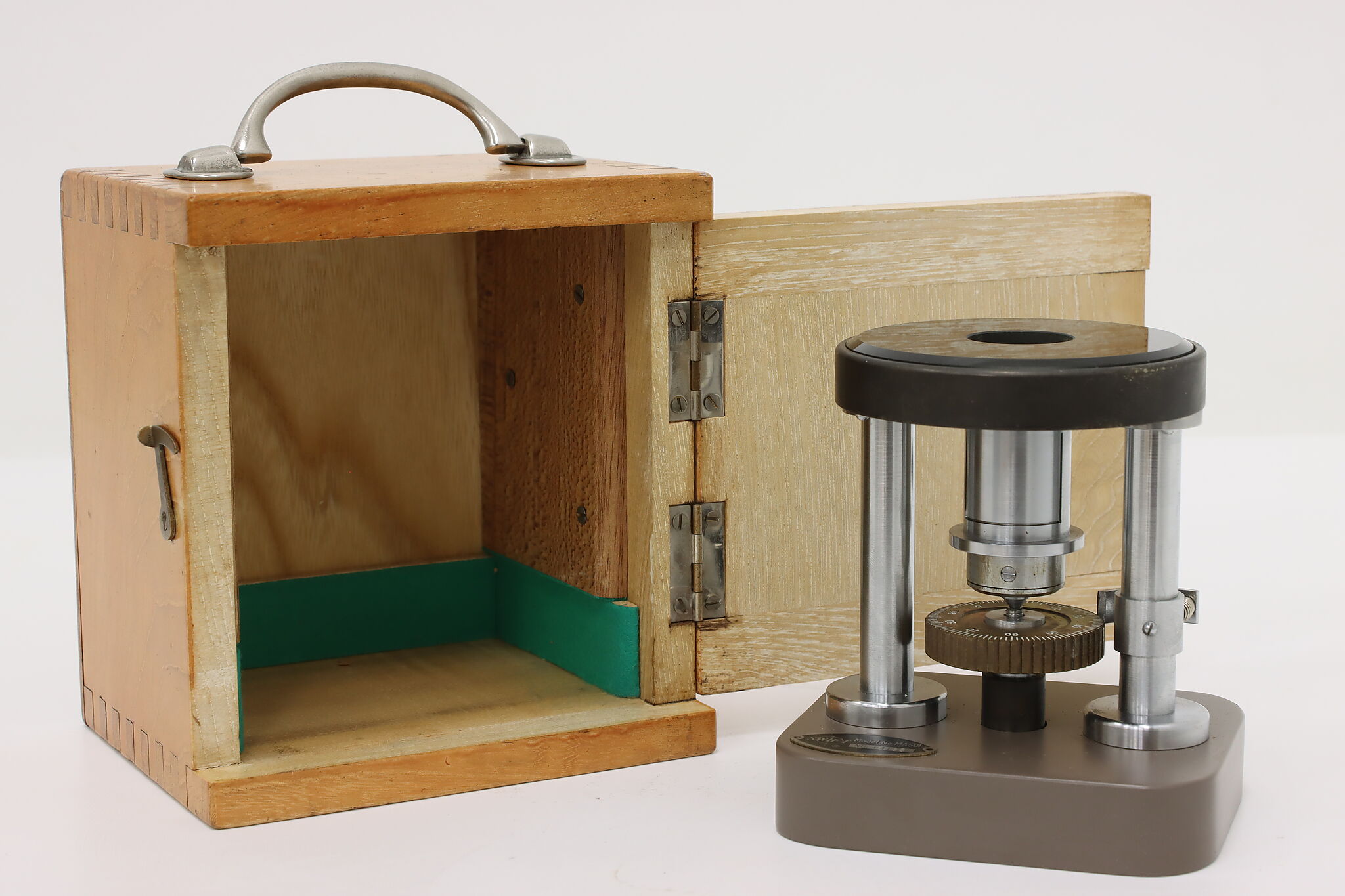 This small microtome slicer was used in a laboratory for slicing specimens thin enough for light to pass through.