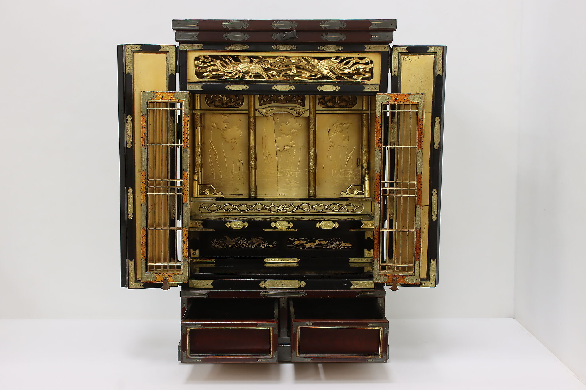 This gorgeous traditional Japanese "Zushi" or portable shrine, was crafted to house a deity of the Buddhist faith within.