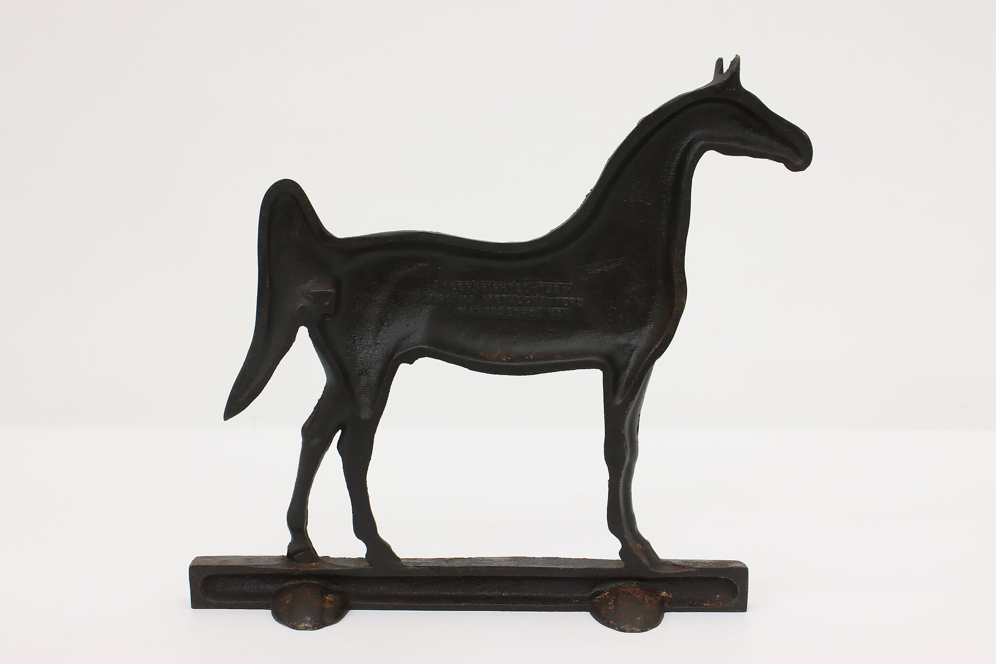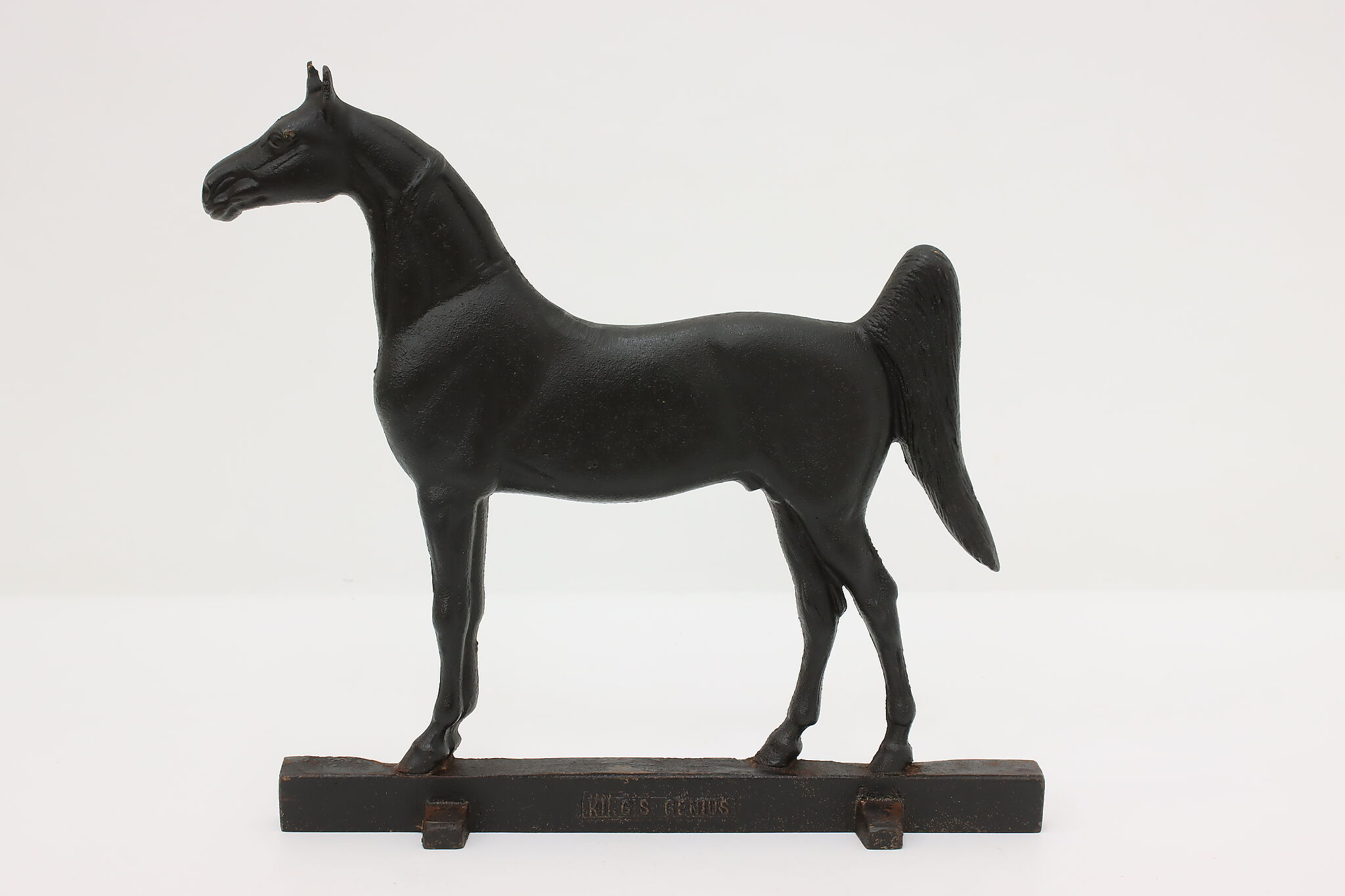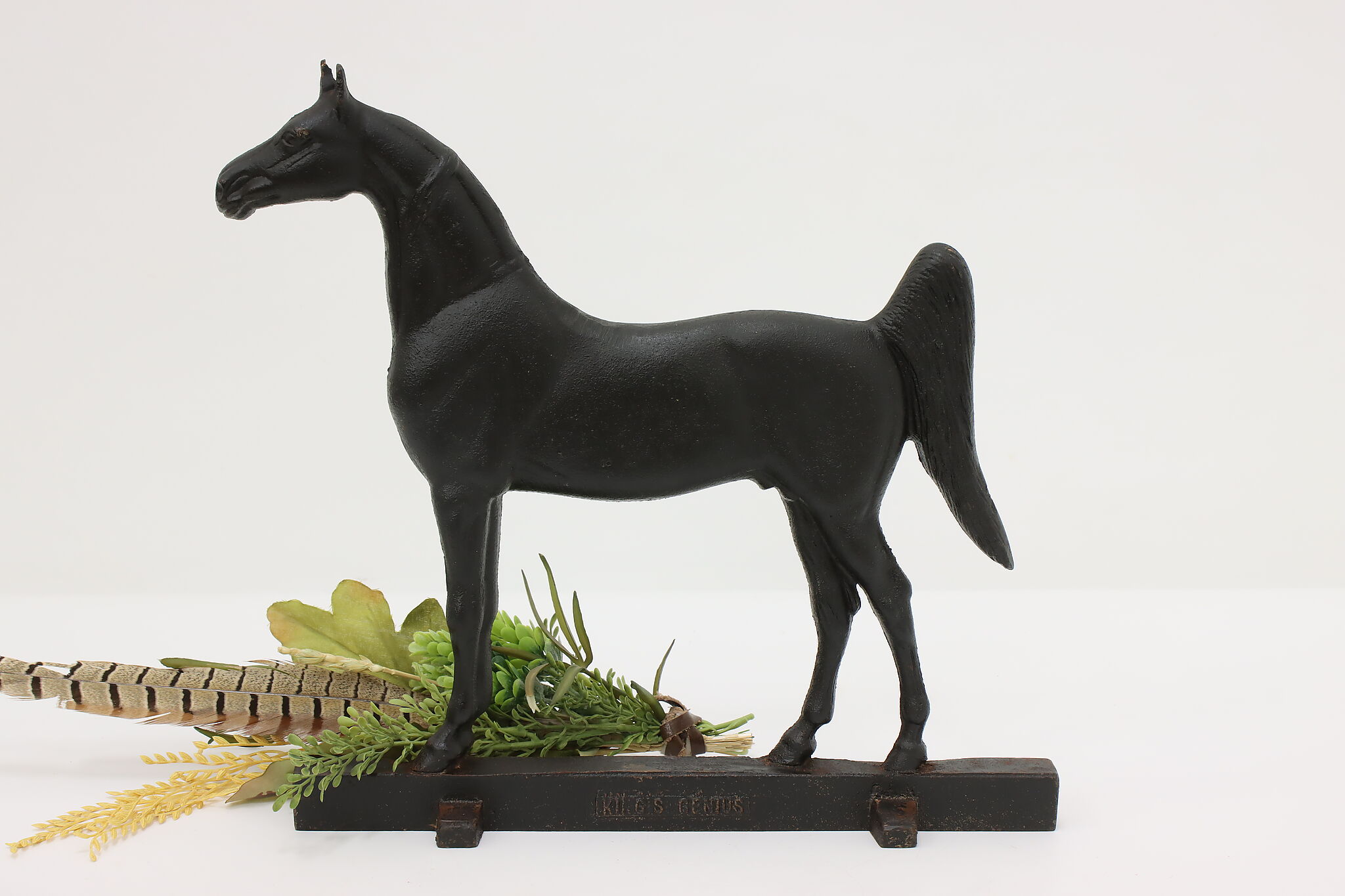 A classic farmhouse door stop is a sculpture of the famous American Saddlebred horse, King's Genius.