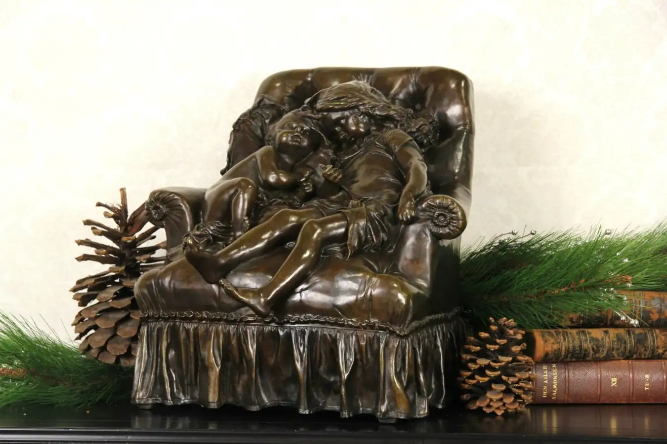 This famous sculpture, "Le Nid" or The Nest is signed "A. Croisy." The original marble version was carved in 1882, now at the Musee D'Orsay in Paris.