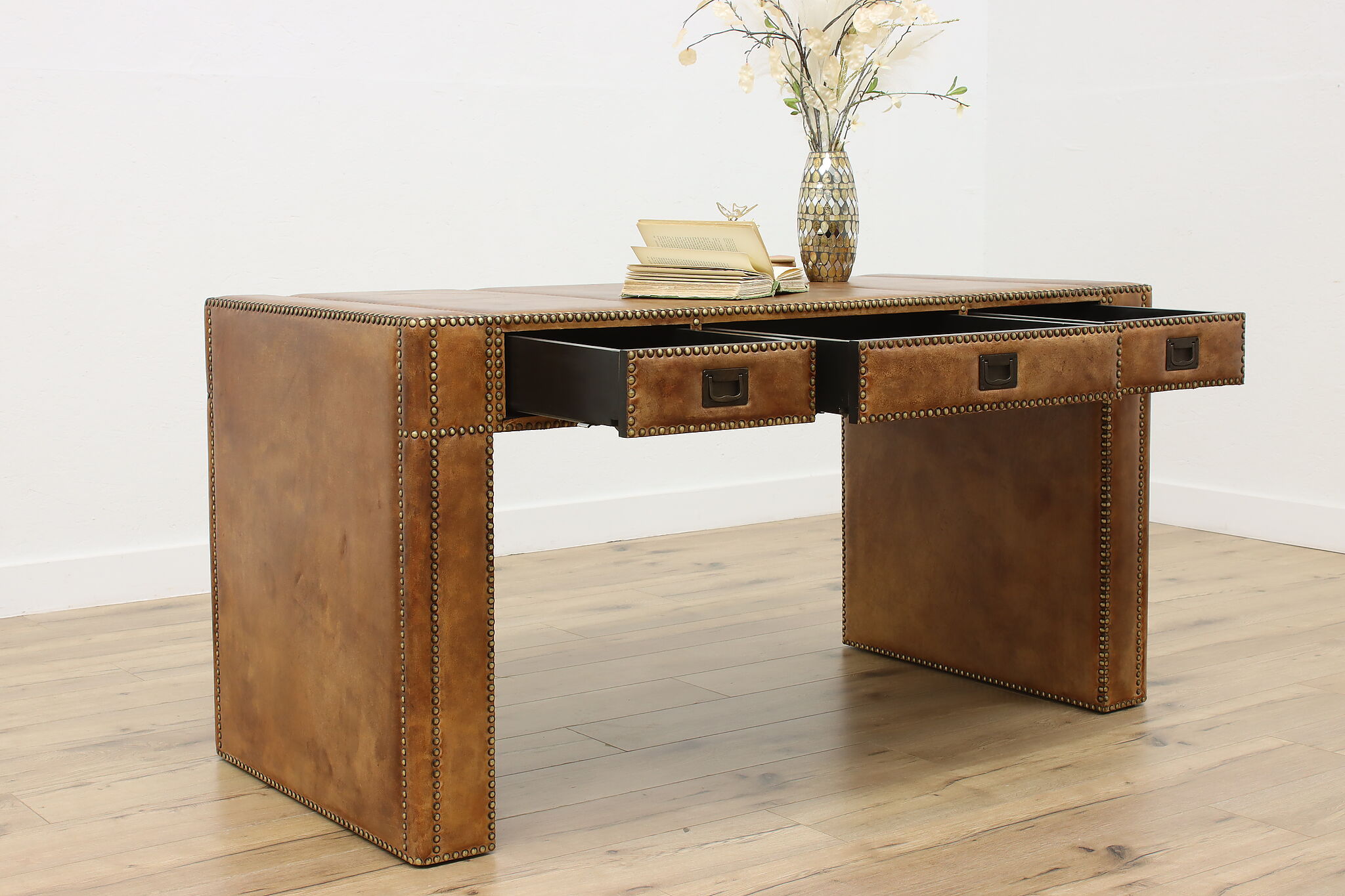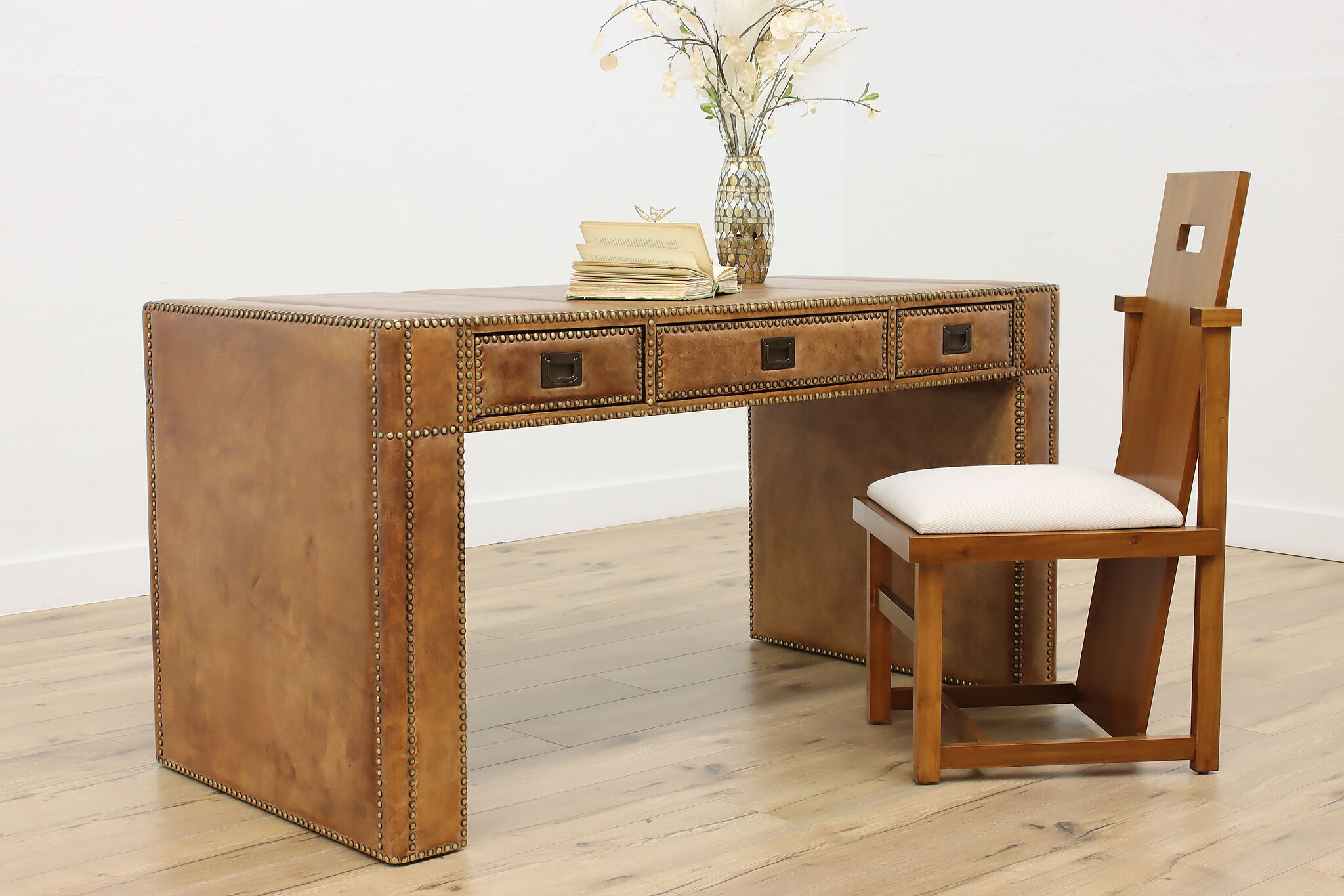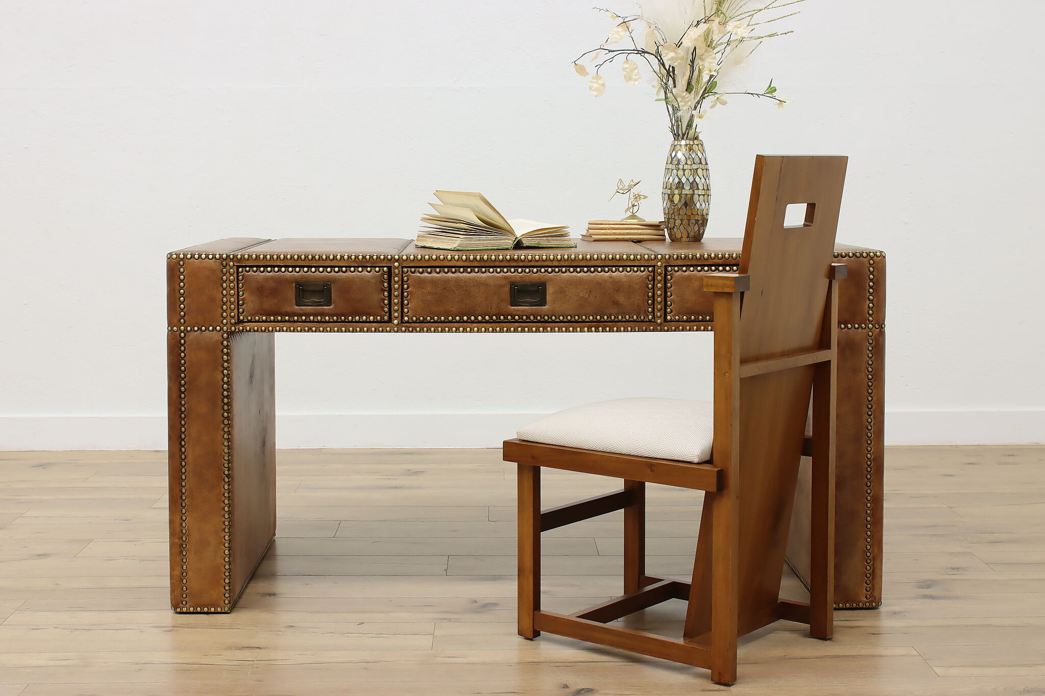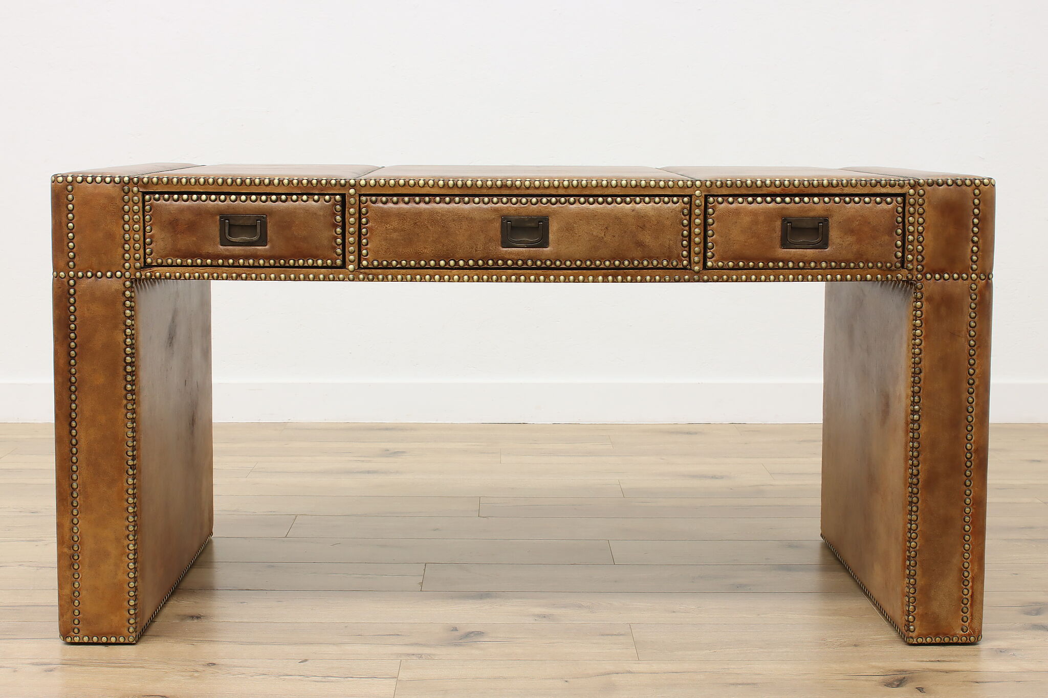 Looking for a unique desk for your office or library? This writing desk has a distinct, eye-catching charm with its warm brown leather upholstery.