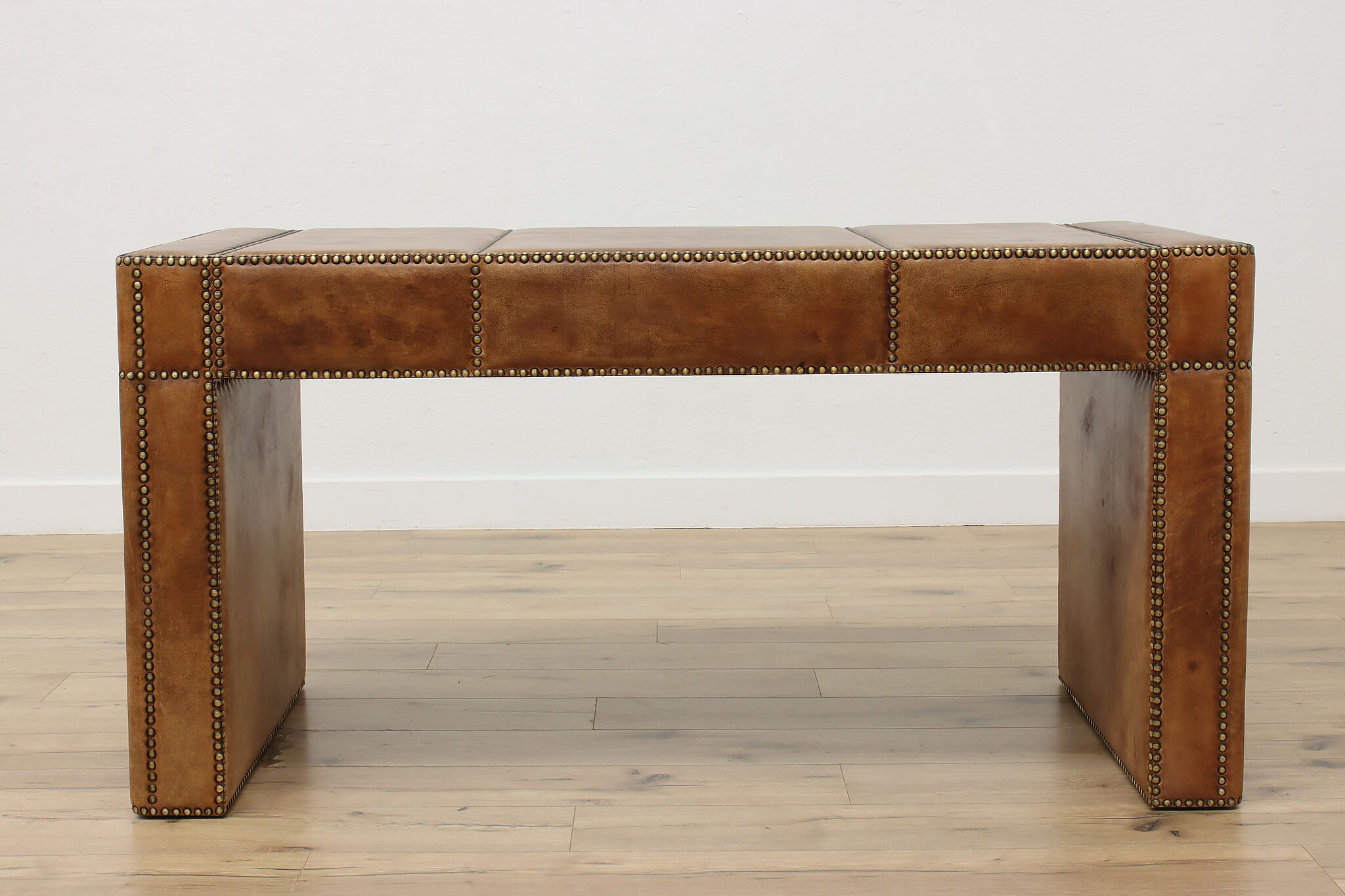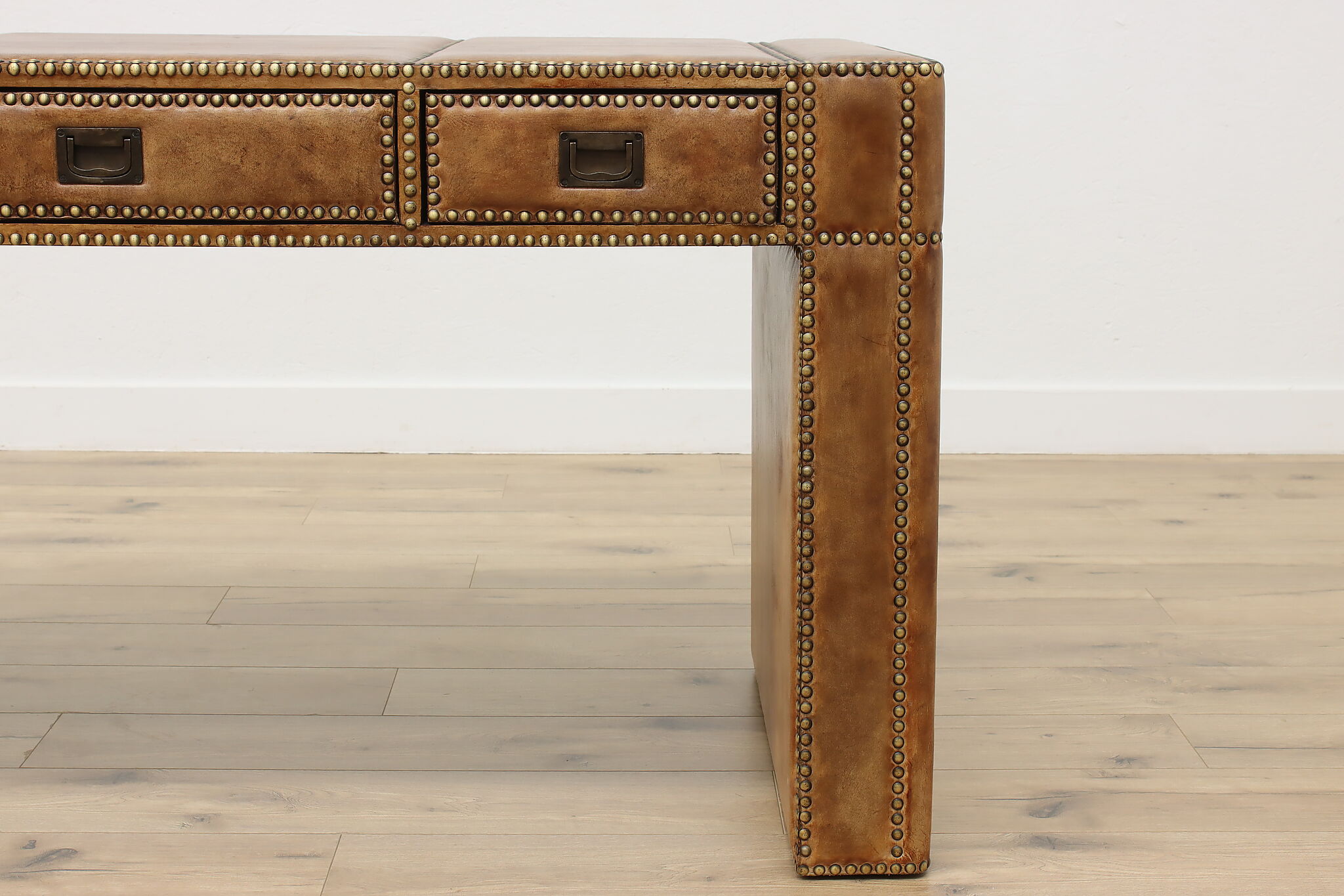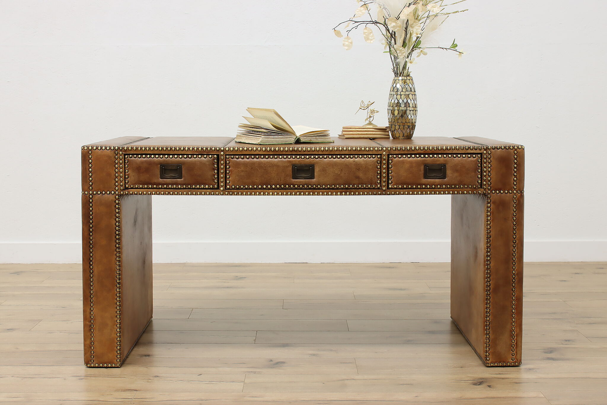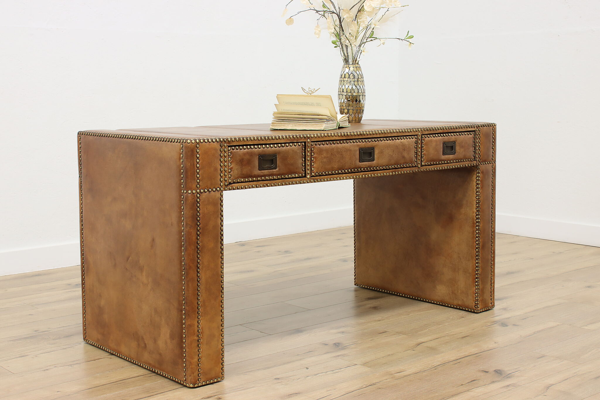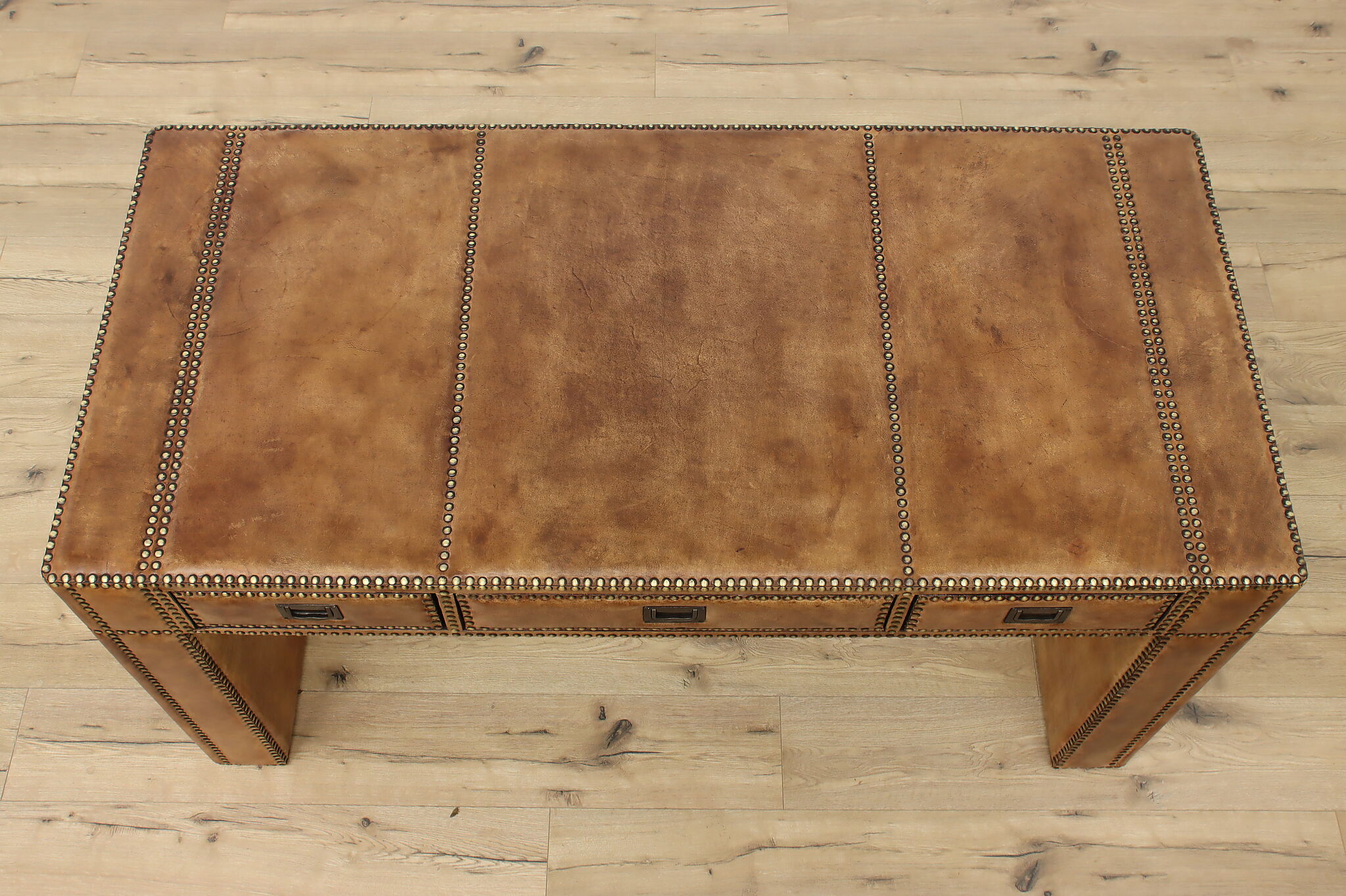 Looking for a unique desk for your office or library? This writing desk has a distinct, eye-catching charm with its warm brown leather upholstery.