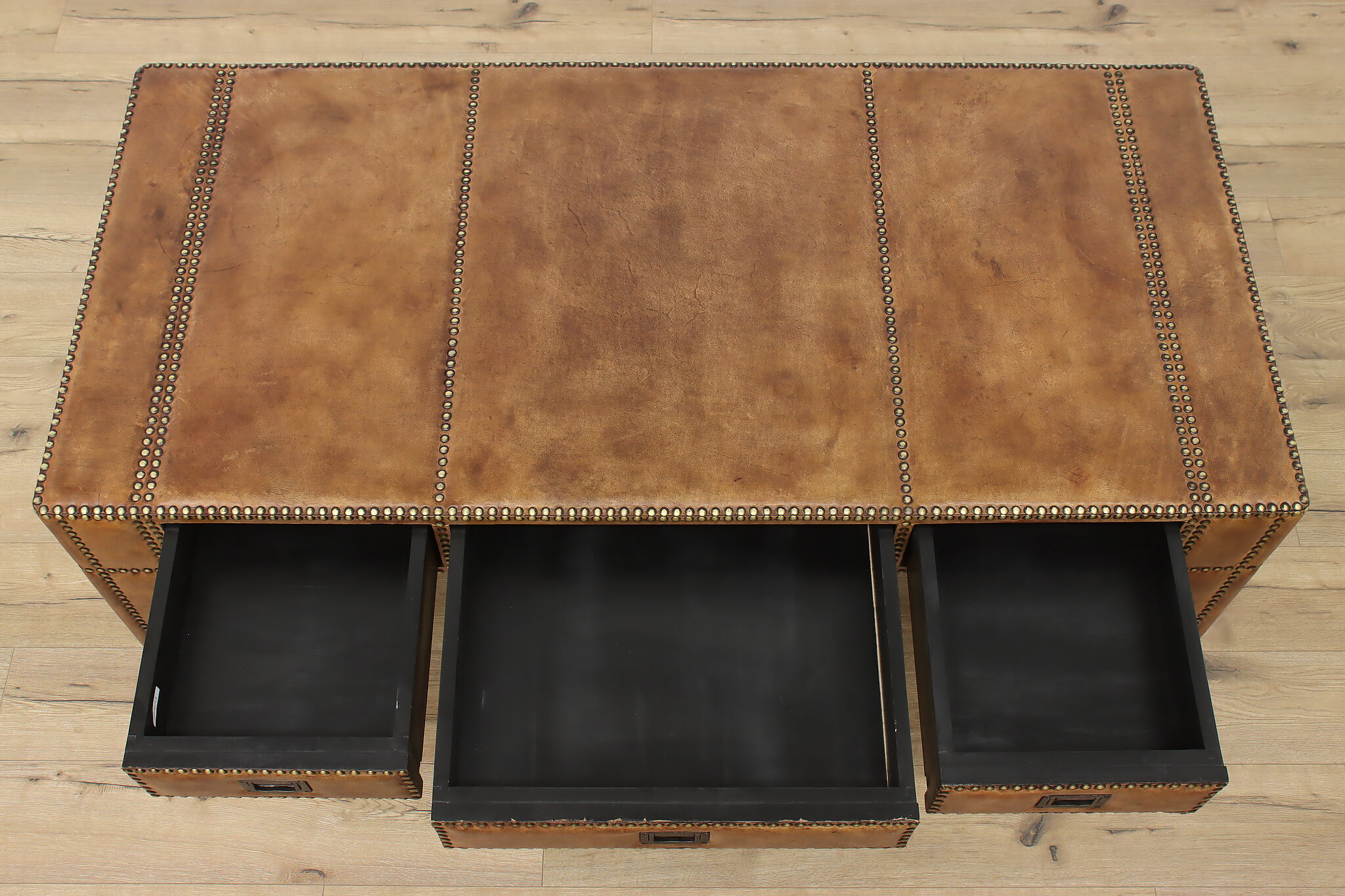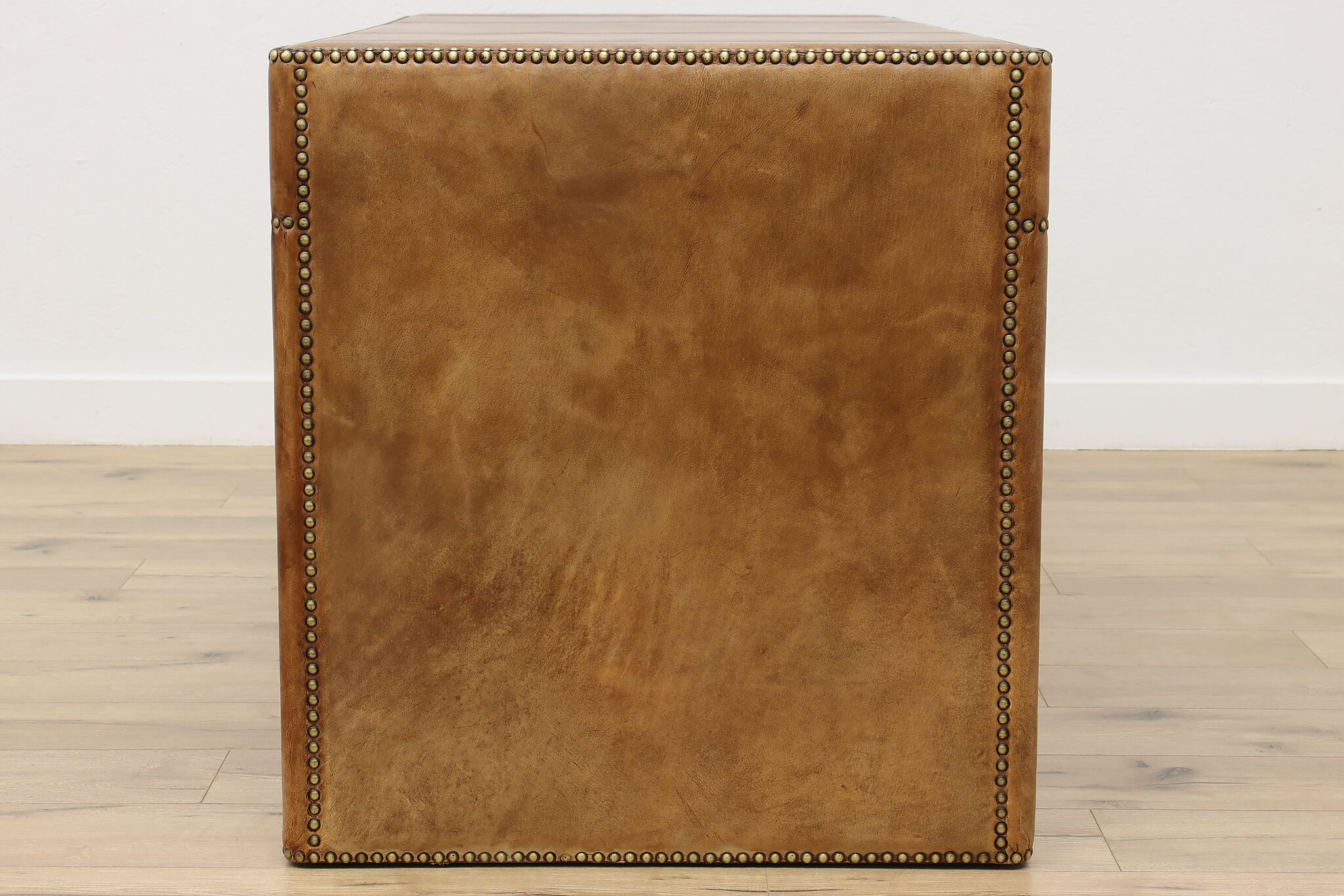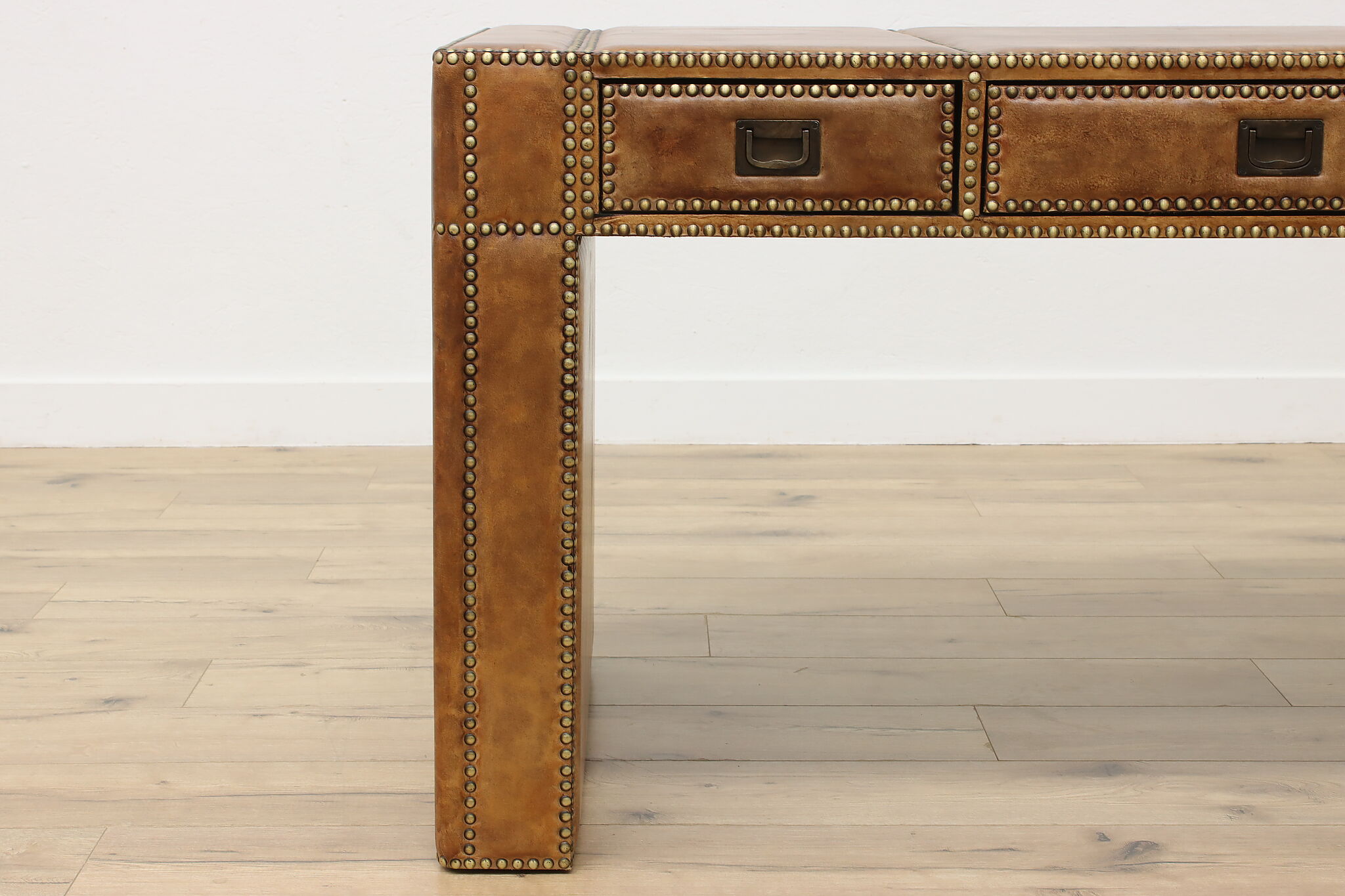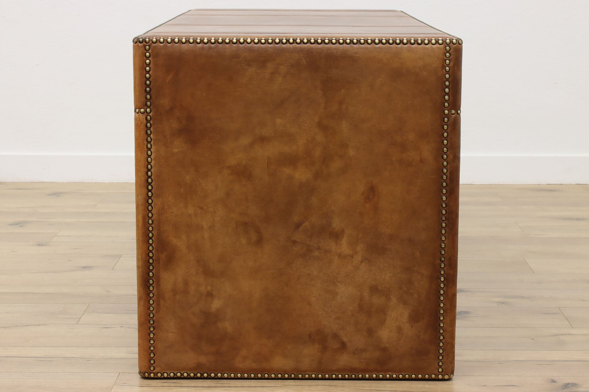 Looking for a unique desk for your office or library? This writing desk has a distinct, eye-catching charm with its warm brown leather upholstery.